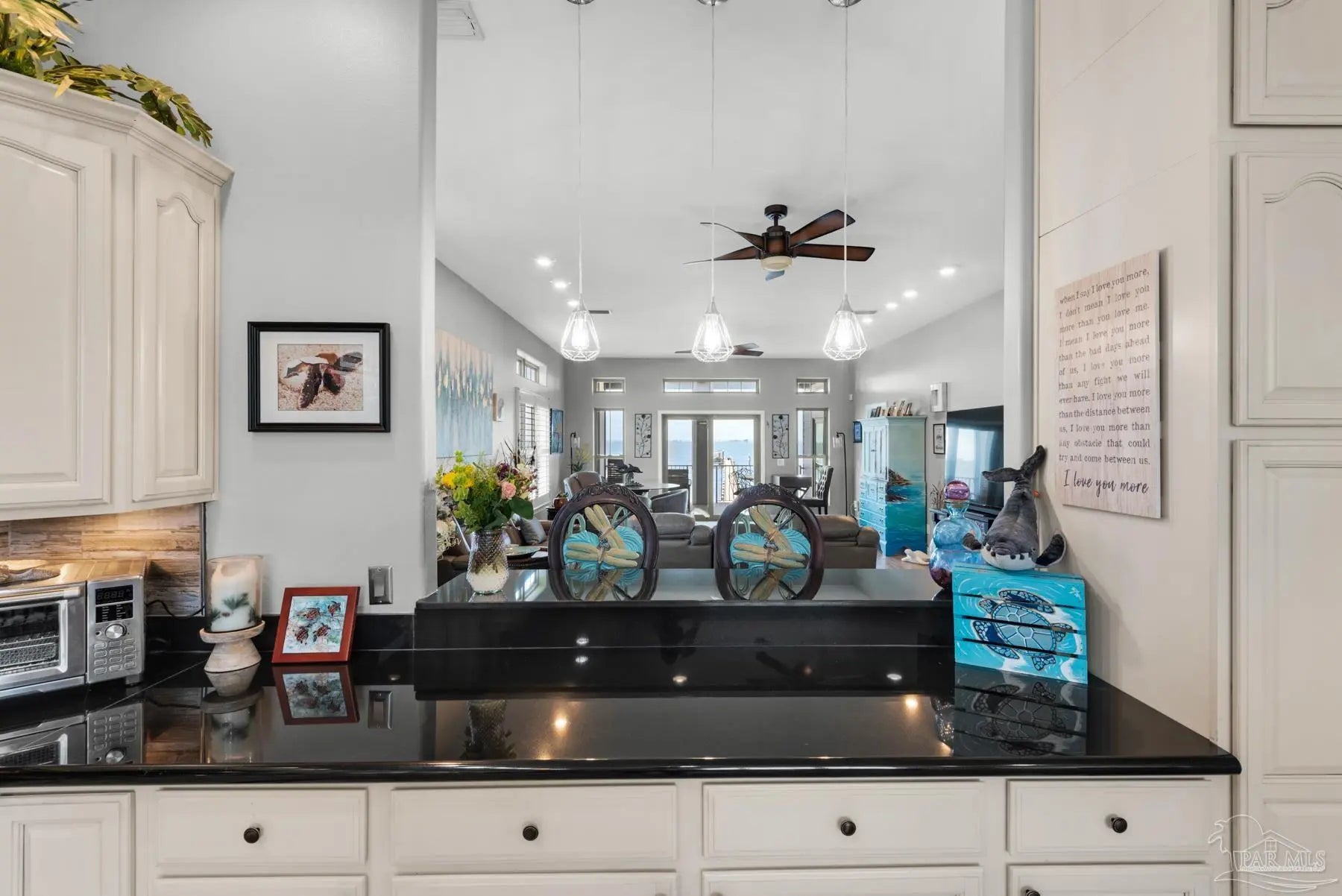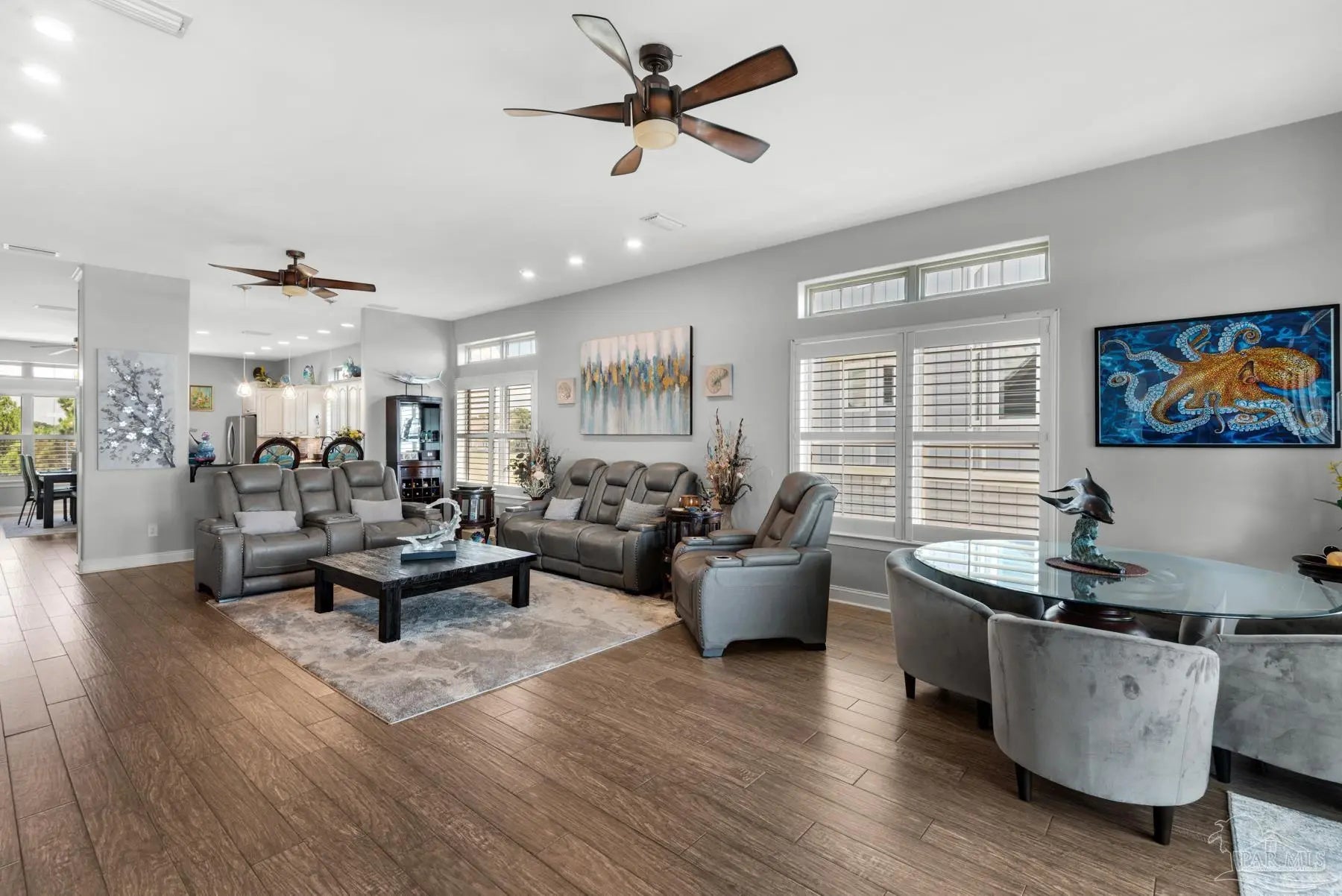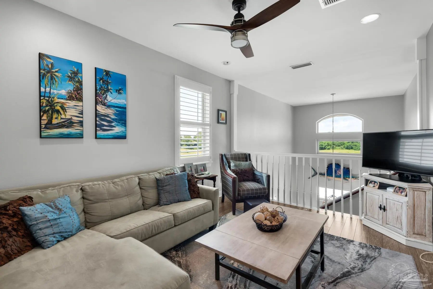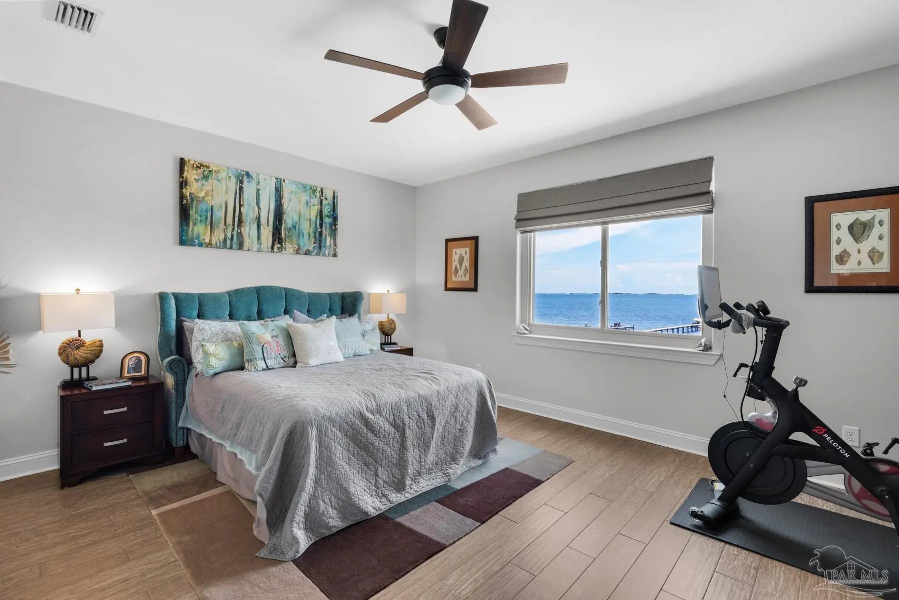 INSTANT EQUITY! PRICE REDUCED $100K BELOW MARKET VALUE FOR QUICK SALE!!! Welcome to your dream home, in gated community of Sea Shadow! Perfectly positioned with panoramic views of the Santa Rosa Sound and Tiger Point Golf Course, this extraordinary residence was crafted for those who love to entertain. Step inside to soaring 12-foot ceilings and walls of impact-rated glass that flood the space with natural light and showcase sweeping vistas of the Intracoastal Waterway and National Seashore. Sliding doors open to a private balcony—your front-row seat to breathtaking sunrises/sunsets, Blue Angel shows and the tranquil rhythm of coastal life. A chef’s dream kitchen awaits—spacious, well-equipped, and designed with gatherings in mind. Enjoy double wall ovens, two refrigerators, expansive counters, abundant cabinetry, a breakfast bar, and space for a large dining table. All of it comes with a stunning view. The open-concept great room features rich, wood-look tile flooring, plus access to the waterfront balcony—ideal for seamless indoor-outdoor living. The main-level owner's suite is a sanctuary of space and serenity, offering private balcony access and awe-inspiring views. The updated ensuite bath pampers with a luxurious oversized tile shower, beautiful finishes, a bench, and multiple shower heads. A well-appointed office with built-in cabinetry, as well as an updated powder room. A private elevator services all three levels, making daily living and entertaining effortless. Upstairs, you'll find a versatile loft space overlooking the tranquil ponds of Tiger Point Golf Course—perfect for a den, or creative studio. Two massive bedrooms with walk-in closets face the Sound, and a third good sized bedroom. The upstairs bath remodeled with elegant Carrera subway tile in the walk-in shower and tub surround. Private dock, boat lift, two jet ski lift, extra boat slip, and pier. Laundry room has a pet washing station. Entire house wheelchair accessible.