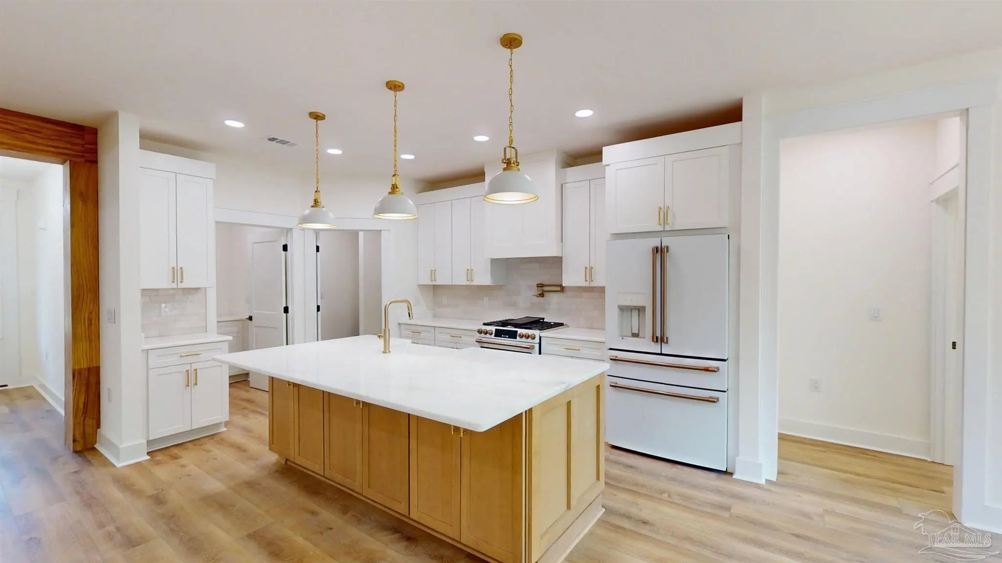 Brand New Construction in Gated Innerarity Island! This thoughtfully designed 4-bedroom, 3-bathroom home is perfectly situated on a spacious lot in one of Perdido Key’s most sought-after communities. Enjoy glimpses of Perdido Bay from the inviting front porch, the perfect spot for morning coffee or evening sunsets. Step through the foyer and take in the open-concept living space, flooded with natural light and anchored by a gas fireplace. French doors provide a beautiful view and access to the backyard and covered patio, ideal for relaxing or entertaining. The kitchen features a gas range with pot filler, walk-in pantry, island with extra storage and generous counter space, making both daily living and hosting a breeze. The primary suite is a serene retreat with a spacious bedroom, luxurious bath featuring tiled shower, private water closet, and oversized walk-in closet. Two additional bedrooms are connected by a convenient Jack and Jill bathroom, while the fourth bedroom—complete with its own en-suite—makes an ideal guest room, office, or flex space. Enjoy the peaceful privacy of your large backyard from the covered back patio, ideal for afternoon lounging or grilling out. Innerarity Island offers a unique coastal lifestyle with community amenities including a park on Perdido Bay with a pier, pickleball/basketball court, picnic tables and a basketball hoop and beach access on the Intracoastal side. Neighborhood events like golf cart parades for Mardi Gras and the Fourth of July add to the charm and vibrant sense of community.