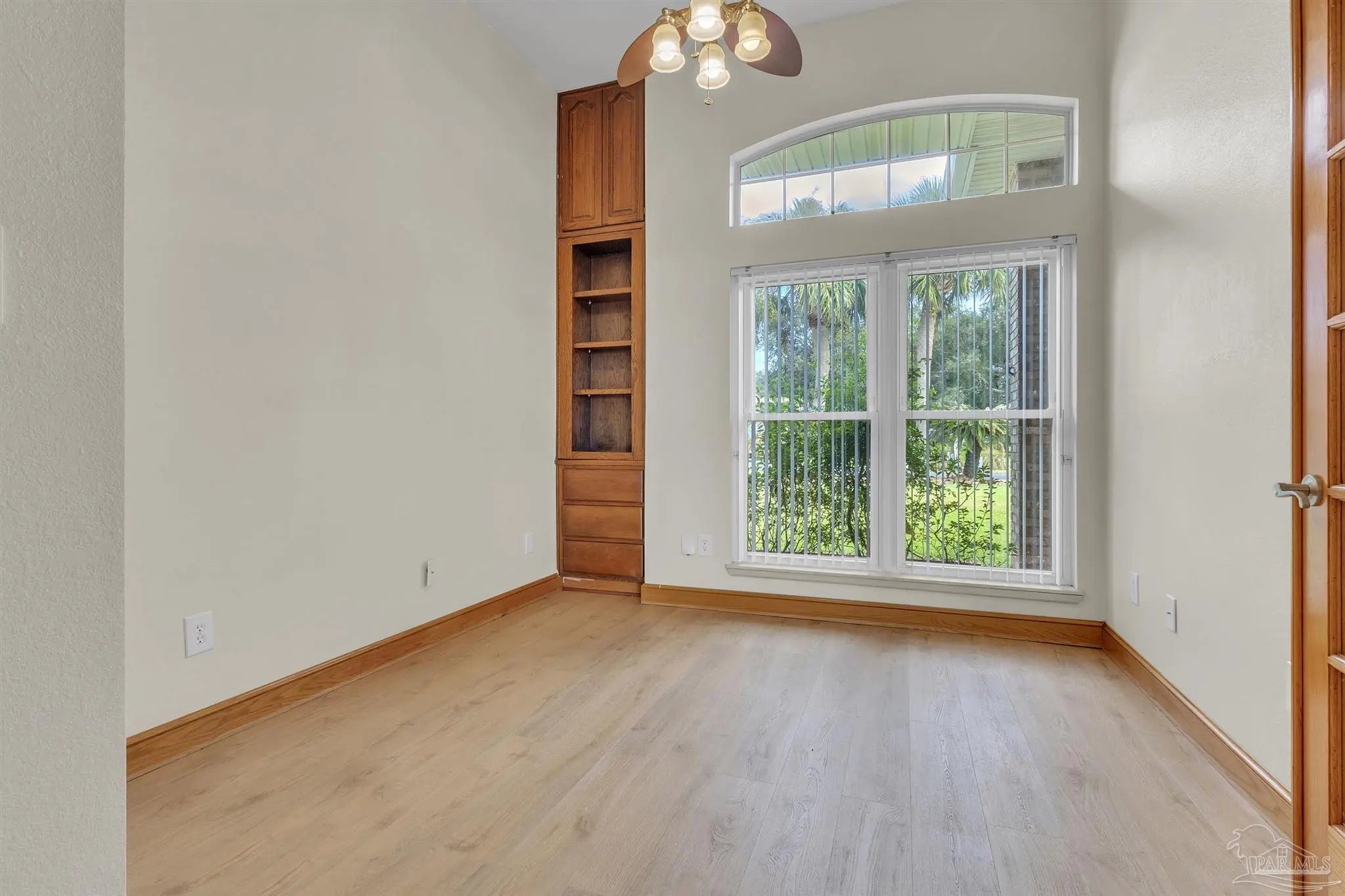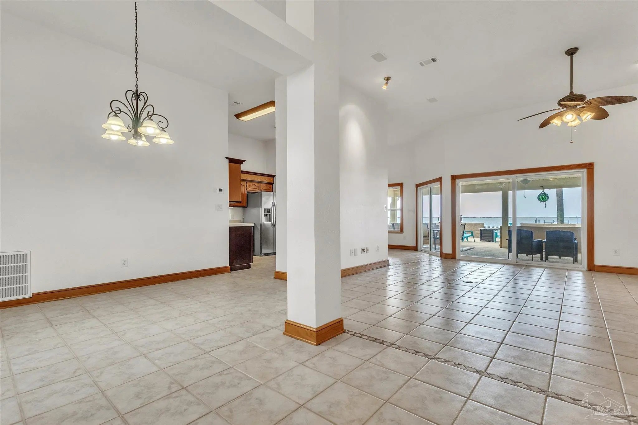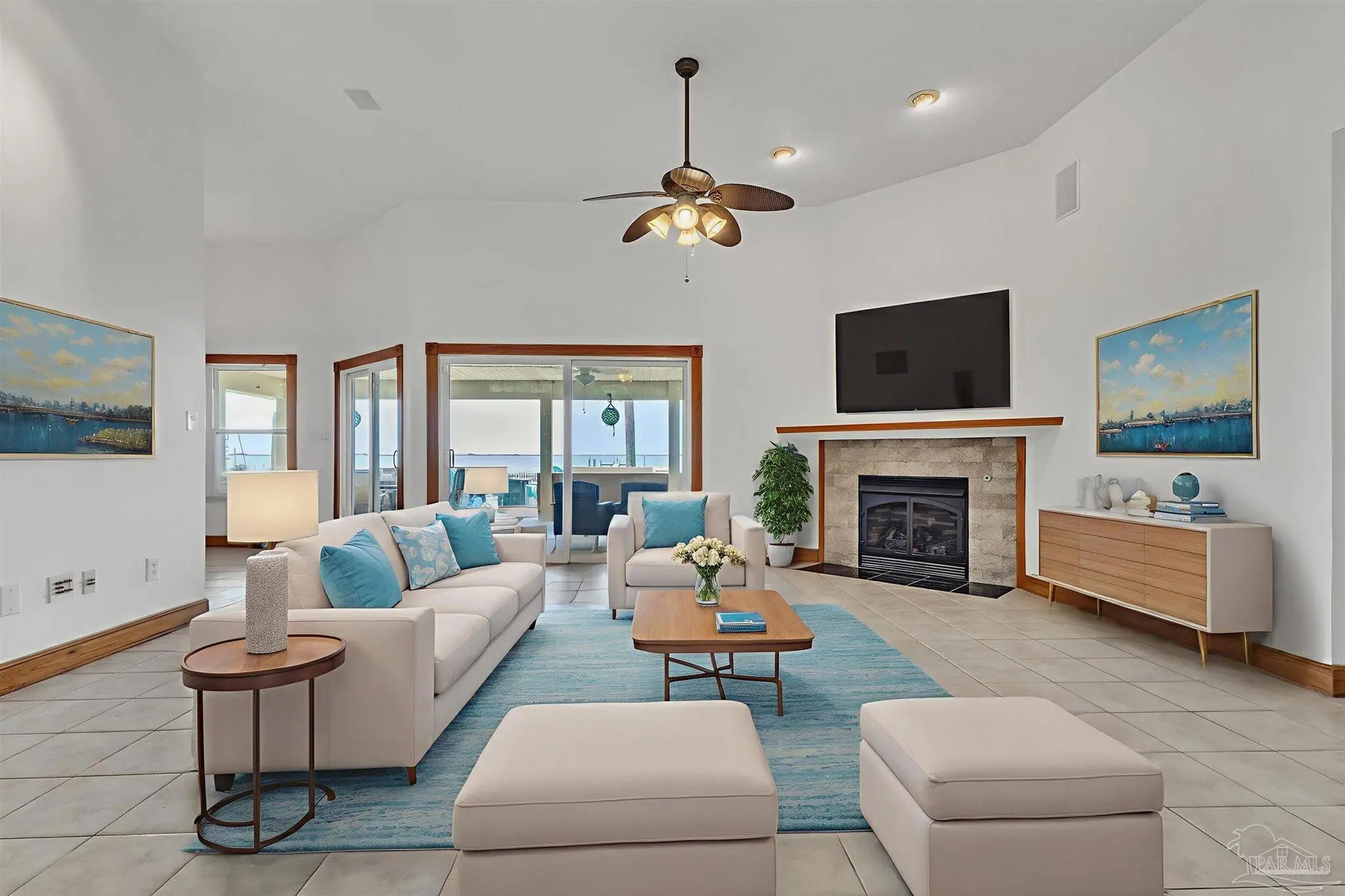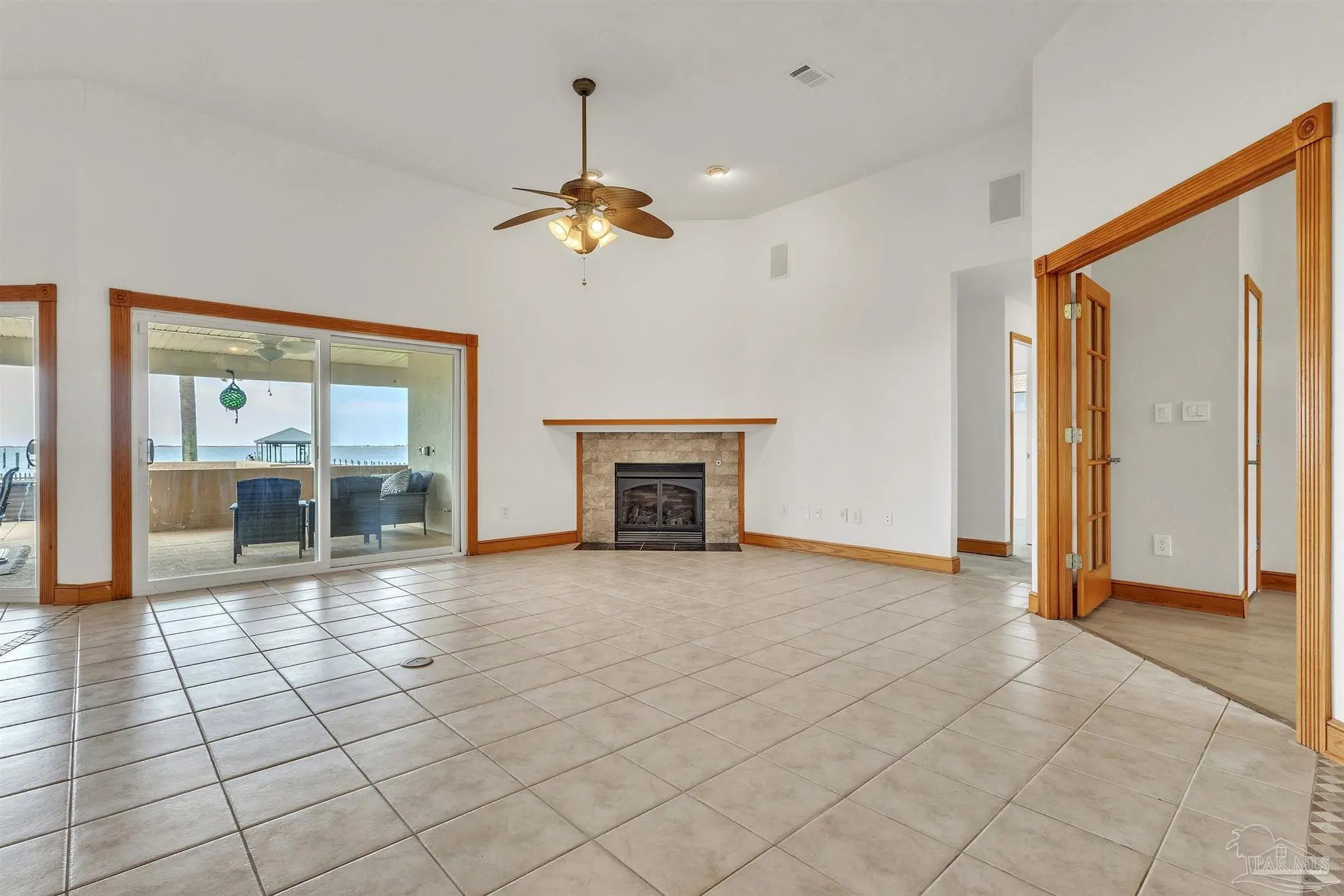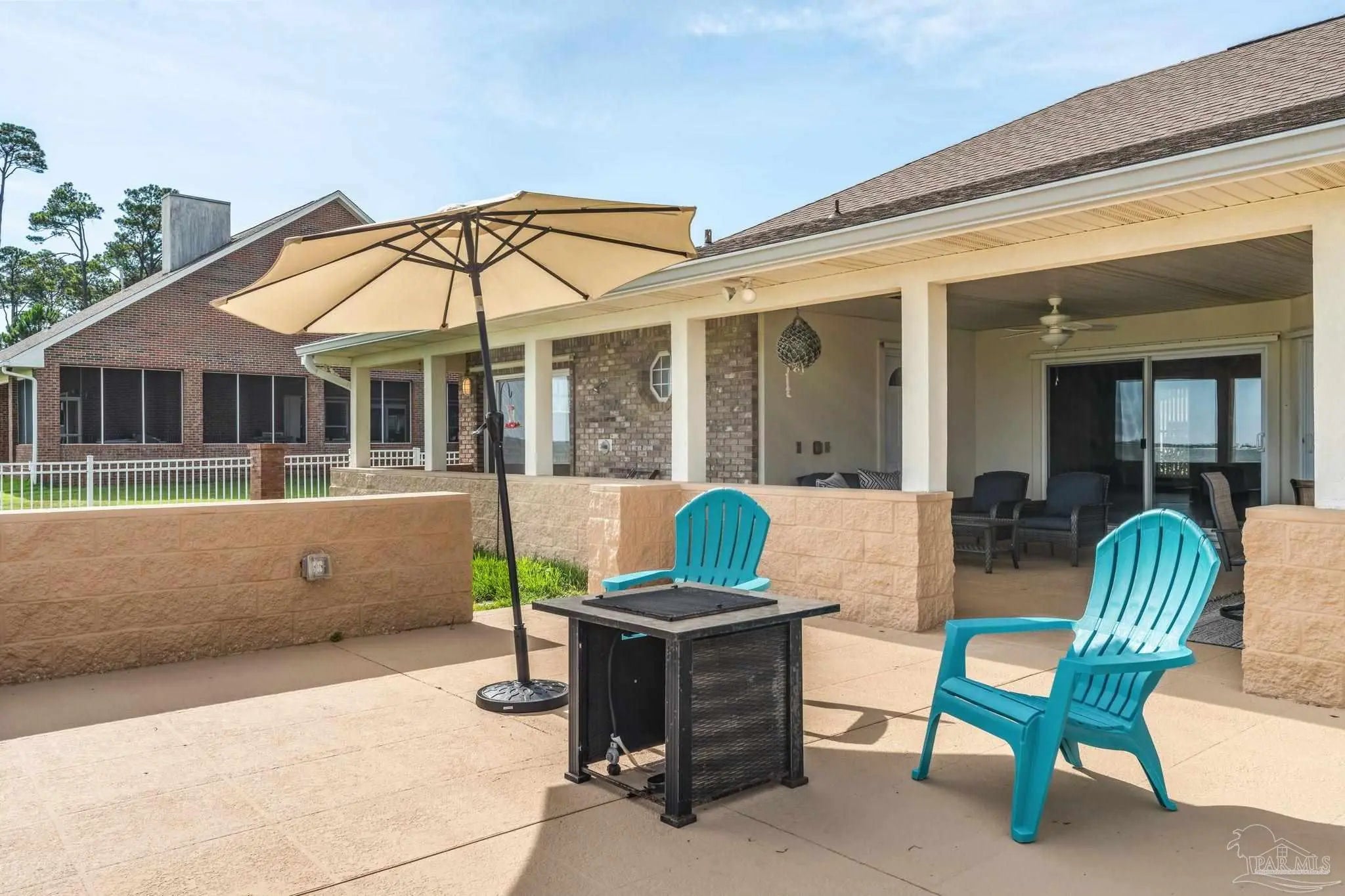 Beautiful waterfront home with 97 ft shoreline on a half-acre lot. Custom-built by the owner with a new private deep-water dock on navigable water, ideal for multiple large vessels. Many other unique features, including a guest suite with a handicap-accessible kitchenette, a safe room, and an 800 sqft patio ready to be enclosed. Tucked away on a quiet cul-de-sac, this 2,220 sq ft home captures both sunrise and sunset views. Inside, you’ll find 4 bedrooms and 2.5 bathrooms, an open floor plan with waterfront views throughout. The primary bedroom features double-door access to the sun deck/patio, high ceilings, new LVP flooring and a luxurious marble soaking tub. The home also includes a vent-free natural gas fireplace, recessed lighting, an outdoor hot/cold shower, a fenced in backyard, and a safe room for added peace of mind.The home is thoughtfully equipped with energy-efficient, cost-saving upgrades throughout. A high-efficiency natural gas HVAC system (2021) and a 50-gallon gas water heater help keep utilities low. The oversized 2-car garage features an 18-foot hurricane-rated door (vs. the standard 16 ft) and additional driveway parking for up to 6 vehicles. A 6,500-watt portable gas generator with a 30-ft cable is wired directly into the main electrical panel for easy backup power. Additional features include hurricane shutters on all windows, grand mahogany double entry doors, high ceilings with crown molding, and a fully hard-wired security system covering all doors, windows, smoke/fire alarms, and police/emergency panic buttons. Built with rock-solid construction, this property has withstood every major hurricane since 1995. Located in the Santa Rosa County school district, with convenient access to Hurlburt Field, Eglin Air Force Base, Navarre Beach, and the Gulf. The neighborhood features a private beach with a gazebo with a boardwalk nature trail.