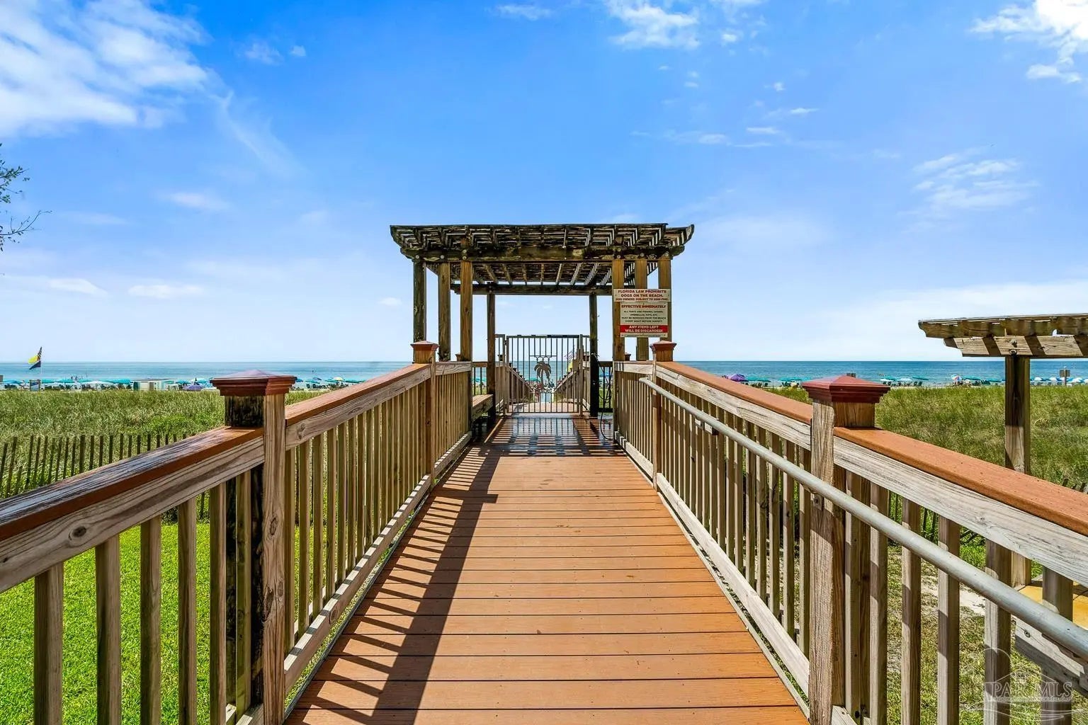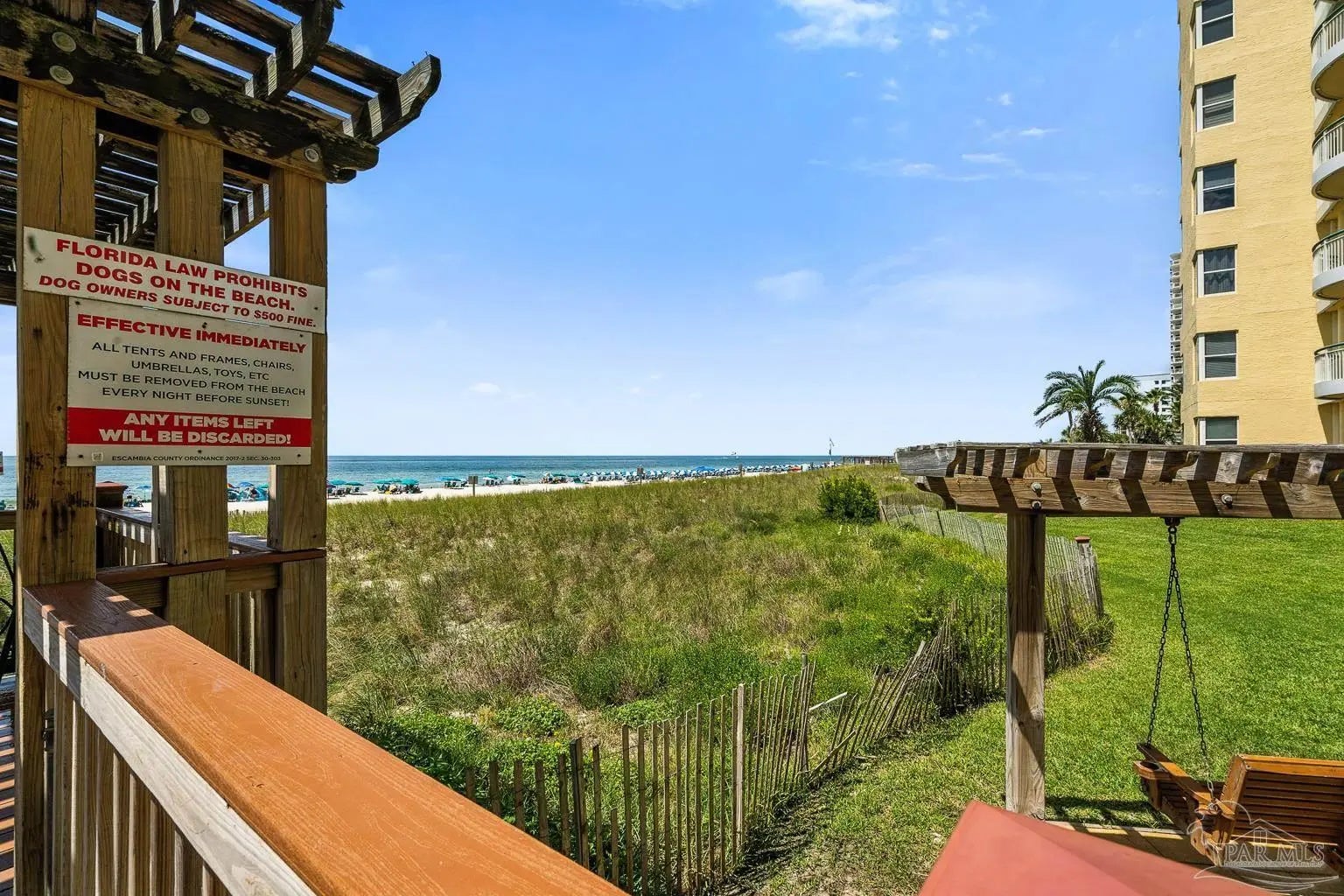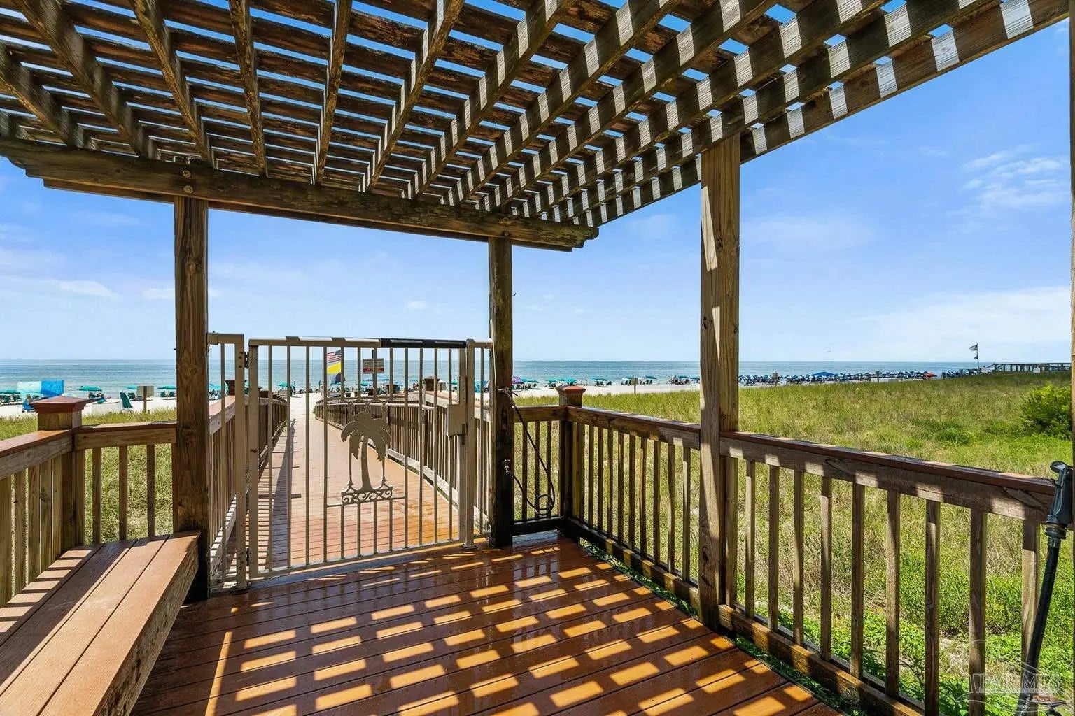 Introducing this excellent 2-bedroom condominium at the highly sought-after Beach Colony Resort, complete with a rare and coveted DEEDED GARAGE PARKING SPOT! Sold fully furnished, this turnkey residence offers an exceptional blend of style and comfort, enhanced by stunning beach views that create an idyllic coastal retreat. As you step inside, you'll immediately appreciate the tile flooring throughout the entry and main living areas, complemented by granite countertops in the kitchen and rich wood cabinetry. The space is designed for both form and function, featuring a raised breakfast bar, a convenient separate pantry, under-cabinet lighting, and premium stainless refrigerator and oven. Thoughtfully curated décor elements, such as beautifully gnarled driftwood-based tables and striking original artwork, elevate the living experience. The expansive balcony, accessible accessible from the Living Room and Primary BR, is equipped with electric hurricane shutters, offering additional protection and privacy. Recent updates include a new water heater installed in April 2024 and an upgraded HVAC system in November 2024. Notably, this unit has not been part of a rental program, though its potential as a lucrative investment for short-term rentals is certainly evident. Residents of Beach Colony enjoy a wealth of first-class amenities, including three pools (one enclosed), a hot tub, clay tennis courts, and two private boardwalks leading directly to the beach. Beach chair and umbrella service are available for added convenience. The community is secured with gated entry, coded elevators, and on-site management for peace of mind. Perfectly situated just a short stroll from the serene National Seashore at Johnson Beach—complete with walking trails, picnic areas, and public facilities—this property also boasts proximity to the newly paved Perdido Key multi-use path, which stretches across the island to the Florida-Alabama state.