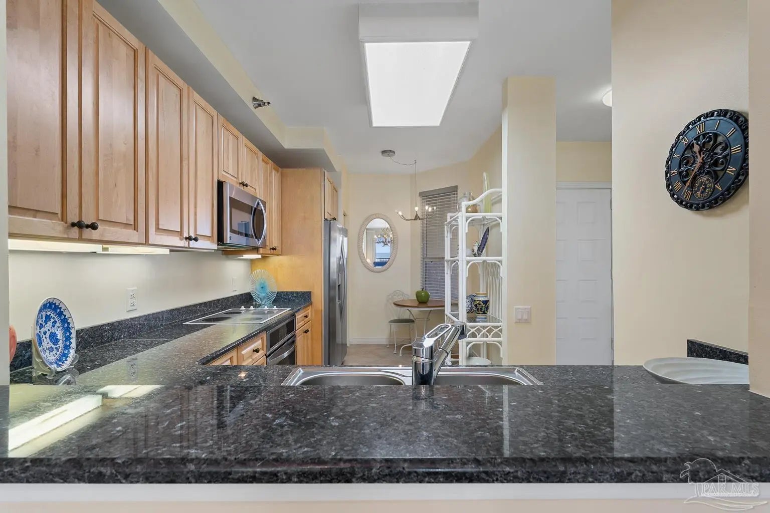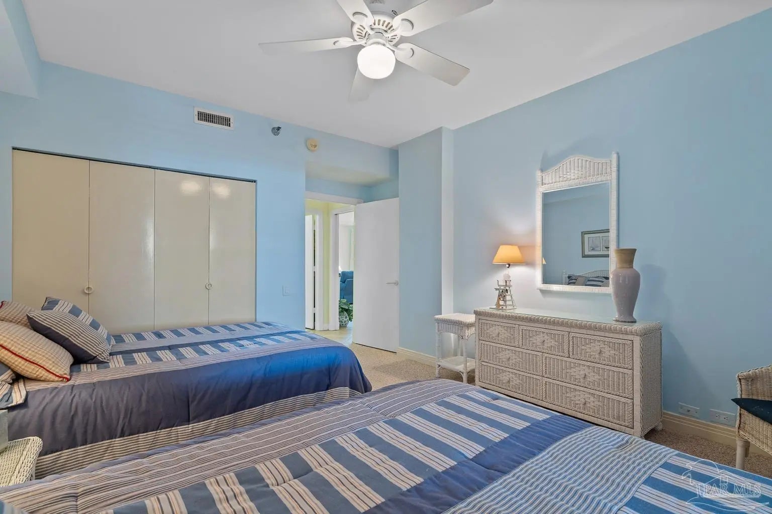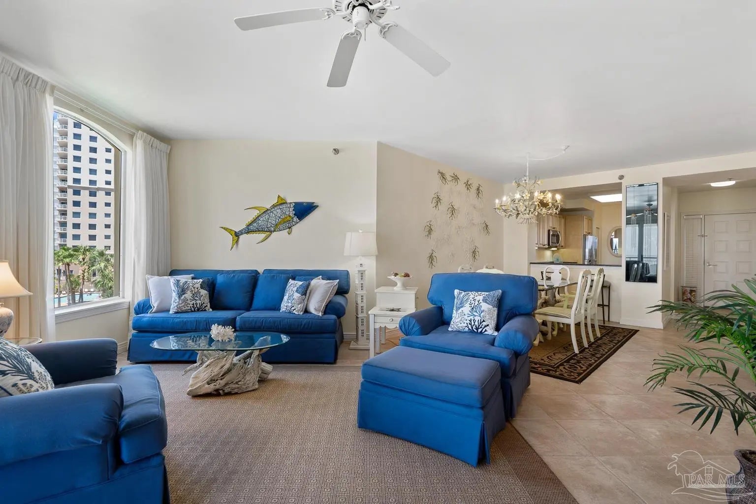 Introducing this excellent 2-bedroom condominium at the highly sought-after Beach Colony Resort, complete with a rare and coveted DEEDED GARAGE PARKING SPOT! Sold fully furnished, this turnkey residence offers an exceptional blend of style and comfort, enhanced by stunning beach views that create an idyllic coastal retreat. As you step inside, you'll immediately appreciate the tile flooring throughout the entry and main living areas, complemented by granite countertops in the kitchen and rich wood cabinetry. The space is designed for both form and function, featuring a raised breakfast bar, a convenient separate pantry, under-cabinet lighting, and premium stainless refrigerator and oven. Thoughtfully curated décor elements, such as beautifully gnarled driftwood-based tables and striking original artwork, elevate the living experience. The expansive balcony, accessible accessible from the Living Room and Primary BR, is equipped with electric hurricane shutters, offering additional protection and privacy. Recent updates include a new water heater installed in April 2024 and an upgraded HVAC system in November 2024. Notably, this unit has not been part of a rental program, though its potential as a lucrative investment for short-term rentals is certainly evident. Residents of Beach Colony enjoy a wealth of first-class amenities, including three pools (one enclosed), a hot tub, clay tennis courts, and two private boardwalks leading directly to the beach. Beach chair and umbrella service are available for added convenience. The community is secured with gated entry, coded elevators, and on-site management for peace of mind. Perfectly situated just a short stroll from the serene National Seashore at Johnson Beach—complete with walking trails, picnic areas, and public facilities—this property also boasts proximity to the newly paved Perdido Key multi-use path, which stretches across the island to the Florida-Alabama state.