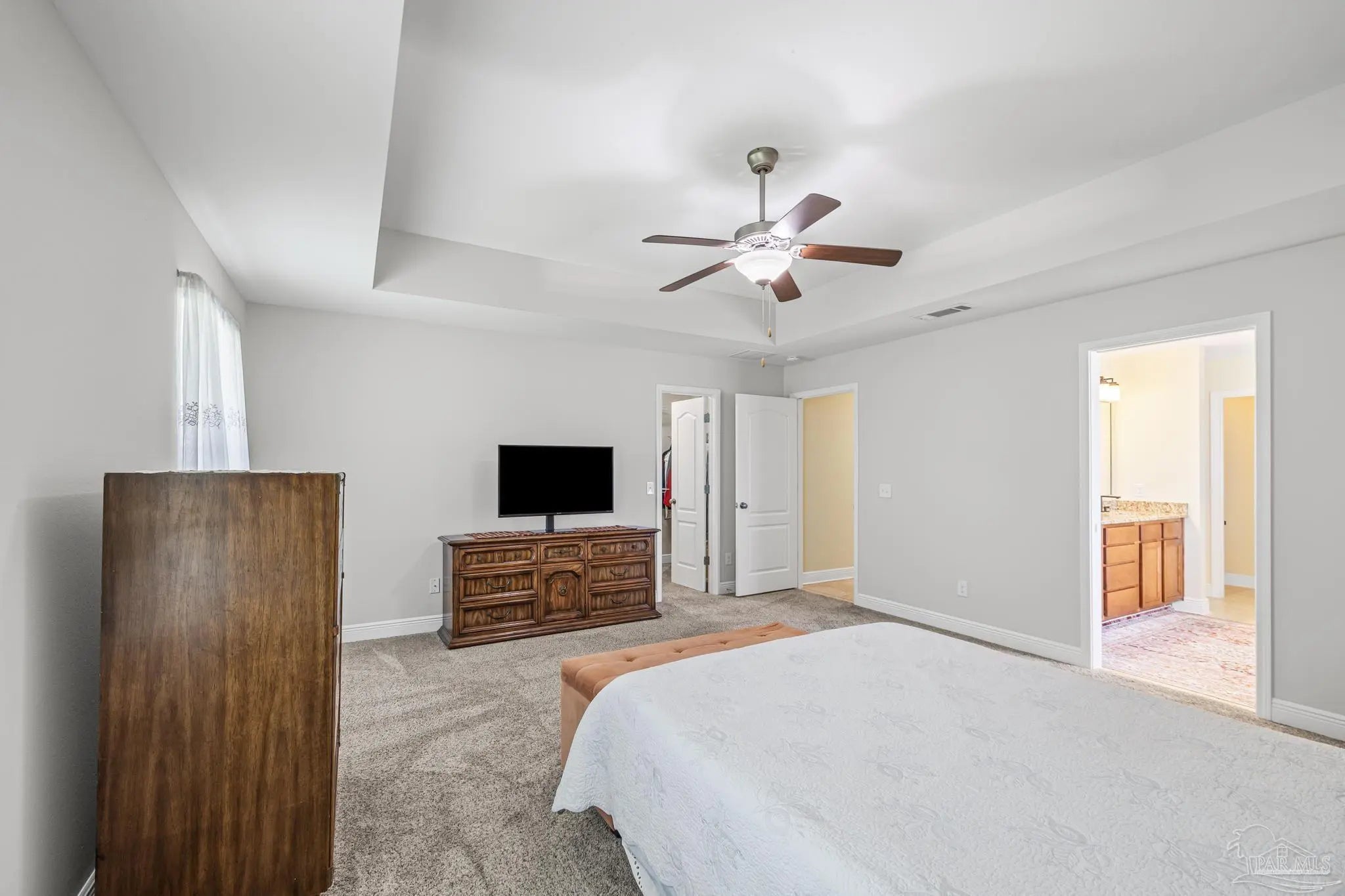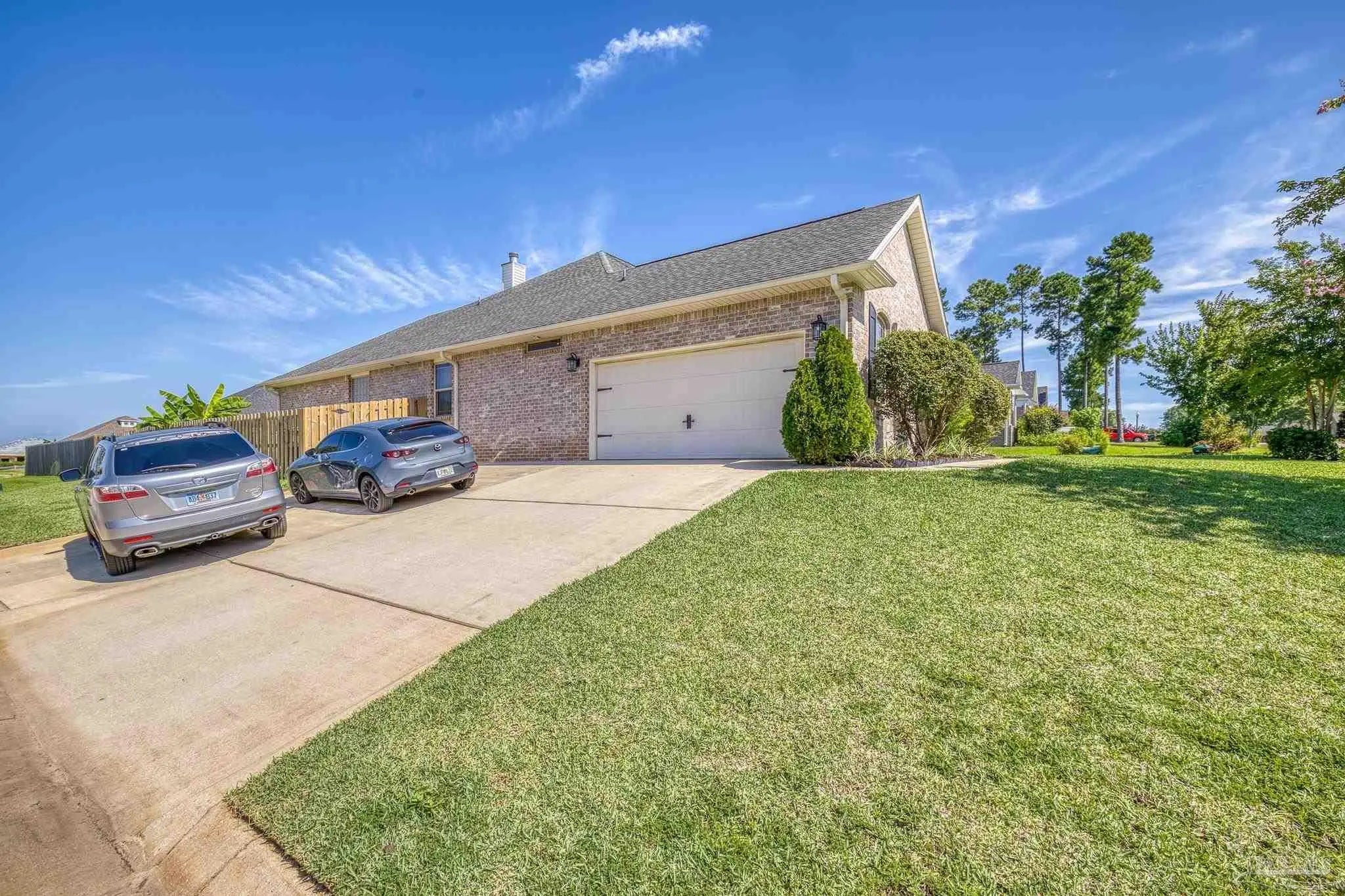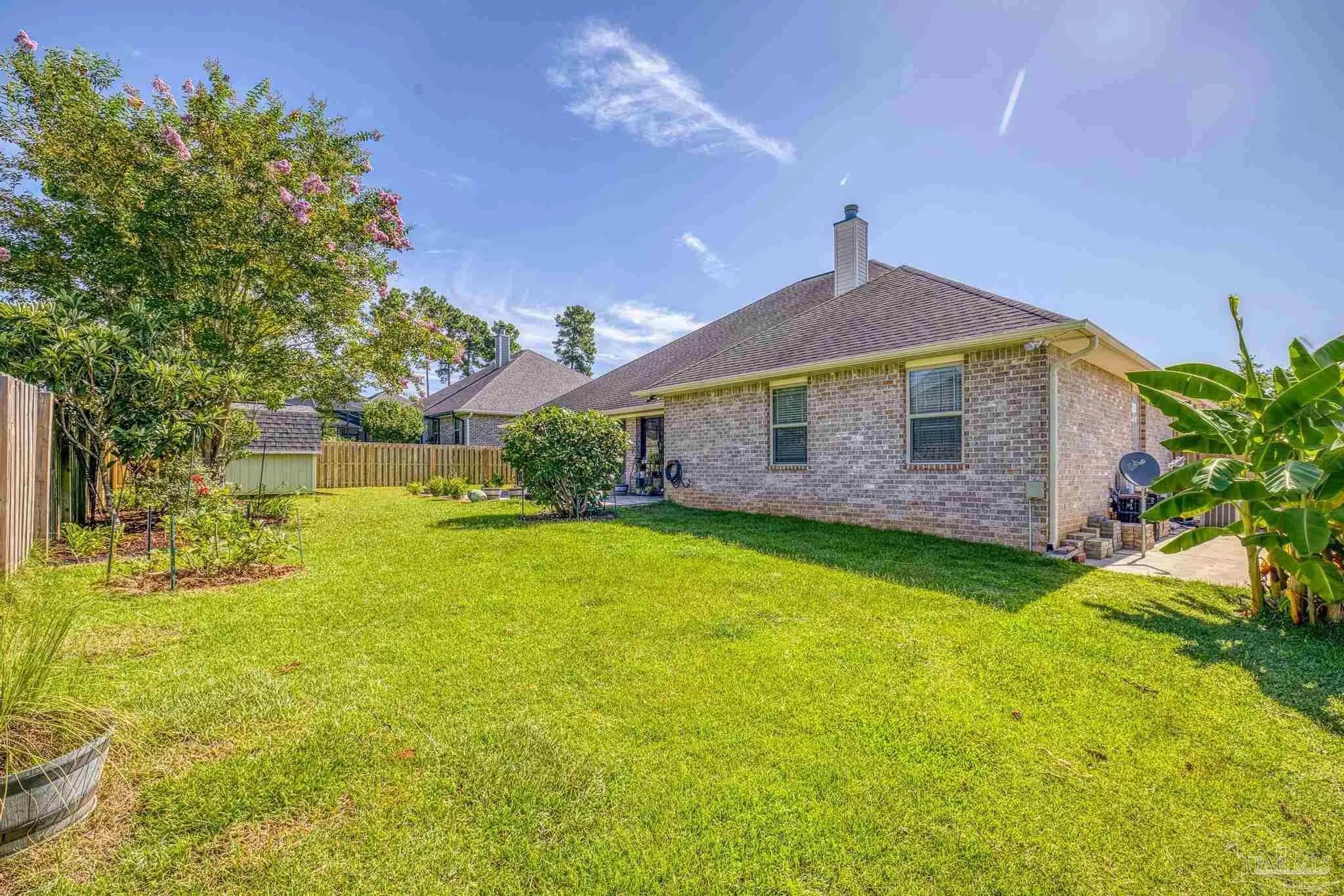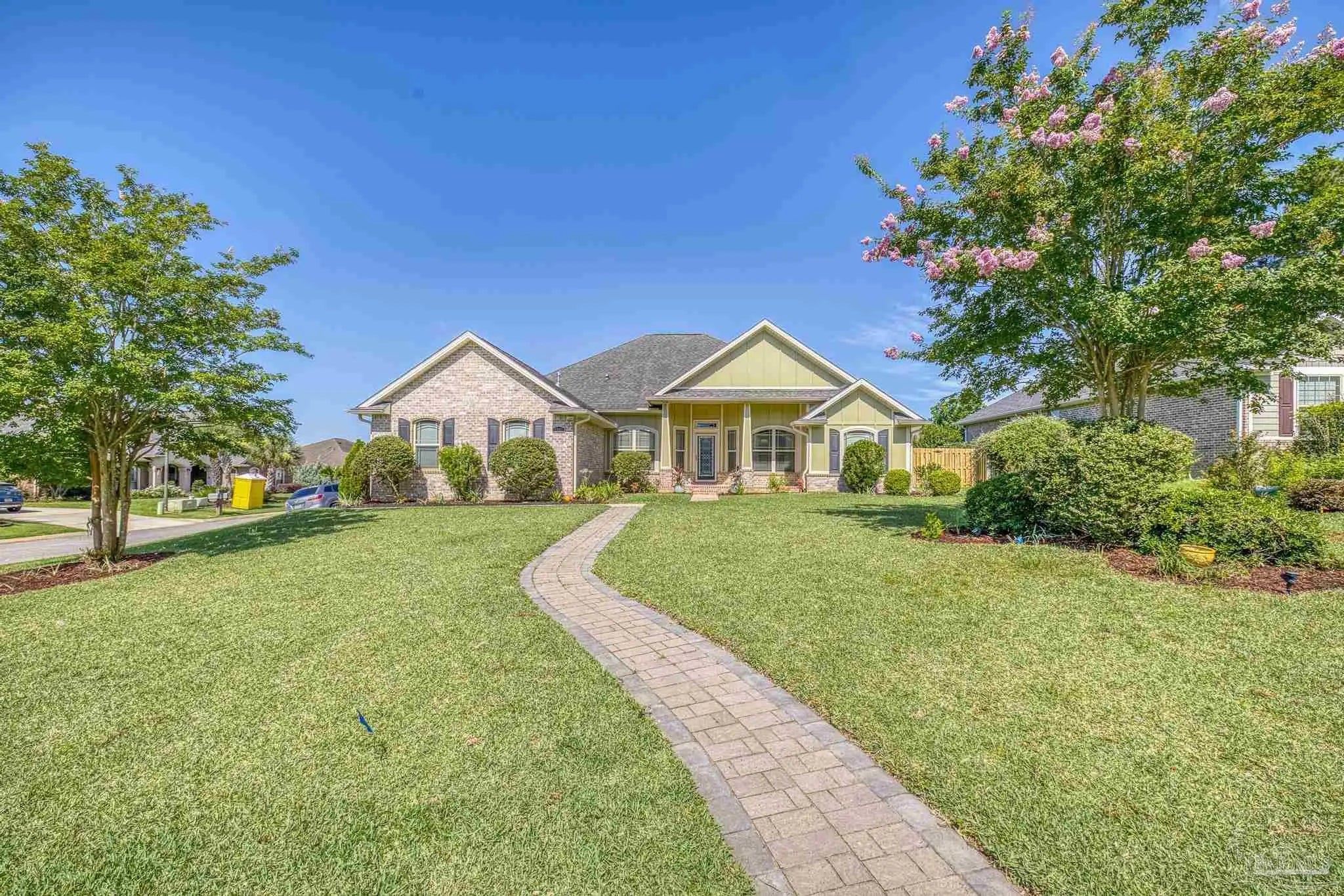 PRICE REDUCTION!! STUNNING MULTIGENERATIONAL HOME IN GATED PACE COMMUNITY! Welcome to this beautifully maintained 4-bedroom, 3-bath home located on a spacious corner lot in one of Pace's most desirable gated communities. With 2,548 sq ft of thoughtfully designed living space, this home offers the perfect blend of comfort, style, and functionality — ideal for multigenerational living! Completely repainted in 8/2025, step inside to find high ceilings, elegant arched doorways, and abundant natural light throughout. At the center of the home is the open living area with high ceilings and a gas log fireplace to create a comfy ambience for the entire group. The open floor plan features two luxurious primary suites, each with upgraded tile walk-in showers, double vanities, and custom cabinetry — perfect for a mother-in-law suite or a private retreat for a college-aged family member. Imagine the peace of mind this creates for the entire family. The heart of the home is the chef’s kitchen, showcasing granite countertops, custom cabinets, and a layout designed for both entertaining and everyday living. A separate dining room and dedicated office space provide flexibility for working and gathering. Enjoy year-round relaxation on the large screened-in back porch with vinyl windows, overlooking a lush, professionally landscaped backyard with mature trees, a paver patio, privacy fence, and a storage shed. It's the perfect space for your morning coffee or your evening beverages. French drains have been added to ensure optimal drainage. The side-entry garage includes additional parking if your have multiple drivers or visitors. The HVAC system features a UV light upgrade to improve air quality and efficiency for extra peace of mind. Zoned for top-rated Wallace Lake K-8 and Pace High School, this exceptional home is a rare find! Schedule your showing today!