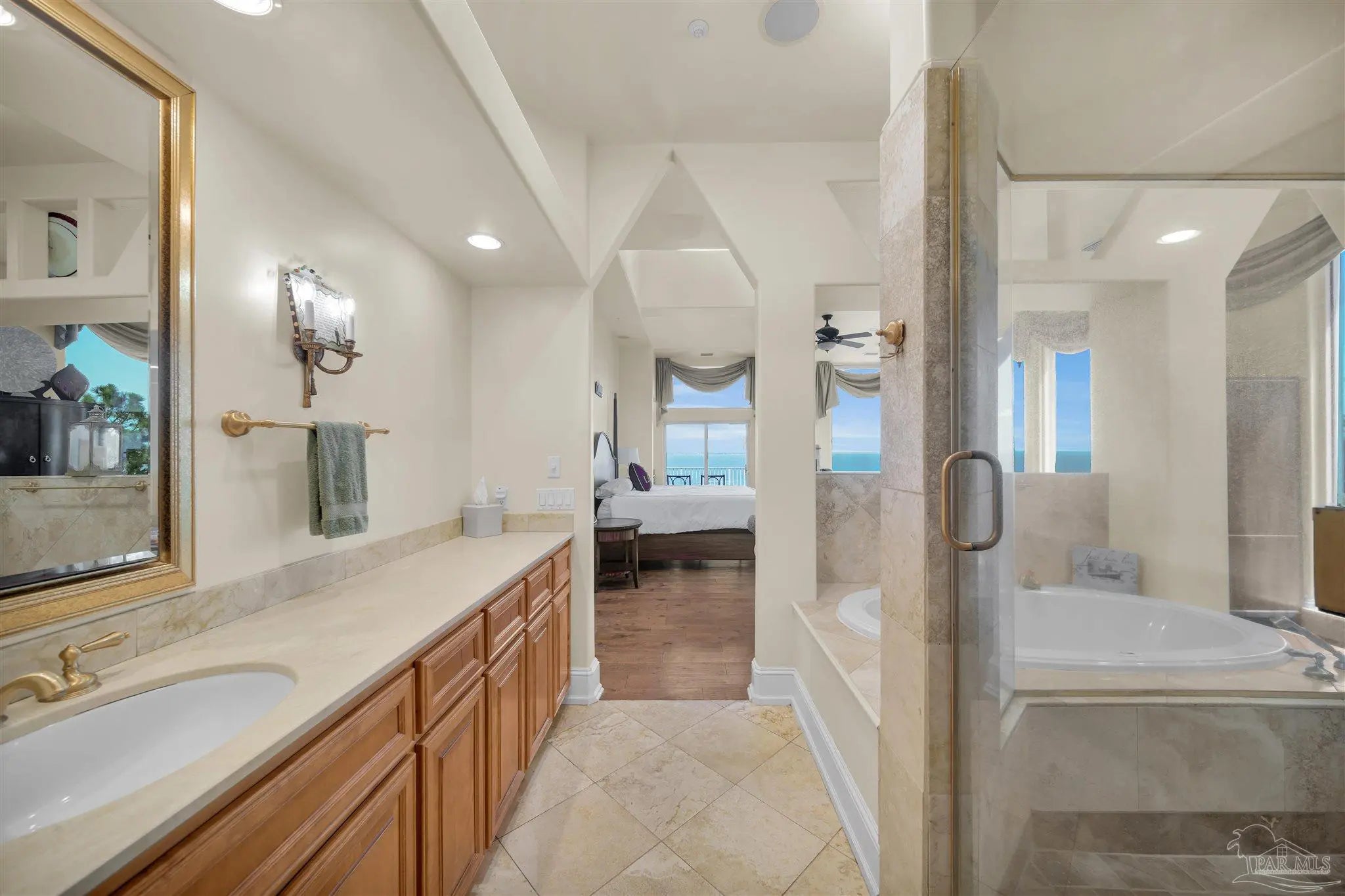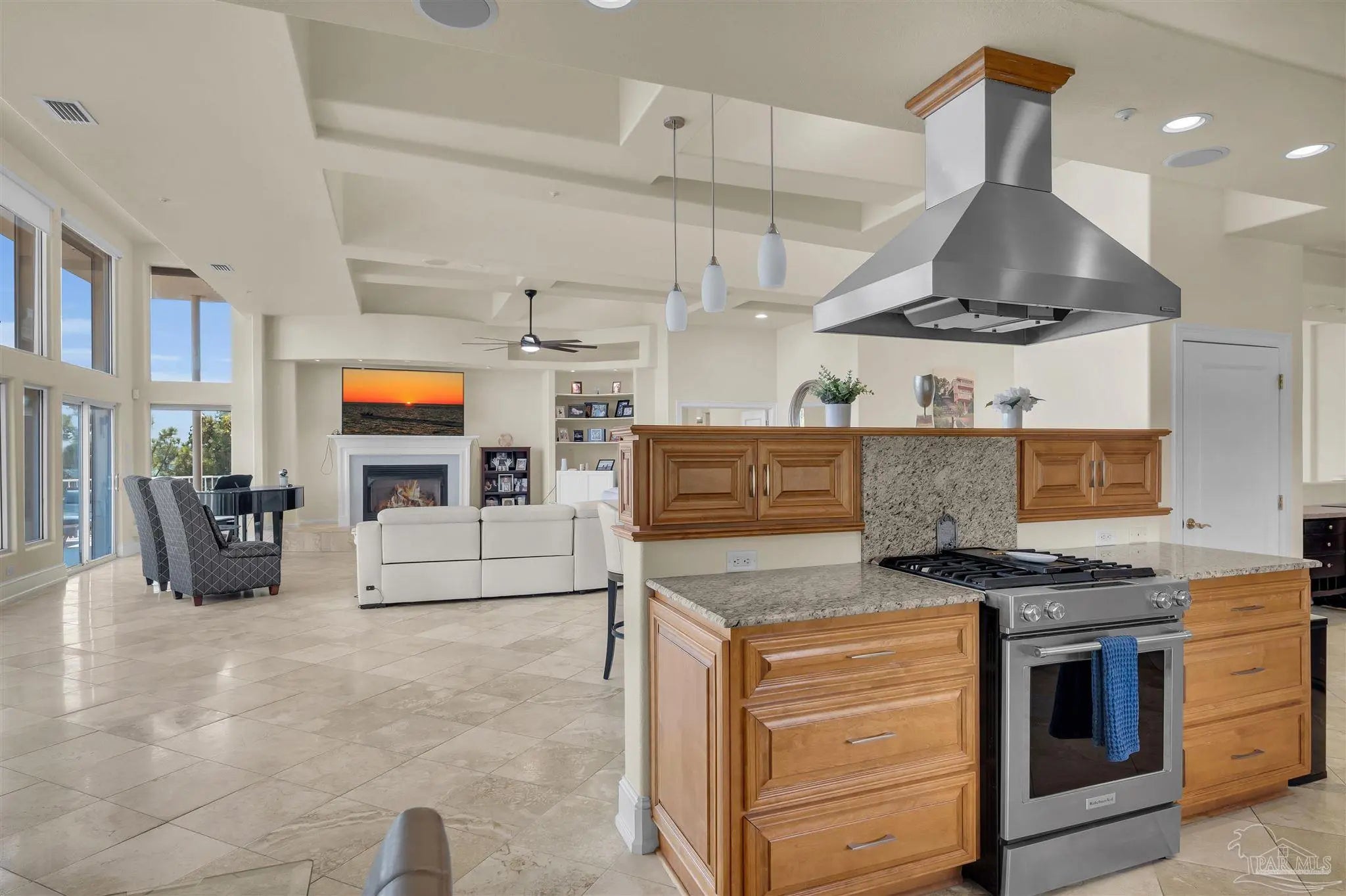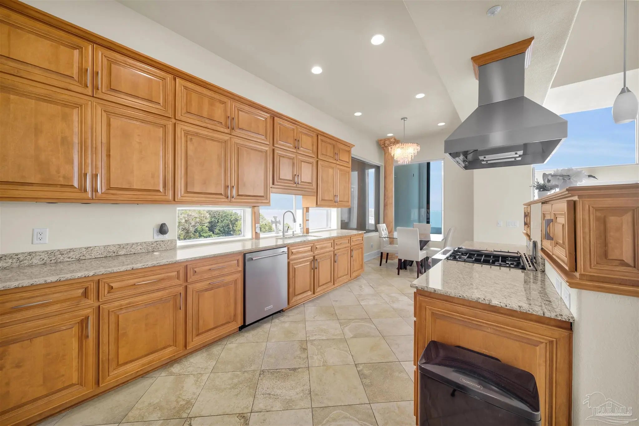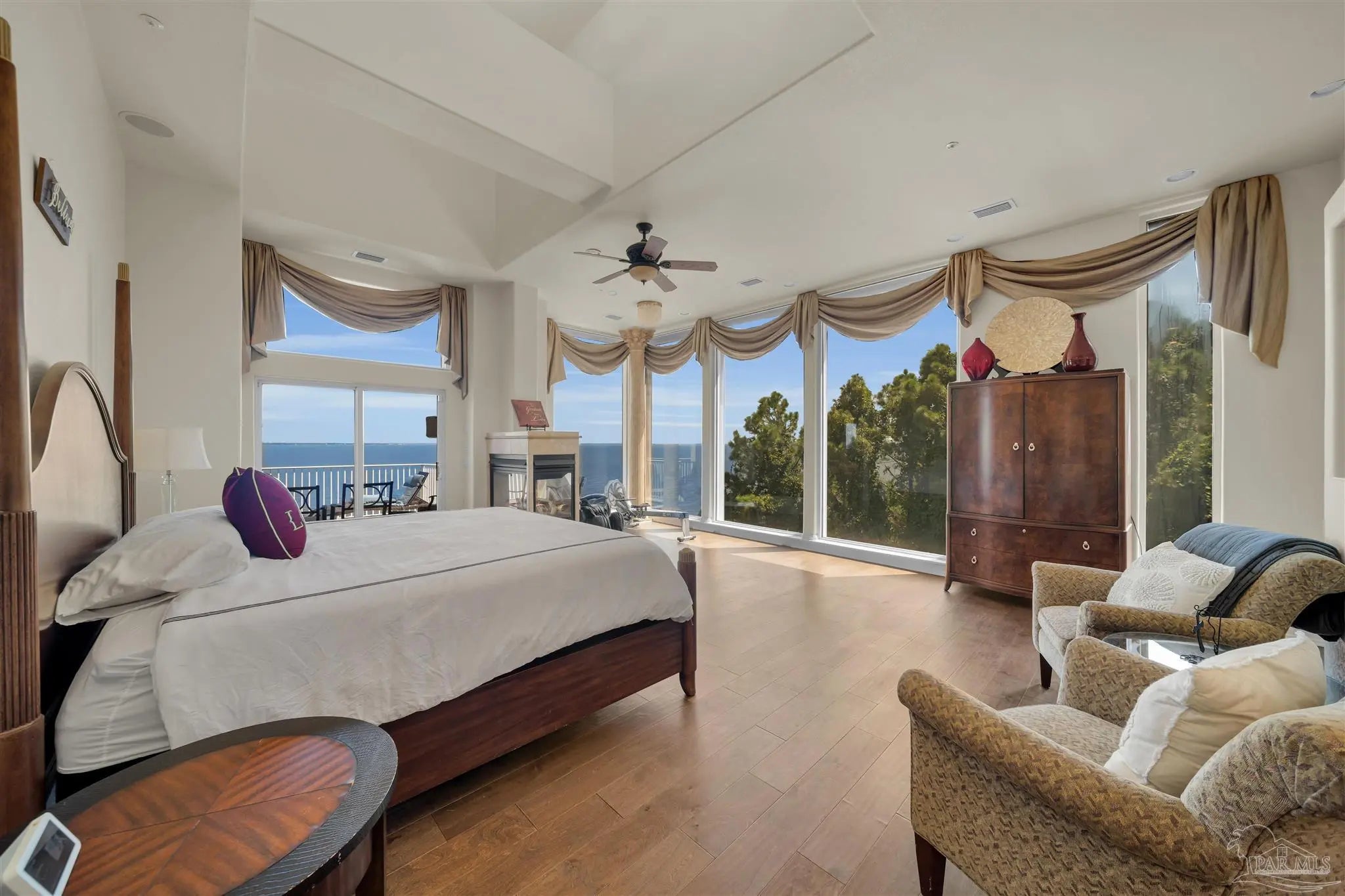 The "ONE & ONLY California Cliff Home" There is no house like this one in Pensacola or all of Northwest Florida. It is 5 minutes to the airport and 3 to Interstate 10, making easy access to the US or Southeast. It is the finest luxury located at the literal highest Florida coastal point; it has the best Pensacola Bay views. From Scenic Hwy, all that may be visible is the main floor. From the bay, one can see additional floors and the full 75 foot height of the building from foundation to roof. Architecturally, it has modern beauty and strength. It was constructed with 9 actual 90' Interstate 10 bridge beams anchored on one end at the level of Scenic Hwy and supported by massive columns on the bay side. With poured concrete outside walls and inside wall studs of steel, this home may be the most solid dwelling within hundreds of miles. An added bonus to the thick concrete walls and top of the line windows is this home is incredibly quiet and peaceful from outside noise. Metal hurricane shutters which can be lowered with the push of a button add to the security. The beauty of this home is evident both inside and out. Stepping onto the 14" polished travertine floors, one is impressed with an overwhelming sense of serenity. The open floor plan makes this house inviting no matter what room you are in... nearly every room in the house has immaculate views. The living room has ceiling to floor windows for penthouse bay views and windows built into the cathedral ceiling for extra lighting. It is decorated with a large tiled gas fireplace, recessed lighting, and a built in entertainment area. The kitchen is equipped with fade-on recessed lighting, all new kitchen-aid appliances, 2 Kohler deep sinks, an ice maker, recycling compactor, brushed steel range hood, custom granite bi-level counter tops and cabinetry. The master bedroom is enclosed by ceiling to floor glass on 2 sides offering unsurpassed sunrises. A commercial grade glass elevator runs from top to bottom.SEE BELOW: