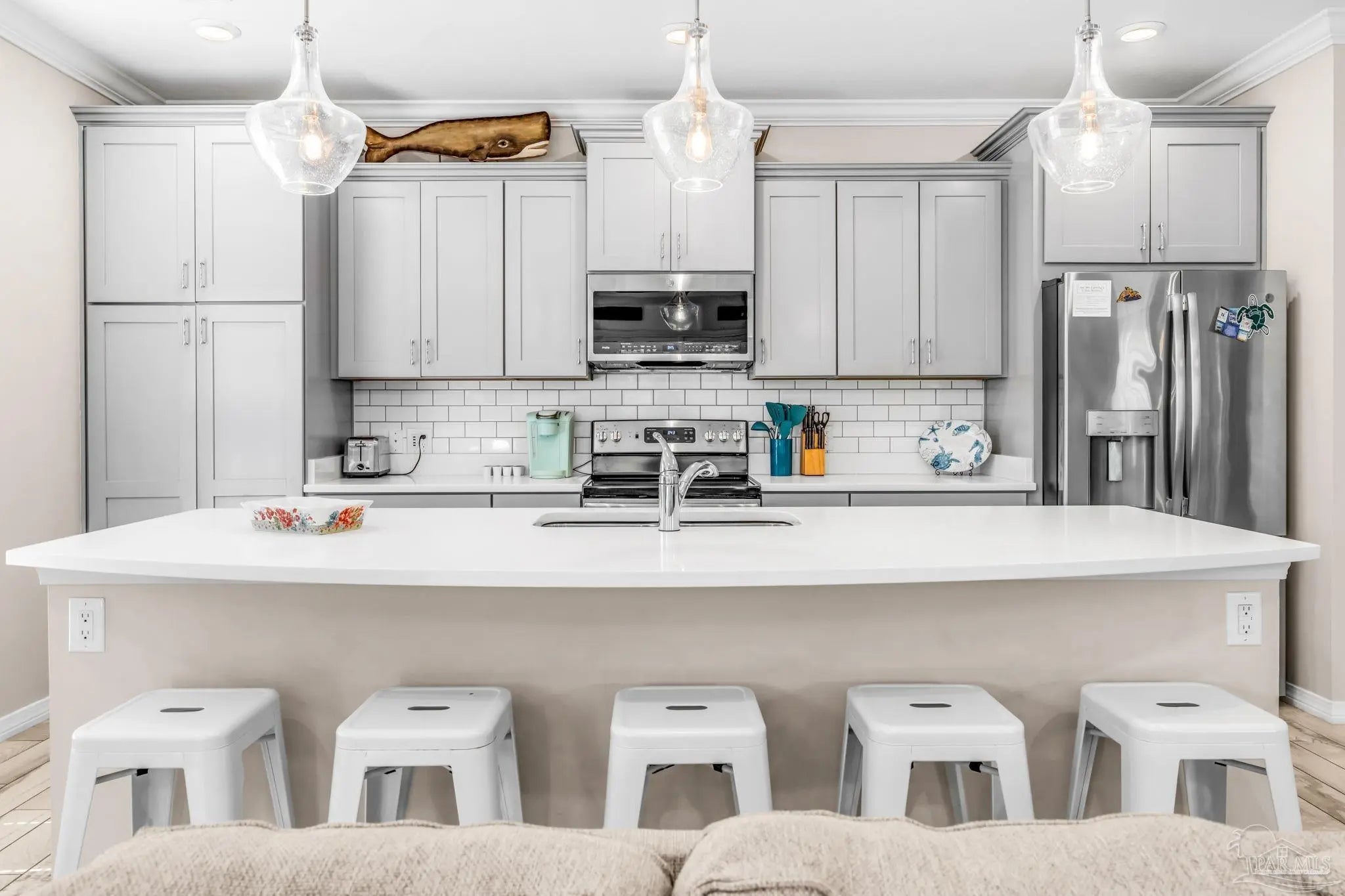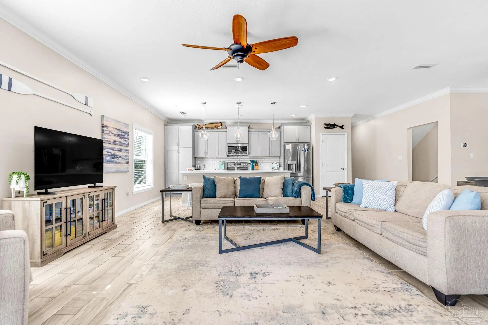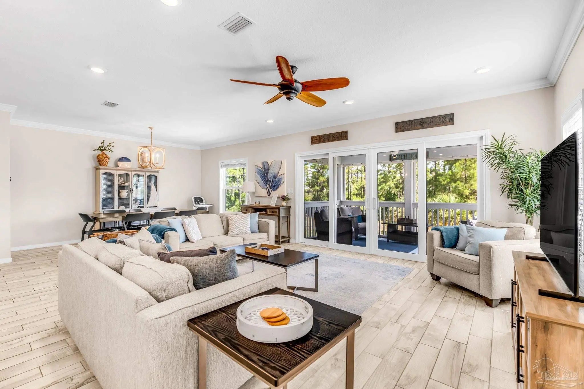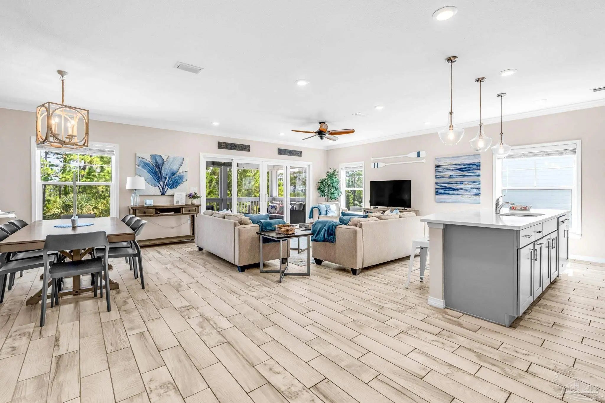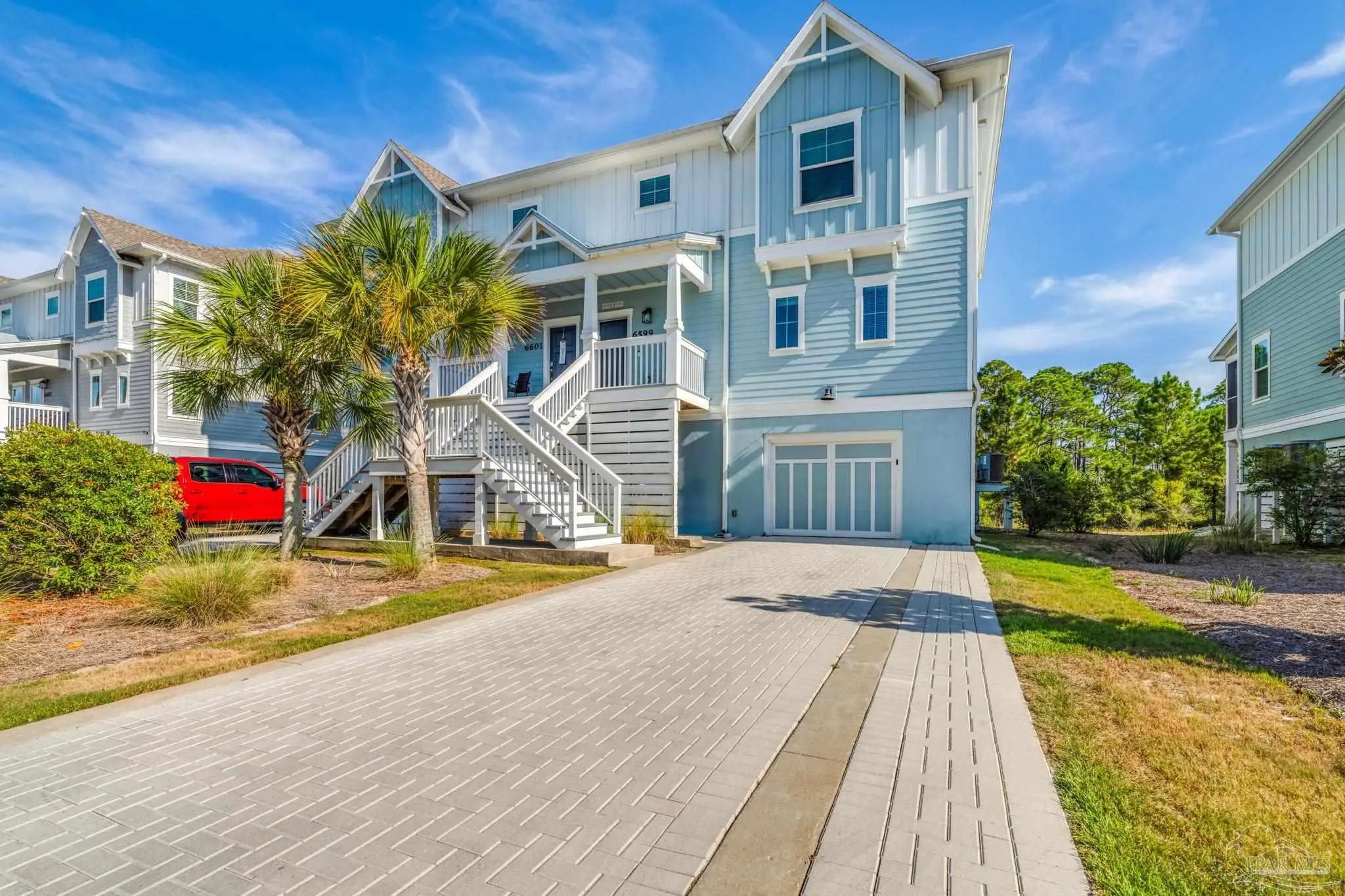 Live the laid-back, sun-soaked lifestyle of Perdido Key in this furnished 4BR/4BA townhome in Lost Key Golf & Beach Club. Whether you're looking for a full-time residence, second home, or turnkey rental investment, this coastal retreat is ready for you—just bring your YOU! With an acceptable offer, A GOLF CART IS INCLUDED (2022) so you can cruise the resort in style. At 2,128sqft of thoughtfully designed living space, this coastal residence accommodates up to 11 guests with ease. The open-concept second floor is perfect for entertaining the whole crew, featuring a modern kitchen, spacious living area with Smart TV, board games, & screened patio that invites you to unwind after a day on the beach. One bedroom with a private bath is also located on this level. Upstairs, the primary suite features a large en-suite bath & closet, while two additional bedrooms each have their own private baths. A full-size washer & dryer are included for added convenience. The patio on the ground level, with rare extended decking built out sets the vibe of this townhome, offering a peaceful spot to relax in modern swinging hammock chairs, dine al fresco or fire up the grill. Also included is an EXTRA LARGE Kamado Joe grill & various accessories for the avid GRILL MASTER! The garage doubles as a fun zone, screened with a ping pong table included, and the paver-lined driveway (NEWLY ADDED THIS YEAR) provides extra parking along with the 2-car garage. What truly makes this beach abode a standout is the lifestyle it offers. It's a resort experience! Residents enjoy exclusive access to a private Beach Club with beachfront pool, restaurant & seasonal shuttle. Additional amenities include a zero-entry Olympic-size pool with fountains, hot tub, sauna, 24/7 fitness center & miles of walking and biking trails. Golfers will appreciate the 18-hole Arnold Palmer-designed course right on site. Come experience the coastal charm, luxury perks & unmatched convenience that make this property a rare gem!