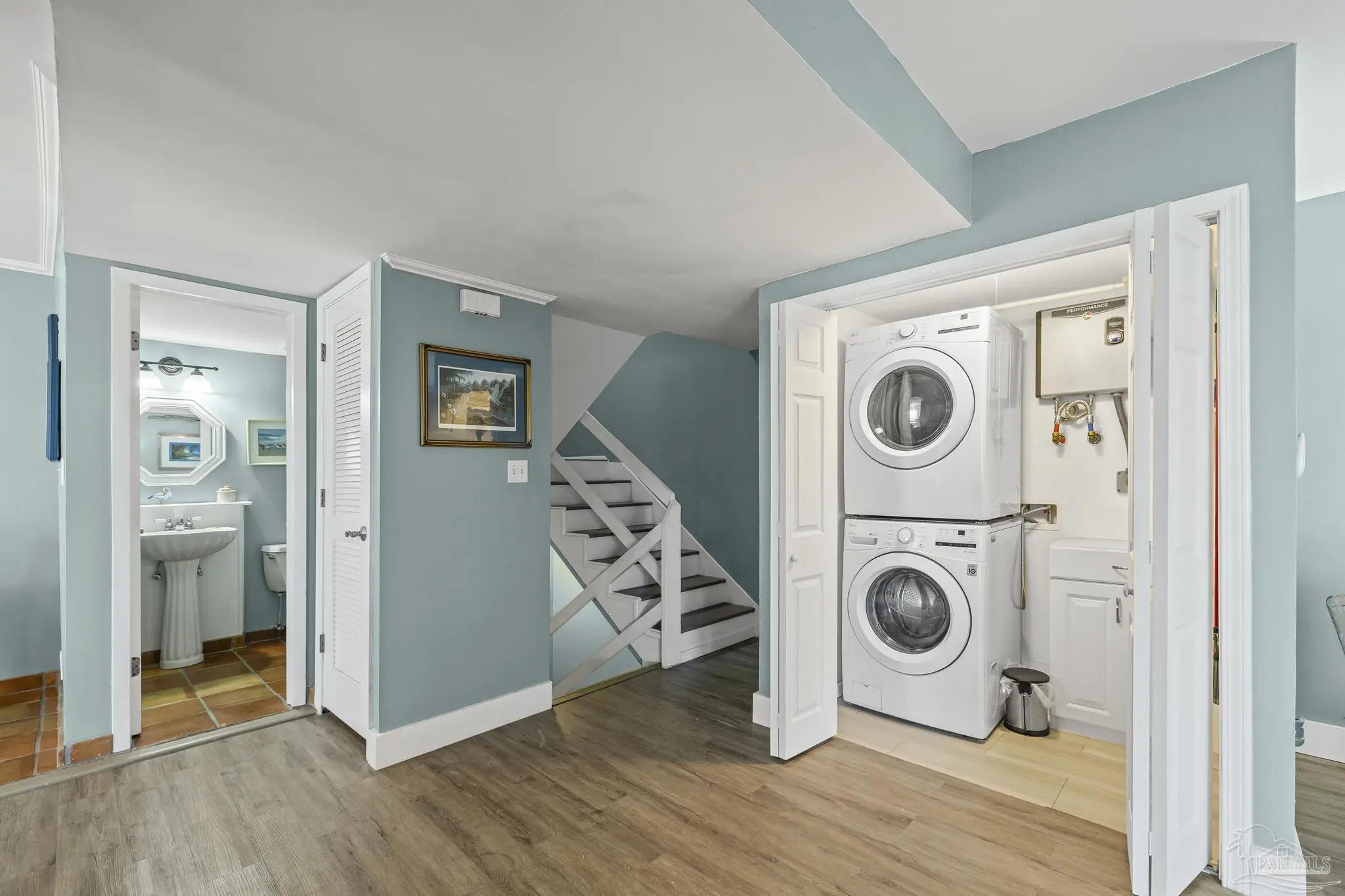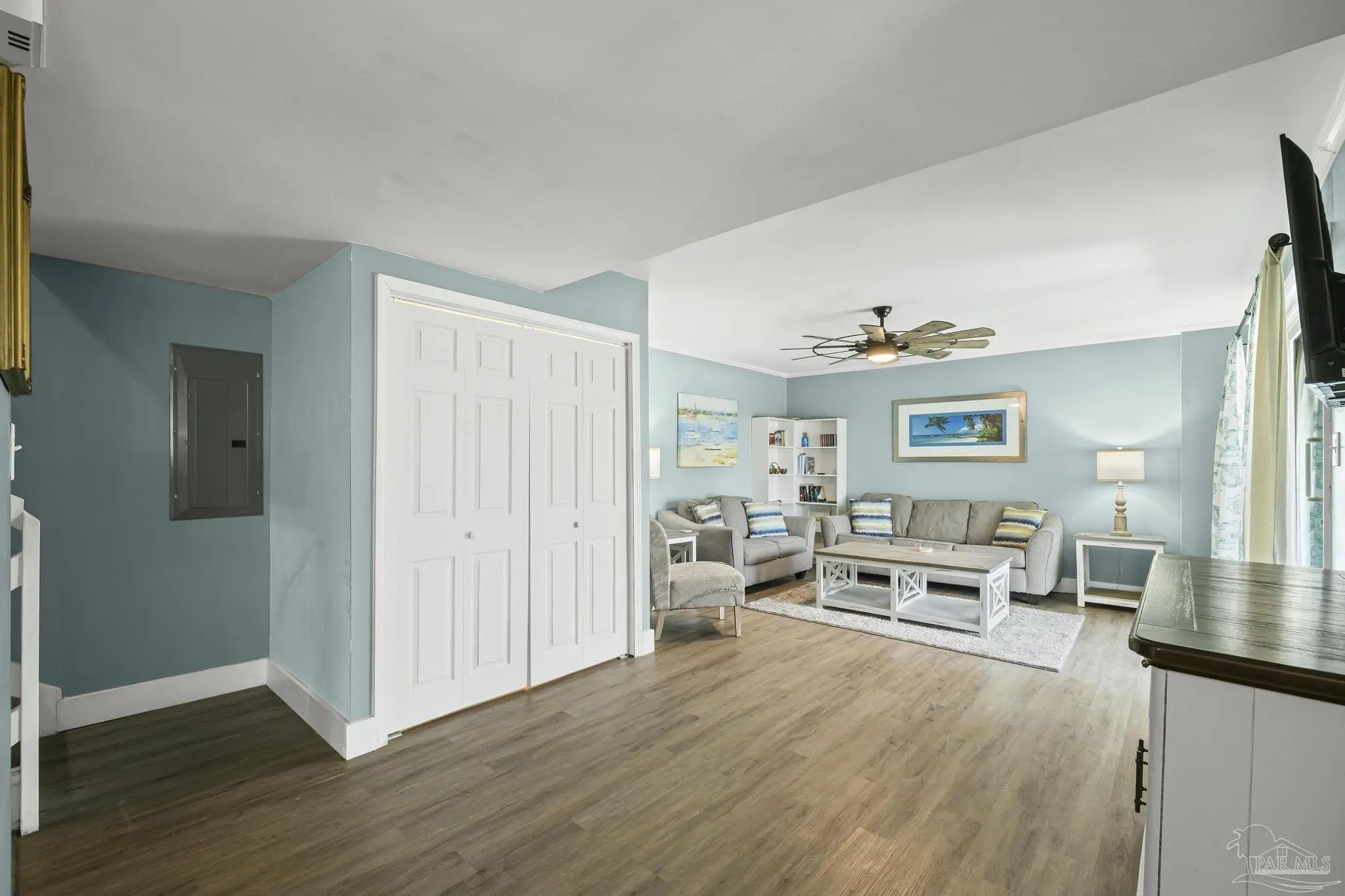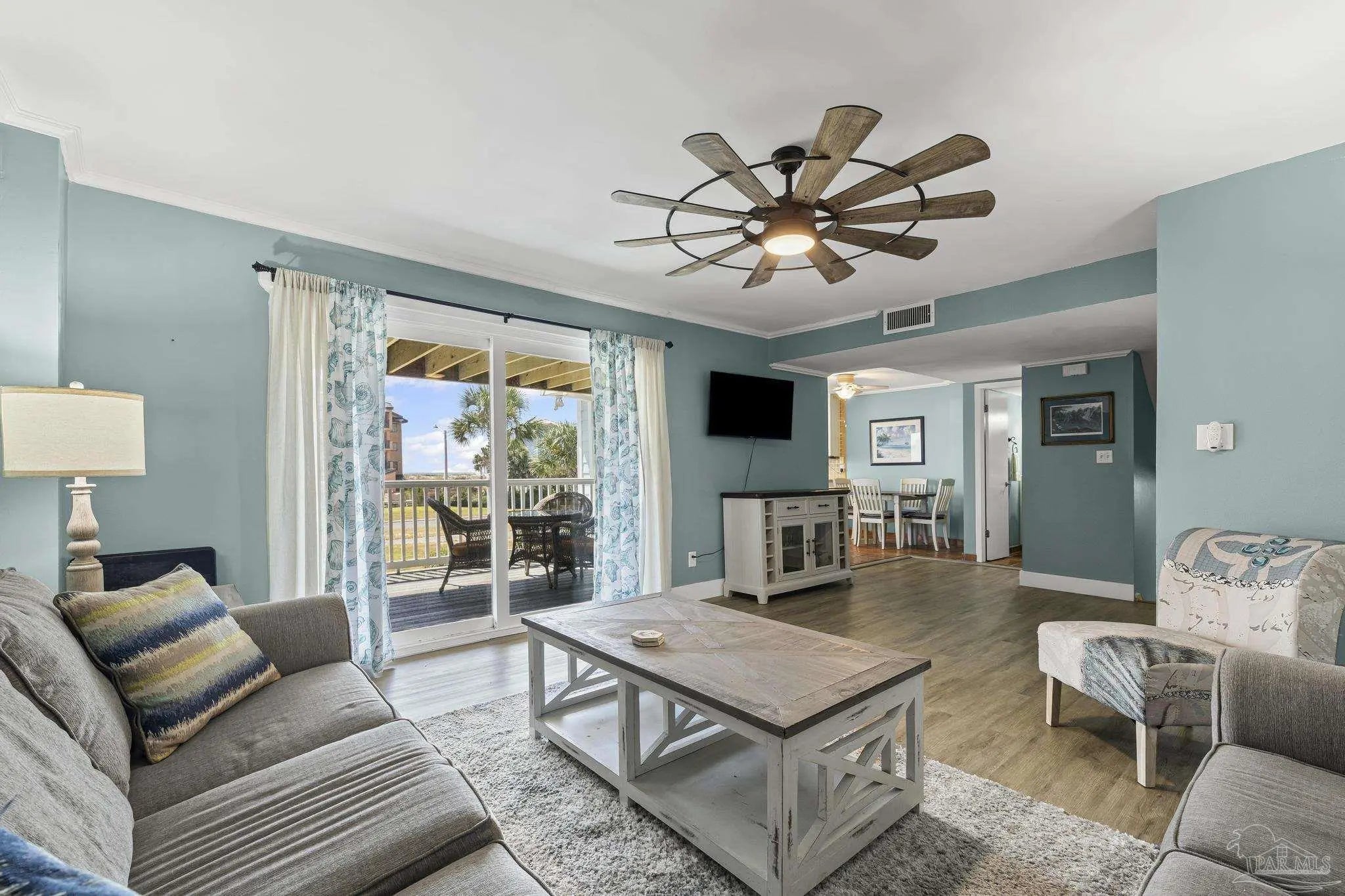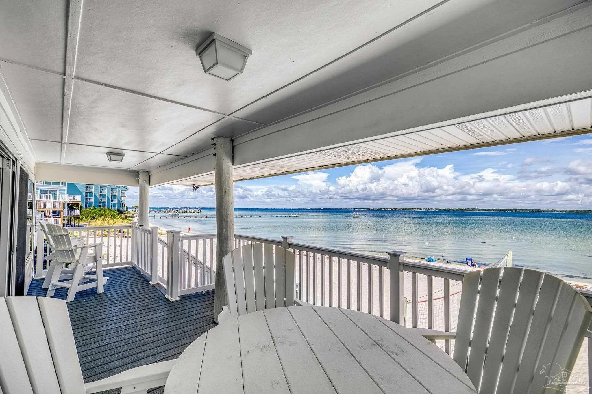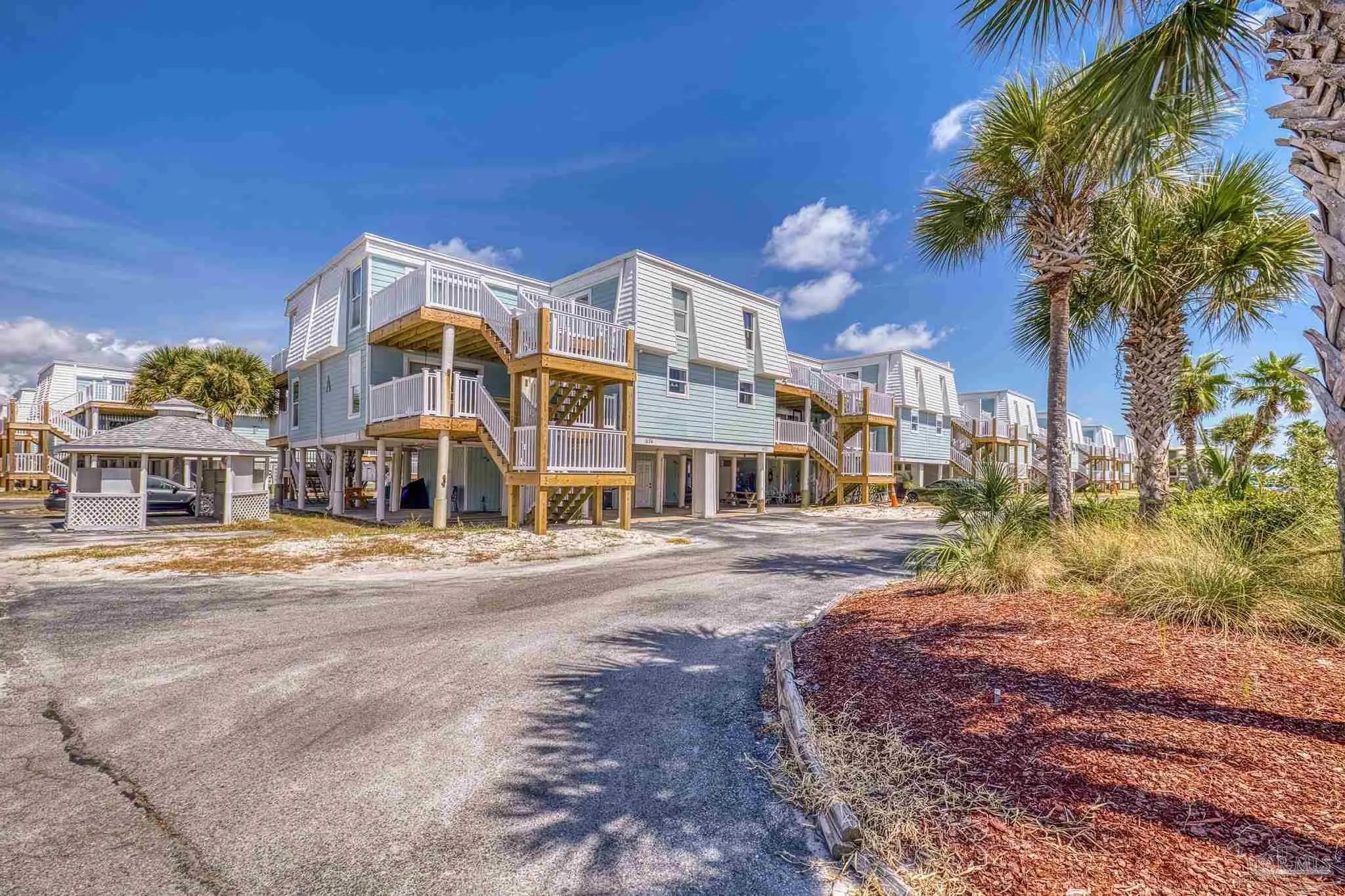 Turnkey Beachside Living at Boardwalk Condominiums. This beautiful 2-bedroom, 2.5-bath condo at Boardwalk Condominiums is move-in ready and ideal as a primary residence, vacation retreat, or investment property. Just steps from the sugar-white sands of the Gulf of Mexico, this unit boasts two spacious decks offering stunning Gulf views. Recent exterior renovations are fully complete, including all-new composite decks, PVC railings, updated sliding door headers, and durable Hardie plank siding—adding both value and peace of mind, with no cost to the owner. Inside, the main level features a bright and open living area, fully equipped kitchen with pantry, half bath, and a utility closet housing a new tankless water heater and washer/dryer. Upstairs, you'll find two bedrooms each with en-suite bathrooms and private access to the upper deck. The primary suite includes a charming beadboard ceiling and a queen-size bed, while the second bedroom offers a twin-over-full bunk setup—perfect for guests or family. The Boardwalk community offers additional amenities including a pool with changing rooms, clubhouse, private fishing dock, and a large sound-side beach on Santa Rosa Sound. Whether you're watching the sunrise over the Gulf or relaxing by the Sound, this condo delivers the best of Pensacola Beach living.