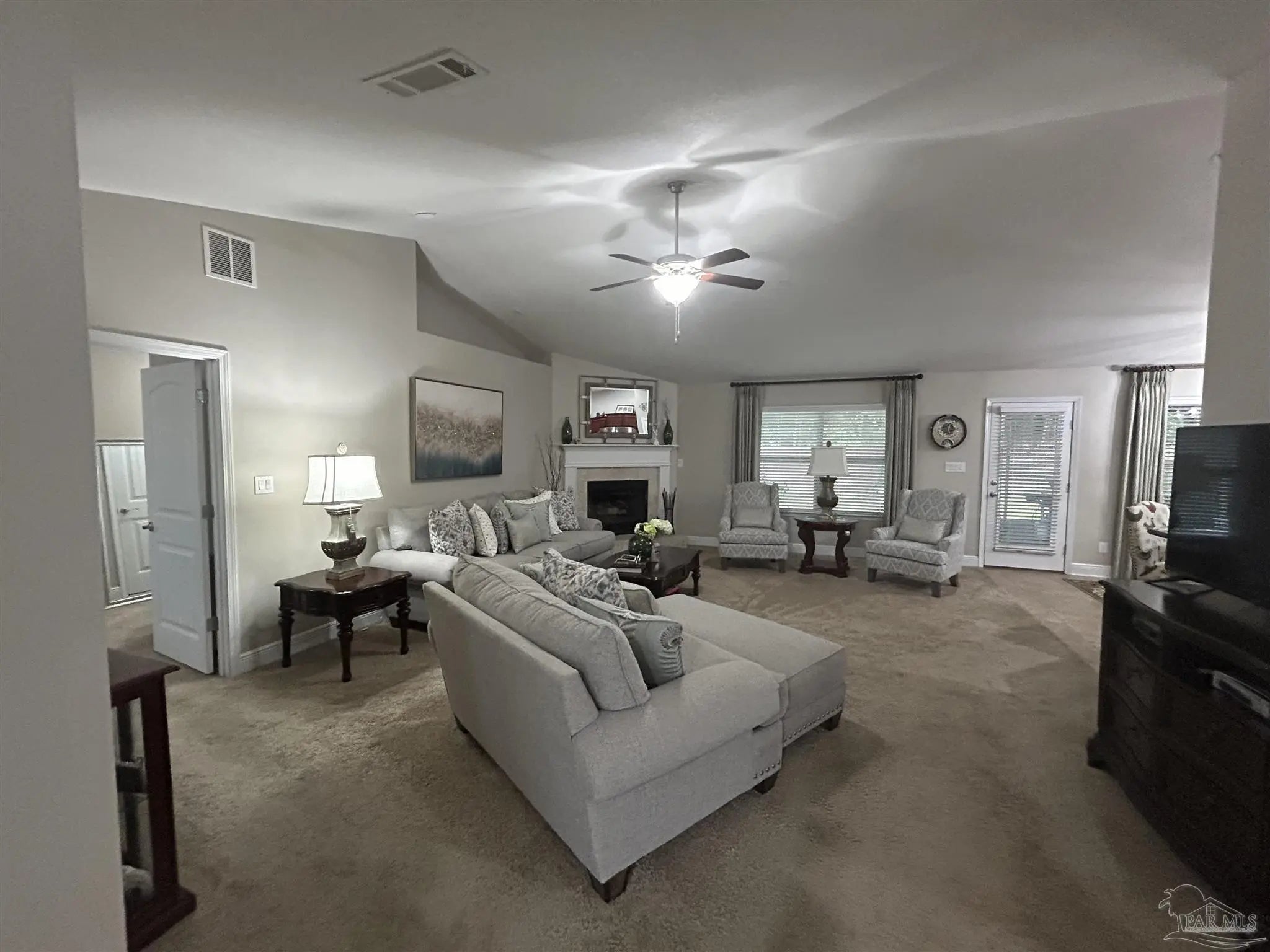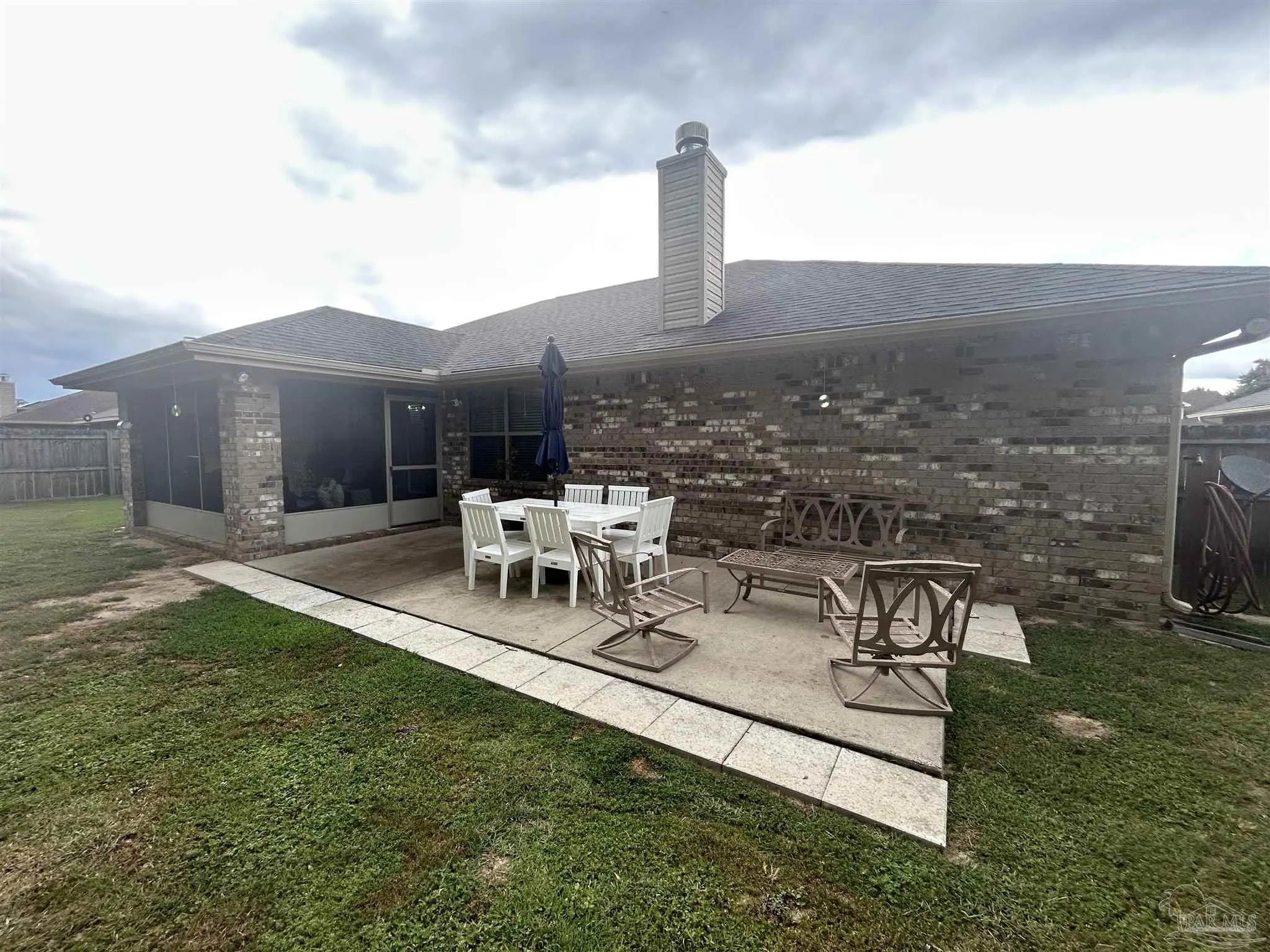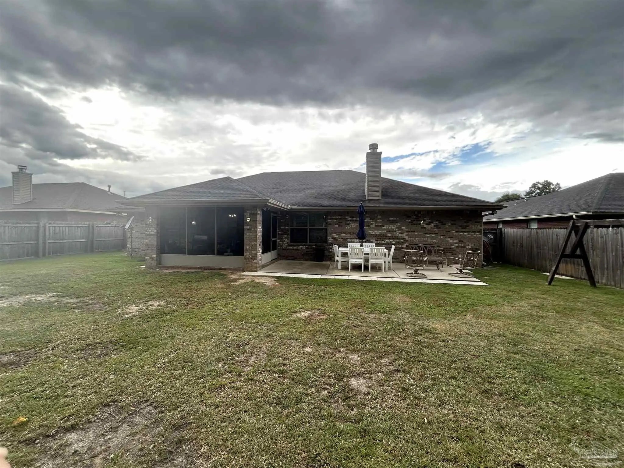 Elegant and pristine is what you will get when you walk into this immaculate home that offers an open floor plan for entertaining. This home has been well kept and maintained for the next owner to enjoy without any worries. THERE IS A FLEX ROOM THAT ALLOWS FOR AN ADDITONAL BEDROOM, OFFICE, GAME ROOM, AND MUCH MORE!!! Vaulted ceilings in the living room makes for a spacious feel when entertaining. There is a separate dining room and office/bonus room providing ample room for different needs. Main bedroom is designed with a Tray ceiling making the room feel more spacious as well a sitting area to relax and unwind. Main bathroom is open with double vanities and a soaker tub/shower as well as an over-sized linen closet for extra storage. There are two large closets in the main bedroom at which one of the closets was modified by "closets by design". Home is wired for active alarm system and surround sound...Gas fireplace with remote control setting that comes with different fire settings for the perfect ambience to set the mood! There is definitely plenty of space in the home to socialize together or drift off to your own area, to include the large screened room off the breakfast nook. Enjoy evenings out there and not worry about being attacked by the critters. Exiting the screened room is an added 10x24 open patio for you to grill in the bbq weather. Large back yard is spacious enough for your toys, kids, animals, or whatever need fits. You can be comforted by knowing the home is on a security system with your ring bell and flood light camera as well. Many other extras to include fabric hurricane shutters to help with insurance rates....seamless gutters to prevent yard erosion.. This home is situated in a quiet friendly neighborhood located minutes from the interstate, sandy white beaches, navy base, restaurants, and much more. This is in an up and coming area that you do not want to miss out on getting into early at an affordable price.