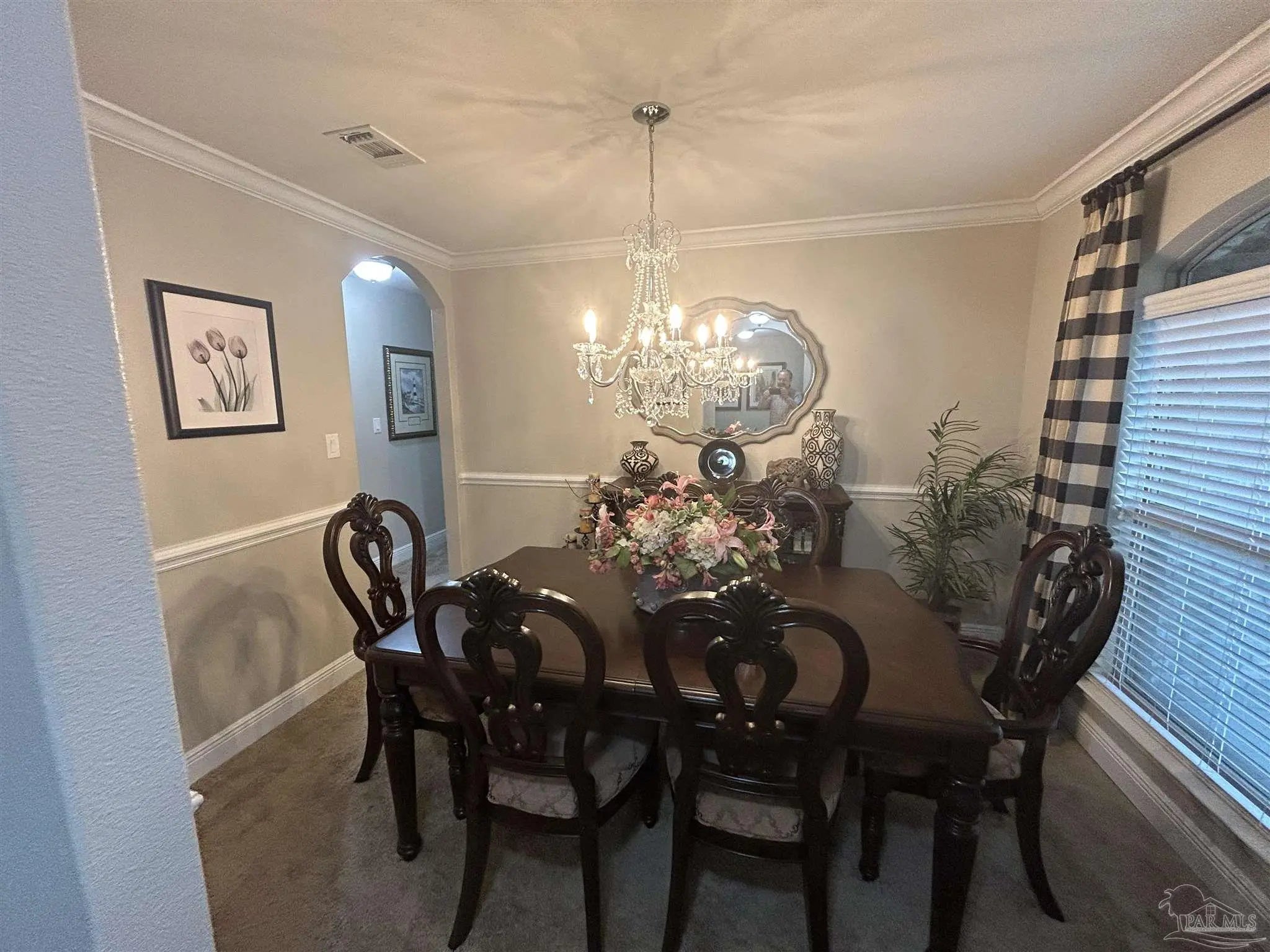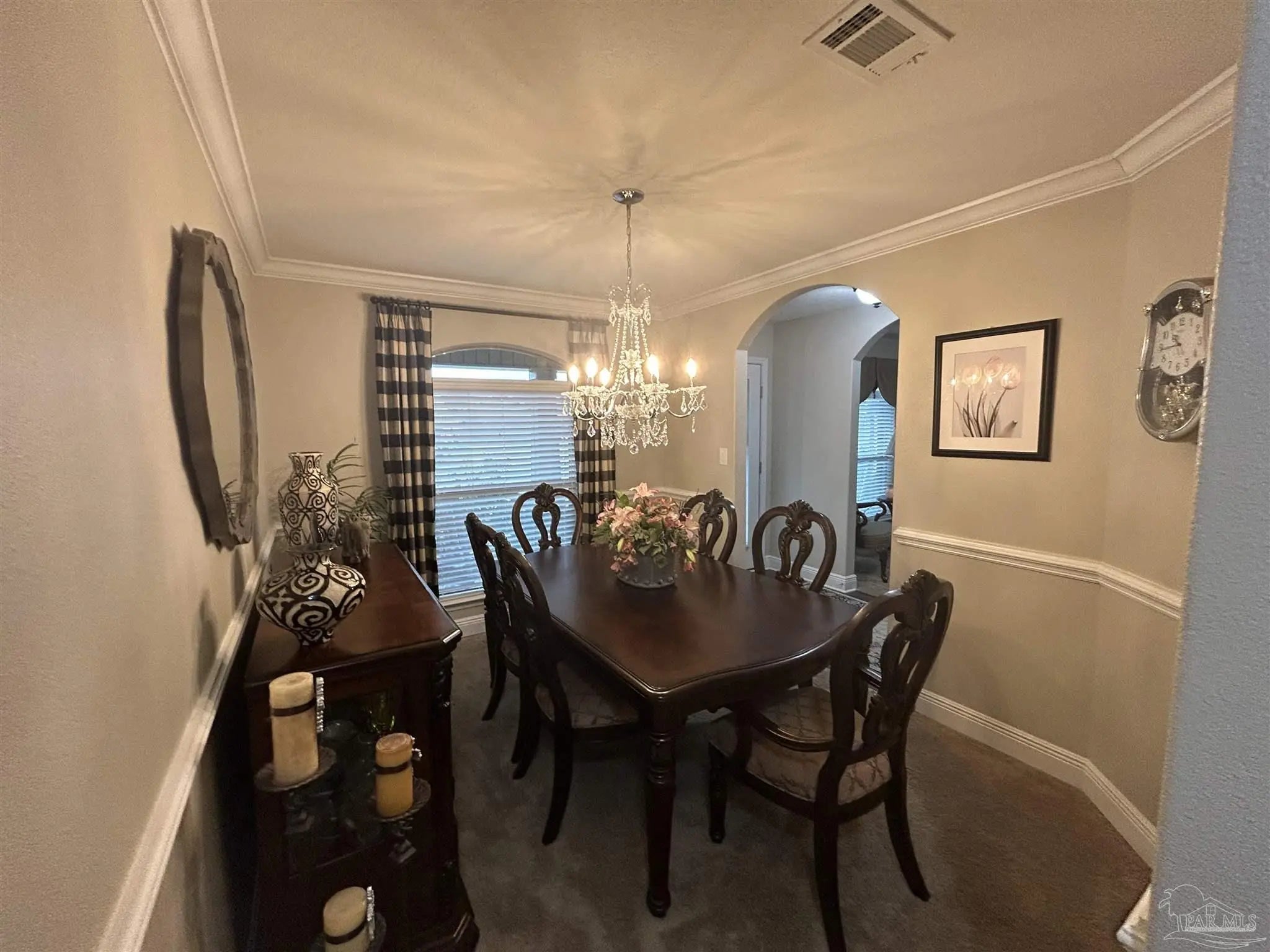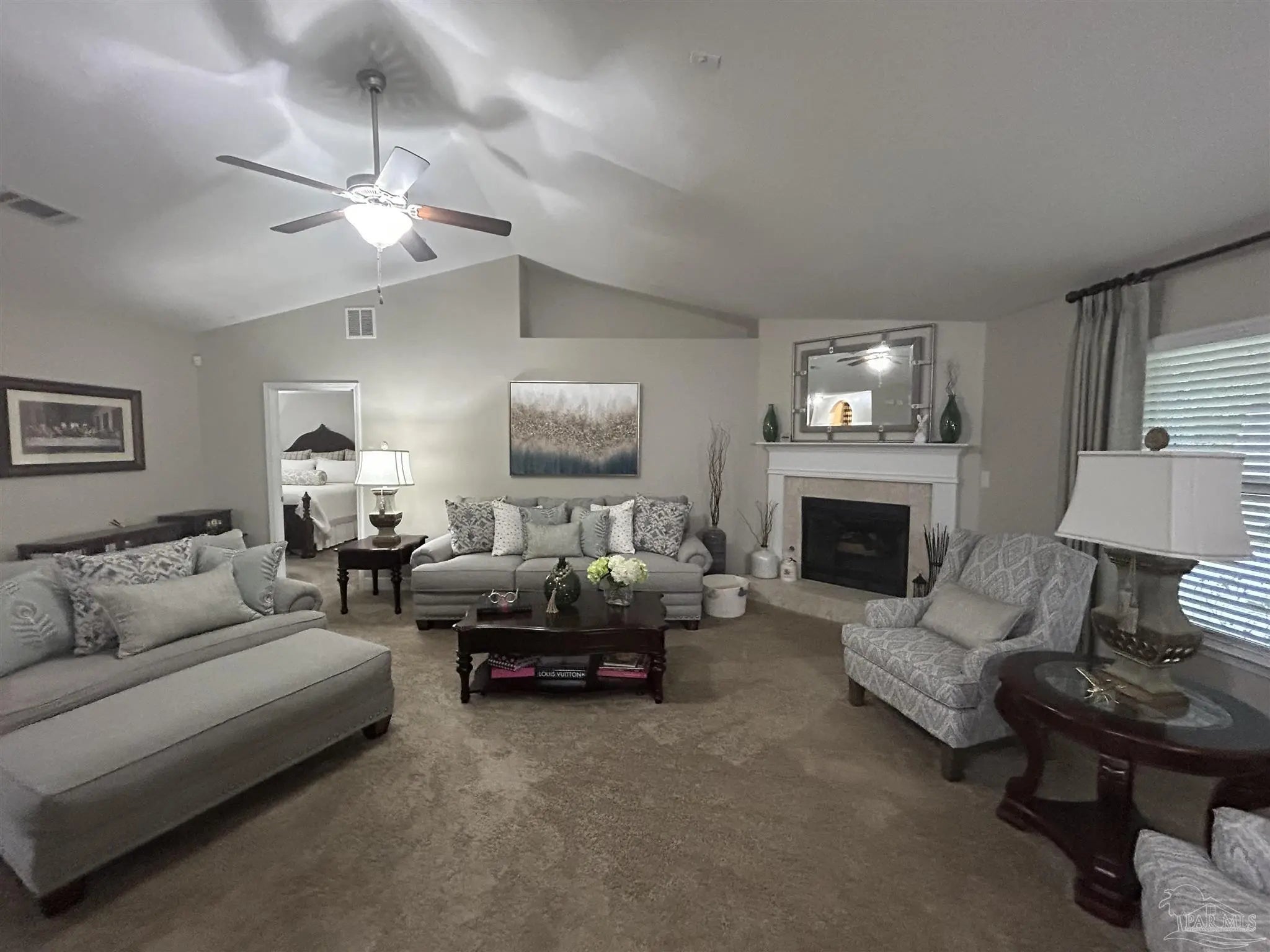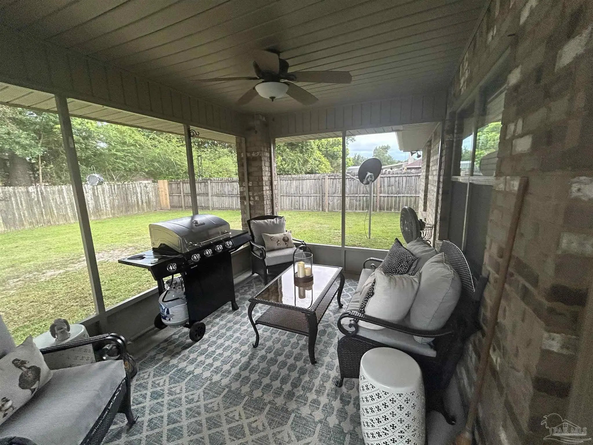 Elegant and pristine is what you will get when you walk into this immaculate home that offers an open floor plan for entertaining. This home has been well kept and maintained for the next owner to enjoy without any worries. THERE IS A FLEX ROOM THAT ALLOWS FOR AN ADDITONAL BEDROOM, OFFICE, GAME ROOM, AND MUCH MORE!!! Vaulted ceilings in the living room makes for a spacious feel when entertaining. There is a separate dining room and office/bonus room providing ample room for different needs. Main bedroom is designed with a Tray ceiling making the room feel more spacious as well a sitting area to relax and unwind. Main bathroom is open with double vanities and a soaker tub/shower as well as an over-sized linen closet for extra storage. There are two large closets in the main bedroom at which one of the closets was modified by "closets by design". Home is wired for active alarm system and surround sound...Gas fireplace with remote control setting that comes with different fire settings for the perfect ambience to set the mood! There is definitely plenty of space in the home to socialize together or drift off to your own area, to include the large screened room off the breakfast nook. Enjoy evenings out there and not worry about being attacked by the critters. Exiting the screened room is an added 10x24 open patio for you to grill in the bbq weather. Large back yard is spacious enough for your toys, kids, animals, or whatever need fits. You can be comforted by knowing the home is on a security system with your ring bell and flood light camera as well. Many other extras to include fabric hurricane shutters to help with insurance rates....seamless gutters to prevent yard erosion.. This home is situated in a quiet friendly neighborhood located minutes from the interstate, sandy white beaches, navy base, restaurants, and much more. This is in an up and coming area that you do not want to miss out on getting into early at an affordable price.