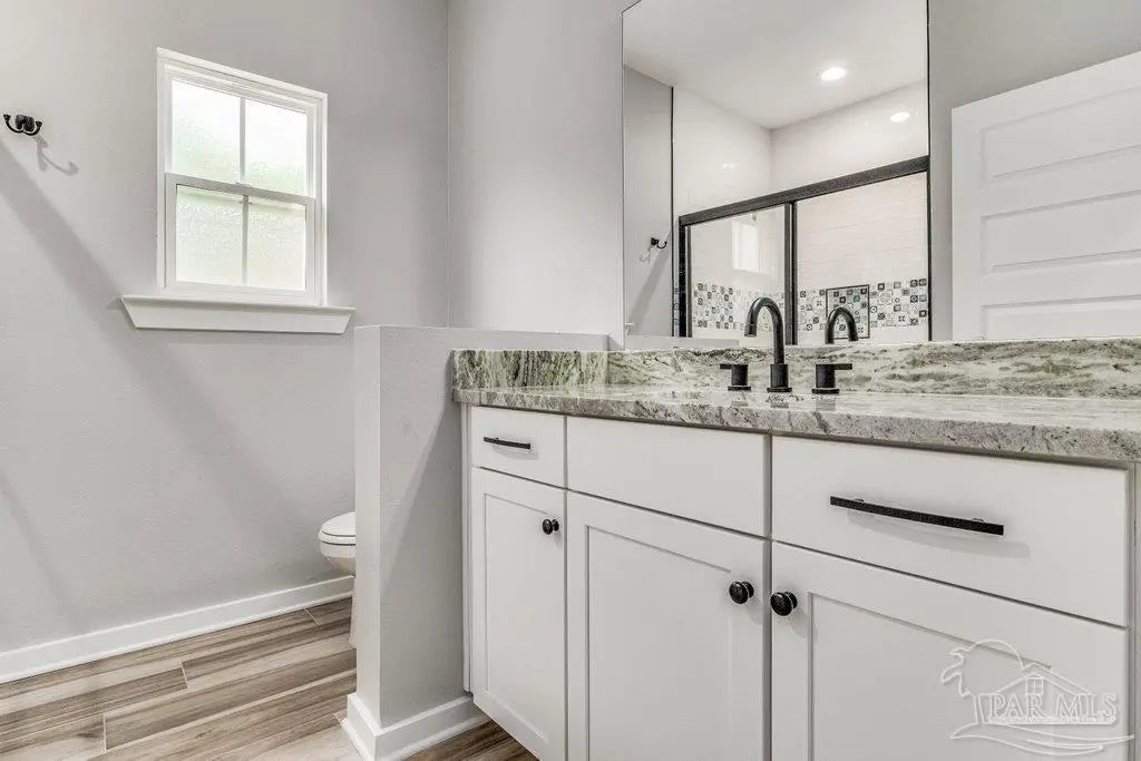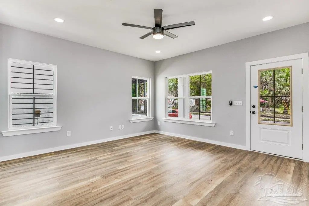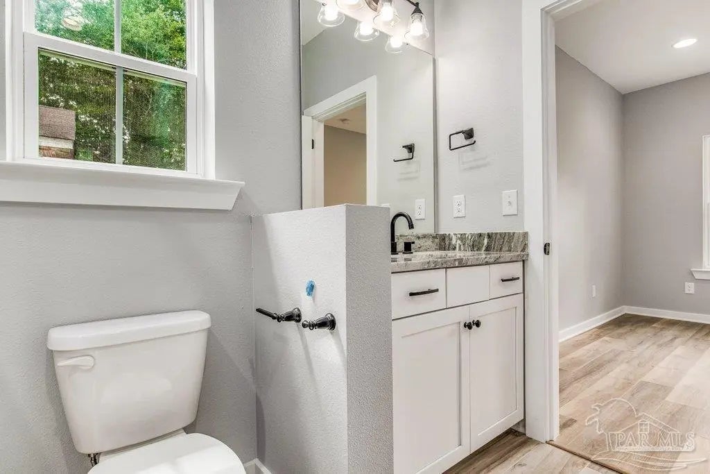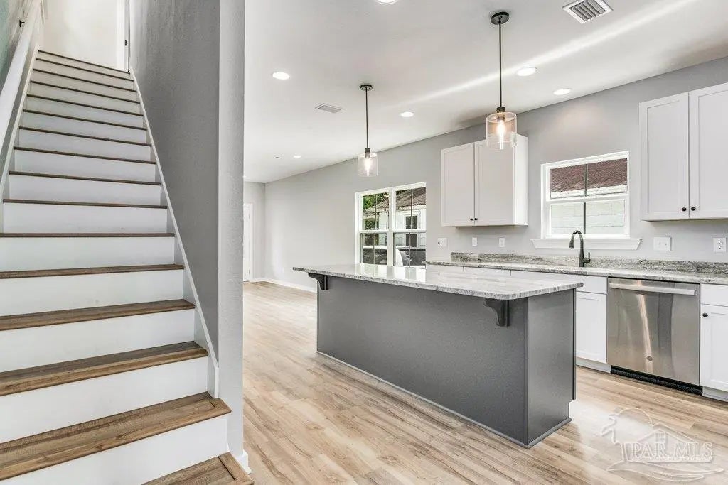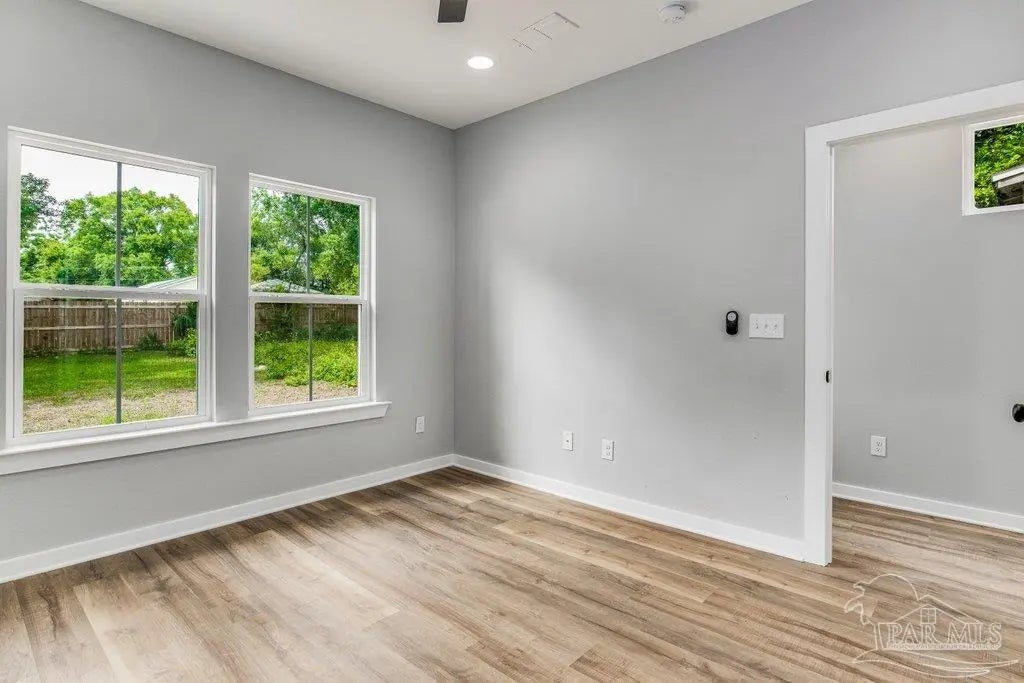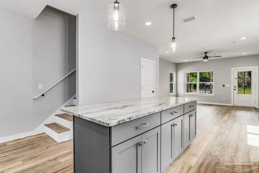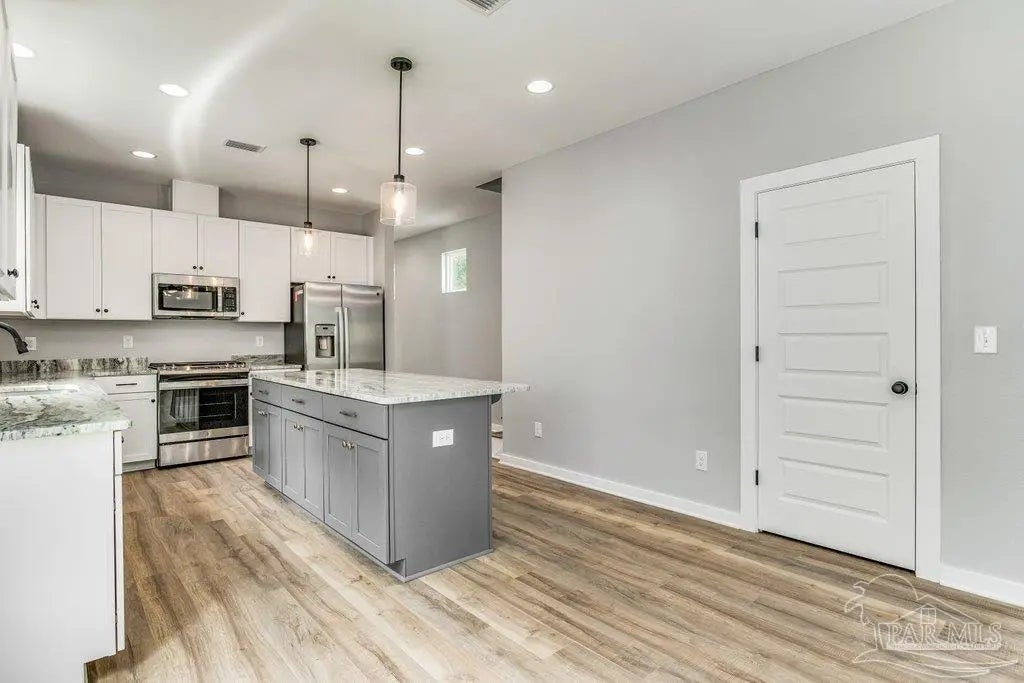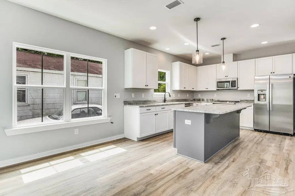 This magnificent two-story home boasts 3 bedrooms and 3 bathrooms, offering a spacious and comfortable living experience. Situated just minutes away from Downtown Pensacola, you'll enjoy the convenience of a central location near the 3 Mile Bridge, Cordova Mall, the airport, and easy access to i110/i10. Prepare to be captivated by the open concept living and dining area, designed to perfection. Luxury vinyl wood look flooring sets the stage for elegance, while custom kitchen cabinets, fantasy granite countertops, and stainless steel kitchen appliances, including a gas stove, create a stunning culinary space. The bathrooms showcase exquisite custom tile showers, adding a touch of luxury to your daily routine. Step out onto the balcony and relax on the stylish trex decking, a perfect spot to unwind and enjoy the outdoors. This home is equipped with modern amenities, including a tankless hot water heater and a sprinkler system, enhancing both convenience and efficiency. With its unbeatable combination of location, price, and quality, this property is truly exceptional. Don't miss out on this incredible opportunity! Call now for further details or to schedule your private showing today! Ask about no money down, no PMI loan available for first time home buyers