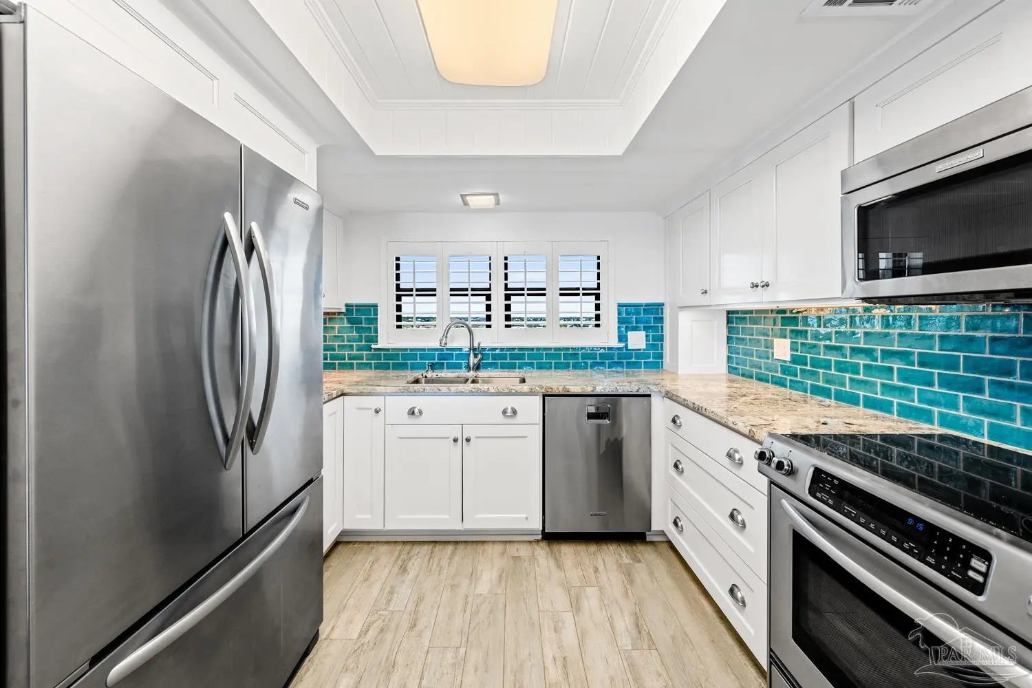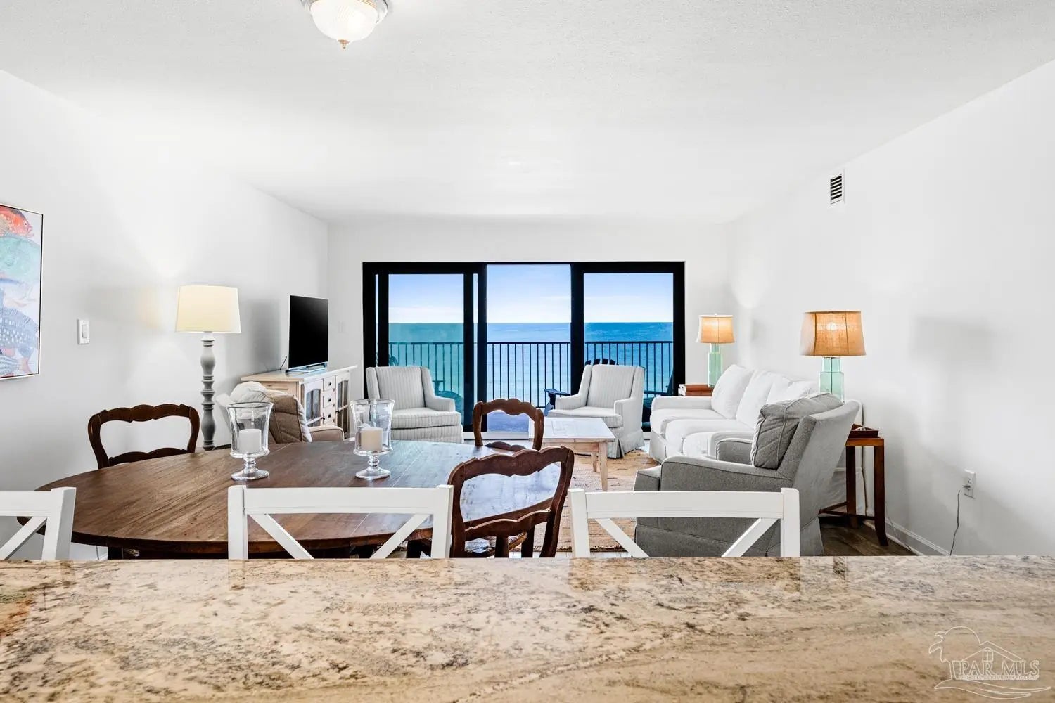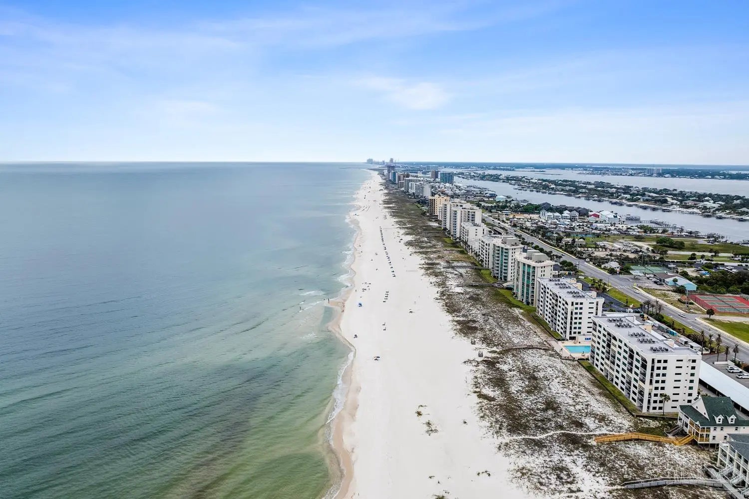 This is a stunning residence in the sought-after Windward Condominium. The condo was custom-renovated in 2014 with beautiful finishes, including seamless granite kitchen countertops, a gorgeous aquamarine subway tile backsplash, stainless steel KitchenAid appliances, and exceptional cabinetry. The tastefully upgraded bathrooms feature tile showers and granite vanity countertops. Porcelain tile flooring throughout, with a hardwood aesthetic, is easy to clean and perfect for coastal living. New plantation shutters were added in 2024. The HVAC is approximately five years old, and the water heater was replaced in 2024. The complex has recently completed extensive renovations, including resurfacing and repainting the exterior, replacing all windows and doors, installing new railings on balconies and catwalks, resurfaced tennis and pickle ball courts, a renovated community room, and new elevators. Windward is a boater's paradise! It offers caged boat storage units for rent, when available, a convenient boat launch, first-come, first-serve boat slips, a fishing pier, grills, a picnic area, and a covered gazebo perfect for enjoying summer sunsets. It also has a fish cleaning station and water hose. The spacious Gulf-side swimming pool is partially shaded in the mornings and afternoons. The tanning deck offers ample seating and loungers. The beach frontage is spacious and low-density. This complex is conveniently located near the Flora-Bama Bar and Yacht Club, a short drive or boat ride to Orange Beach for additional dining and shopping. Windward is a rental restricted building. Making this condo ideal for a tranquil, second home or primary residence. Don't miss out on this perfect beach getaway!
