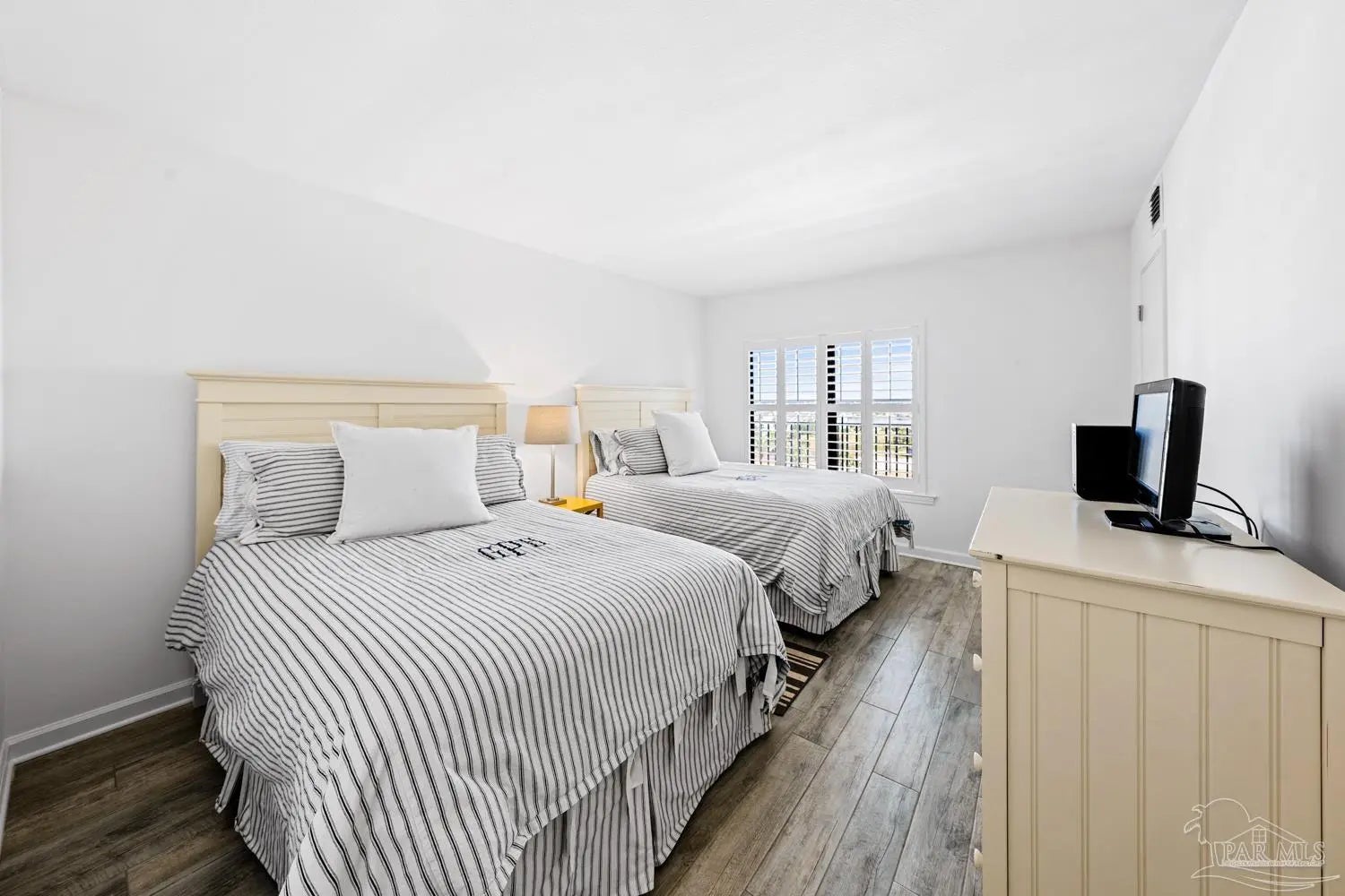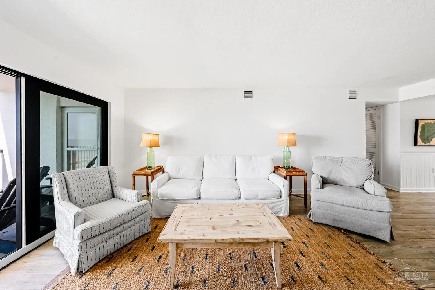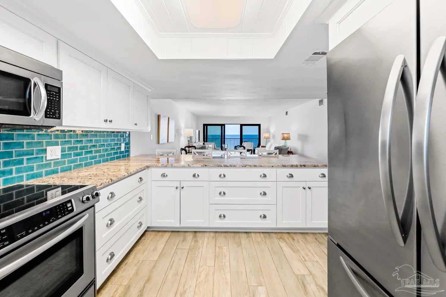 This is a stunning residence in the sought-after Windward Condominium. The condo was custom-renovated in 2014 with beautiful finishes, including seamless granite kitchen countertops, a gorgeous aquamarine subway tile backsplash, stainless steel KitchenAid appliances, and exceptional cabinetry. The tastefully upgraded bathrooms feature tile showers and granite vanity countertops. Porcelain tile flooring throughout, with a hardwood aesthetic, is easy to clean and perfect for coastal living. New plantation shutters were added in 2024. The HVAC is approximately five years old, and the water heater was replaced in 2024. The complex has recently completed extensive renovations, including resurfacing and repainting the exterior, replacing all windows and doors, installing new railings on balconies and catwalks, resurfaced tennis and pickle ball courts, a renovated community room, and new elevators. Windward is a boater's paradise! It offers caged boat storage units for rent, when available, a convenient boat launch, first-come, first-serve boat slips, a fishing pier, grills, a picnic area, and a covered gazebo perfect for enjoying summer sunsets. It also has a fish cleaning station and water hose. The spacious Gulf-side swimming pool is partially shaded in the mornings and afternoons. The tanning deck offers ample seating and loungers. The beach frontage is spacious and low-density. This complex is conveniently located near the Flora-Bama Bar and Yacht Club, a short drive or boat ride to Orange Beach for additional dining and shopping. Windward is a rental restricted building. Making this condo ideal for a tranquil, second home or primary residence. Don't miss out on this perfect beach getaway!