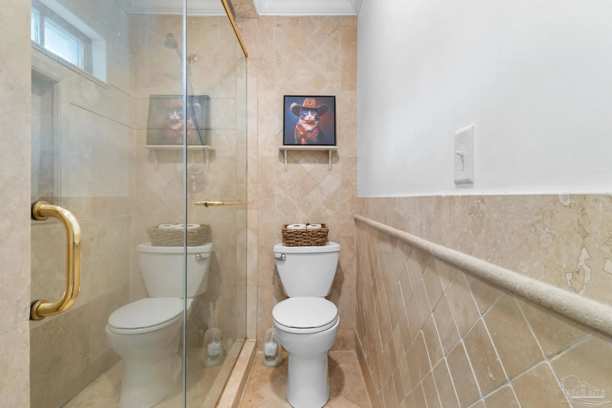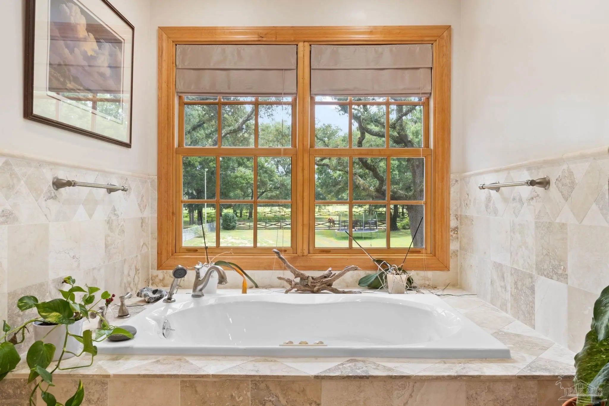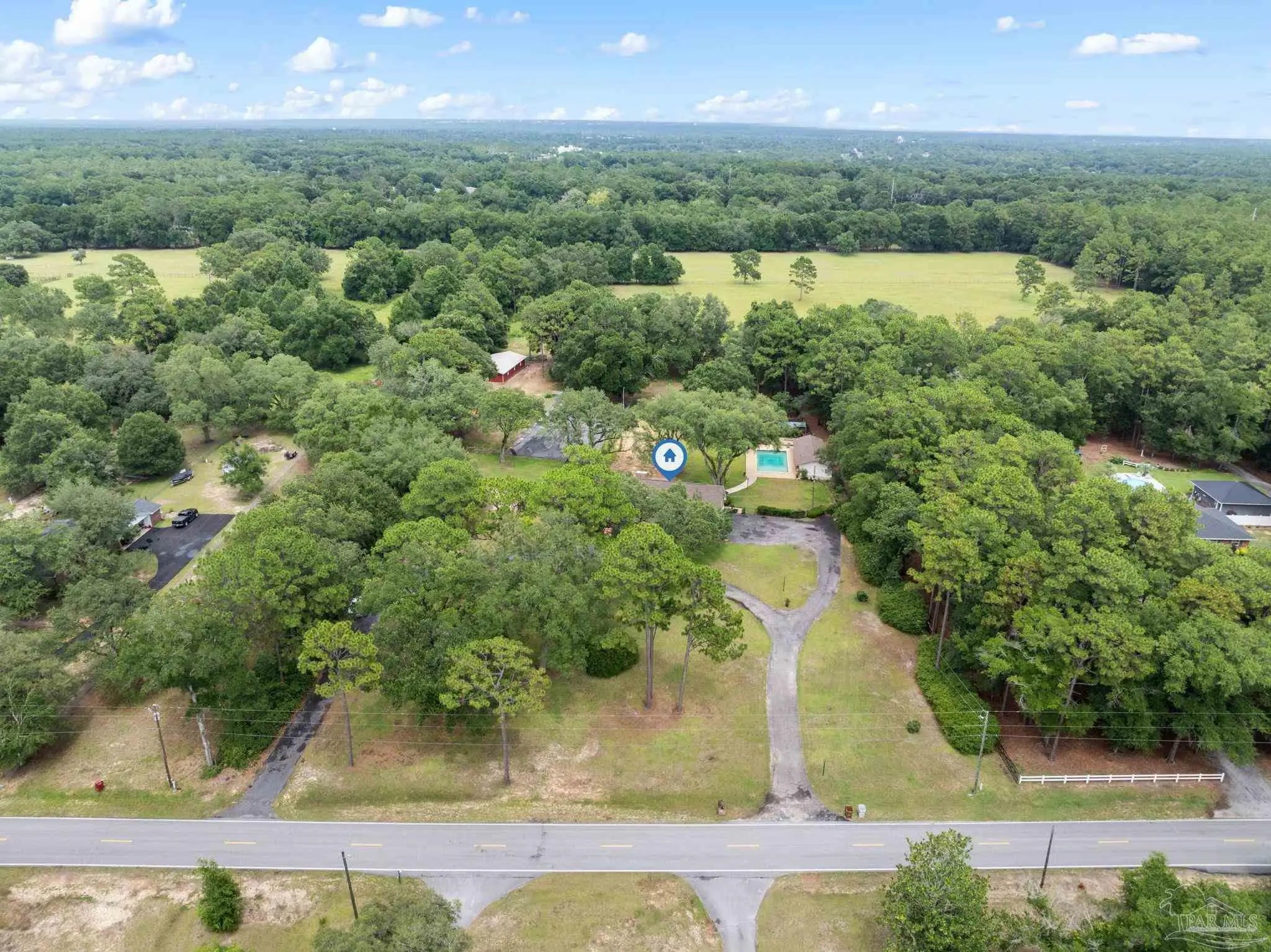 This unique property is in the heart of town but feels like you are out in your own oasis! Once inside this beautiful 2 story brick home with a circular drive you will find travertine floors, an updated kitchen with stainless steel appliances, a separate dining room and a wood burning fireplace in the living room. There are 3 bedrooms and 2 full baths downstairs. As you begin upstairs, you have a private bedroom suite to the right with a full bath and outside deck access. Across the hall is the main bedroom suite complete with a large bathroom, double vanities, large walk-in shower, and a jetted tub that looks over your private acreage. Off the rear of the main bedroom is a walk-in closet with enough space for storage, an office or a personal gym. The property has a tennis court, in ground Gunite Pool, sauna, and a separate guest house that has a full bath and kitchen (use this as a mother-in-law suite, studio or to generate some income as an Airbnb with its separate gate entrance for access). The back yard is fenced with an 1,856-sf steel framed barn and a separate Run-In. There is also a well Pump for lawn Irrigation. The main house, irrigation wellhouse and pool/guest house all re-roofed in 2021. A new septic tank and fill lines were replaced for the main house June 2025. New tankless hot water heater for main house 2023, Main house had both HVAC's replaced in 2021 (2nd level) and 2024 (main level). Pool house HVAC replaced in 2025. Everything has been updated, and this gorgeous home is ready for you to move in!