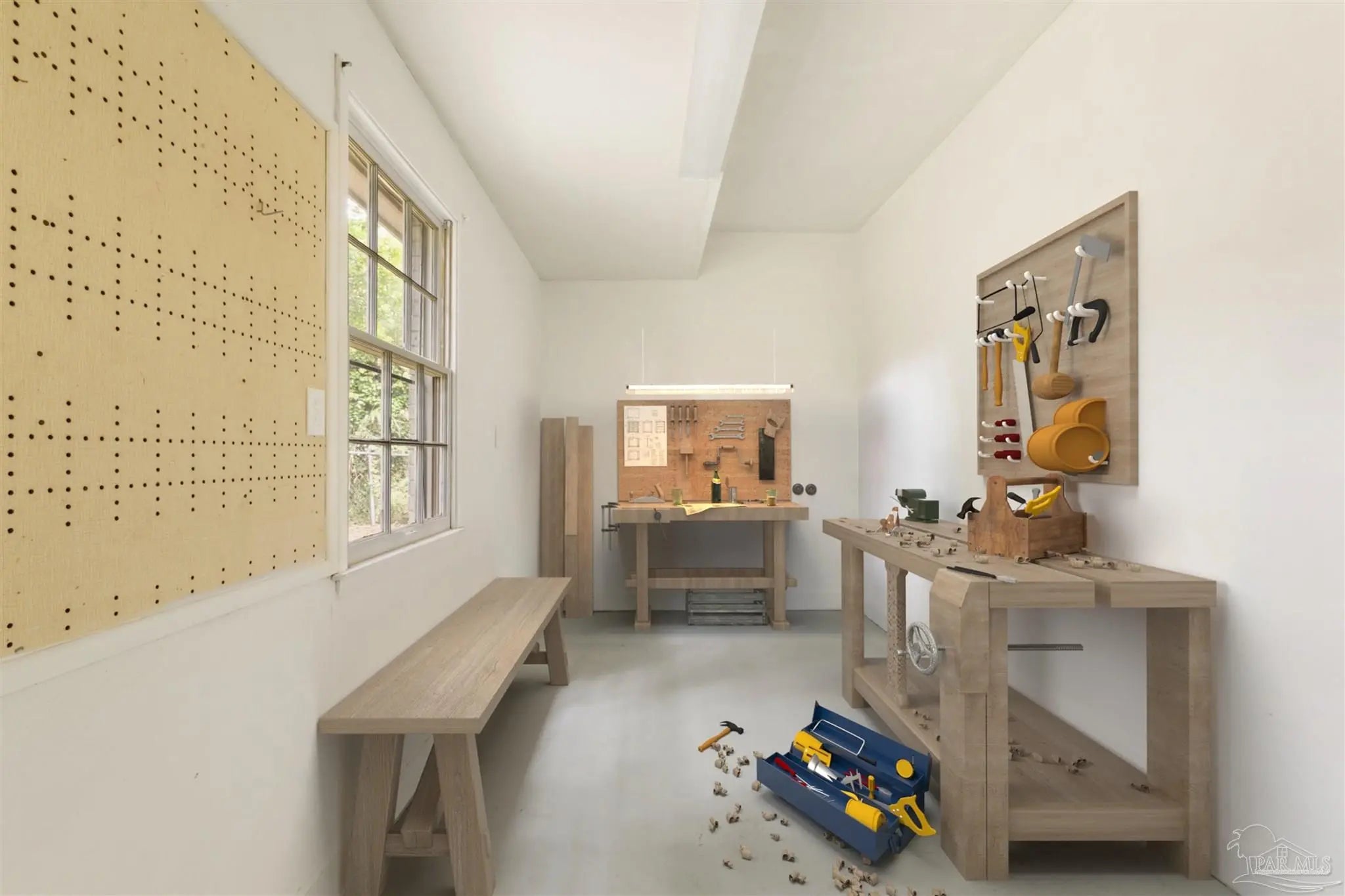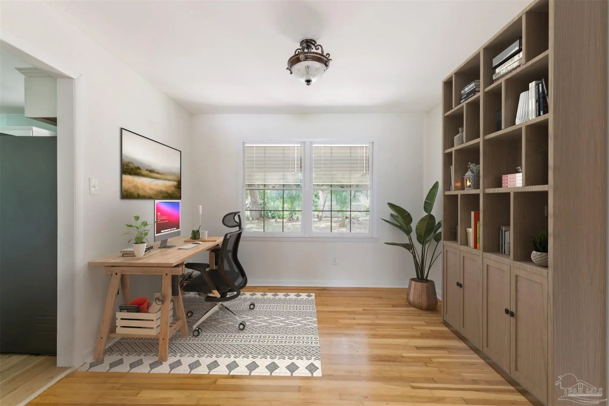 ***PRICE REDUCED***Charming Cordova Park Home with Unique Bonus Space & Modern Updates. A classic 3-bedroom, 2-bathroom home nestled in the heart of Pensacola that sits across the street from several community amenities such as the Roger Scott Tennis Center, Pool, and Athletic Complex, offering a rare combination of location, charm, and flexibility. Built in 1965, this 1,484 sq ft home blends original character with tasteful updates. You’ll find beautiful hardwood floors, built-in shelving in the living room, and two renovated bathrooms with stylish vanities and eye-catching tile. The kitchen features crisp white cabinetry, quartz countertops, brass hardware, and a bold teal backsplash—modern upgrades that maintain the home’s traditional feel. While the layout reflects the era’s preference for defined rooms, the living and dining areas feel bright and welcoming with great natural light throughout. A standout feature of this property is the bonus room located within the garage. Virtually staged photos show the room’s potential as a home gym, workshop, creative studio, or extra storage space—making it a true asset. Additional recent improvements include all-new attic ductwork, boosting HVAC efficiency and comfort. Outside, the home sits on a large lot shaded by mature trees, with a spacious backyard that offers endless possibilities for entertaining, gardening, or expansion. Enjoy unbeatable convenience—just minutes from the airport, Cordova Mall, hospitals, and downtown Pensacola. Whether you're looking for your first home, a rental investment, or a space to grow into, this Cordova Park gem is full of potential and personality.