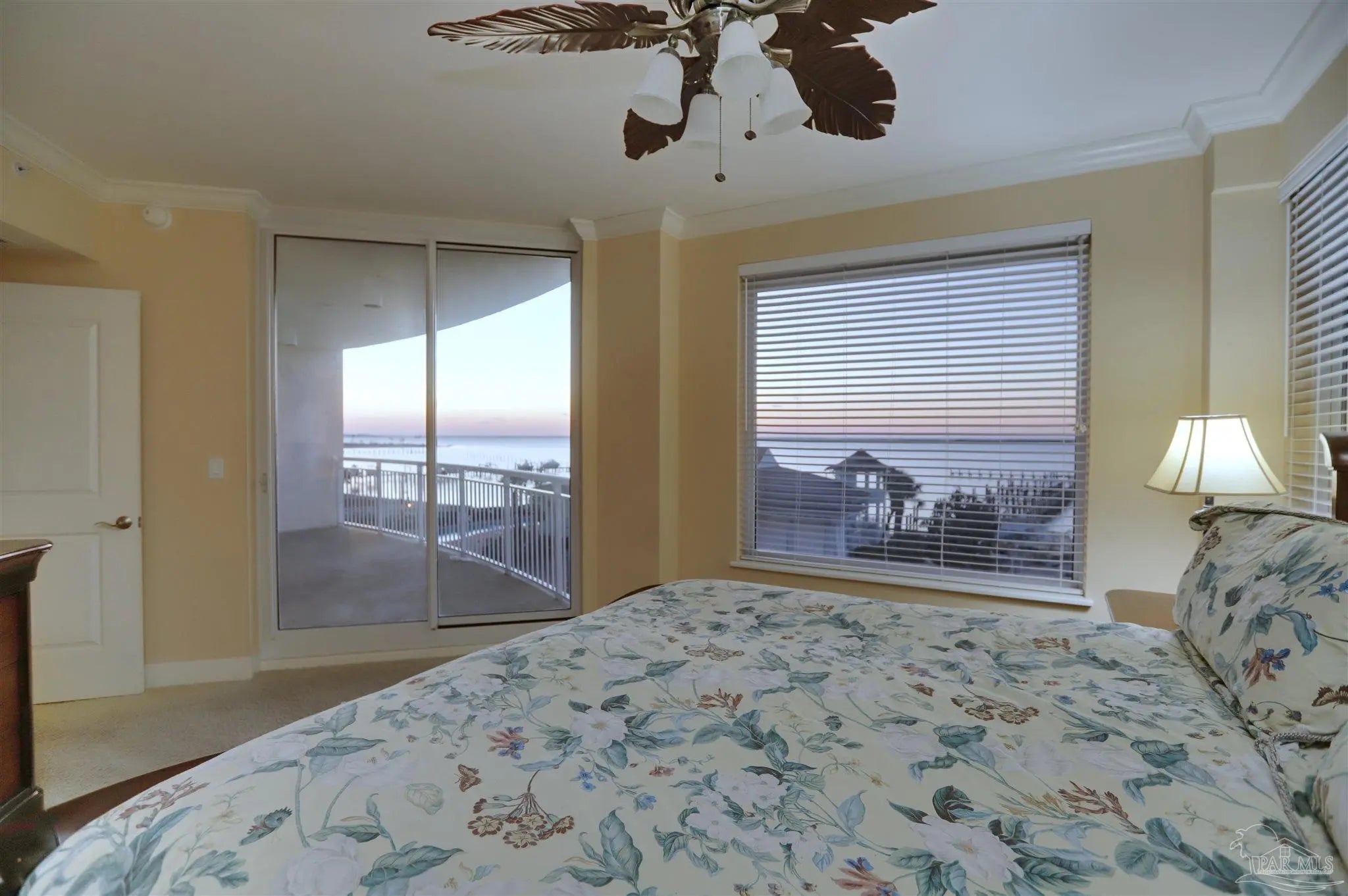 WELCOME to GALIA*** Here is your opportunity to enjoy the finest Condo, Marina & Yacht Club in the Panhandle. Breath-taking views of the Gulf Island National Seashore and Gulf of Mexico from this luxurious fourth floor end unit. This partially furnished condo features carpet in the Den/Office & Bedrooms, oversized Tile throughout the common areas, Crown Molding, soaring 9' ceilings and full-height sliding glass doors. The Kitchen features wood cabinets, granite countertops, and breakfast bar. Living/dining combo. The Master suite boasts spectacular views of the waterway with access to the balcony where you can sit and watch the dolphins play, custom wood shelving in the walk-in closet, two vanities and a sit-down makeup area. There is also a tiled lined walk-in shower, large soaking tub, linen closet, and a separate water closet. The 2nd bedroom features a walk-in closet and westerly views. This unit also comes with a washer & dryer in the walk-in laundry room, assigned parking space, and climate-controlled owner's storage. Community amenities include a well-appointed lobby, mail room and outdoor pool. Inside the community social center there is a fitness center and weight room overlooking the marina, indoor sitting/meeting area. You can also sit on the outdoor covered patio and watch the boats sail in and out of the full-service marina.