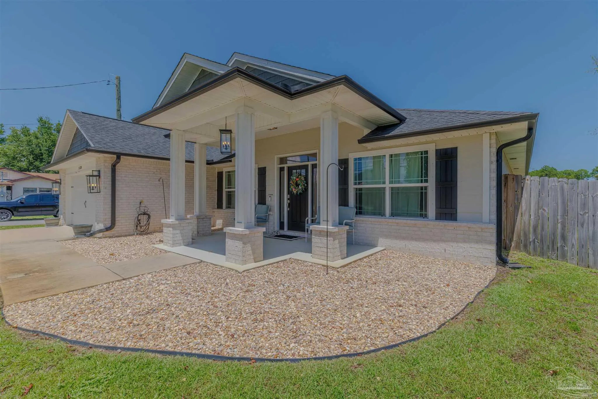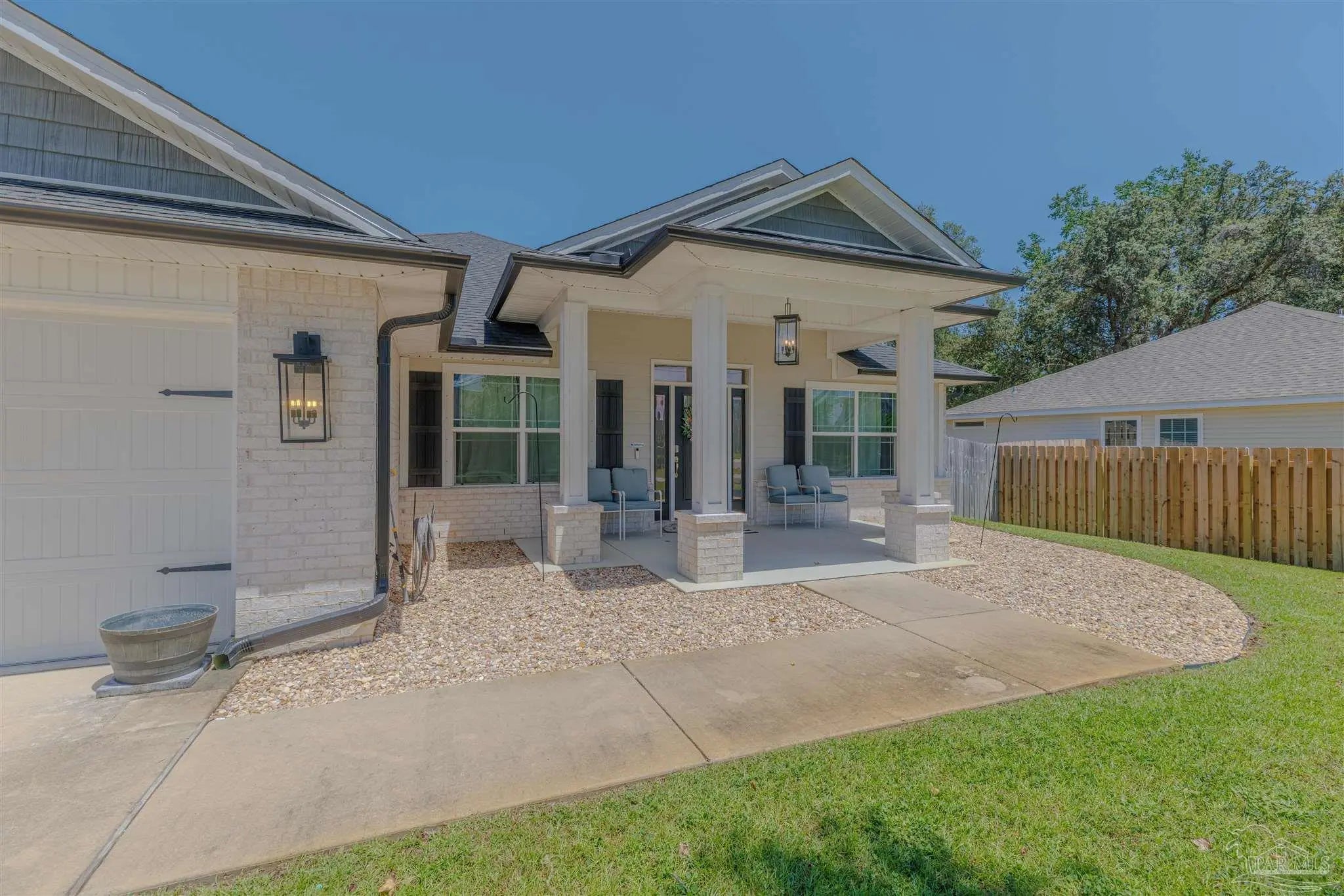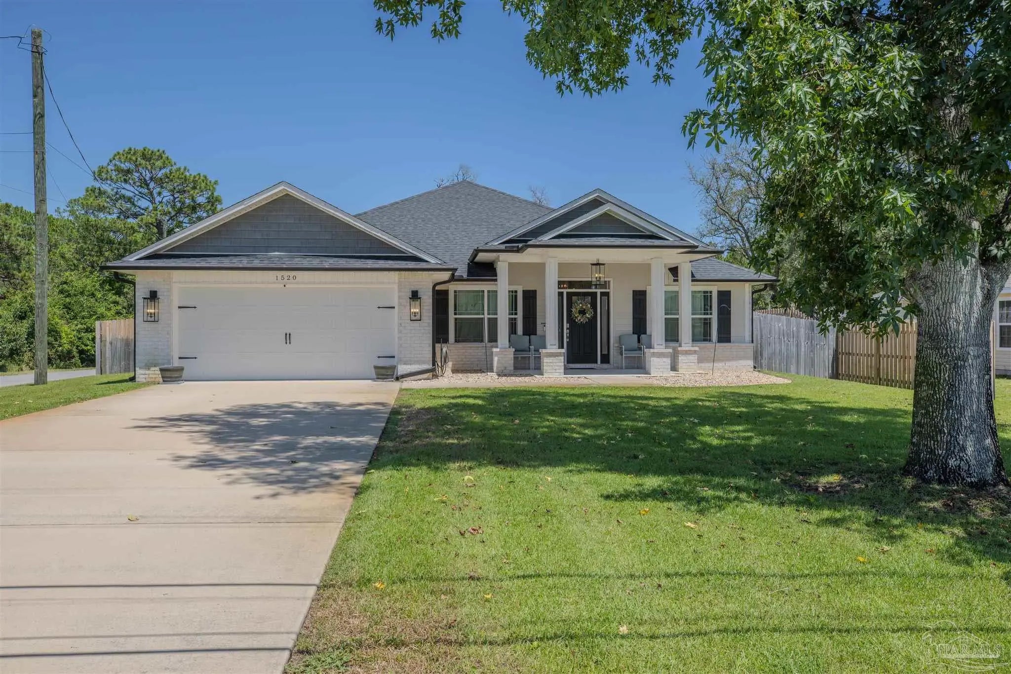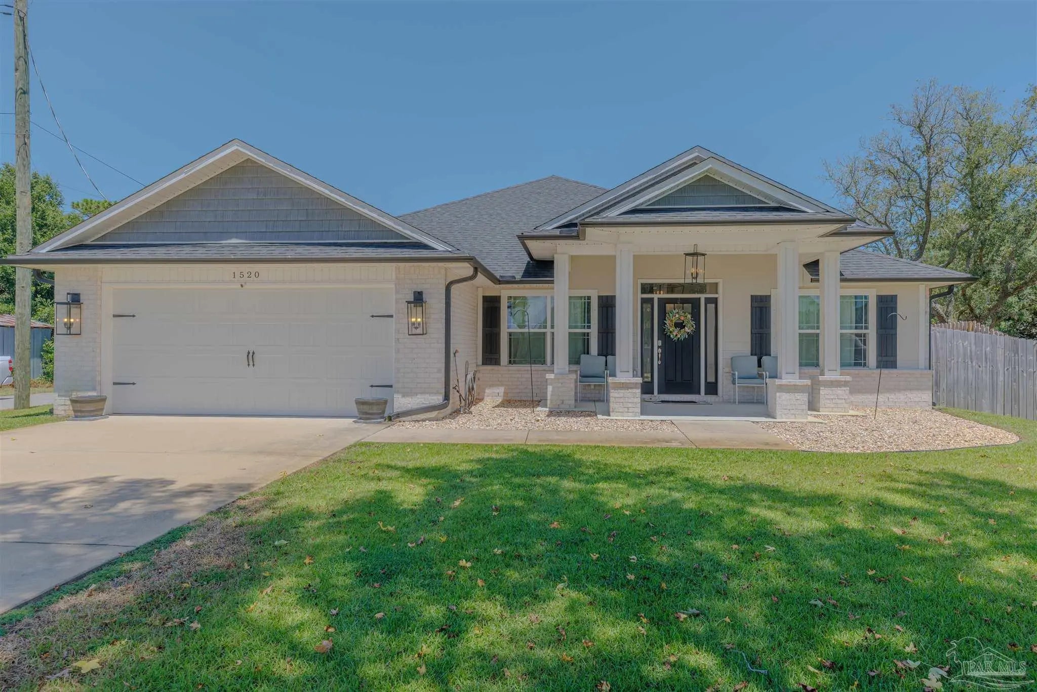 Beautiful 5BR/3BA-2254sf-NO HOA! Built in 2022 by Country Manor Homes. Located in the Tiger Point area of Gulf Breeze just minutes from Navarre and Pensacola Beaches. This all-brick and hardi-plank siding home sits on a .43 acre privacy fenced corner lot with NO HOA. Inside you’ll find luxury vinyl plank floors, 3 carpeted bedrooms, crown molding, granite counters in kitchen and bathrooms, and black farmhouse lighting throughout. The kitchen features stainless appliances, a farm sink, and french doors leading to a covered patio. Other highlights include 3 guest rooms with walk-in closets, high-end windows with hurricane shutters, sprinkler system on a well, ADT security, attic storage, color-matched gutters. Don’t miss out on this spacious, stylish, and close to the beach home as this one checks all the boxes!