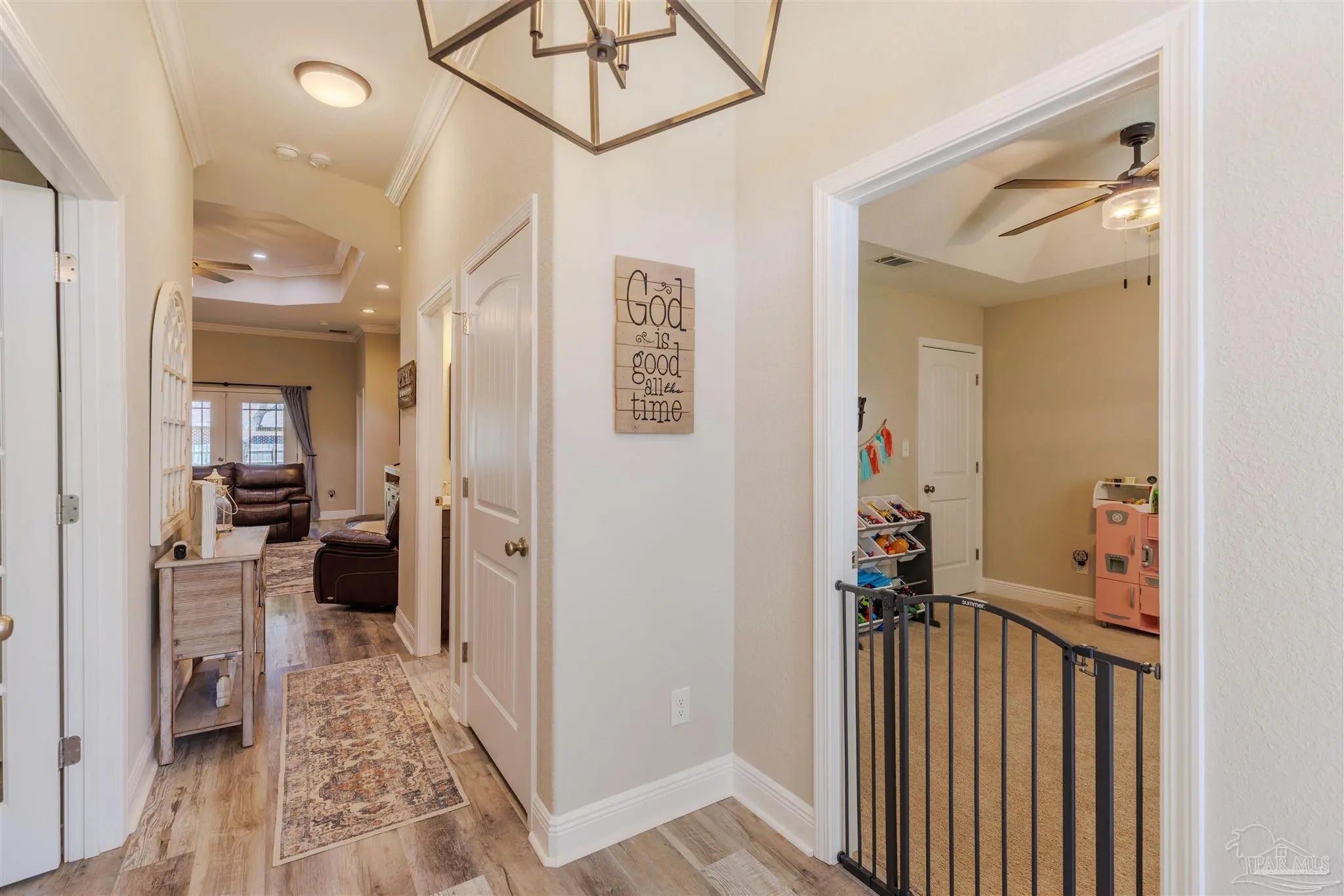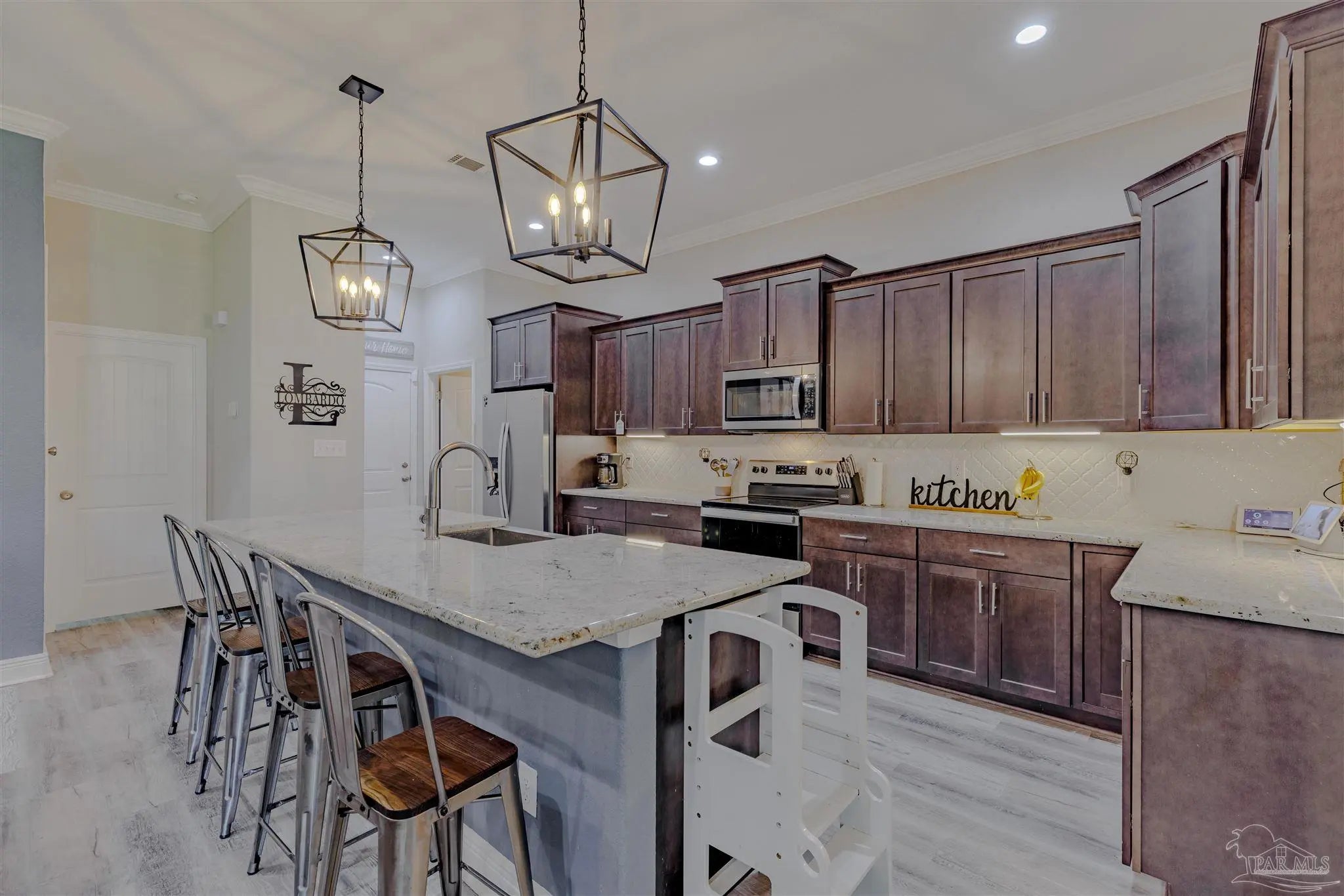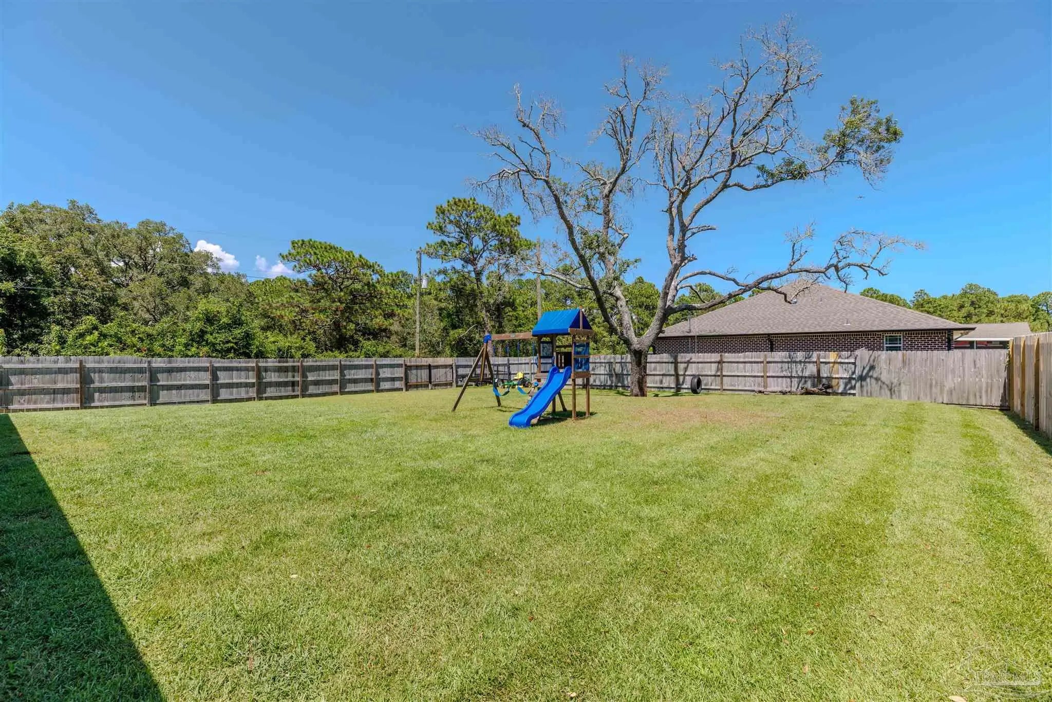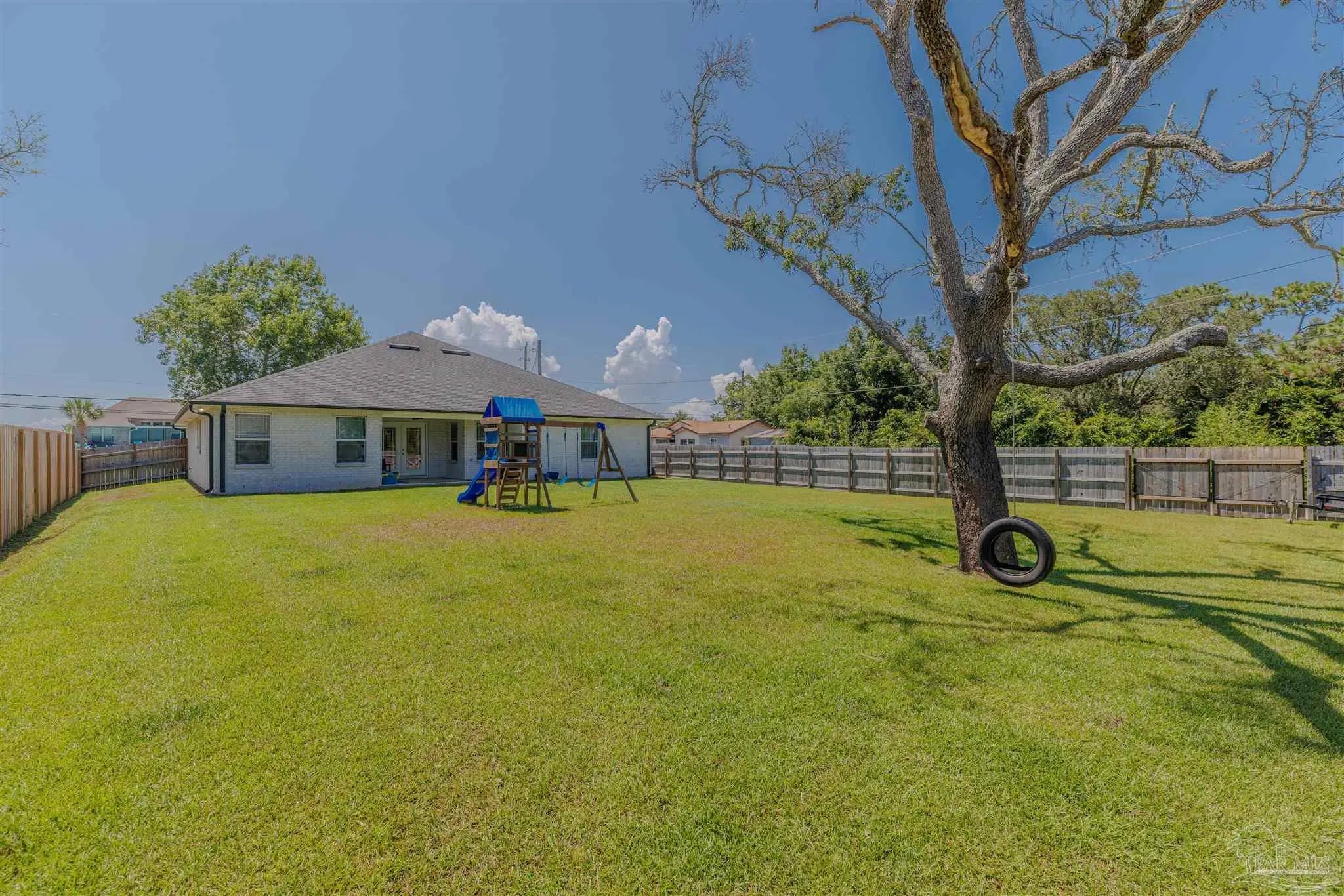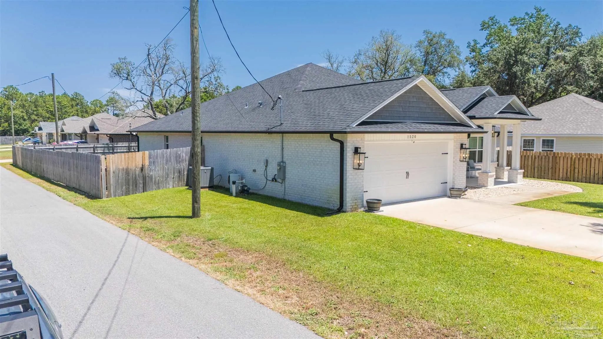 Beautiful 5BR/3BA-2254sf-NO HOA! Built in 2022 by Country Manor Homes. Located in the Tiger Point area of Gulf Breeze just minutes from Navarre and Pensacola Beaches. This all-brick and hardi-plank siding home sits on a .43 acre privacy fenced corner lot with NO HOA. Inside you’ll find luxury vinyl plank floors, 3 carpeted bedrooms, crown molding, granite counters in kitchen and bathrooms, and black farmhouse lighting throughout. The kitchen features stainless appliances, a farm sink, and french doors leading to a covered patio. Other highlights include 3 guest rooms with walk-in closets, high-end windows with hurricane shutters, sprinkler system on a well, ADT security, attic storage, color-matched gutters. Don’t miss out on this spacious, stylish, and close to the beach home as this one checks all the boxes!