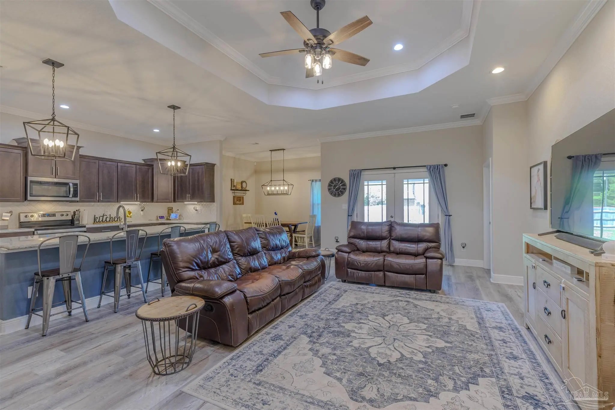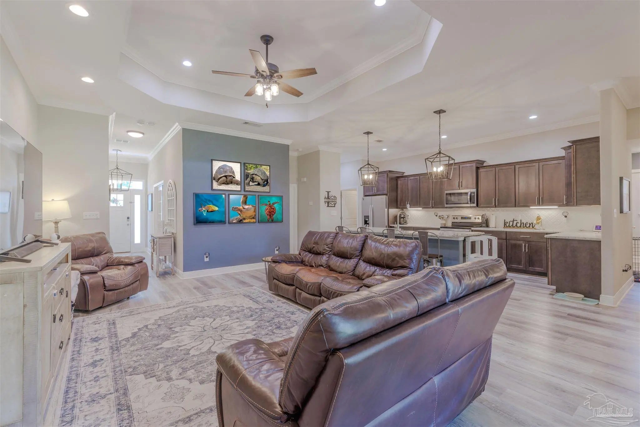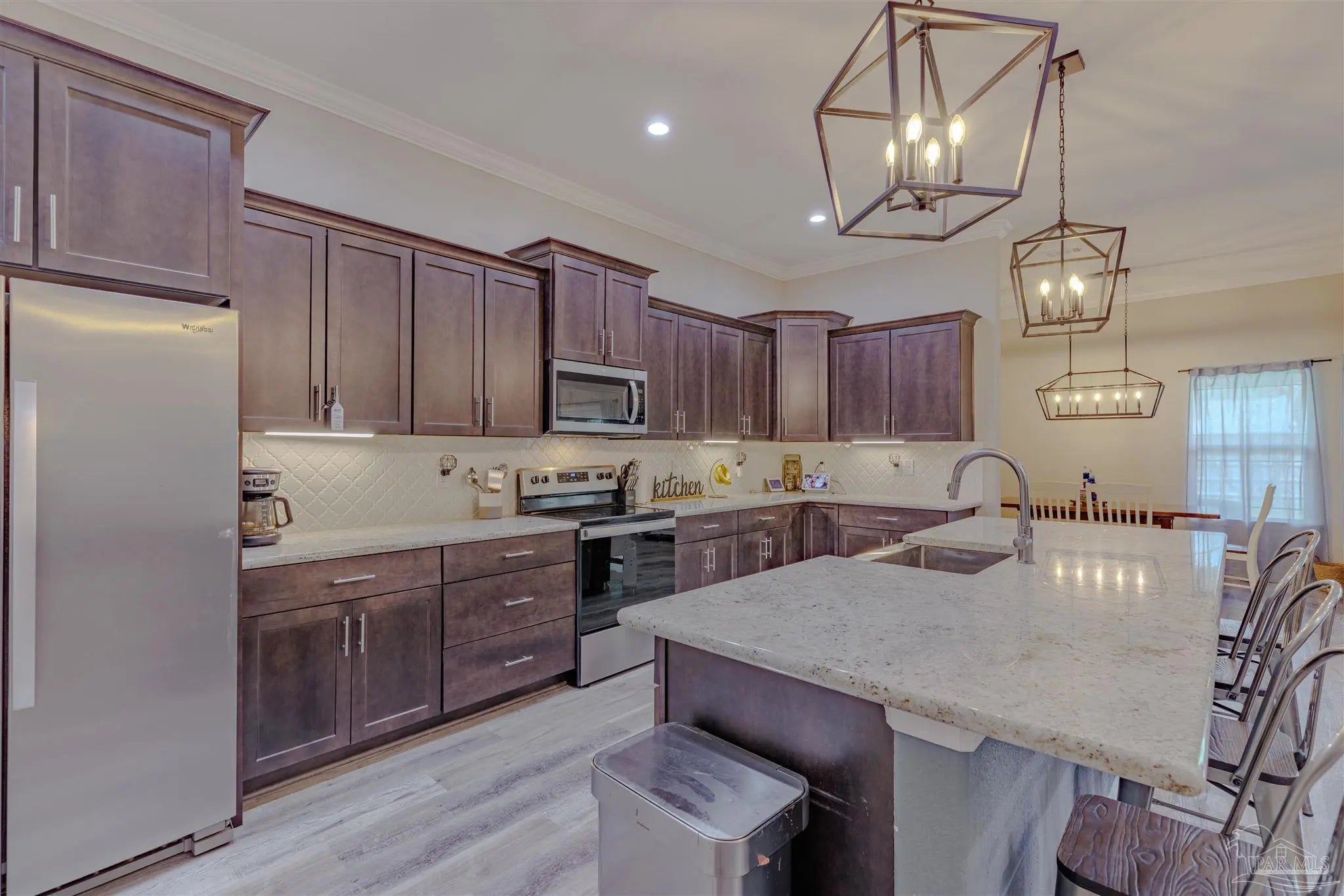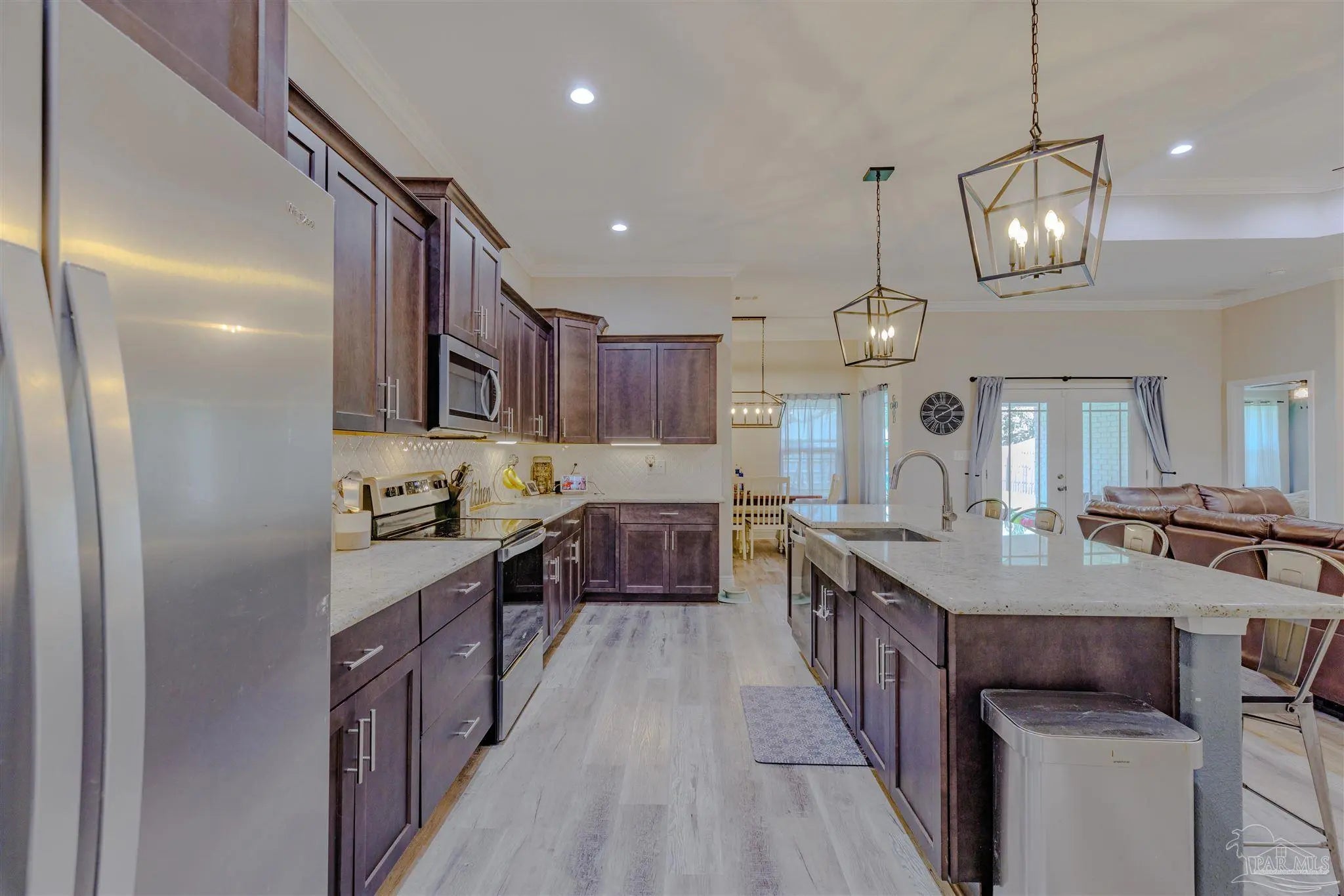 Beautiful 5BR/3BA-2254sf-NO HOA! Built in 2022 by Country Manor Homes. Located in the Tiger Point area of Gulf Breeze just minutes from Navarre and Pensacola Beaches. This all-brick and hardi-plank siding home sits on a .43 acre privacy fenced corner lot with NO HOA. Inside you’ll find luxury vinyl plank floors, 3 carpeted bedrooms, crown molding, granite counters in kitchen and bathrooms, and black farmhouse lighting throughout. The kitchen features stainless appliances, a farm sink, and french doors leading to a covered patio. Other highlights include 3 guest rooms with walk-in closets, high-end windows with hurricane shutters, sprinkler system on a well, ADT security, attic storage, color-matched gutters. Don’t miss out on this spacious, stylish, and close to the beach home as this one checks all the boxes!