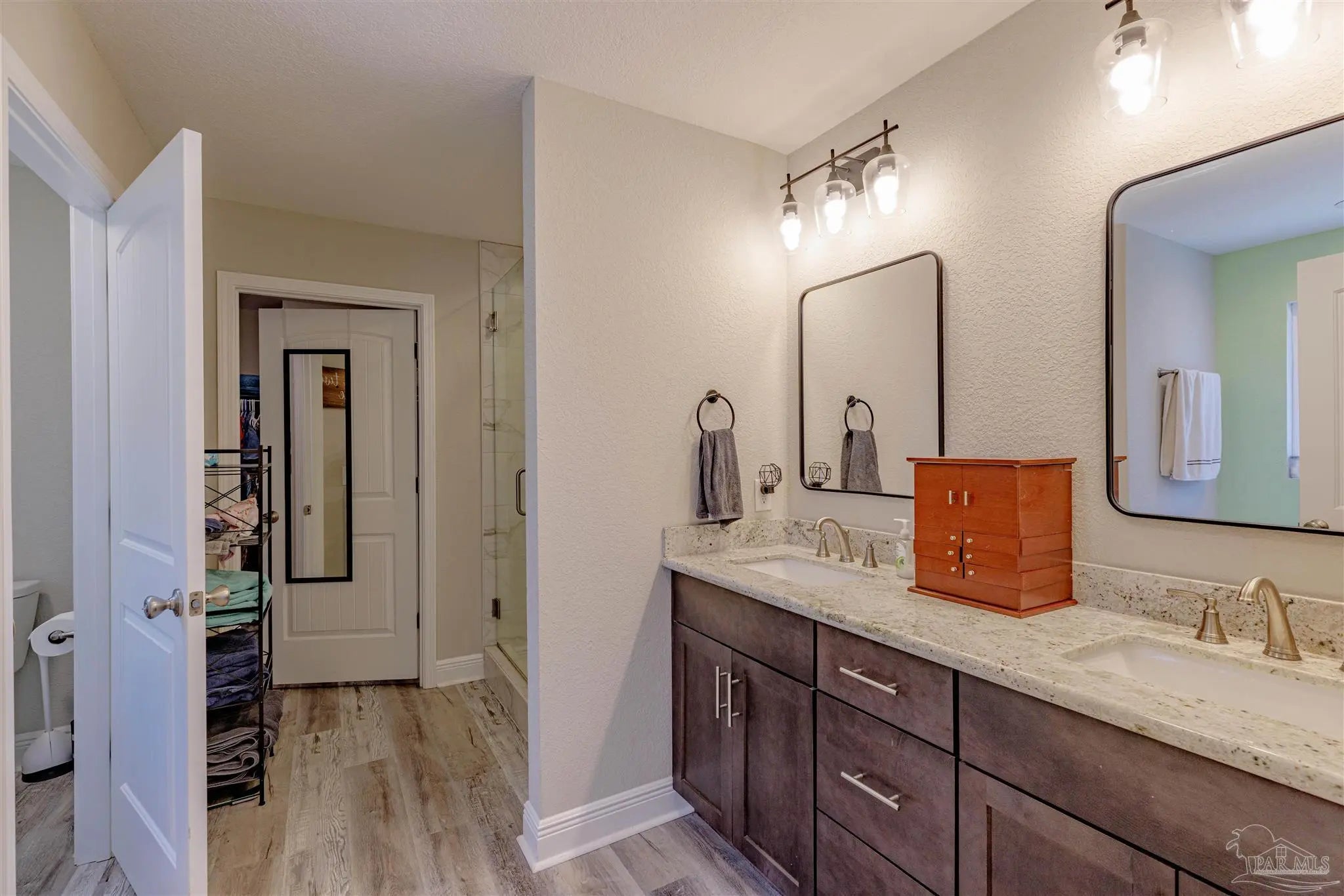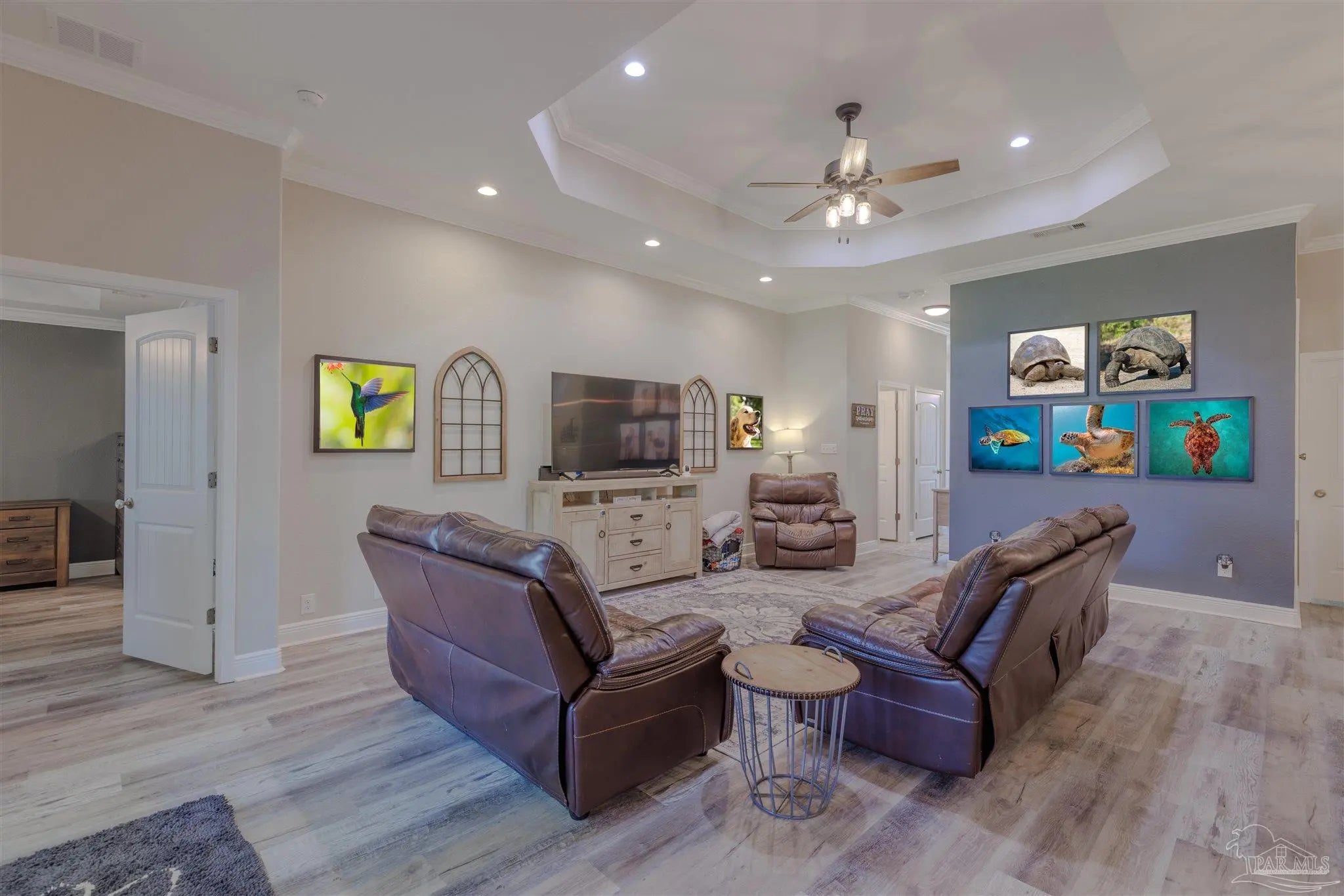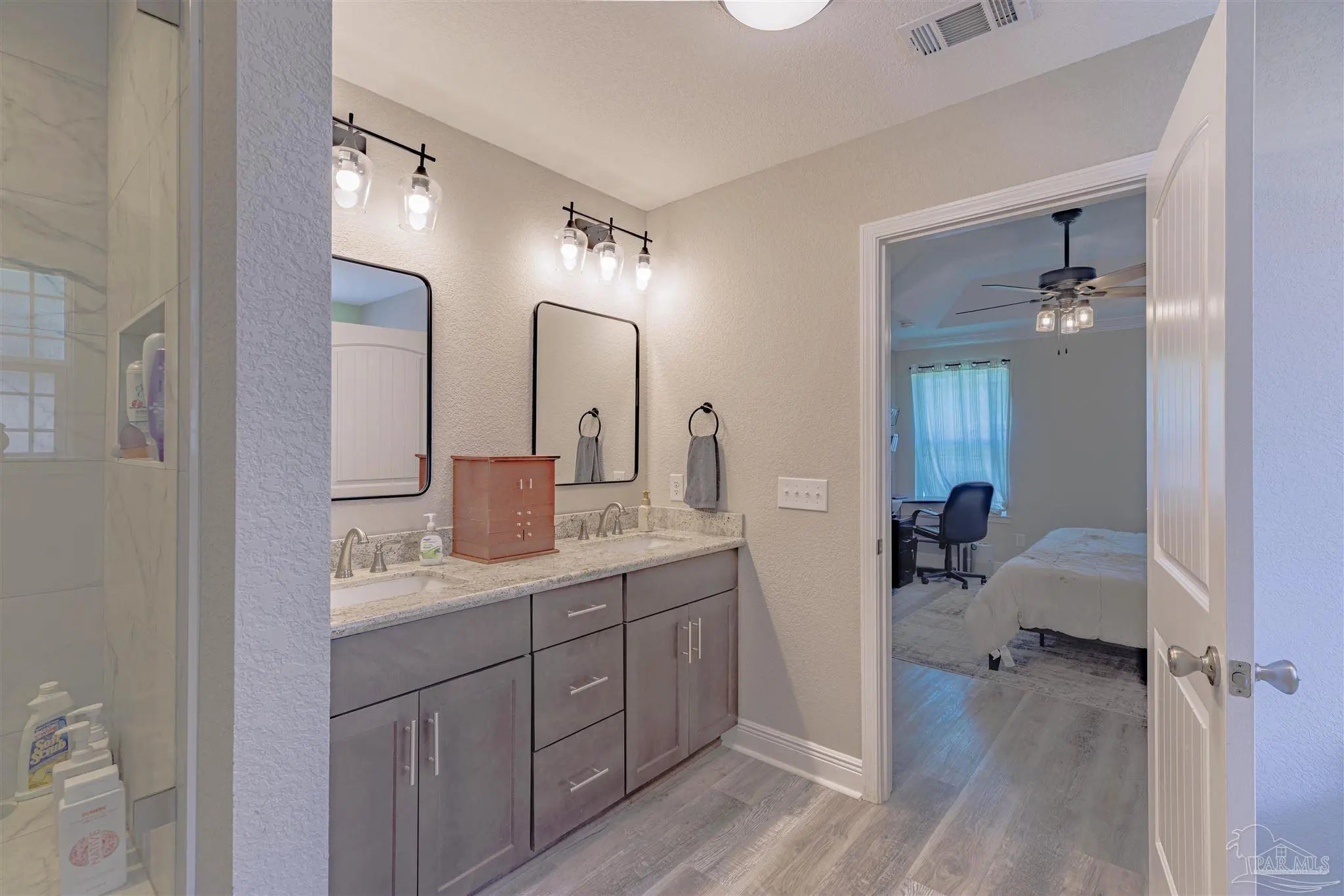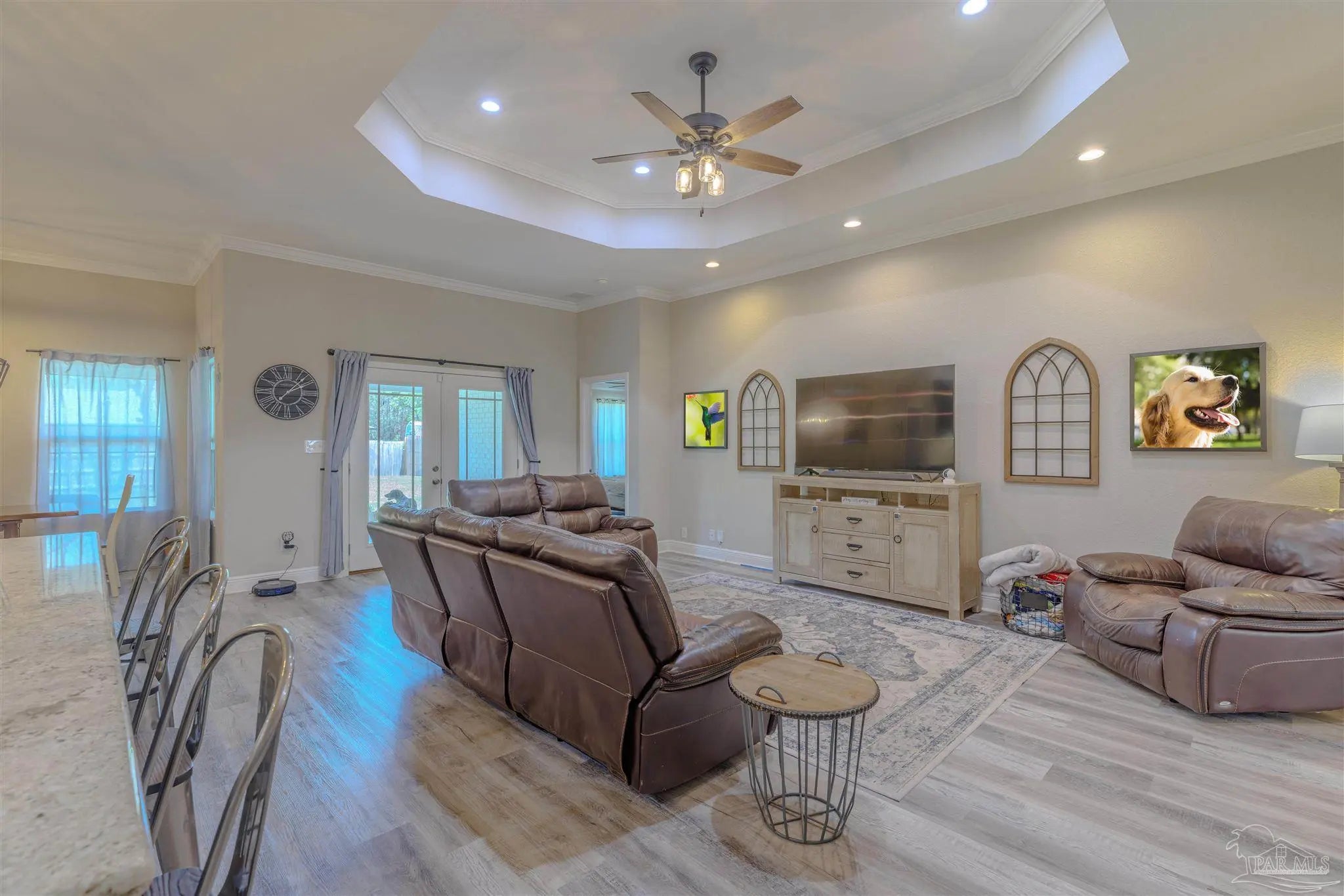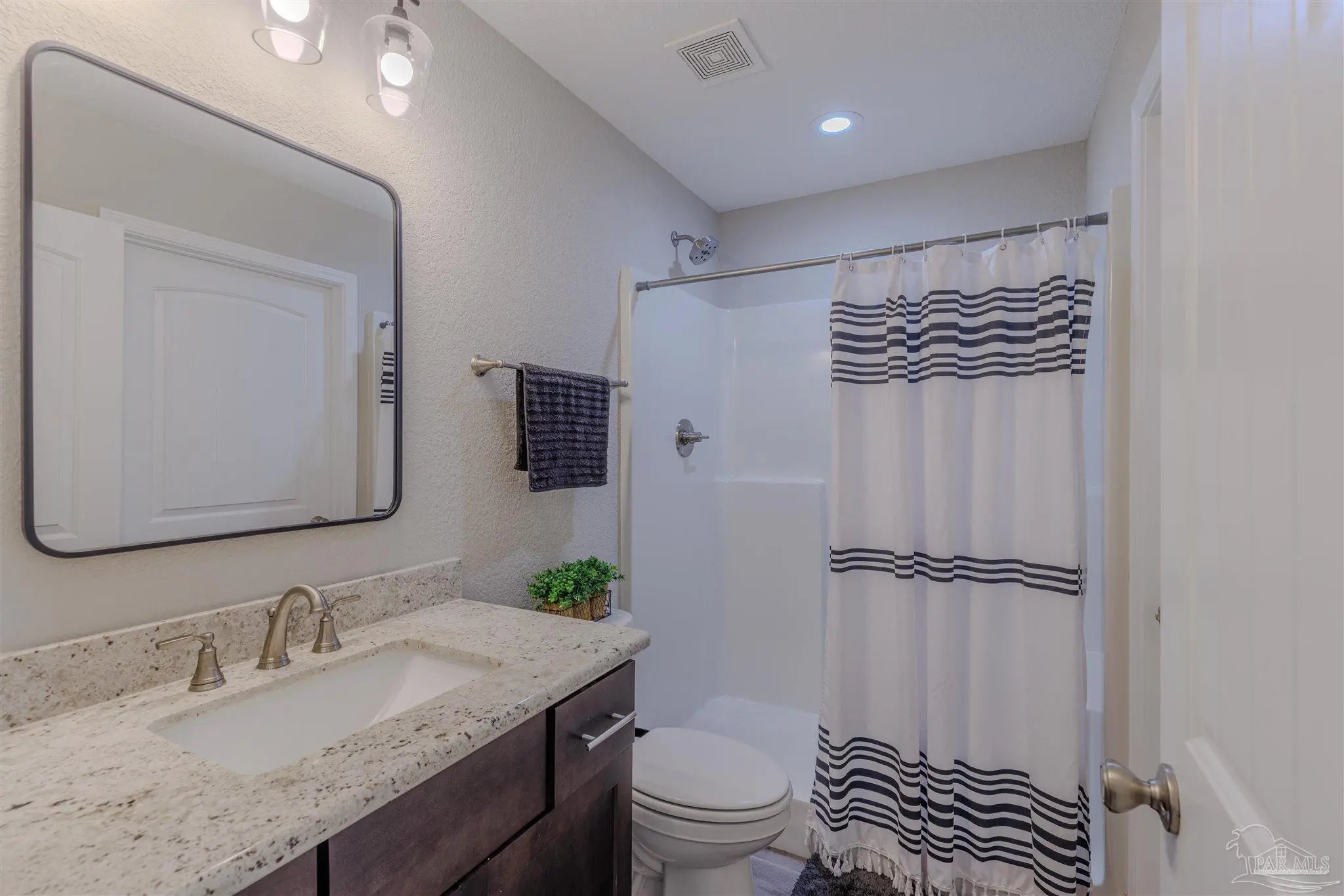 Beautiful 5BR/3BA-2254sf-NO HOA! Built in 2022 by Country Manor Homes. Located in the Tiger Point area of Gulf Breeze just minutes from Navarre and Pensacola Beaches. This all-brick and hardi-plank siding home sits on a .43 acre privacy fenced corner lot with NO HOA. Inside you’ll find luxury vinyl plank floors, 3 carpeted bedrooms, crown molding, granite counters in kitchen and bathrooms, and black farmhouse lighting throughout. The kitchen features stainless appliances, a farm sink, and french doors leading to a covered patio. Other highlights include 3 guest rooms with walk-in closets, high-end windows with hurricane shutters, sprinkler system on a well, ADT security, attic storage, color-matched gutters. Don’t miss out on this spacious, stylish, and close to the beach home as this one checks all the boxes!
