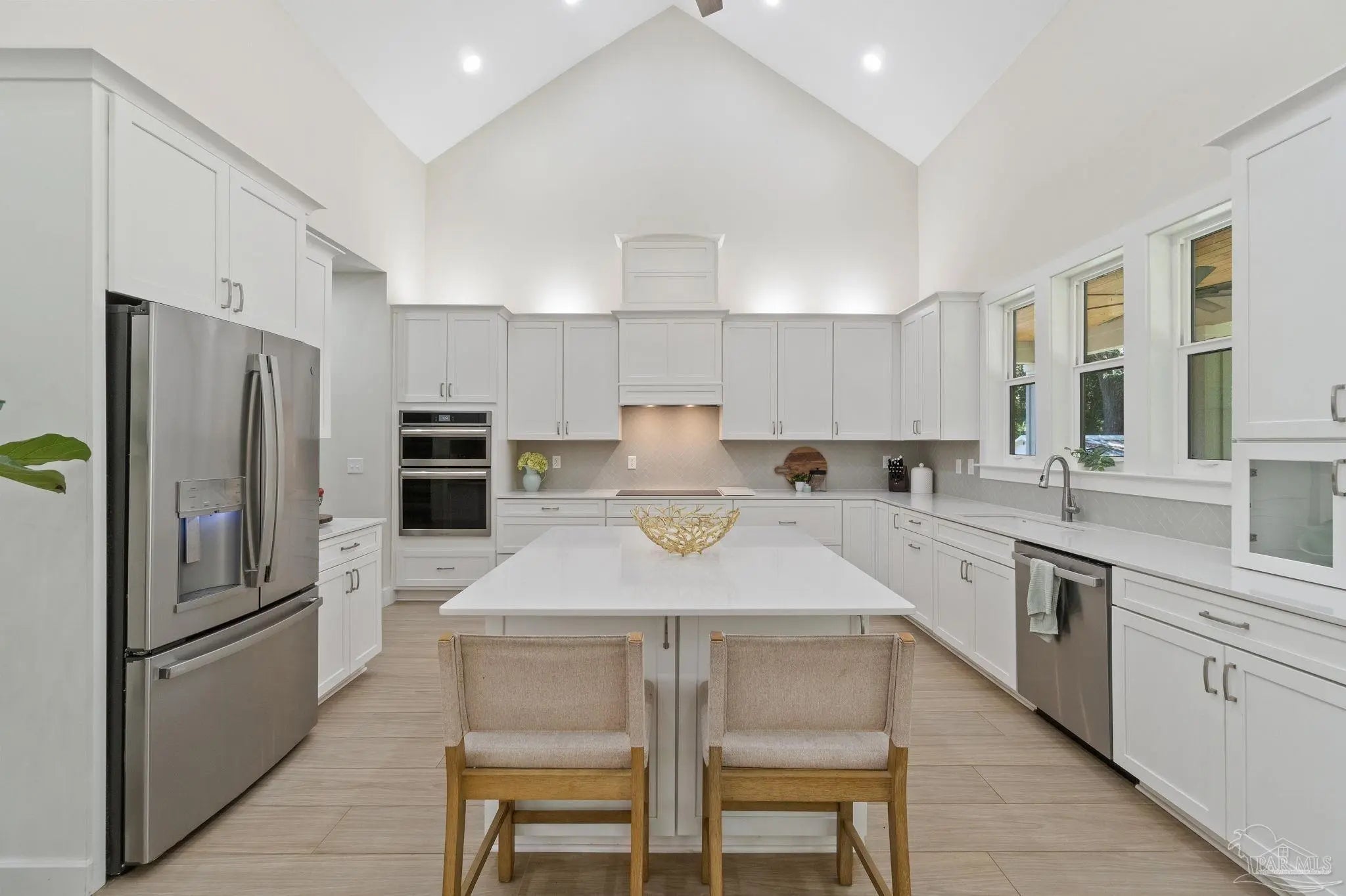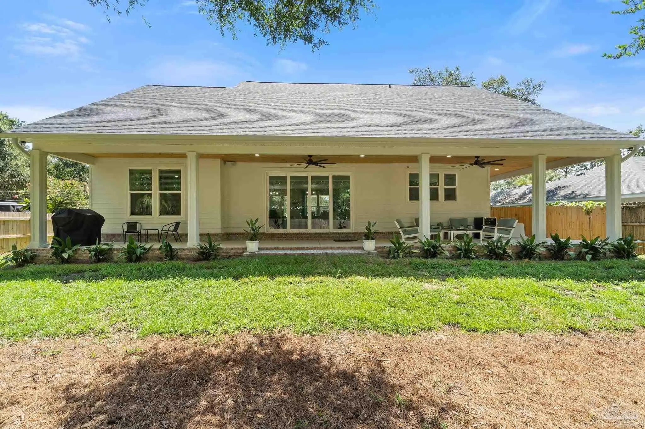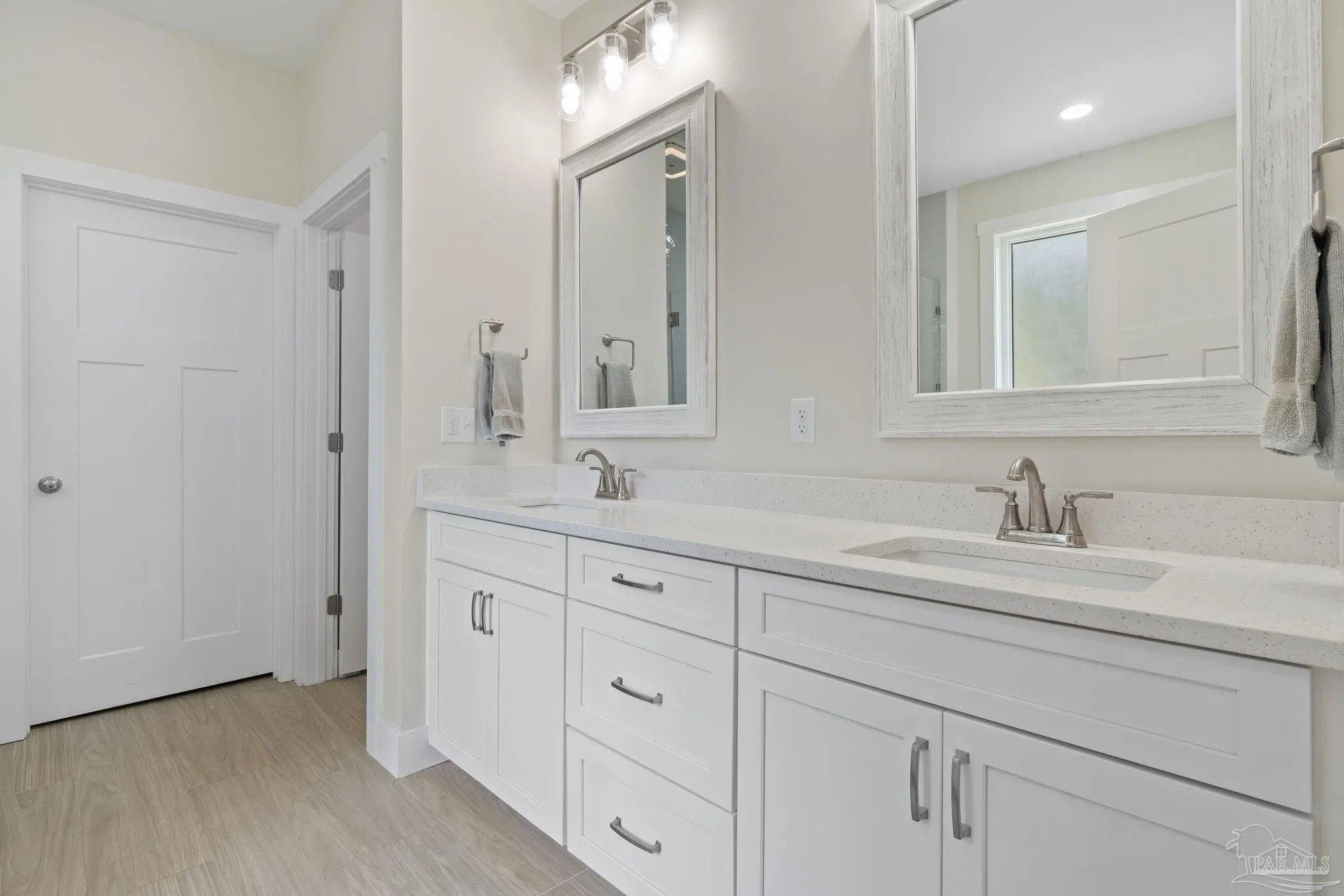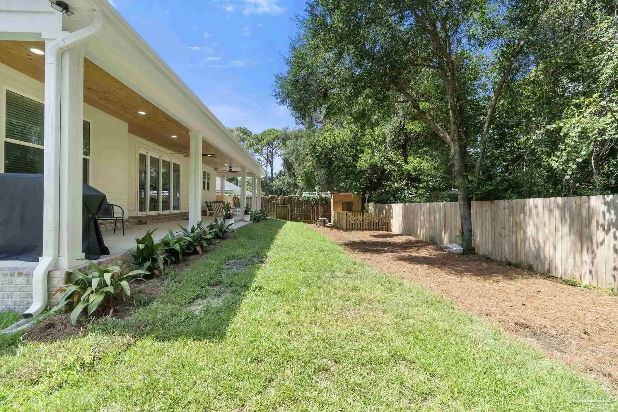 Welcome to your dream home, an exceptional newly built two-story residence perfectly positioned away from Hwy 98 in the heart of Gulf Breeze Proper. Thoughtfully designed for both comfort and sophistication, this property offers a rare blend of contemporary style, refined finishes, and coastal charm just minutes from the sugar-white sands of Pensacola Beach. Step inside to soaring cathedral ceilings in the main space, large format wood patterned tile, and a seamless open-concept layout that invites both grand entertaining and intimate family gatherings. The kitchen located just off the living room and expansive back porch, perfectly situated for entertaining as well as everyday life. Get ready to spend time in the kitchen with tons of cabinetry, quartz countertops, an oversized island, and stainless steel appliances. Retreat to the expansive primary suite on the main level, complete with a spa-inspired bath featuring a soaking tub, oversized walk-in shower, and dual vanities. Upstairs, you’ll find additional spacious bedrooms, a playroom/large 4th bedroom with 3 very large closets for extra storage, and a walk-in attic to make retrieving holiday decorations that much easier. This home is engineered for year-round enjoyment and peace of mind with energy-efficient systems and hurricane-rated windows and doors. Along with lower utility costs, enjoy a lower insurance cost. Situated just minutes from top-rated schools, boutique shopping, waterfront dining, and world-class boating and beaches, this is more than a home; it’s a lifestyle investment.