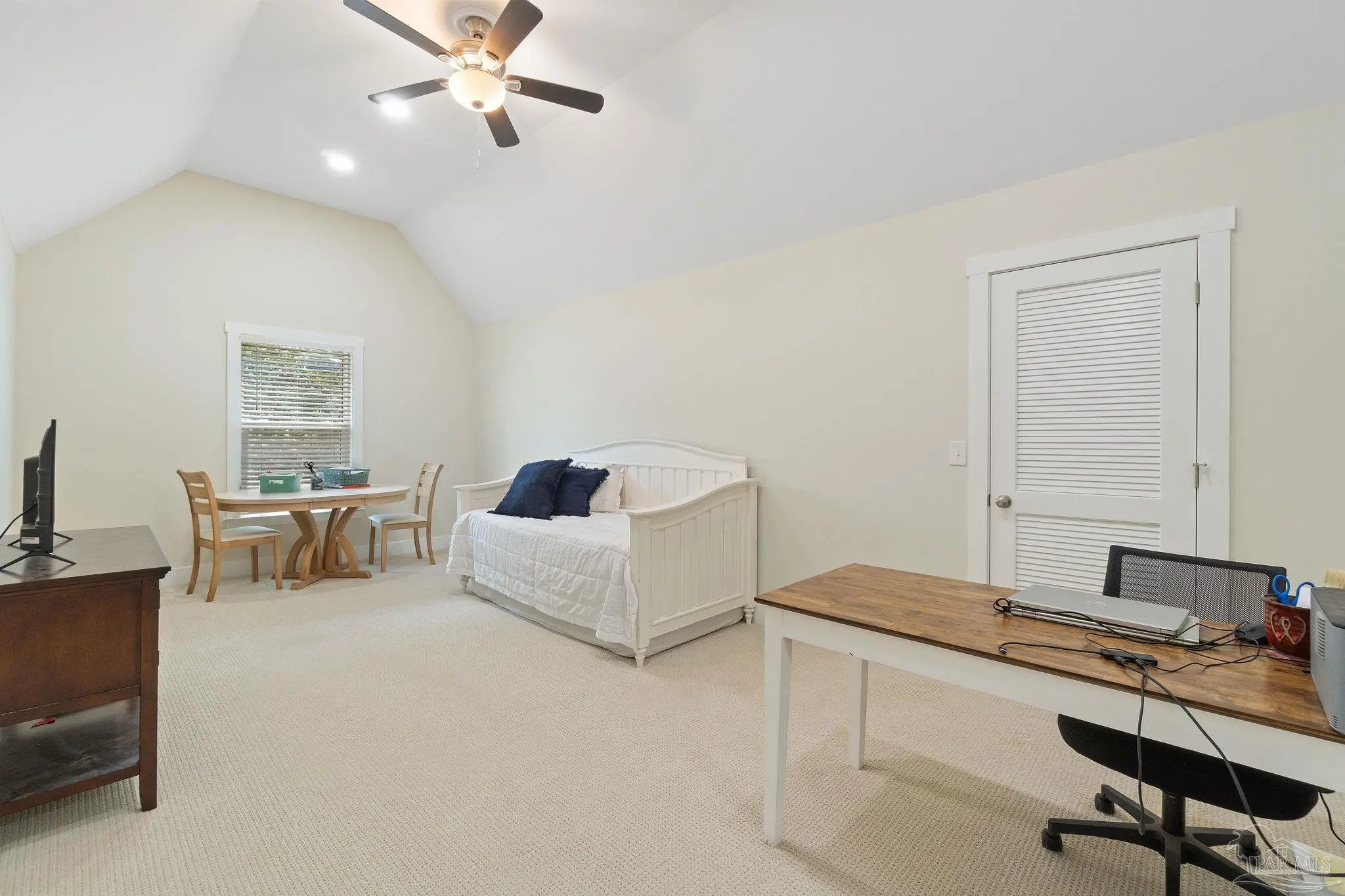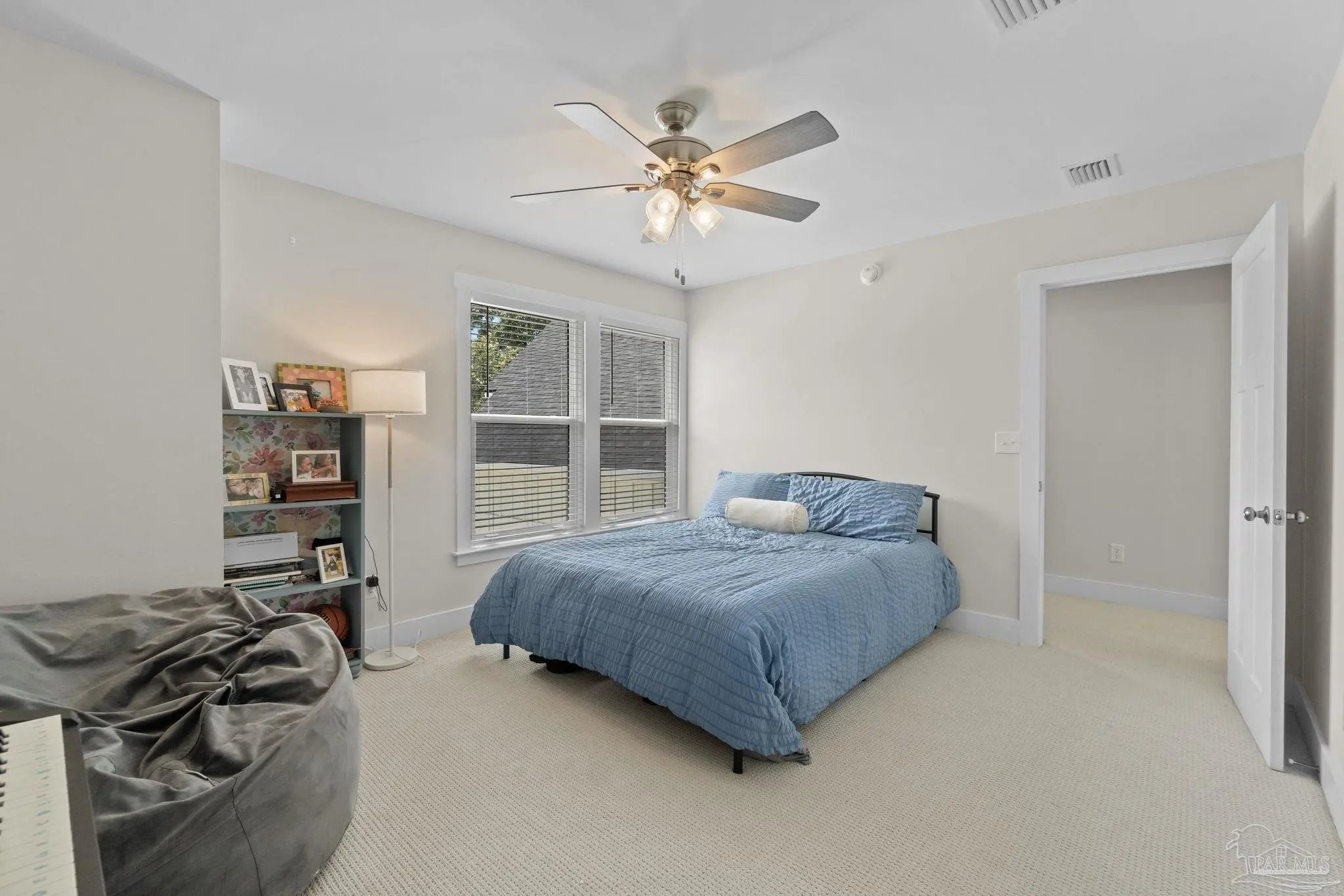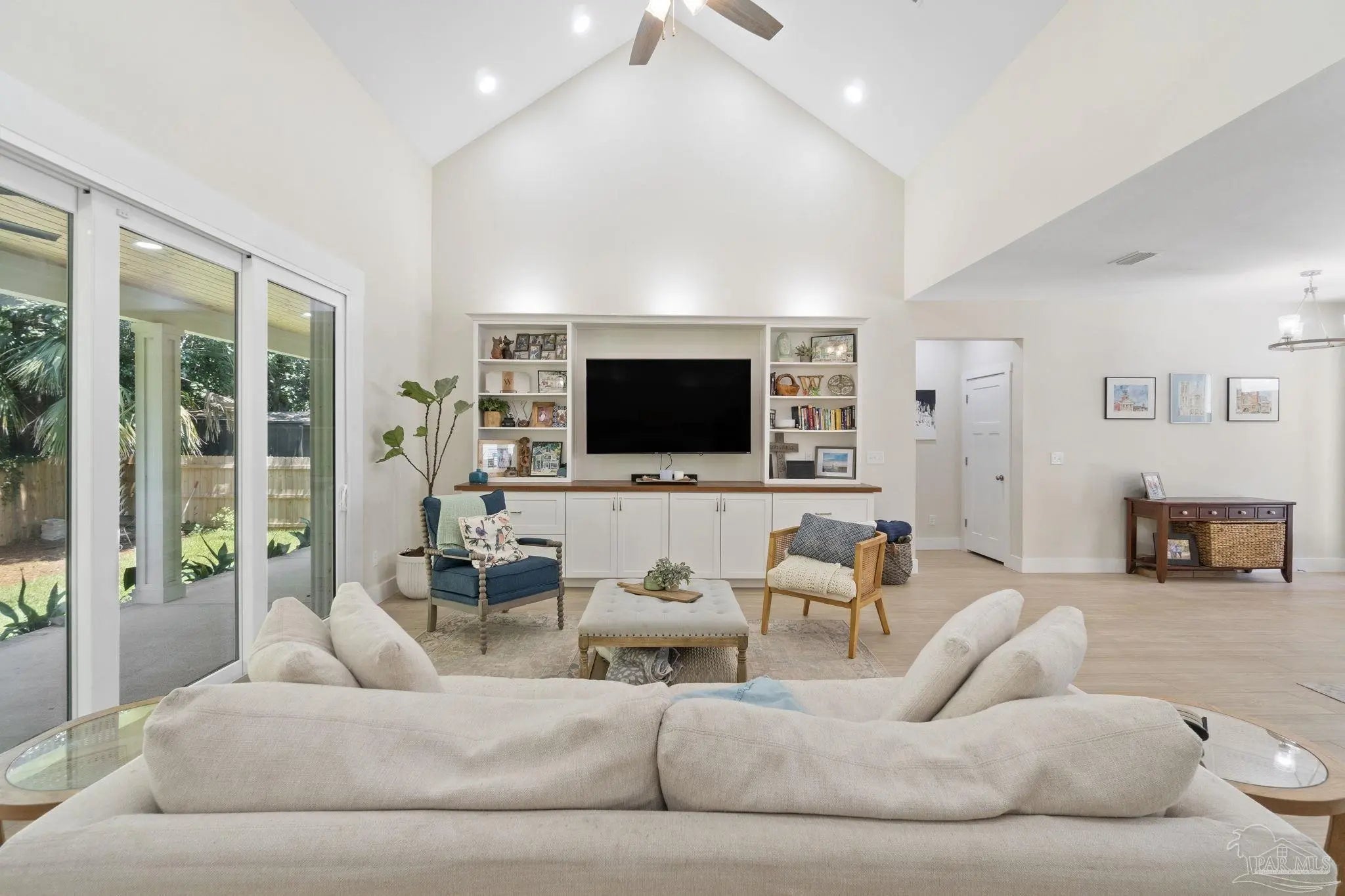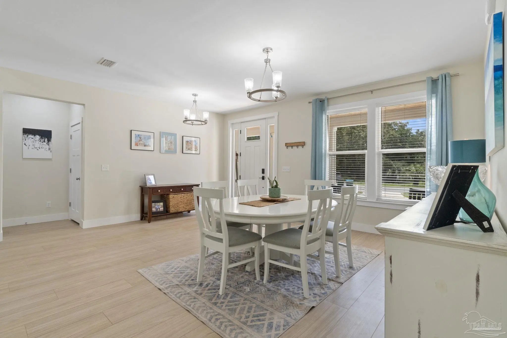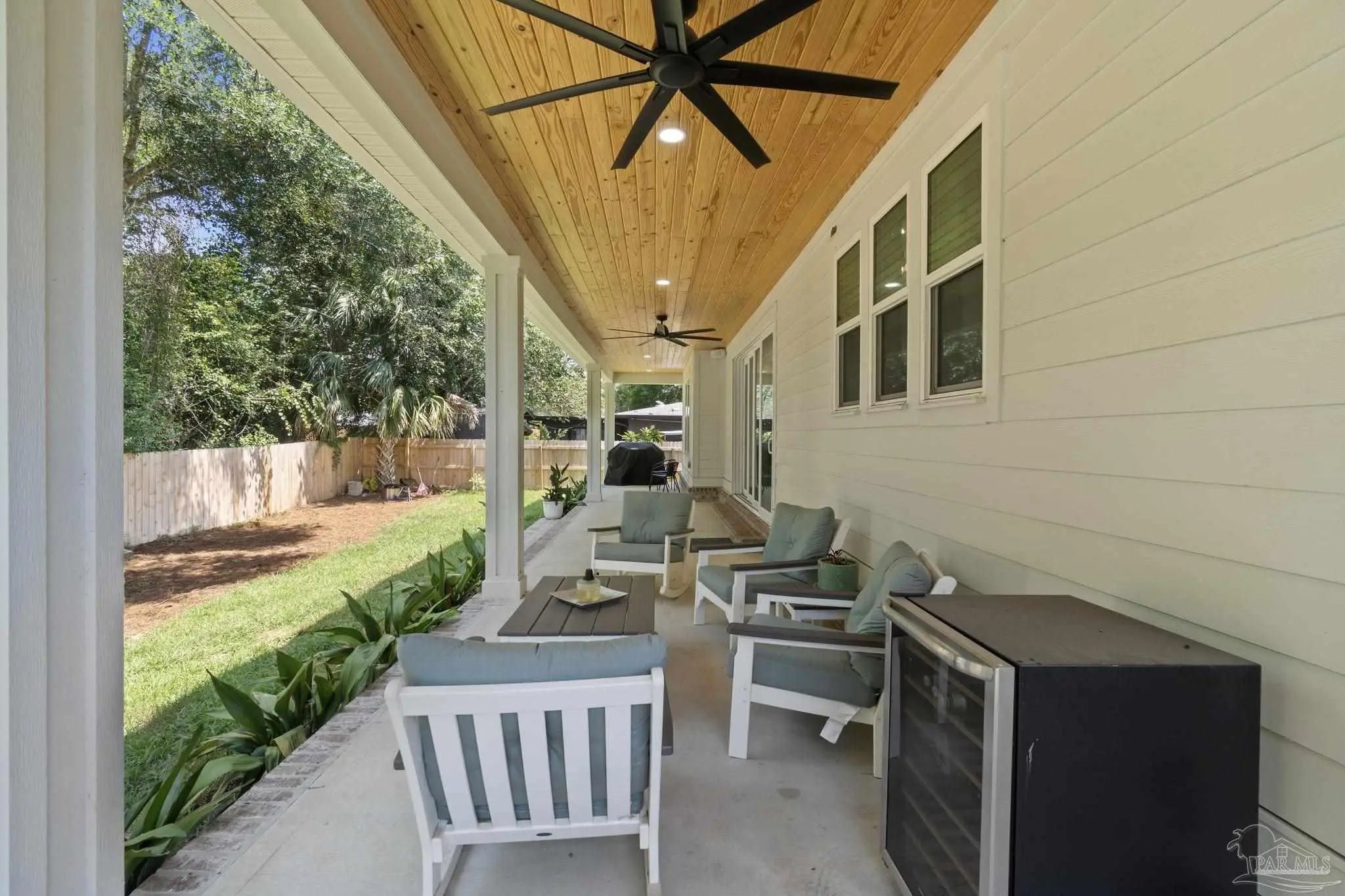 Welcome to your dream home, an exceptional newly built two-story residence perfectly positioned away from Hwy 98 in the heart of Gulf Breeze Proper. Thoughtfully designed for both comfort and sophistication, this property offers a rare blend of contemporary style, refined finishes, and coastal charm just minutes from the sugar-white sands of Pensacola Beach. Step inside to soaring cathedral ceilings in the main space, large format wood patterned tile, and a seamless open-concept layout that invites both grand entertaining and intimate family gatherings. The kitchen located just off the living room and expansive back porch, perfectly situated for entertaining as well as everyday life. Get ready to spend time in the kitchen with tons of cabinetry, quartz countertops, an oversized island, and stainless steel appliances. Retreat to the expansive primary suite on the main level, complete with a spa-inspired bath featuring a soaking tub, oversized walk-in shower, and dual vanities. Upstairs, you’ll find additional spacious bedrooms, a playroom/large 4th bedroom with 3 very large closets for extra storage, and a walk-in attic to make retrieving holiday decorations that much easier. This home is engineered for year-round enjoyment and peace of mind with energy-efficient systems and hurricane-rated windows and doors. Along with lower utility costs, enjoy a lower insurance cost. Situated just minutes from top-rated schools, boutique shopping, waterfront dining, and world-class boating and beaches, this is more than a home; it’s a lifestyle investment.
