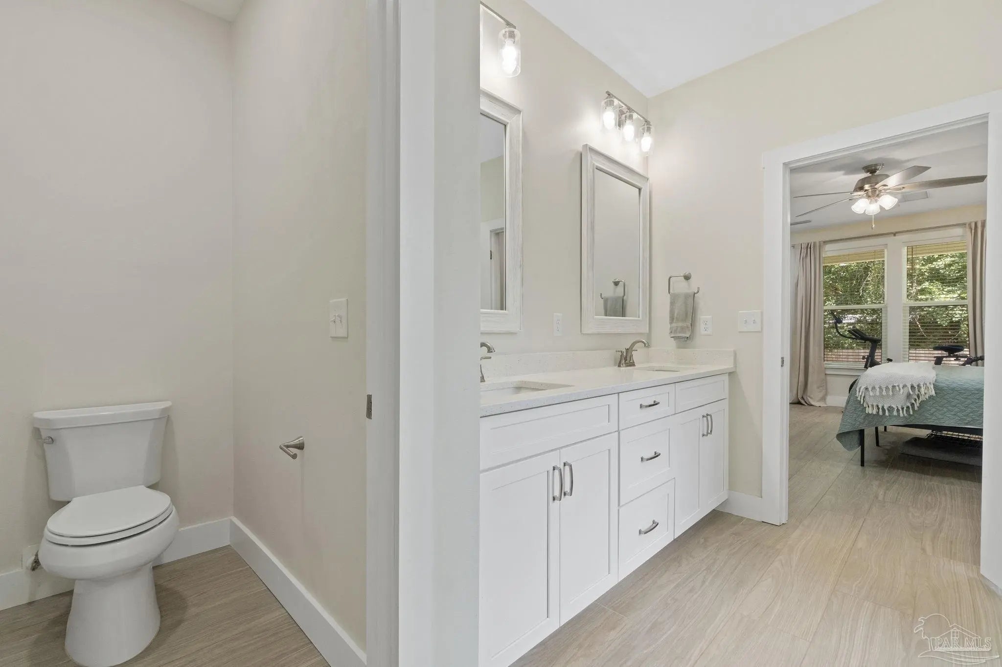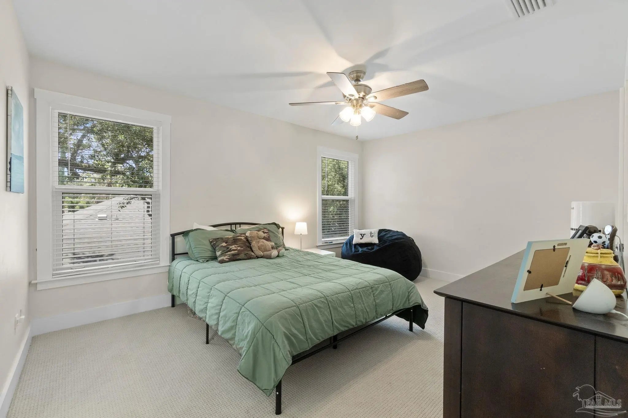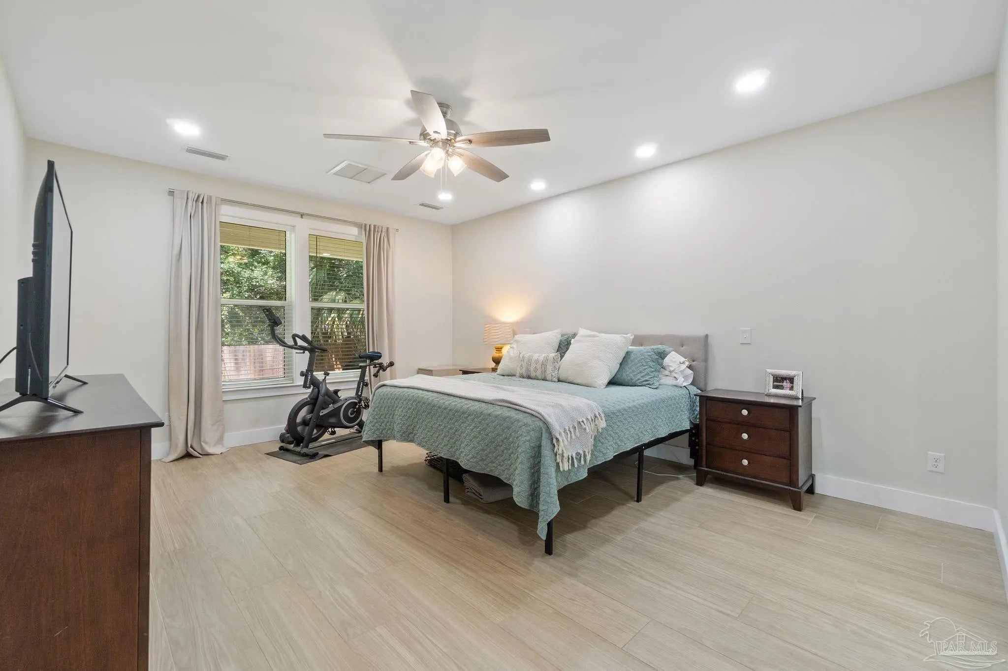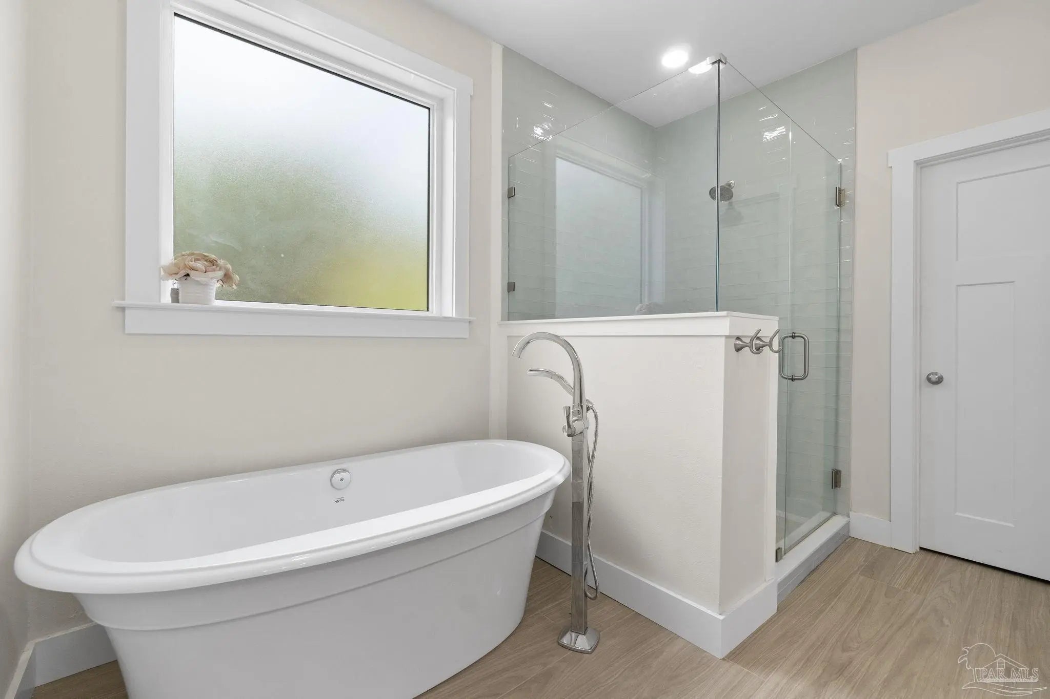 Welcome to your dream home, an exceptional newly built two-story residence perfectly positioned away from Hwy 98 in the heart of Gulf Breeze Proper. Thoughtfully designed for both comfort and sophistication, this property offers a rare blend of contemporary style, refined finishes, and coastal charm just minutes from the sugar-white sands of Pensacola Beach. Step inside to soaring cathedral ceilings in the main space, large format wood patterned tile, and a seamless open-concept layout that invites both grand entertaining and intimate family gatherings. The kitchen located just off the living room and expansive back porch, perfectly situated for entertaining as well as everyday life. Get ready to spend time in the kitchen with tons of cabinetry, quartz countertops, an oversized island, and stainless steel appliances. Retreat to the expansive primary suite on the main level, complete with a spa-inspired bath featuring a soaking tub, oversized walk-in shower, and dual vanities. Upstairs, you’ll find additional spacious bedrooms, a playroom/large 4th bedroom with 3 very large closets for extra storage, and a walk-in attic to make retrieving holiday decorations that much easier. This home is engineered for year-round enjoyment and peace of mind with energy-efficient systems and hurricane-rated windows and doors. Along with lower utility costs, enjoy a lower insurance cost. Situated just minutes from top-rated schools, boutique shopping, waterfront dining, and world-class boating and beaches, this is more than a home; it’s a lifestyle investment.