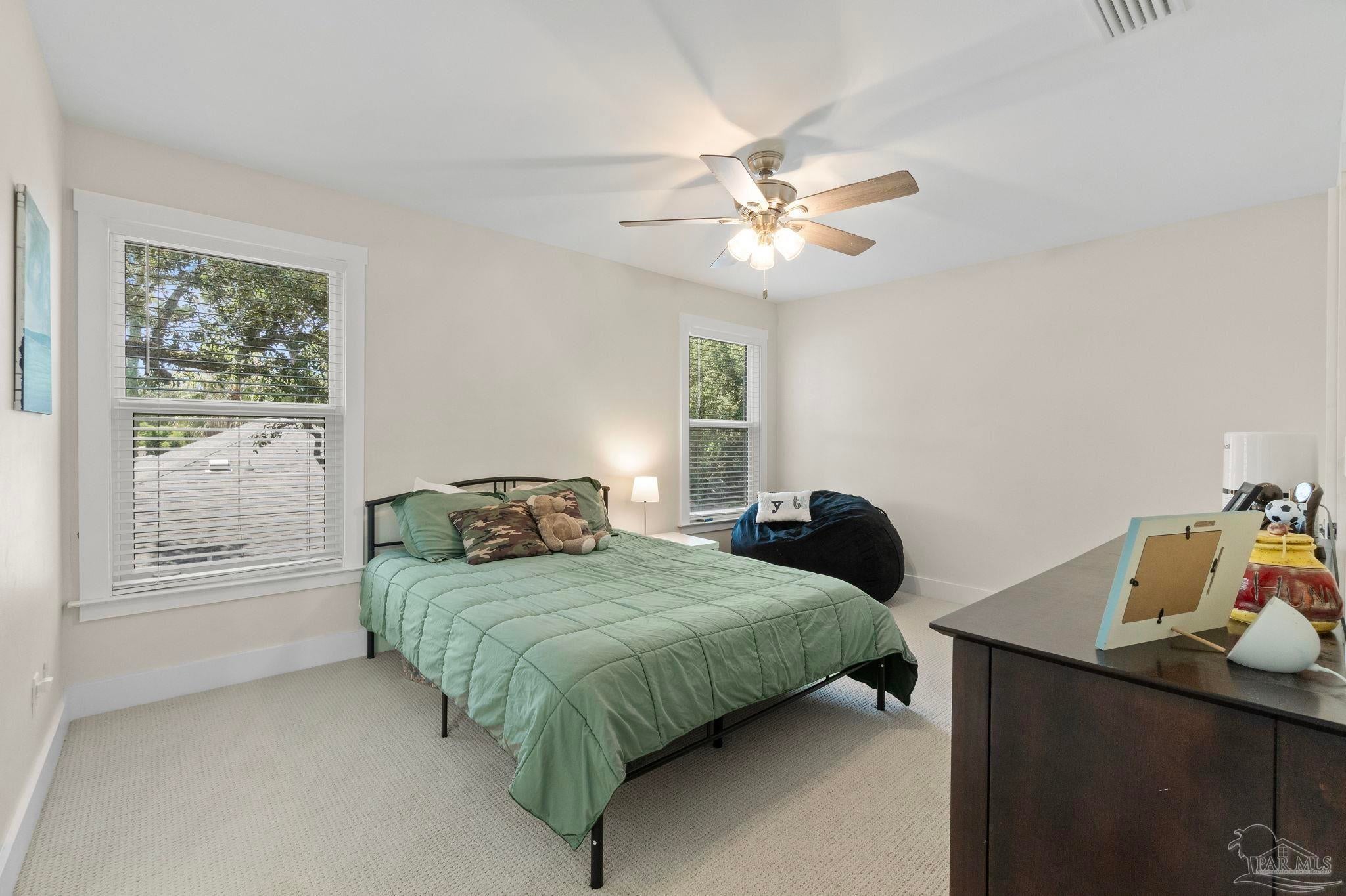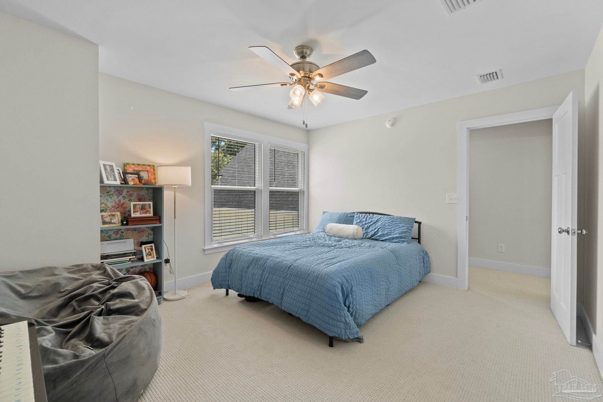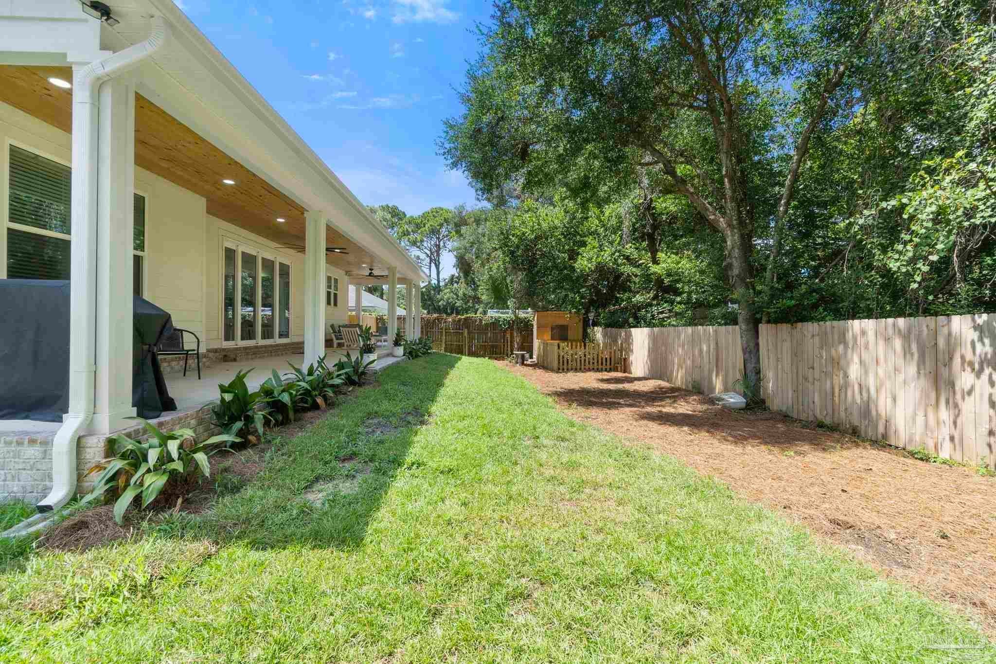 Welcome to your dream home, an exceptional newly built two-story residence perfectly positioned away from Hwy 98 in the heart of Gulf Breeze Proper. Thoughtfully designed for both comfort and sophistication, this property offers a rare blend of contemporary style, refined finishes, and coastal charm just minutes from the sugar-white sands of Pensacola Beach. Step inside to soaring cathedral ceilings in the main space, large format wood patterned tile, and a seamless open-concept layout that invites both grand entertaining and intimate family gatherings. The kitchen located just off the living room and expansive back porch, perfectly situated for entertaining as well as everyday life. Get ready to spend time in the kitchen with tons of cabinetry, quartz countertops, an oversized island, and stainless steel appliances. Retreat to the expansive primary suite on the main level, complete with a spa-inspired bath featuring a soaking tub, oversized walk-in shower, and dual vanities. Upstairs, you’ll find additional spacious bedrooms, a playroom/large 4th bedroom with 3 very large closets for extra storage, and a walk-in attic to make retrieving holiday decorations that much easier. This home is engineered for year-round enjoyment and peace of mind with energy-efficient systems and hurricane-rated windows and doors. Along with lower utility costs, enjoy a lower insurance cost. Situated just minutes from top-rated schools, boutique shopping, waterfront dining, and world-class boating and beaches, this is more than a home; it’s a lifestyle investment.