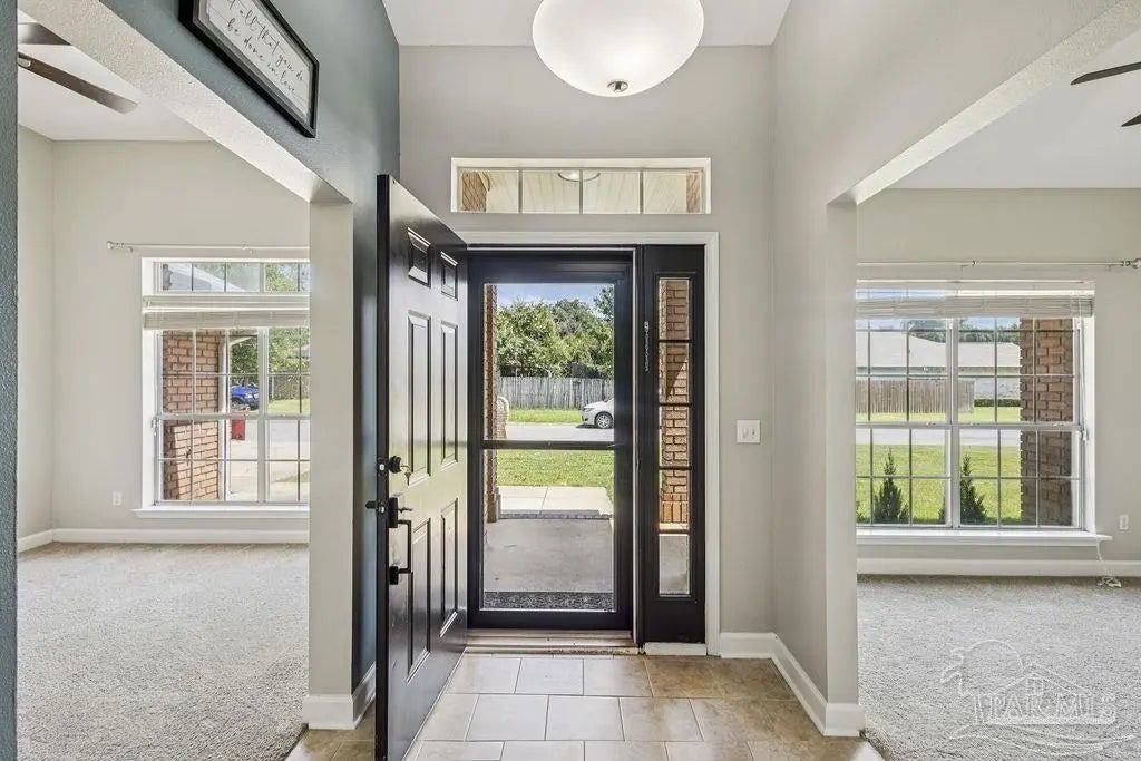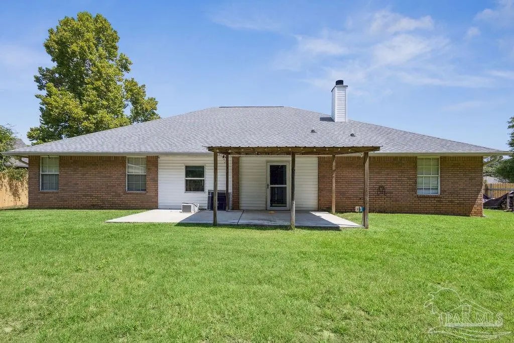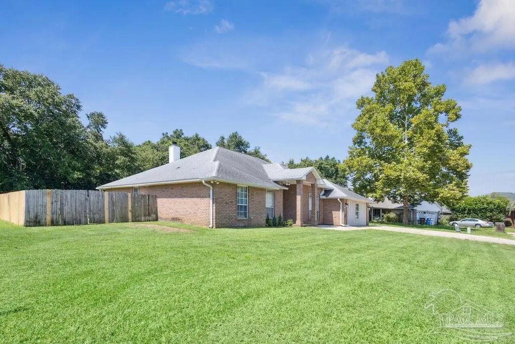 4 Bed / 3 Bath Brick Home on a .23 Acre Corner Lot – Located in the Heart of Pace! Situated on a spacious .23-acre corner lot, this all-brick 4-bedroom, 3-bathroom home offers comfort, character, and quality updates throughout—right in the heart of Pace. Major improvements include a 2019 roof, 2025 hot water heater, and all-new LED light fixtures. Inside, you’ll find a mix of tile and luxury vinyl plank flooring, with select areas upgraded to tile over LVP for a seamless and durable finish. The vaulted living room ceiling and wood-burning fireplace create a warm, inviting atmosphere. Additional highlights: • Dedicated office off the foyer • Formal dining room • Custom-tiled shower in the master suite • Updated vanities and tile tub surrounds in all bathrooms • Carpet replaced in 2020 • Garage (approx. 400 sqft) with mini split • 12x18 storage shed • Covered area over the back porch • Gutters, full irrigation system, and fenced yard • City sewer, Pace Water, and AT&T internet • HVAC maintained by Gulf Coast Air Care This one offers both functionality and value in a prime location—don’t miss your chance to tour!