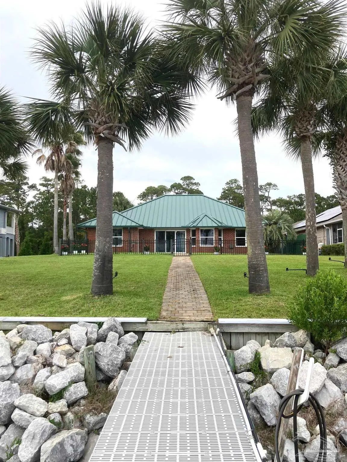 UNOBSTRUCTED WATER VIEWS and PIER with Water & Electricity, BOAT LIFTS, ENTERTAINMENT DECK. PIER has FLOW THRU DECKING (250+ foot long), BOAT LIFT capacities 20,000+ and 5,000 pound. LOCATED on the INTERCOASTAL WATERWAY between the mainland and the barrier island. FIVE BEDROOM or 4 Bedrooms with a Studio and (private entrance) 3 BATHROOMS. Public Water and Sewer, Private Well, Pump and Irrigation System, Underground Utilities, NO HOA, RV & BOAT PARKING in your driveway, TERMITE BOND IS TRANSFERABLE. Home inspection, Survey and Elevation Certificate have been accomplished for a QUICK CLOSING. Check out County Flood map which shows house outside flood delineation. ALL BRICK with METAL ROOF, Tiled throughout with knock down texture on the ceiling, guest suite w/bath & outside entrance, walk in shower and handicap features. Split bedroom floor plan. Master bath and bedroom have a water view, jetted tub, separate shower, & double vanity. Fifth bedroom can be a multipurpose room with refrigerator, Daiken Heating and Air Unit, Storage Cabinets, Small closet, plumbing for sink, and separate entrance. The garage has storage cabinets, 220 Volt, ac and heat, refinished floor, hurricane coverage, hot & cold water deep sink, and two car garage w/opener. The kitchen has granite counter tops, wine glass rack, microwave, new fridge, stove, under counter lights, breakfast bar looking into oversized living and dining area, and a breakfast nook with spectacular water views. Electric fireplace, under the counter lighting, outdoor dusk to dawn lighting. Check out the updated features in the documents section. CALL AGENT FOR PERSONAL TOUR and any questions. Inquire about FL Homestead Exemption for 2026.