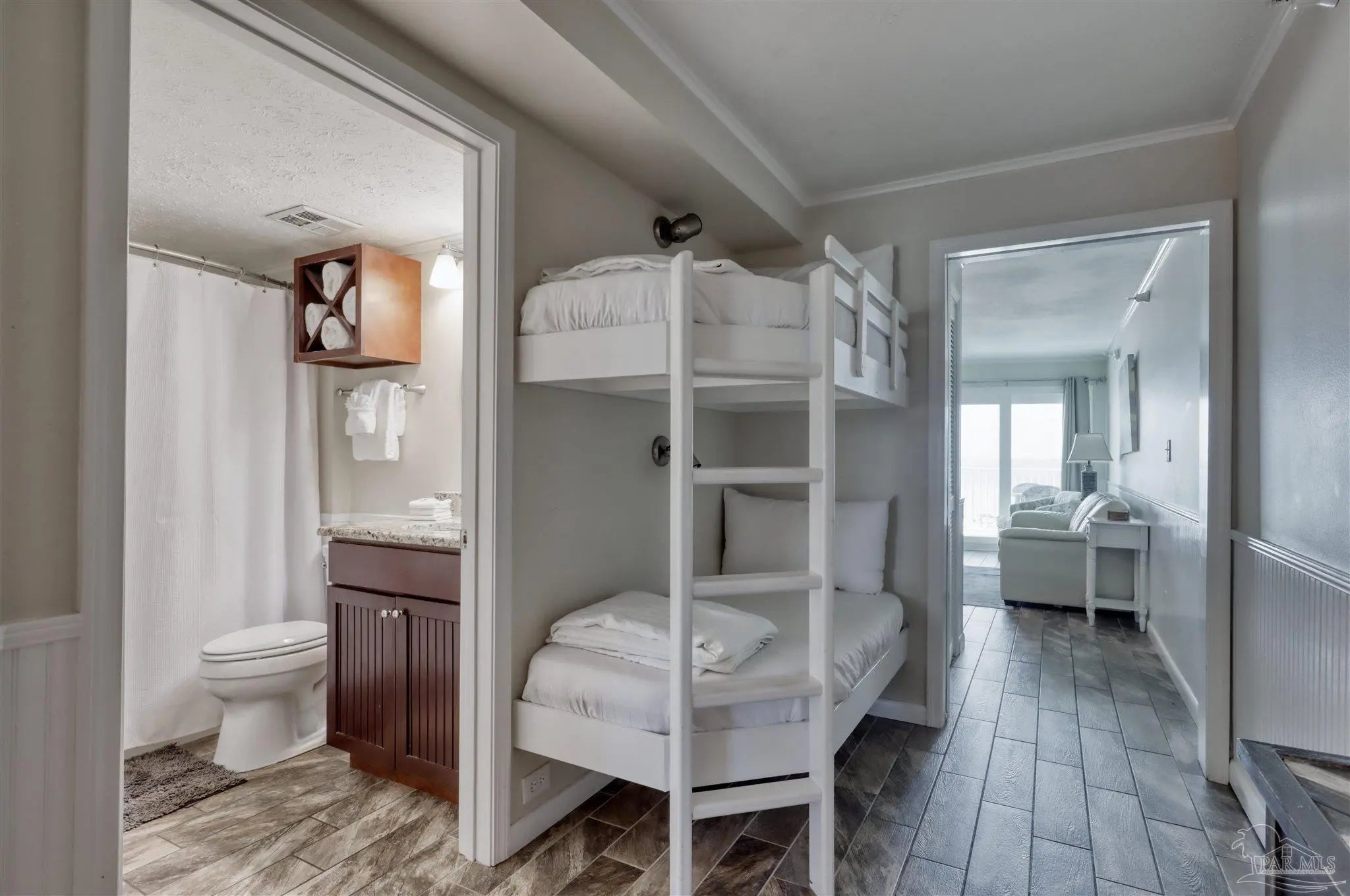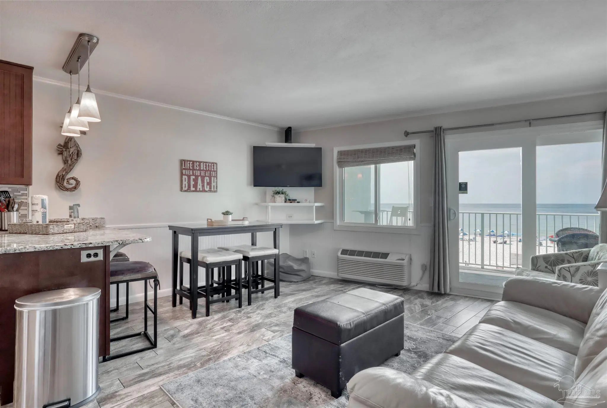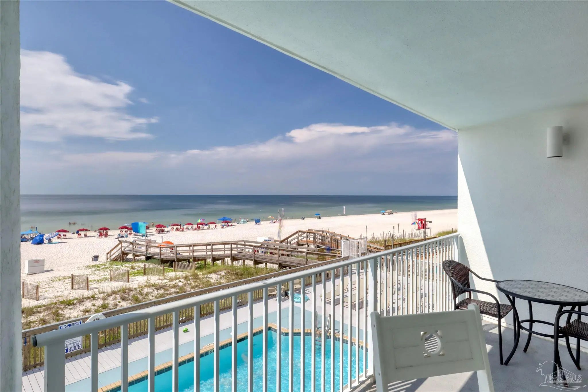 Looking for a Vacation Rental? Strong Rental Revenue makes this condo the one to by. You will love the breathtaking direct Gulf Waters views. From sunrise to sundown your balcony view is gorgeous. Gaze at the pool or the Gulf. Enjoy the white sand beach along with expansive and fabulous views from this direct Gulf Front unit at Perdido Skye. Fully Furnished immaculate one bedroom full bath with hall bunk beds, sleeps 6. Freshly Painted with wainscot in the open living area and hallway. Beautifully furnished and decorated for gatherings and guests. The open living, dining kitchen area lead to the balcony and gorgeous beach views. The Kitchen offers Gulf views through modern decor with beautiful cabinetry, stainless appliances and granite counters. Play in the emerald green waters and then relax in the heated pool. Well furnished fitness room on ground floor adjacent to the crisp in summer and heated in winter pool. Shopping and restaurants just steps across the street. Condo is a strong rental and awaits your adventures. Come see this one and make an offer today. INFORMATION AND MEASUREMENTS BELIEVED ACCURATE. BUYER AND BUYER'S AGENT TO CONFIRM ALL INFORMATION DURING DUE DILIGENCE.
