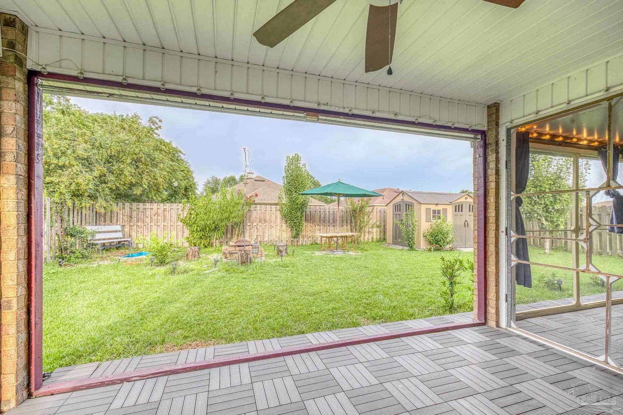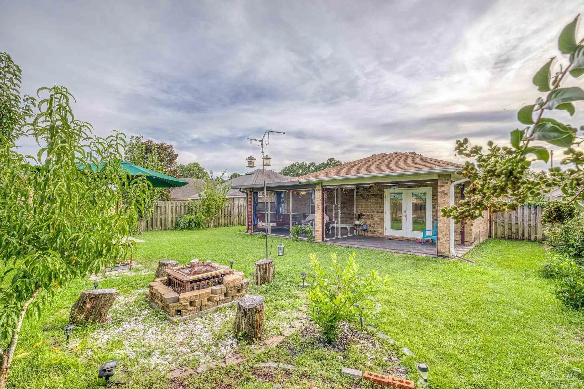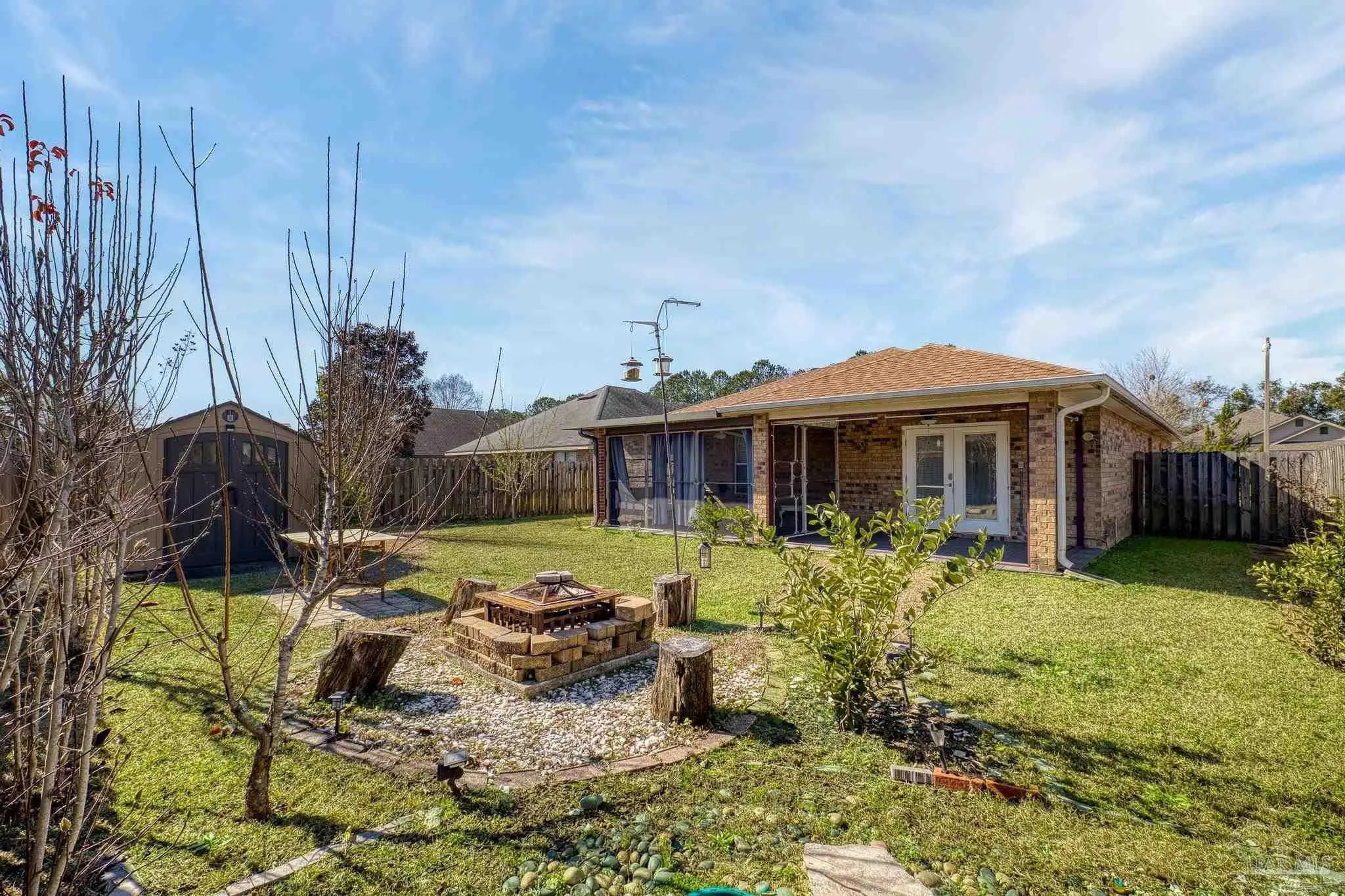This beautifully cared-for 3-bedroom, 2-bath brick home offers comfort, convenience, and peace of mind with major updates already complete—including a 2-year-old roof, HVAC system less than a year old, and a 2-year-old water heater. A lush, manicured front lawn and thoughtfully designed landscaping create strong curb appeal from the moment you arrive. Inside, the open-concept living area features high ceilings and easy-to-maintain tile flooring, creating a bright and inviting space that flows seamlessly into the dining area and kitchen. There's room for a full dining table, plus a breakfast bar fantastic for casual meals. The kitchen offers stainless steel appliances, a large pantry, and ample cabinet space to keep everything organized. A split floor plan ensures privacy, with the spacious primary suite on one side of the home, complete with a soaking tub, separate shower, and walk-in closet. Two additional bedrooms and a full bath are located on the opposite side—ideal for family or guests. Out back, enjoy the best of indoor-outdoor living with a large covered patio that’s half screened-in for relaxing bug-free evenings, and half open to the backyard—fantastic for grilling, entertaining, or soaking up the sunshine. The fully fenced yard offers plenty of grassy space, a firepit for cozy nights, and a yard building for extra storage. This home truly combines functionality, comfort, and charm—ready for you to move in and enjoy!