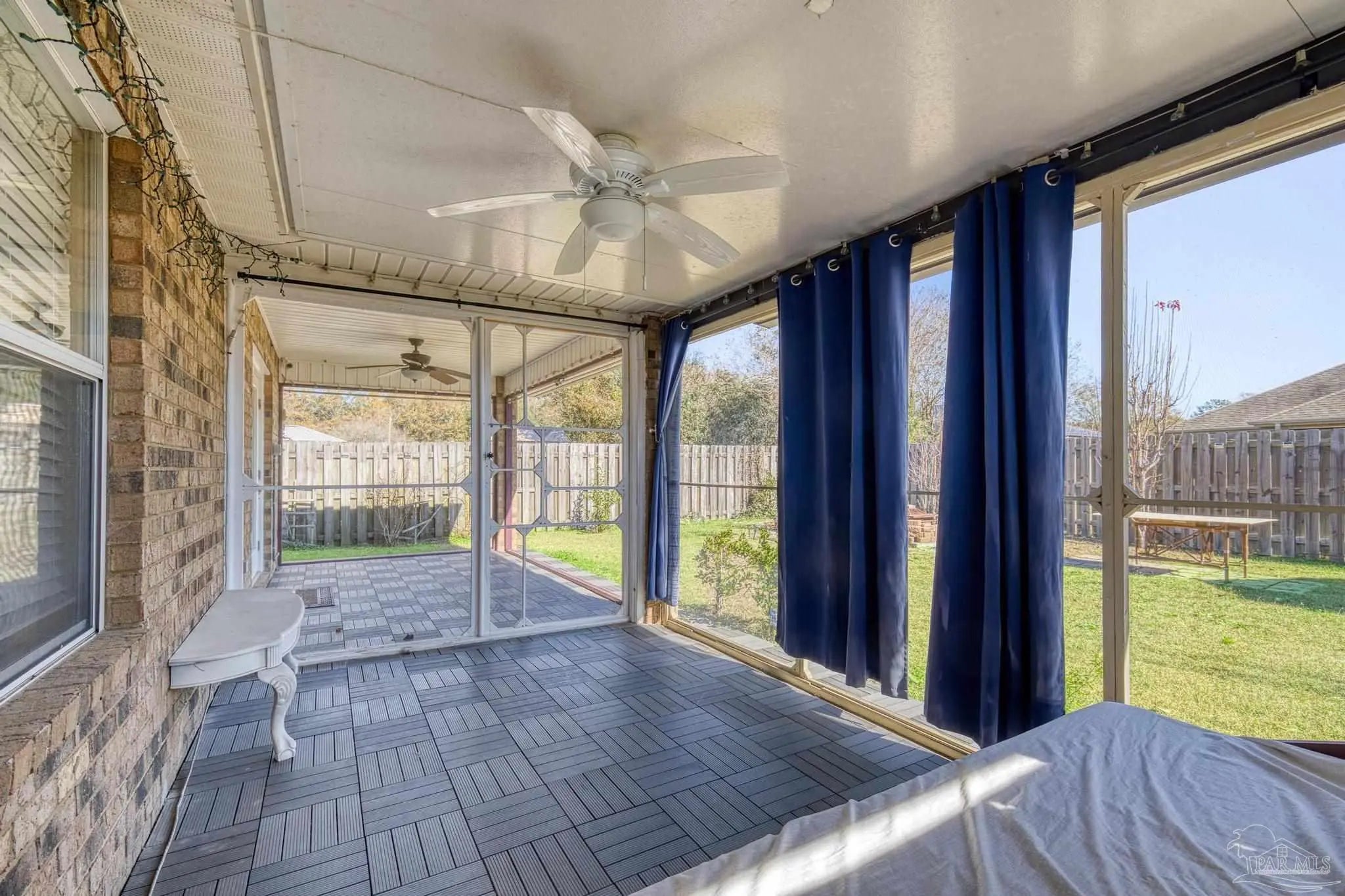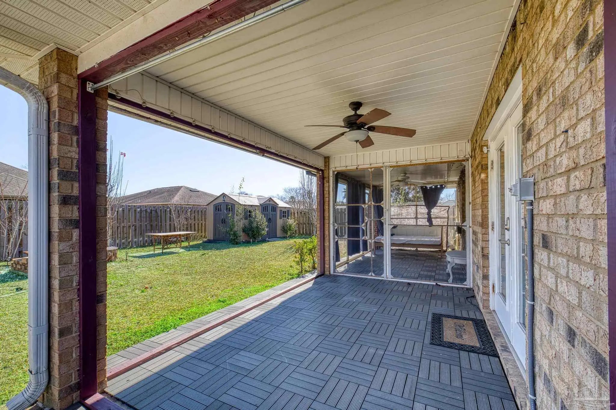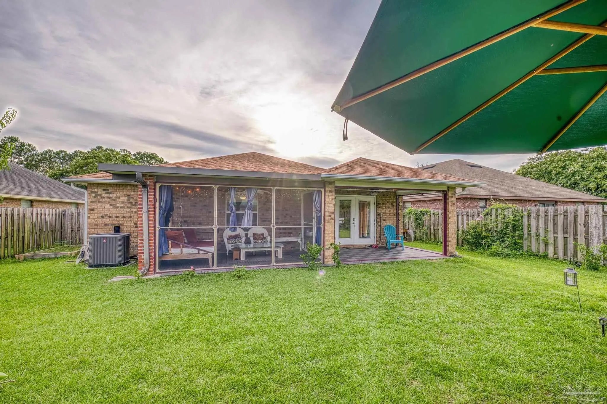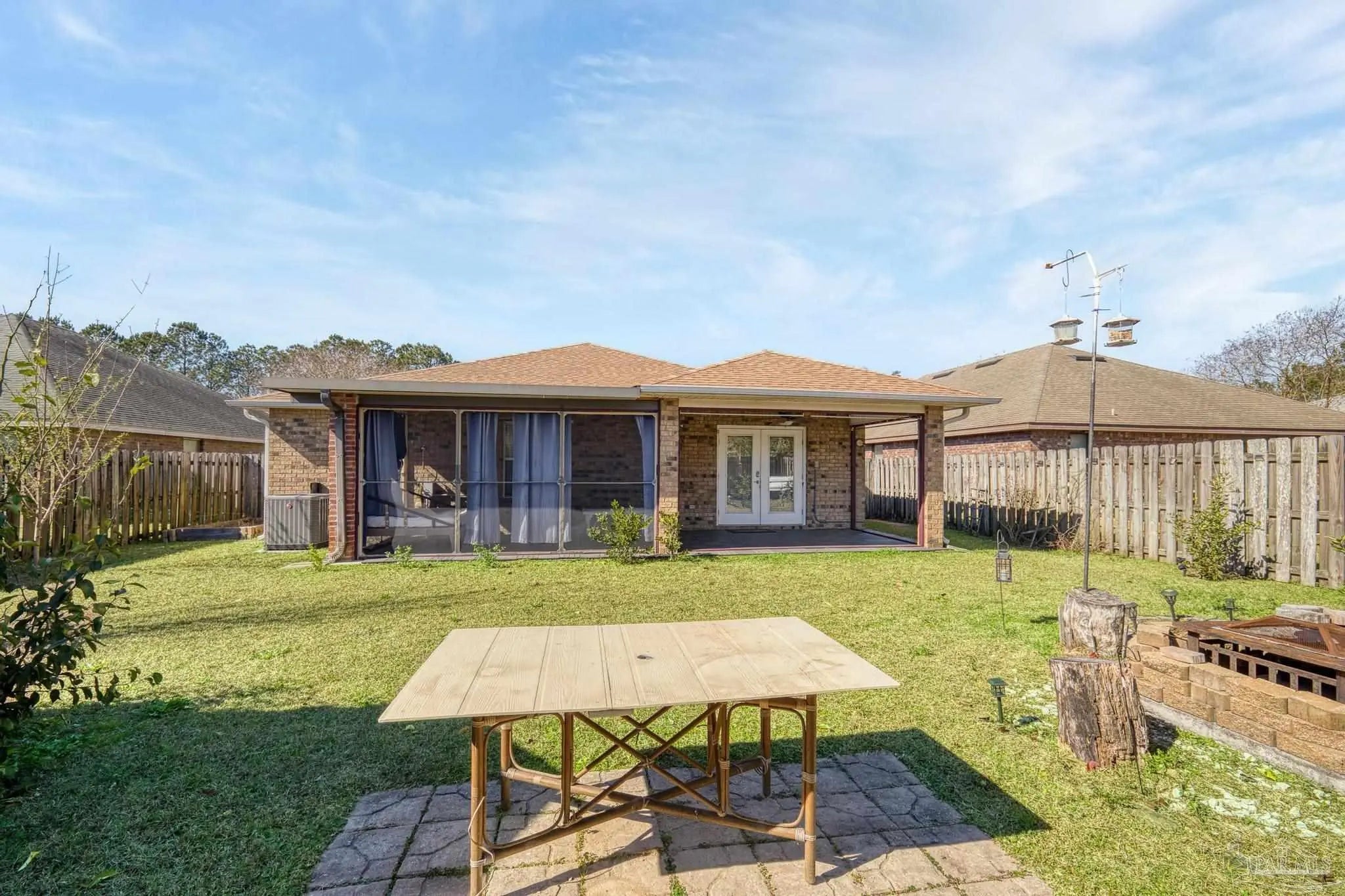 This beautifully cared-for 3-bedroom, 2-bath brick home offers comfort, convenience, and peace of mind with major updates already complete—including a 2-year-old roof, HVAC system less than a year old, and a 2-year-old water heater. A lush, manicured front lawn and thoughtfully designed landscaping create strong curb appeal from the moment you arrive. Inside, the open-concept living area features high ceilings and easy-to-maintain tile flooring, creating a bright and inviting space that flows seamlessly into the dining area and kitchen. There's room for a full dining table, plus a breakfast bar fantastic for casual meals. The kitchen offers stainless steel appliances, a large pantry, and ample cabinet space to keep everything organized. A split floor plan ensures privacy, with the spacious primary suite on one side of the home, complete with a soaking tub, separate shower, and walk-in closet. Two additional bedrooms and a full bath are located on the opposite side—ideal for family or guests. Out back, enjoy the best of indoor-outdoor living with a large covered patio that’s half screened-in for relaxing bug-free evenings, and half open to the backyard—fantastic for grilling, entertaining, or soaking up the sunshine. The fully fenced yard offers plenty of grassy space, a firepit for cozy nights, and a yard building for extra storage. This home truly combines functionality, comfort, and charm—ready for you to move in and enjoy!