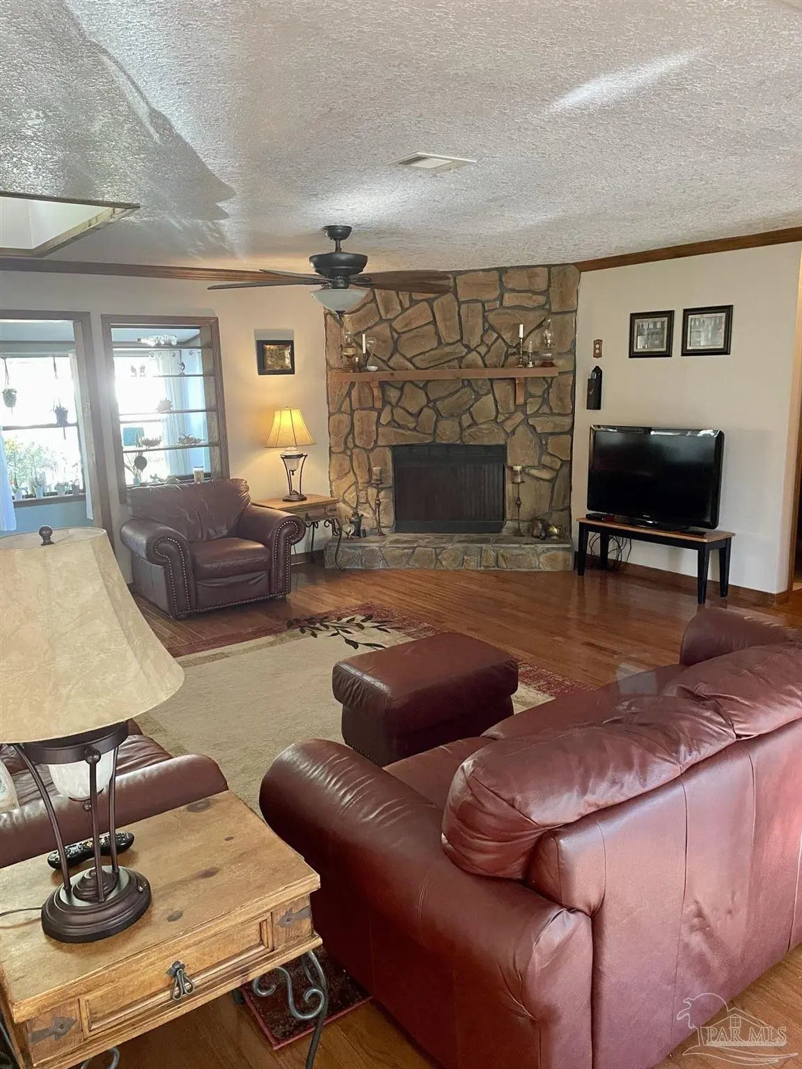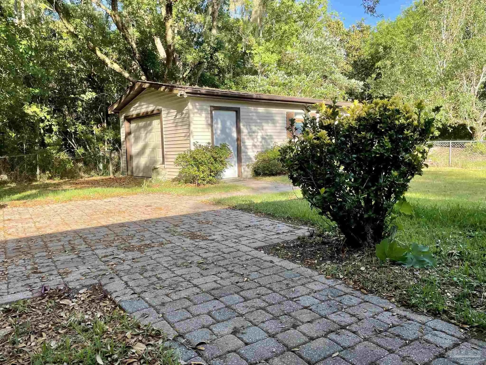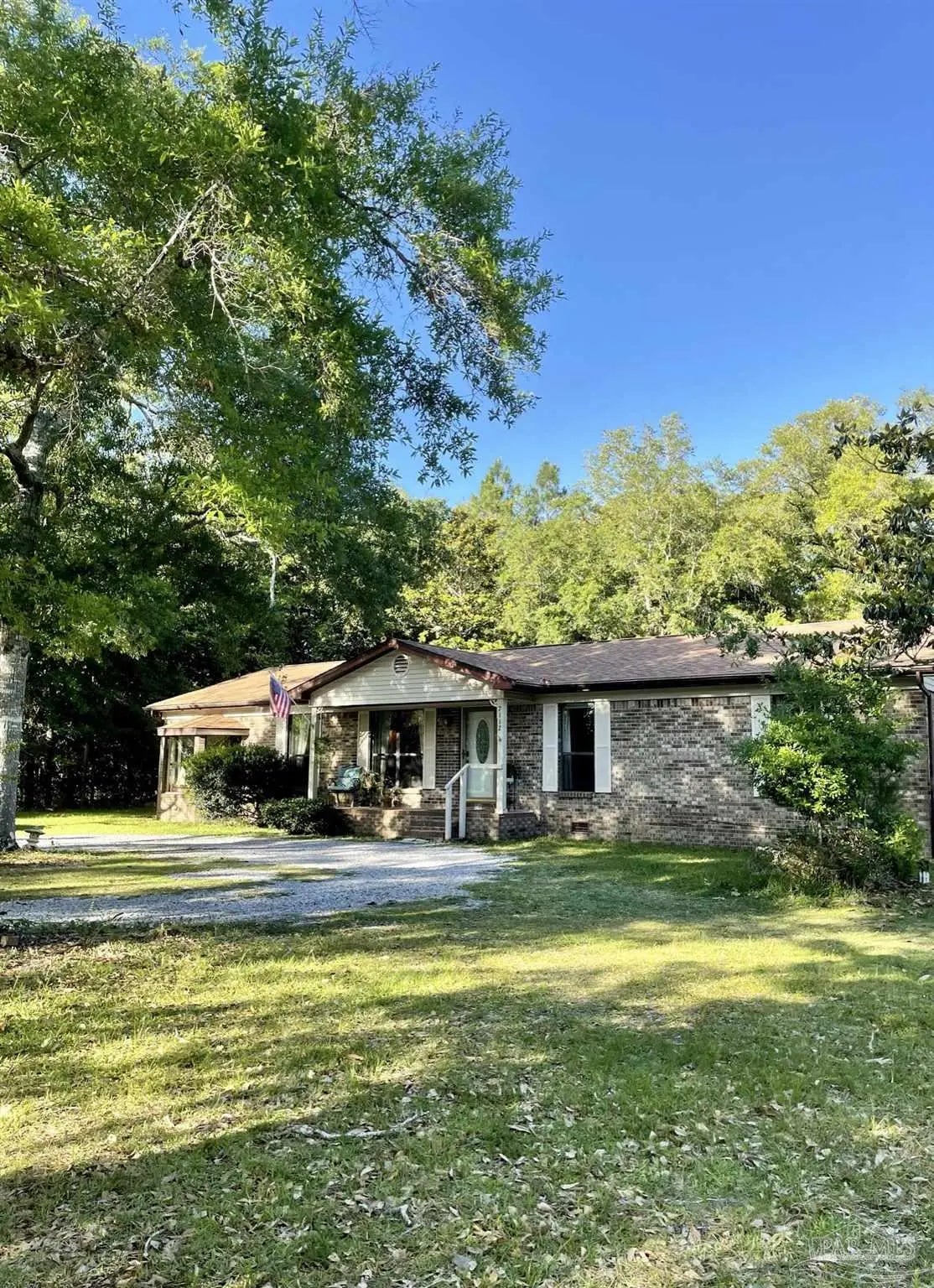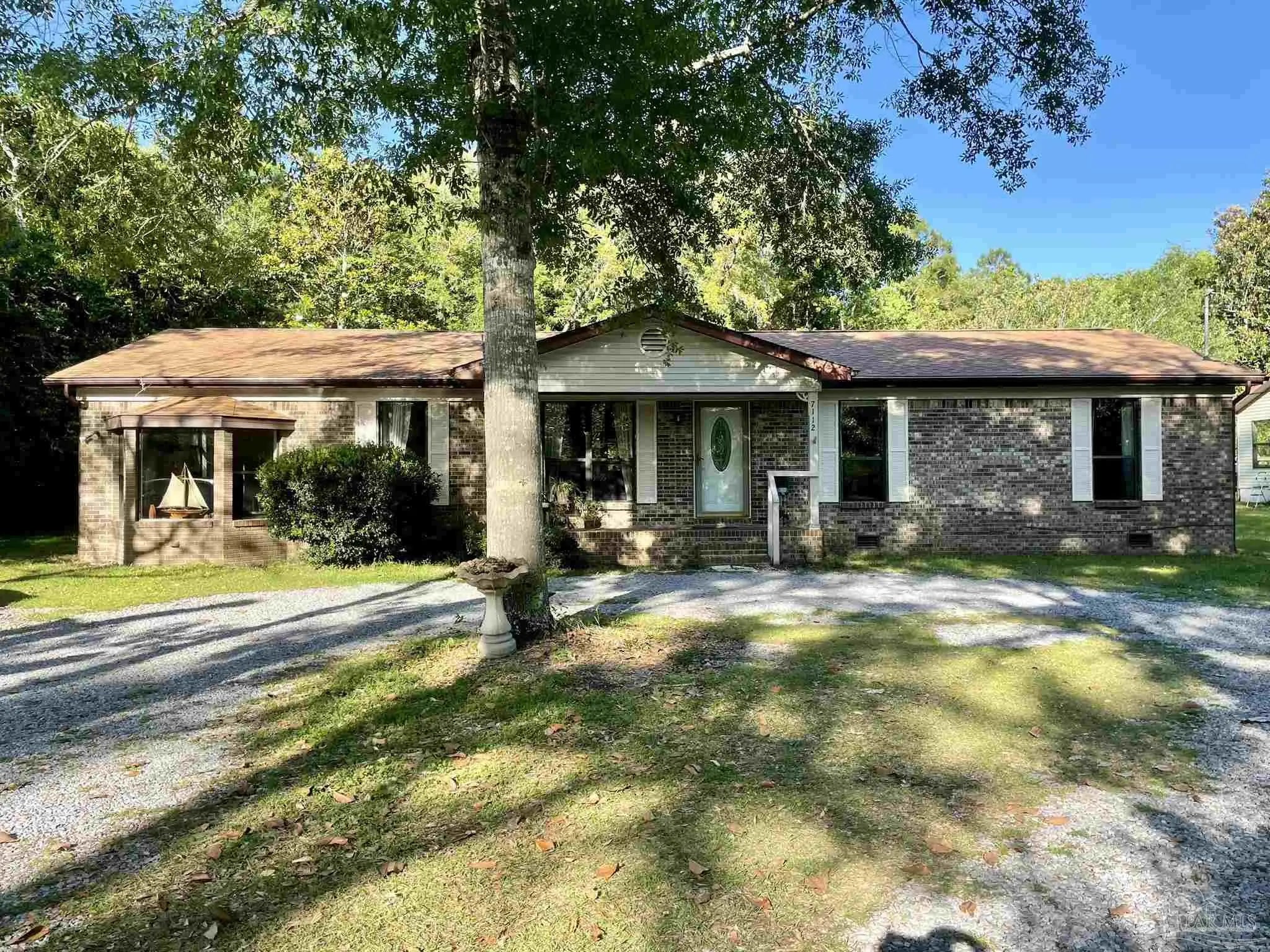Classic 3/2 brick home at the end of a quiet street that runs along East Bay. Enjoy looking out your windows to scenes of nature and views of the bay across the street. The sunsets are absolutely stunning reflecting off the bay. This charming home built in 1980 features large rooms and beautiful hard wood floors in the main section of the home. A new roof was installed in 2021! The expansive windows and a skylight bring extra light into the living room which also has a beautiful stone fireplace in the corner of the room. The kitchen has a non weight bearing bearing wall separating it from the living room which could easily be transformed into an open floor plan if desired. There is an extra large laundry room with pantry features and a step down sun room in the back that makes a lovely plant room or office. The bonus family room could be converted to a 4th bedroom if desired. Detached single garage in backyard has all the potential for a workshop or game room. This home has endless potential but is also perfectly quaint just as it is. There is a public boat ramp in the neighborhood to access East Bay. The house does require flood insurance. No HOA. There is room for boat and camper storage. Less than 20 minutes from Navarre Beach.