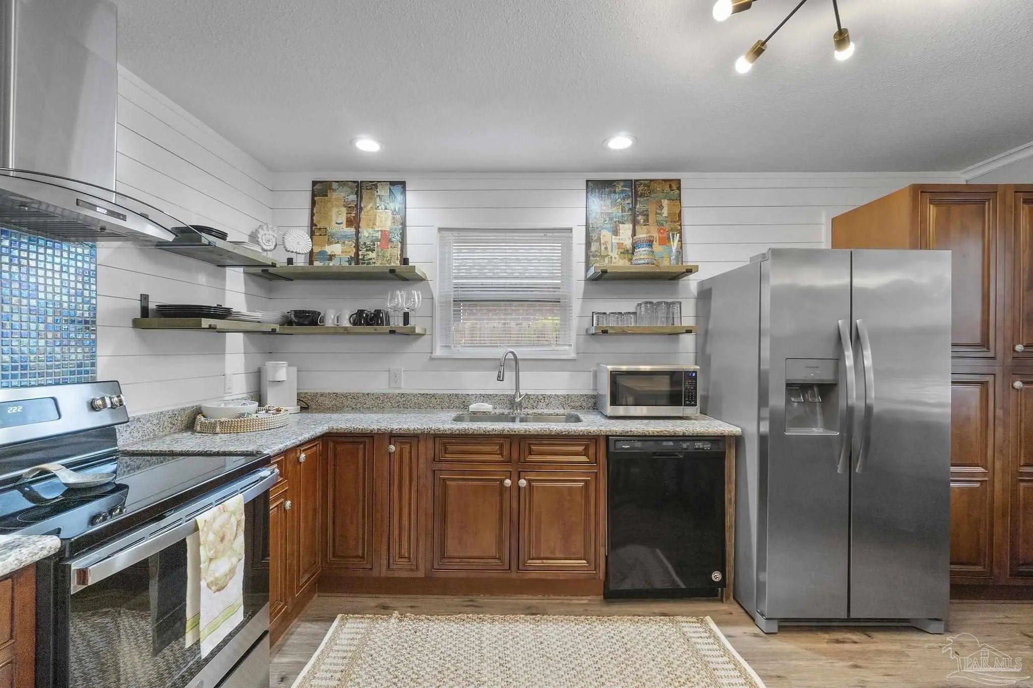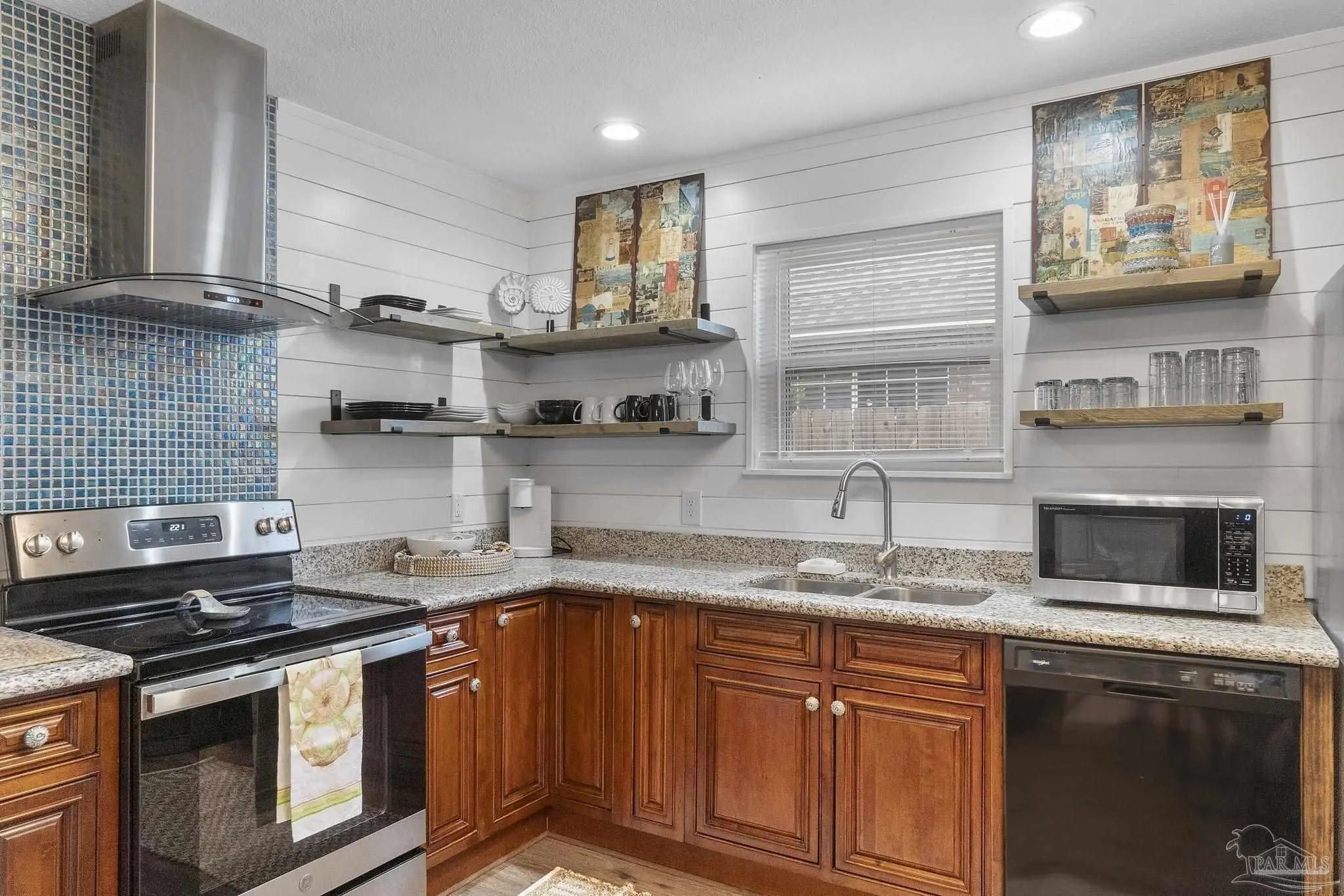 Located in one of Pensacola’s most desirable neighborhoods, this updated 3-bedroom, 1-bath home is full of character and move-in ready. Step inside to an open-concept layout featuring fresh paint, LVP flooring, and stylish lighting throughout. The kitchen offers granite countertops, warm wood cabinetry, shiplap, stainless appliances, and modern floating shelves for a clean, functional look. A custom built-in dining table creates a cozy and practical dining space. All three bedrooms are generously sized with ample closet space and share a renovated bathroom with a tiled tub/shower combo and vanity with granite countertop. Out back, enjoy a private, fenced yard with an open patio and two storage sheds. A 2022 roof, 2022 A/C and 2022 water heater tops off this turnkey home—just minutes from parks, shops, and dining in the heart of East Hill!