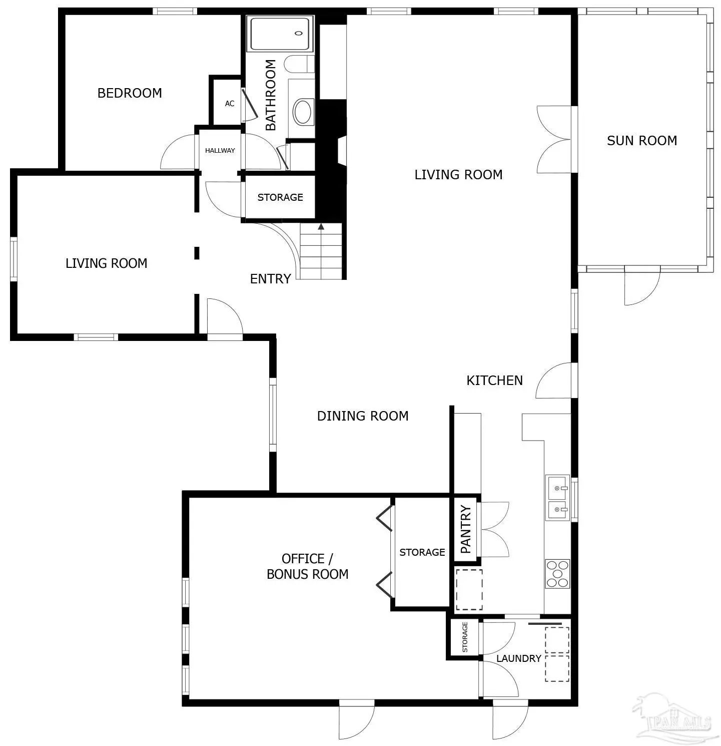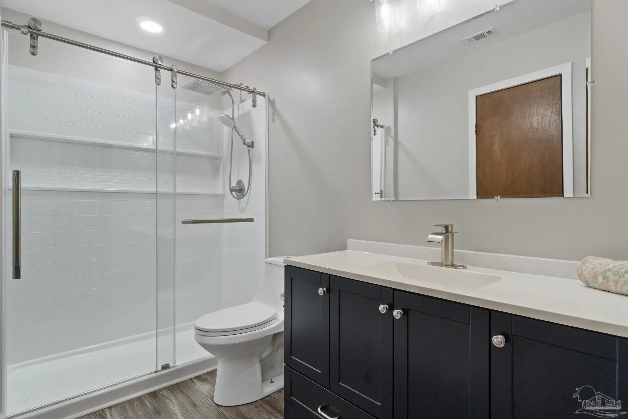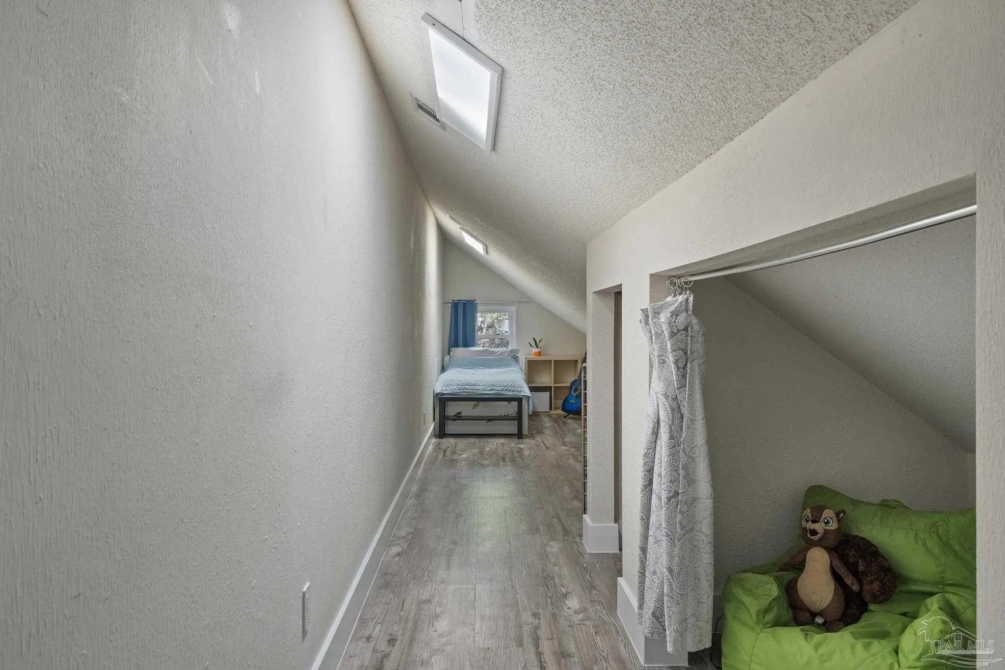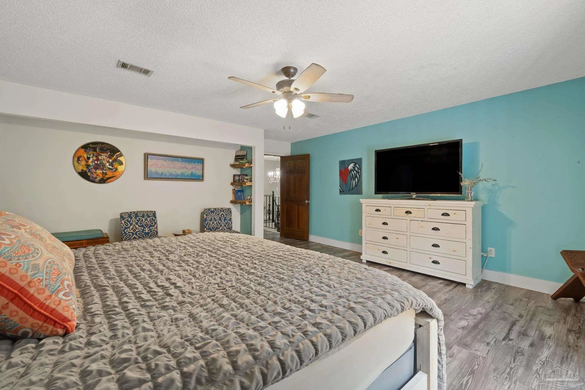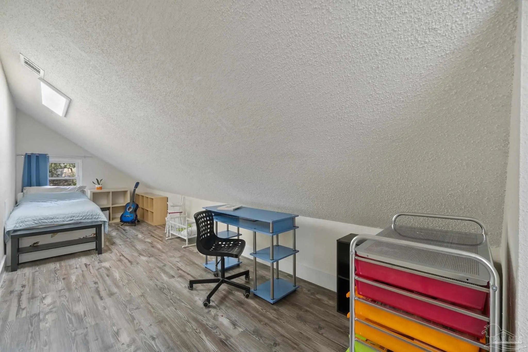 Discover charm and elegance in this 4-bedroom, 3-bathroom Gulf Breeze salt water pool home, designed for unforgettable gatherings. Situated among majestic mature Live Oak trees, this home boasts a large L-shaped pool, a spacious outdoor patio, and a 20x10 screened porch for year-round enjoyment. Step inside to the light and bright living space with vaulted ceilings, skylights, a cozy fireplace, ship lap accents, and a stylish wet bar, which opens seamlessly into the eat-in kitchen featuring granite countertops, and ample cabinetry with pantry. The first floor also offers a formal dining area with a view of the courtyard entry, an additional cozy family room, a bedroom next to a full bathroom, and a private office space with exterior entry. Ascend the curved staircase to find two inviting guest bedrooms, each with access to a relaxing front balcony. The expansive primary suite, also on the second level, features a private balcony with serene views of the fenced backyard and sparkling pool, plus a luxurious newly renovated en-suite bathroom. You’ll also find an additional bonus space, suitable for more storage or game room. With a new roof, impact windows, generous room sizes, abundant closet space, additional storage, and a two-car garage, this home combines practicality with sophistication. Don’t miss your chance to own this entertainer’s paradise in Gulf Breeze!