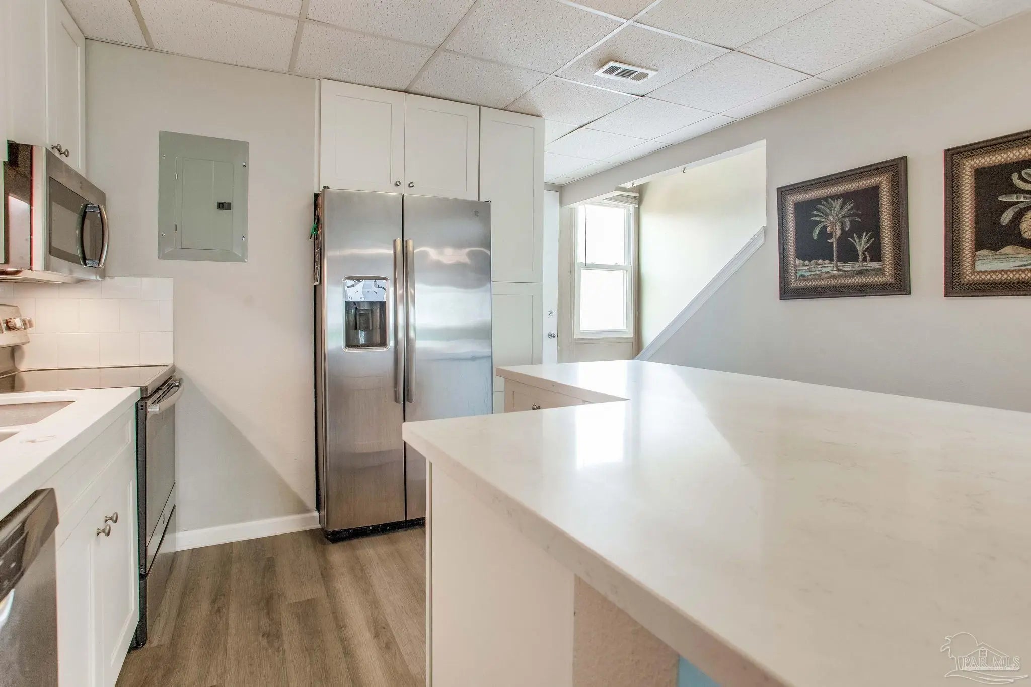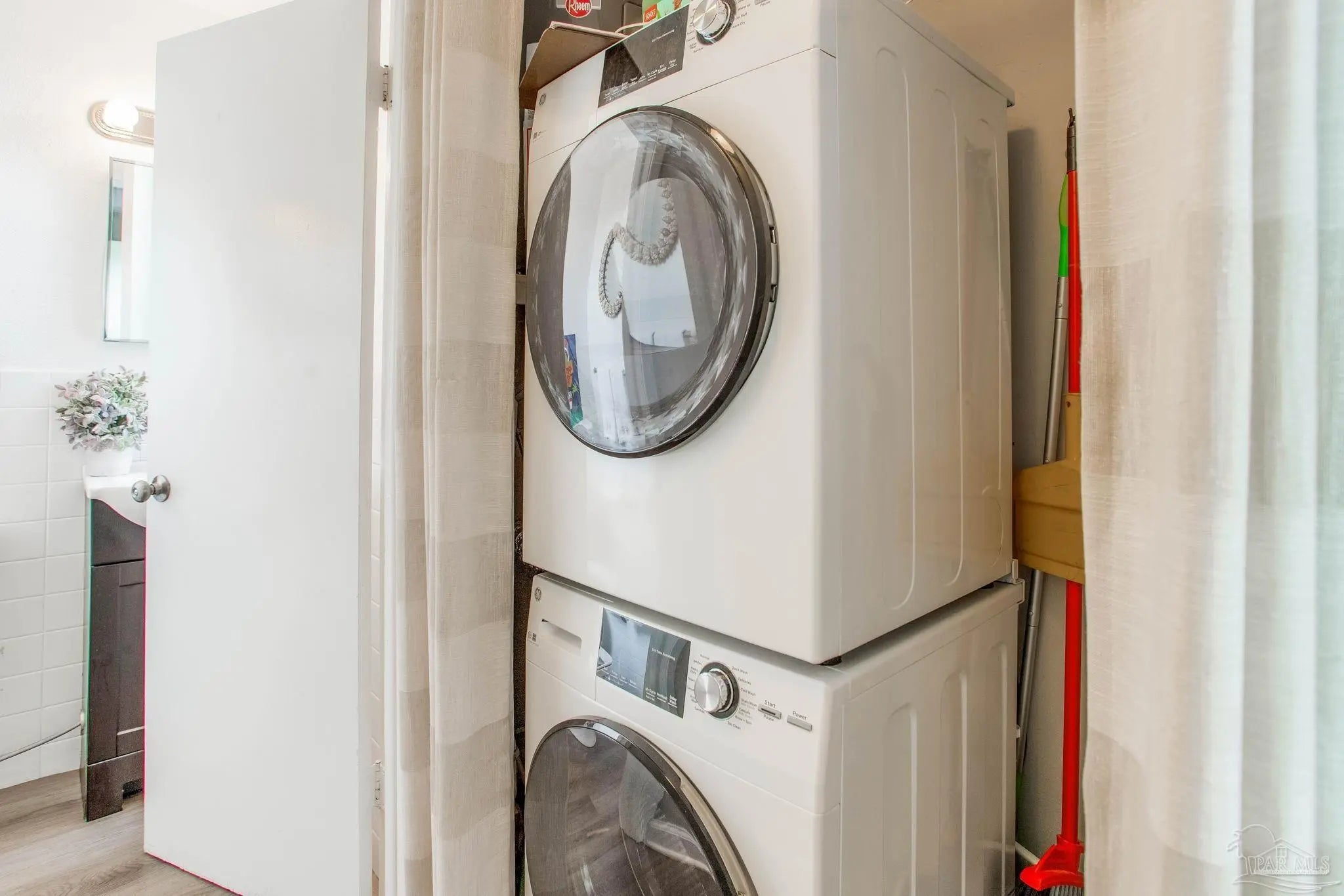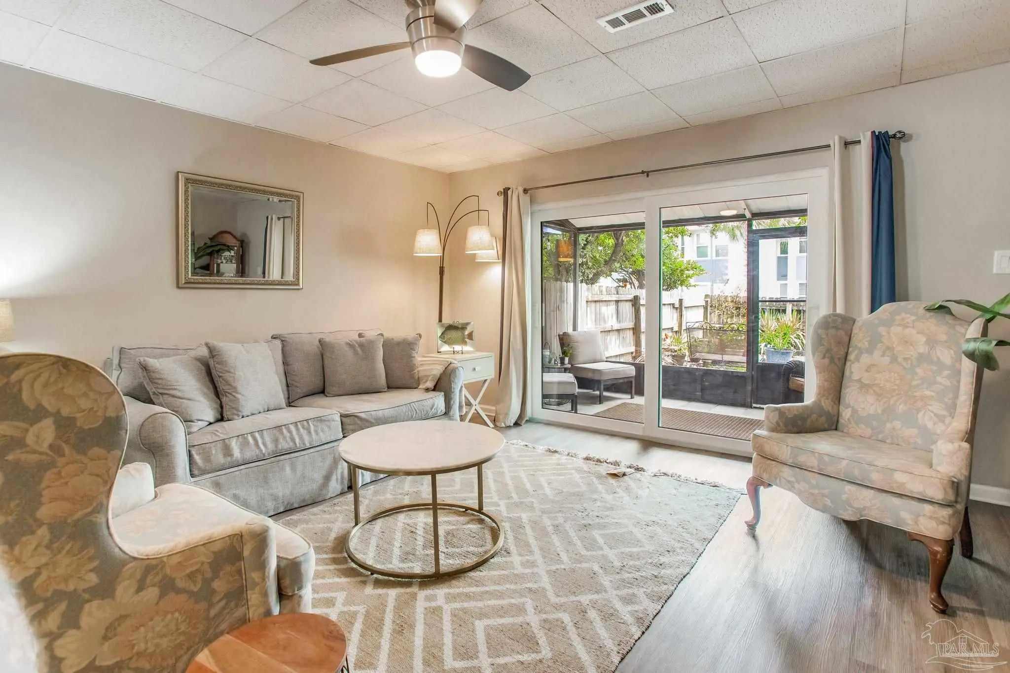 Turnkey townhouse in Gulf Breeze Proper! This fully furnished unit at Bahama Bay Club is move-in ready or ideal as a rental property with a 7-day minimum lease—perfect for generating cash flow. The updated kitchen opens to the living area and features quartz countertops and modern stainless steel appliances. Durable LVP flooring runs throughout for easy maintenance and a cohesive look. Downstairs, you’ll find a renovated half bath and a convenient stackable laundry setup. Upstairs includes two bedrooms and a full bath. The oversized primary bedroom offers two closets and a wall of windows overlooking the backyard and common greenspace. Enjoy community amenities including a pool, clubhouse, and fitness equipment. Located within walking distance to all three Gulf Breeze schools, shopping, nature trails, a waterfront park, and the world-class South Santa Rosa Recreation Center. Plus, it’s just a short walk or bike ride over the bridge to Pensacola Beach. Location and lifestyle at your fingertips!