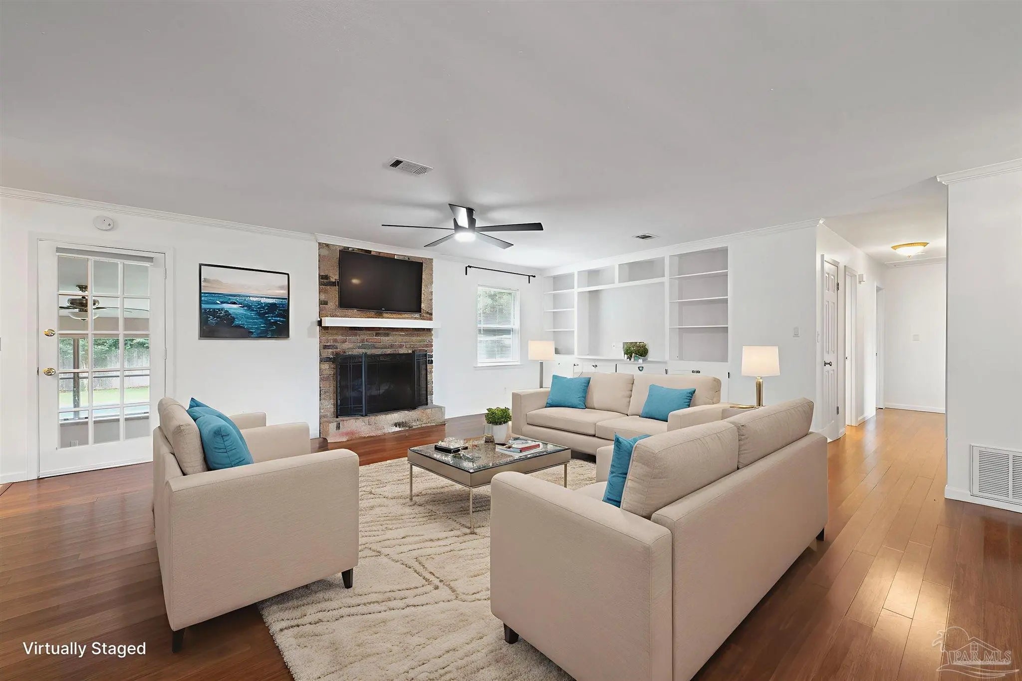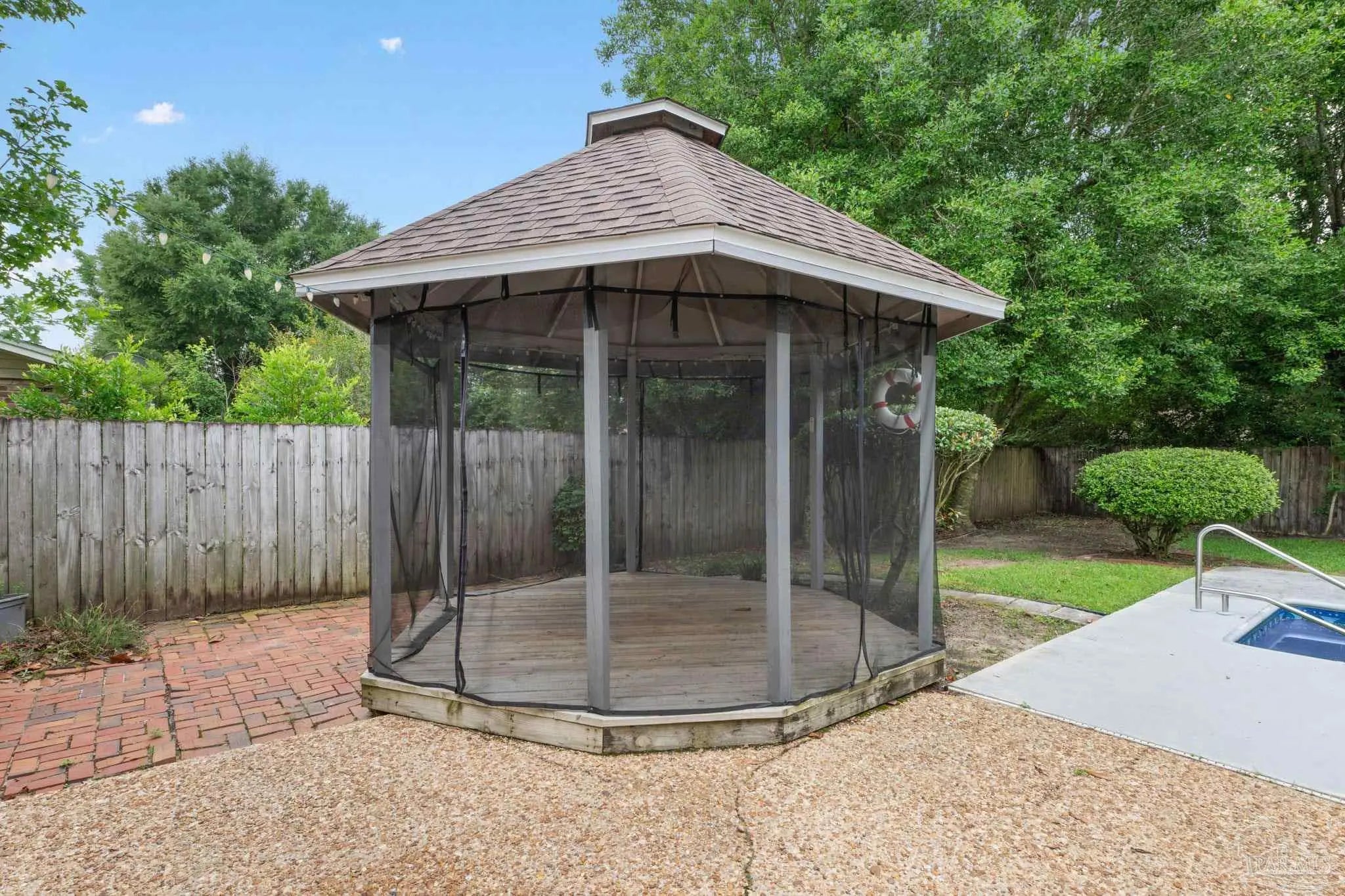 Tucked in the desirable Oakfield Acres neighborhood, this beautifully updated brick ranch offers the perfect blend of charm, comfort, and convenience—plus your own private backyard oasis. Inside, enjoy gorgeous hardwood floors, updated granite countertops, solid wood kitchen cabinetry, modern vanities, and energy-efficient double-pane vinyl windows. The spacious, open living area features a cozy brick fireplace, ideal for gatherings or relaxing evenings. The heated and cooled Florida room opens to a fully fenced backyard with a sparkling inground pool, a freshly decked gazebo, and a separate side yard—perfect for discreet boat storage, firewood, or gardening needs. Additional highlights include a two-car garage with rear access to the patio, upgraded closet doors, and thoughtful storage throughout. This one checks all the boxes—modern updates, ideal layout, and a prime Pensacola location just minutes to shopping, dining, and more.