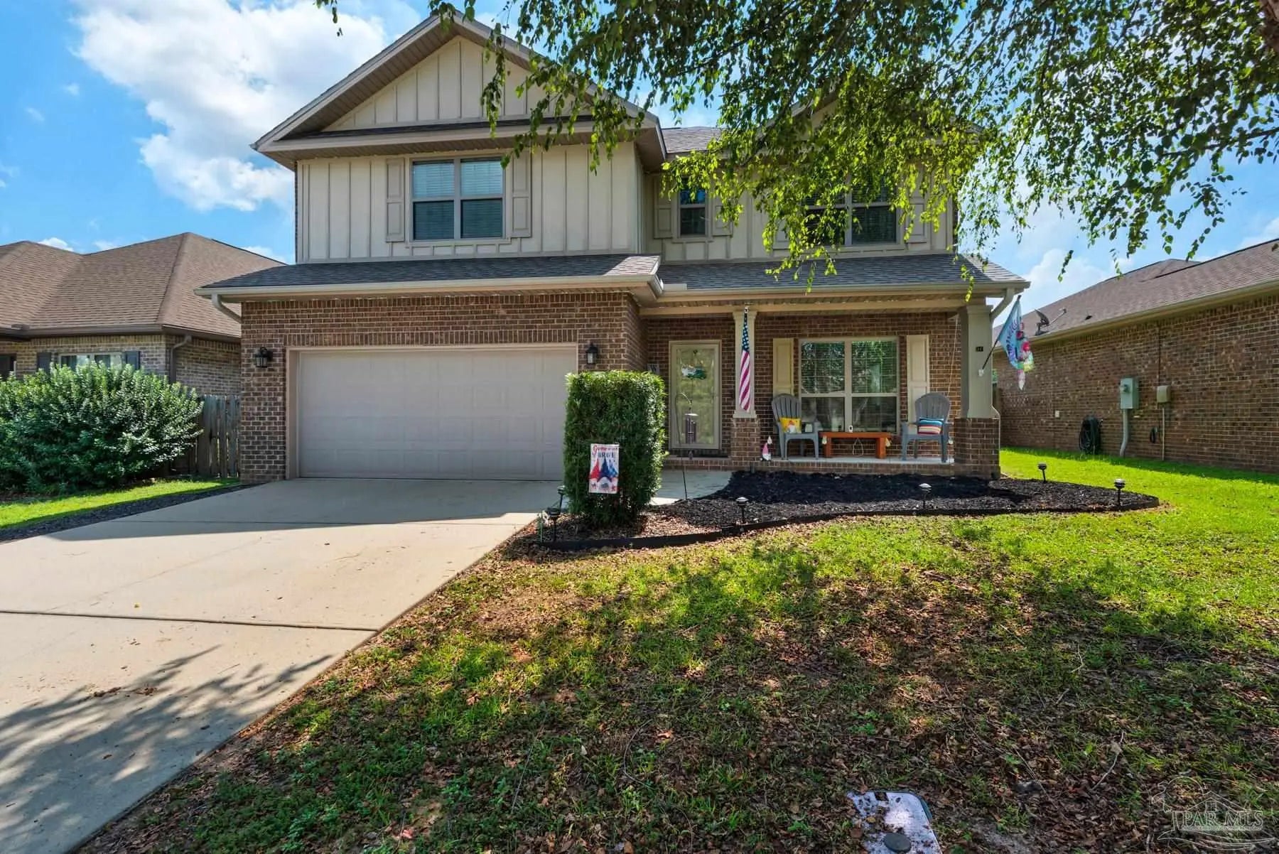 Family-Friendly 4 Bedroom, 3.5 Bath Brick Home – Spacious, Upgraded & Move-In Ready! Welcome to The Julian – a beautifully crafted two-story, all-brick home designed with families in mind. This home offers the perfect blend of comfort, space, and functionality, with a flexible layout ideal for both everyday family life and special gatherings. From the moment you arrive, the charming front porch invites you in—perfect for morning coffee, evening chats. Inside, the open-concept living room, kitchen, and dining area create a warm, connected space ideal for family dinners, birthday parties, or holiday celebrations. The gourmet kitchen is a dream for busy parents and budding chefs alike, featuring GE stainless steel appliances, granite countertops, rich dark-stained cabinets with crown molding, and a generous pantry for all your snacks and staples. The main-floor primary suite offers a peaceful retreat with two spacious walk-in closets, a tile shower, and dual vanities—perfect for busy mornings. Upstairs, you'll find three additional bedrooms, including a Jack & Jill bathroom that’s great for siblings, plus a large bonus room perfect for a playroom, homework station, media room, or even a quiet home office. Additional interior highlights include high-volume ceilings, crown molding, recessed lighting, durable tile floors throughout, and tons of storage space. Step outside to find two covered porches and a huge fenced backyard—a safe, open space ideal for kids, pets, and weekend barbecues. A 2-car garage adds extra storage, and the sprinkler system keeps your yard green with ease. Located in the sought-after Wallace Lake K-8 and Pace High School zones, and convenient to Pensacola International Airport, three major universities, three major hospitals, navy bases and beaches. Seller's favorite feature is the two ac units which keep the house cool and the power bill manageable. This home truly has it all - make it your dream home today!