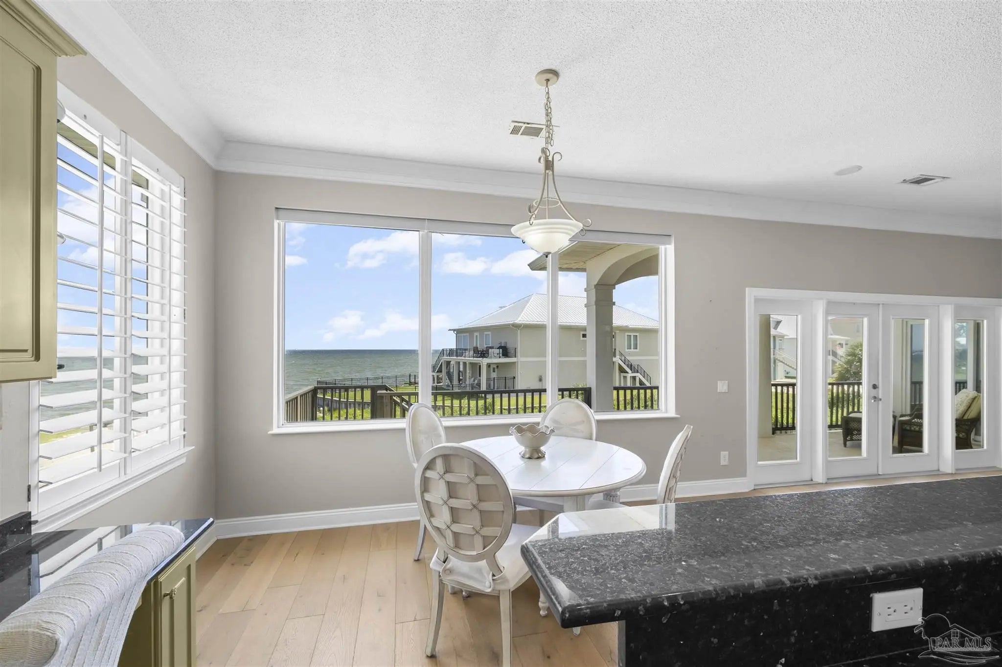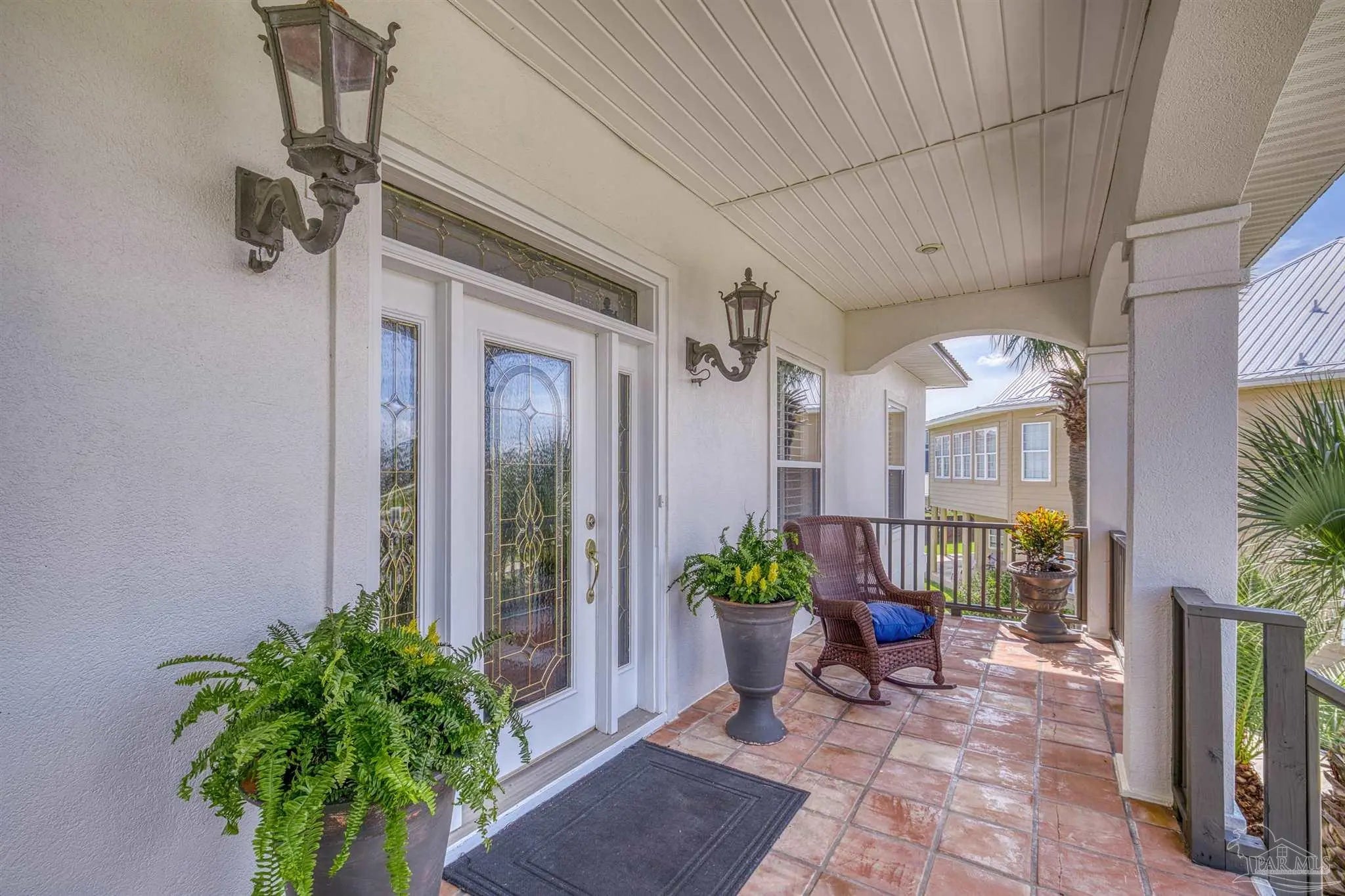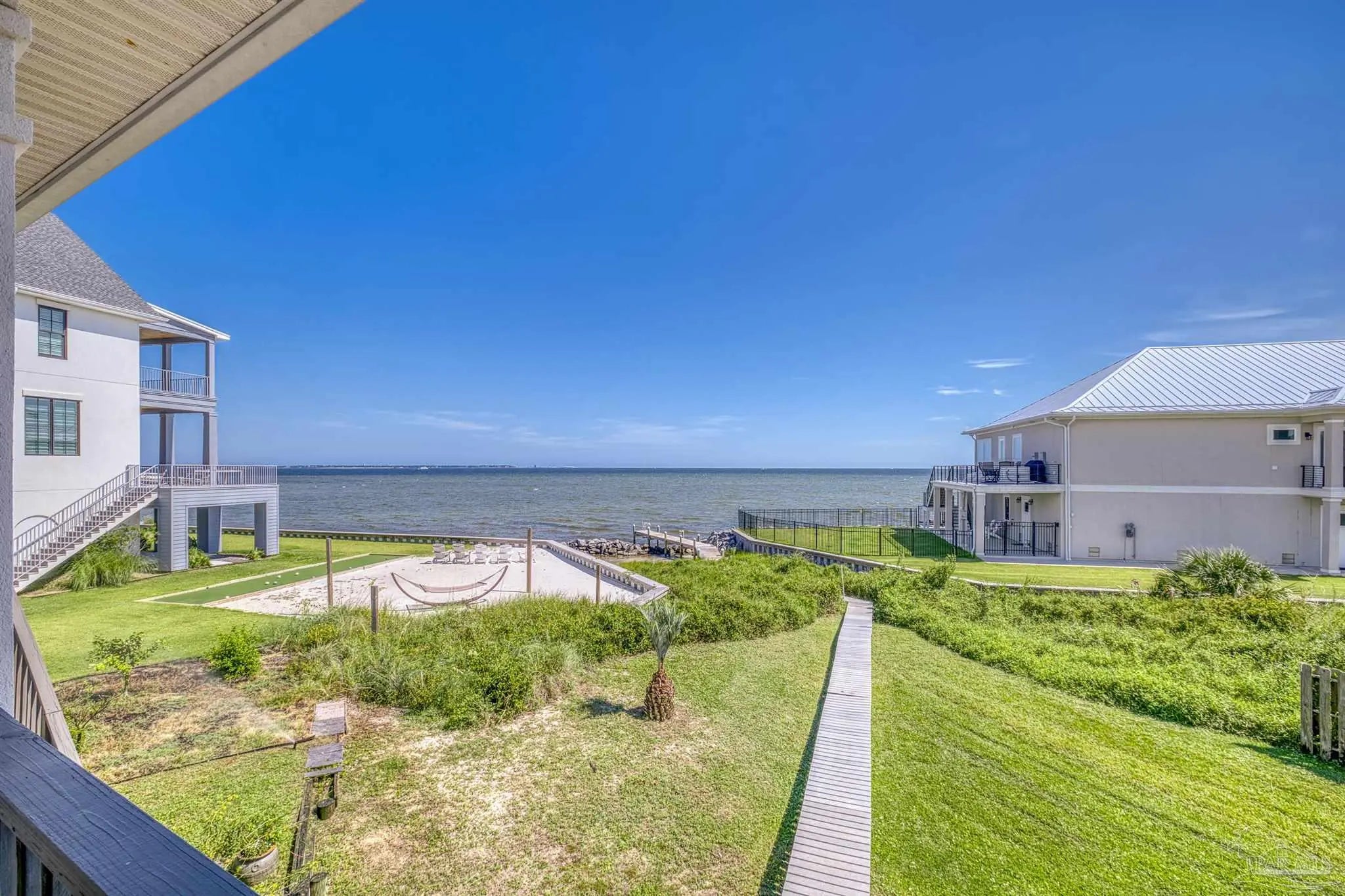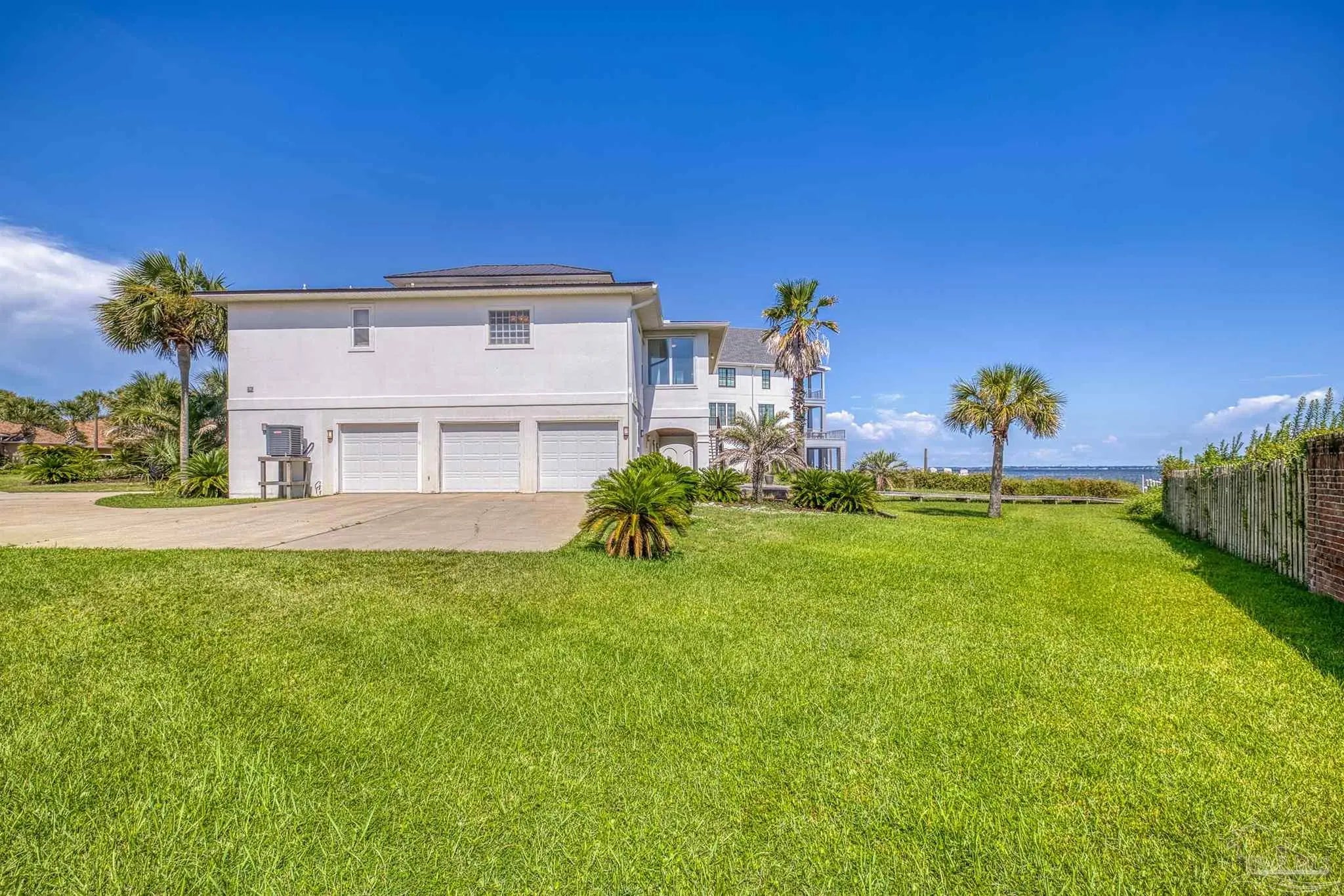 Welcome to your slice of Gulf Coast paradise—this spectacular 3-bedroom home offers graceful waterfront living with every upscale touch. Nestled in a sought-after gated neighborhood, the property boasts expansive porches with breathtaking water views, a walkway to a private beach, and your very own swimming dock, perfect for morning paddles or sunset serenity. Inside, rich oak wood floors add timeless warmth throughout. The master suite is a sanctuary of comfort with an attached sunroom or office, opening directly onto the porch overlooking the water. The spa-like bath features a double vanity, jetted tub, walk-in shower, and private water closet. The kitchen pairs form with function—granite countertops, stainless steel appliances, and a charming dumbwaiter add modern elegance. A spacious bonus room on the third floor wraps you in light with panoramic Pensacola Bay views, ideal as a media room, art studio, or peaceful hideaway. Outside, a circular drive leads to the oversized side-entry garage, offering ample space and convenience, while the durable metal roof completes the picture of longevity and coastal resilience. With its captivating views, thoughtful layout, and premium finishes, this home is your gateway to tranquil waterfront living. Schedule your private tour and experience Windrose Circle for yourself.