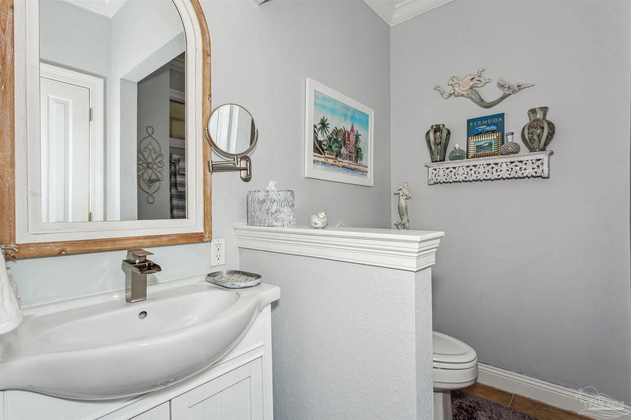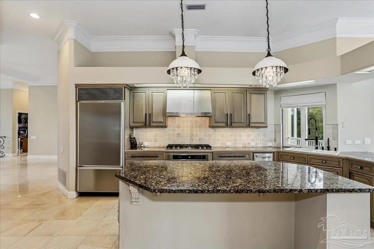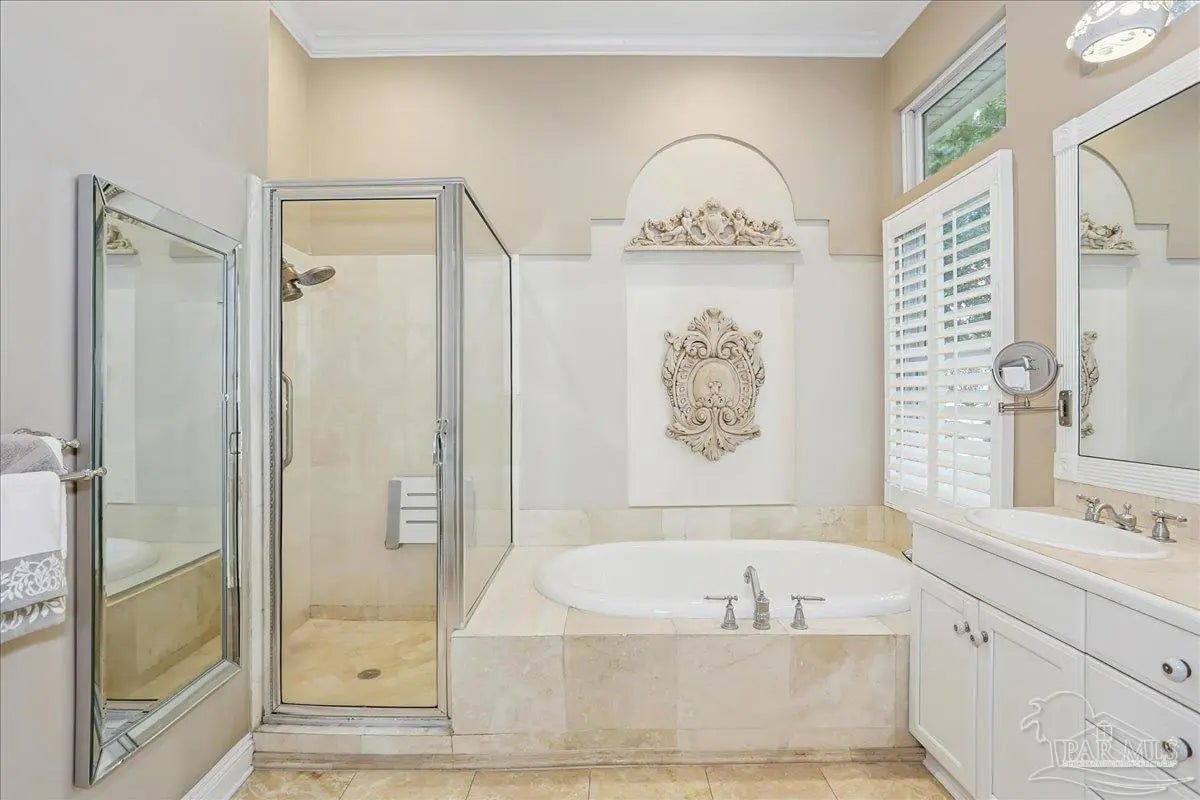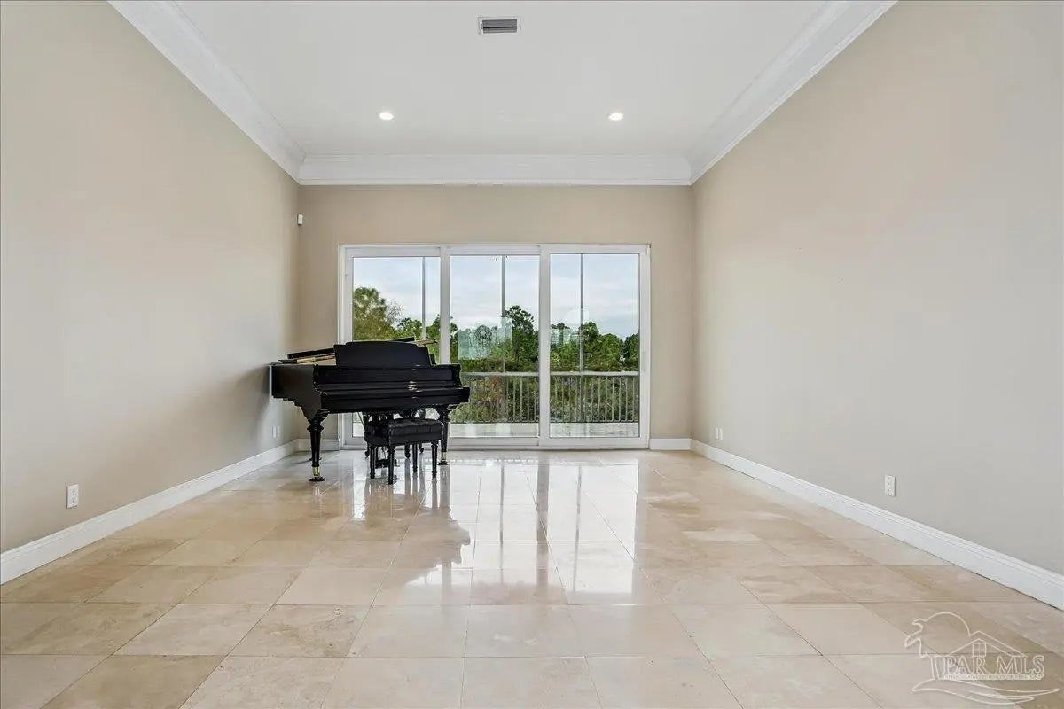 Gulf Breeze Proper! Back on the market at no fault of the seller or home!! Buyer was unable to sell their home! Escape to this peaceful serene atmosphere as you enter into this stunning home nestled along the 17 acres nature preserve of picturesque coastal forest and amazing views of Santa Rosa Sound and the Intercoastal Waterway. This property includes a piece of property across the street which makes for easy access down to the beach and waterfront. Many upgrades include water filtration system, a full-house generator, electric storm shutters, geo-thermal HVAC, surround sound speakers, security alarm, 2 dumb waiters, one located on the back of the home outside which serves as an elevator for people unable to use the stairs and one located inside off the garage that opens near the kitchen, great for transporting groceries! Luxurious and opulent with lavish features, such as travertine natural stone floors, decorative black iron railing encasing beautiful wood stairs, soaring ceilings, private screened balcony, gunite pool with spill-over hot tub, gourmet chef's dream kitchen featuring walk-in pantry, high-end stainless-steel appliances, gas-cooktop and top of the line refrigerator. Enjoy many rooms for entertaining and living including a large game room, office, theatre room, craft room, exercise/gym room, ensuite for guests and spacious owners ensuite with walk-in closets. The seamless transition from inside to outside makes perfect for entertaining guests off any of the well-appointed balconies or relaxing with friends and family around the sparkling pool w/ hot tub. This exceptional property located mere steps away from the Shoreline Park includes additional recreational opportunities such as paddle sports, trails for hiking, fishing, and a place to launch your own boat! Living here will not disappoint!