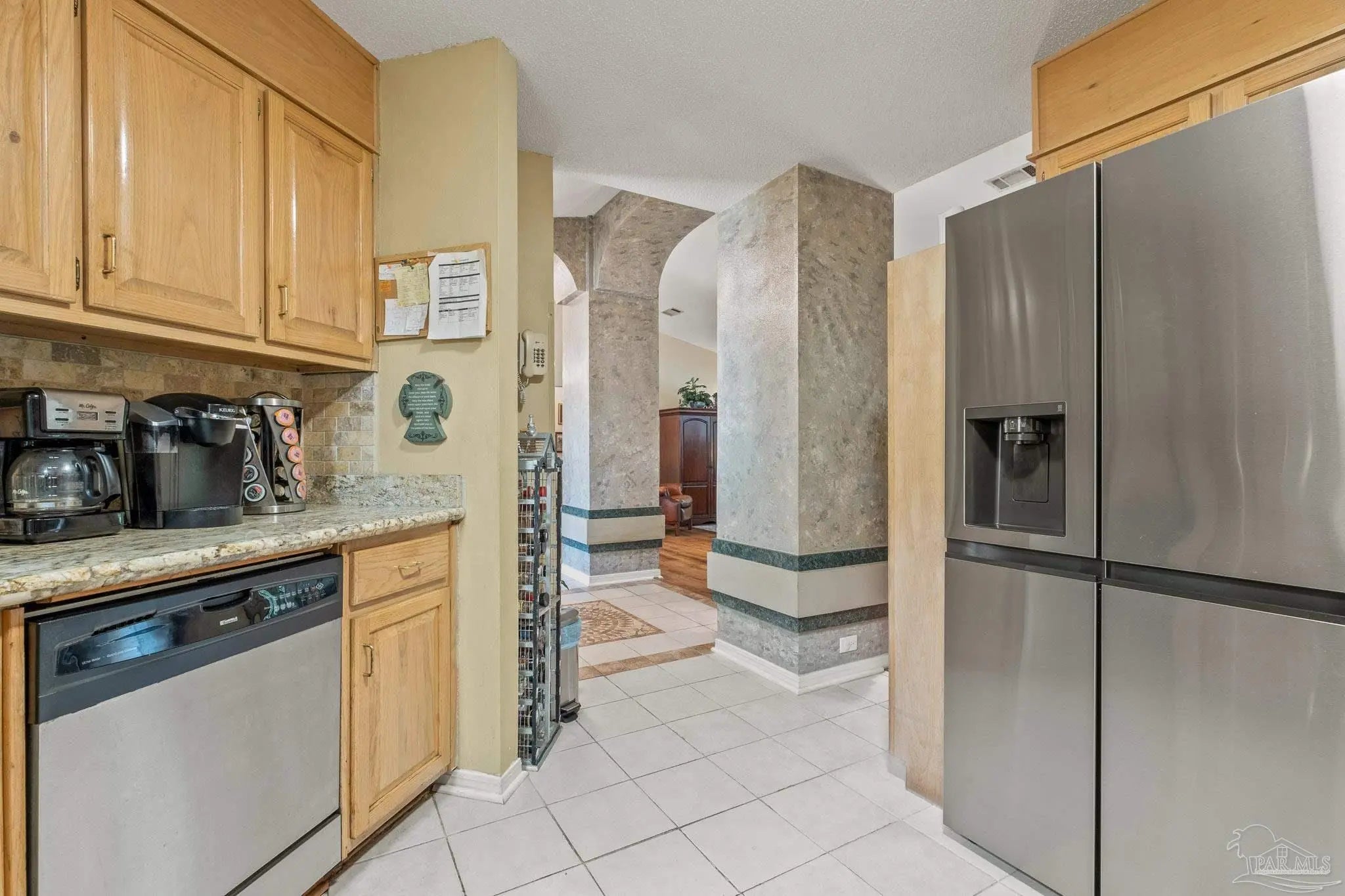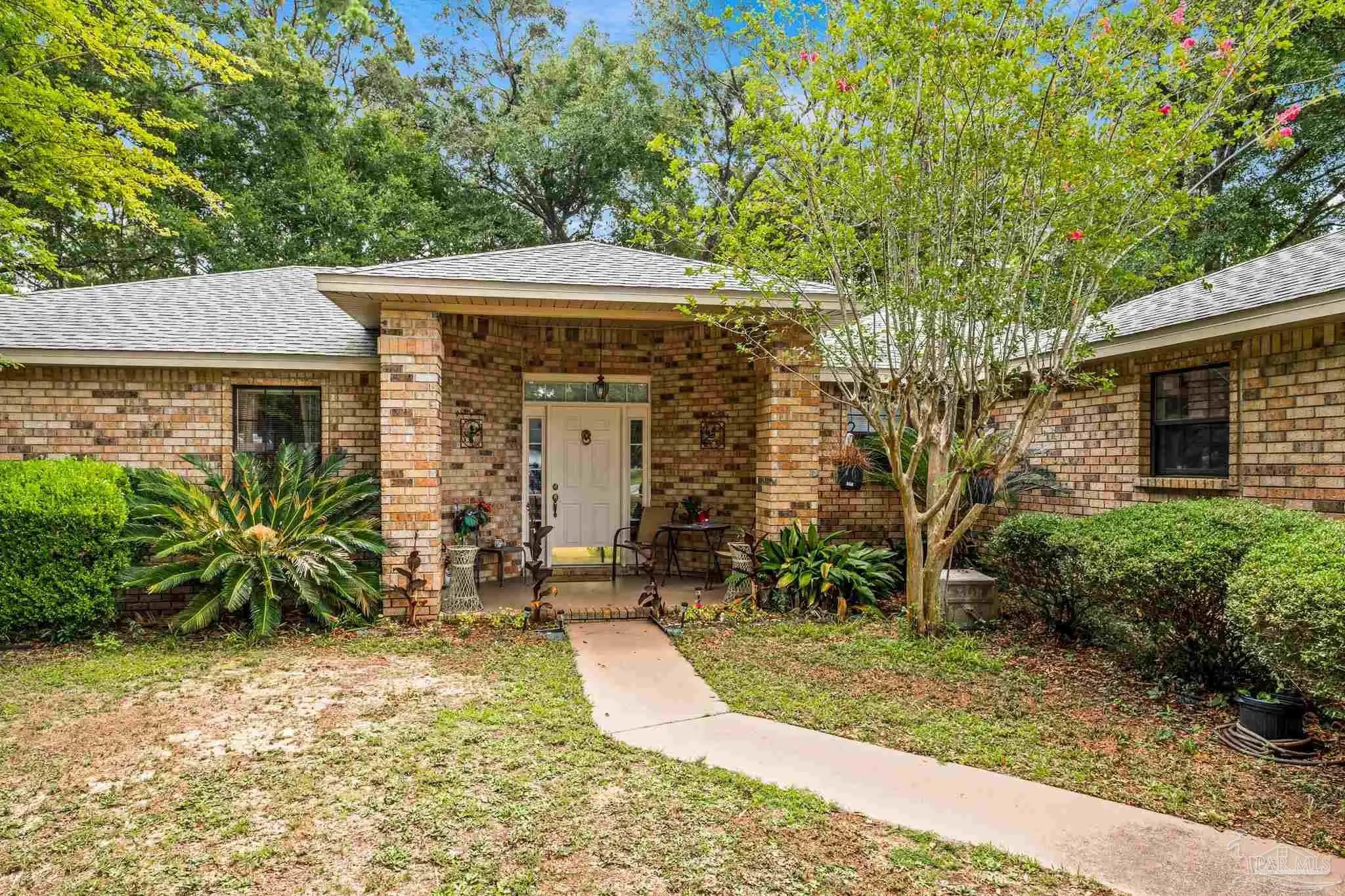 Welcome to this all-brick beauty in the sought-after Tanglewood Golf Community! This 3-bedroom, 2-bathroom, 2-car garage home. Inside, enjoy a cozy wood-burning fireplace, a jetted bathtub, and a kitchen featuring granite countertops. Step into the spacious sunroom with an included electric fireplace, then step outside to a fenced backyard with flourishing fruit trees and a sprinkler system for easy upkeep. Recent updates provide peace of mind: HVAC system 2025* Roof replaced in 2023* Water heater installed in 2018* Located just 1.1 miles from Publix on Dogwood and 7.4 miles from NAS Whiting Field, this home combines peaceful, community living with convenient access to shopping, dining, and more.