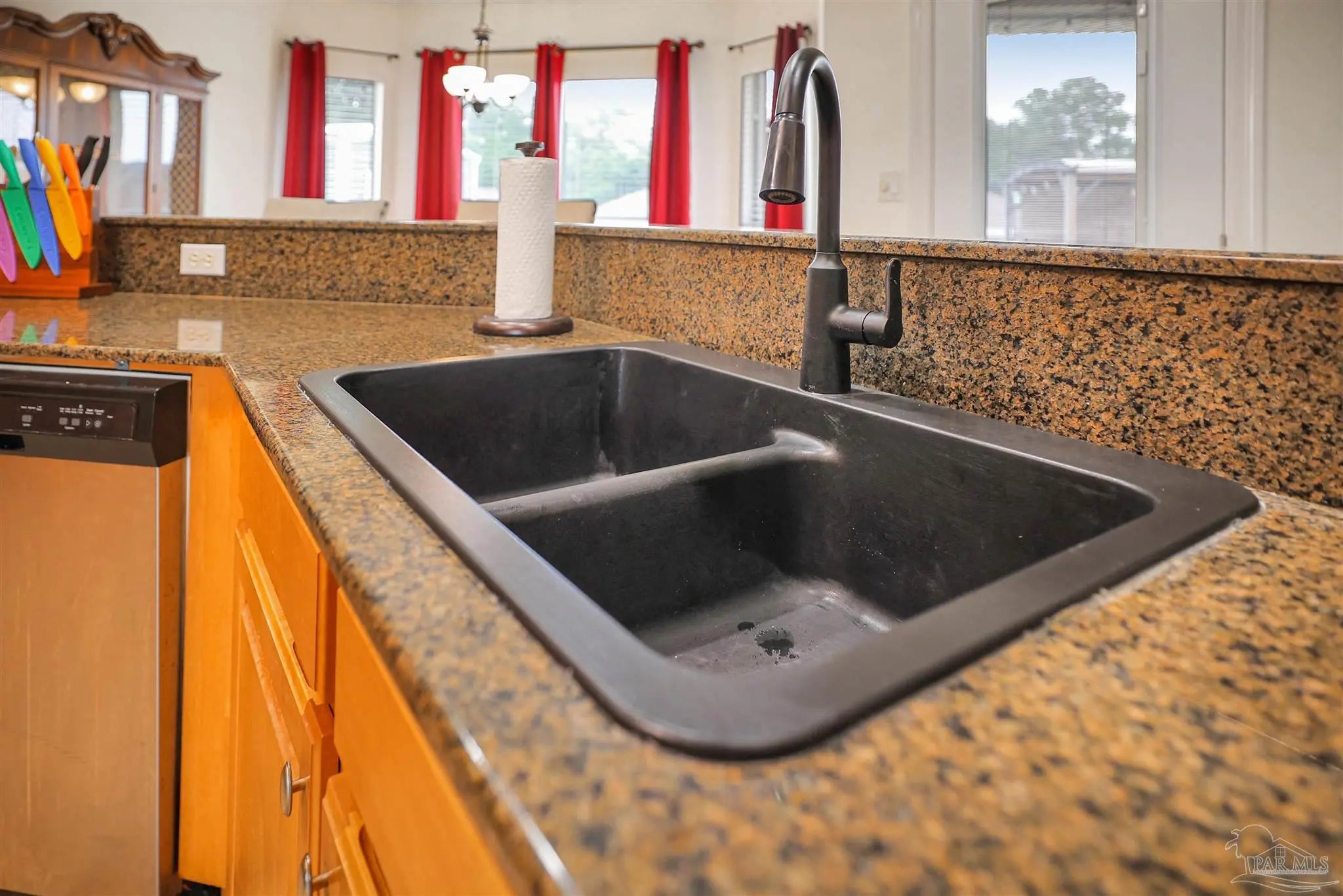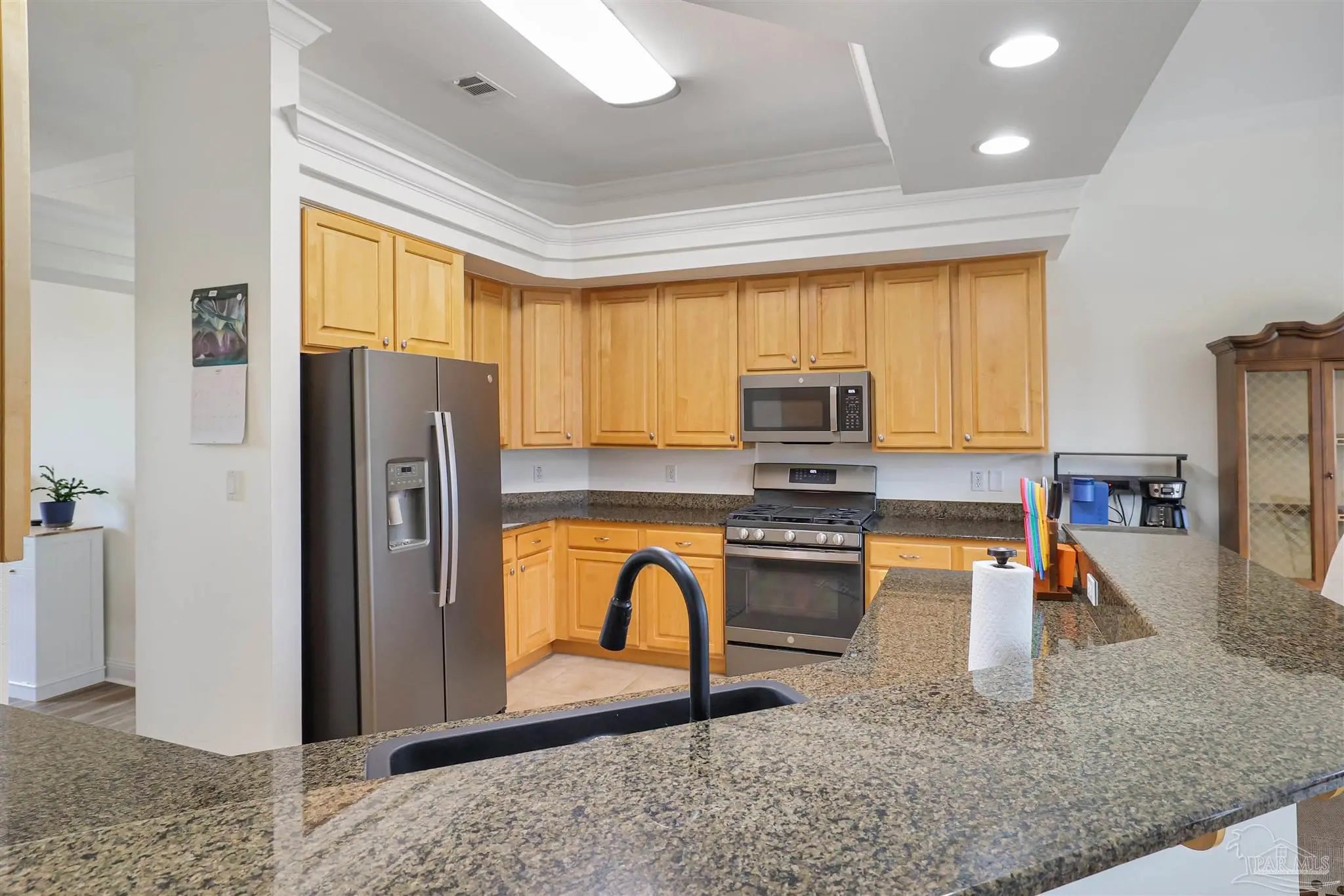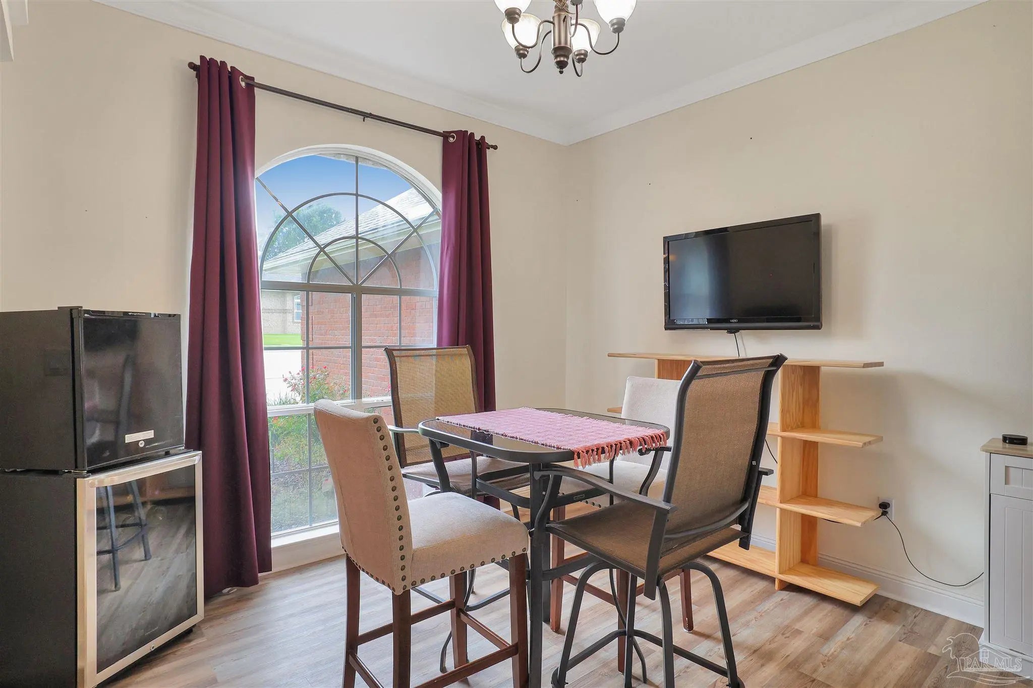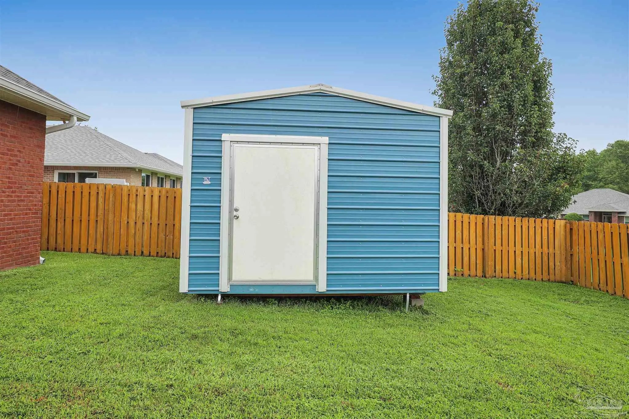 Step into timeless elegance with this beautifully maintained all-brick home that offers comfort, functionality, and outdoor appeal. Located in a quiet and established neighborhood, this home features impressive curb appeal with manicured landscaping, arched windows, and a stately front entrance. Inside, you're welcomed by an open living space with rich flooring, crown molding, and a cozy fireplace—perfect for relaxing or entertaining guests. The large living area flows seamlessly into the kitchen, which boasts granite countertops, custom cabinetry, and newer stainless steel appliances including a gas stove. A raised breakfast bar offers extra seating, and a bright dining nook is perfectly positioned with views of the backyard. The spacious primary suite is a true retreat, complete with his and hers large walk-in closet and a luxurious ensuite bath featuring dual vanities, a soaking tub, separate walk-in shower, and private water closet. Step outside to enjoy a beautifully designed paver patio with pergola—ideal for grilling, relaxing, or entertaining under the string lights. The fully fenced backyard offers privacy and plenty of green space for pets, kids, or gardening. Additional Highlights: Split bedroom floor plan, Updated fixtures and finishes throughout, Two-car garage, Indoor laundry room, Whole home Generator Don’t miss your opportunity to own this well-kept gem in one of Cantonment’s most desirable areas—just minutes from schools, shopping, and Navy Federal. Schedule your private showing today and make this gorgeous home yours!