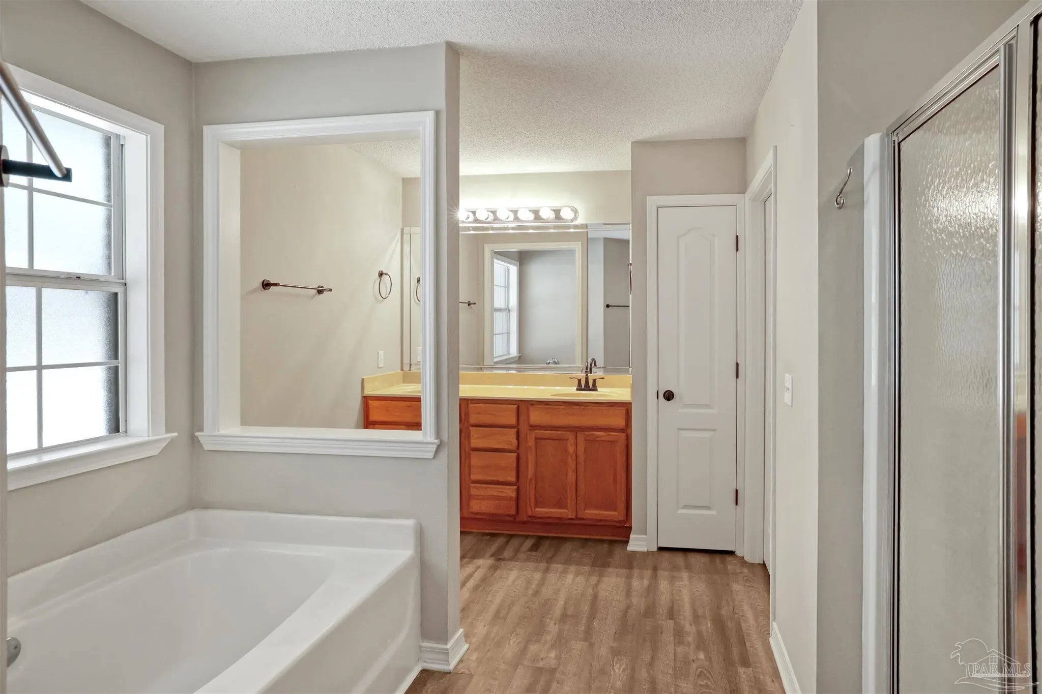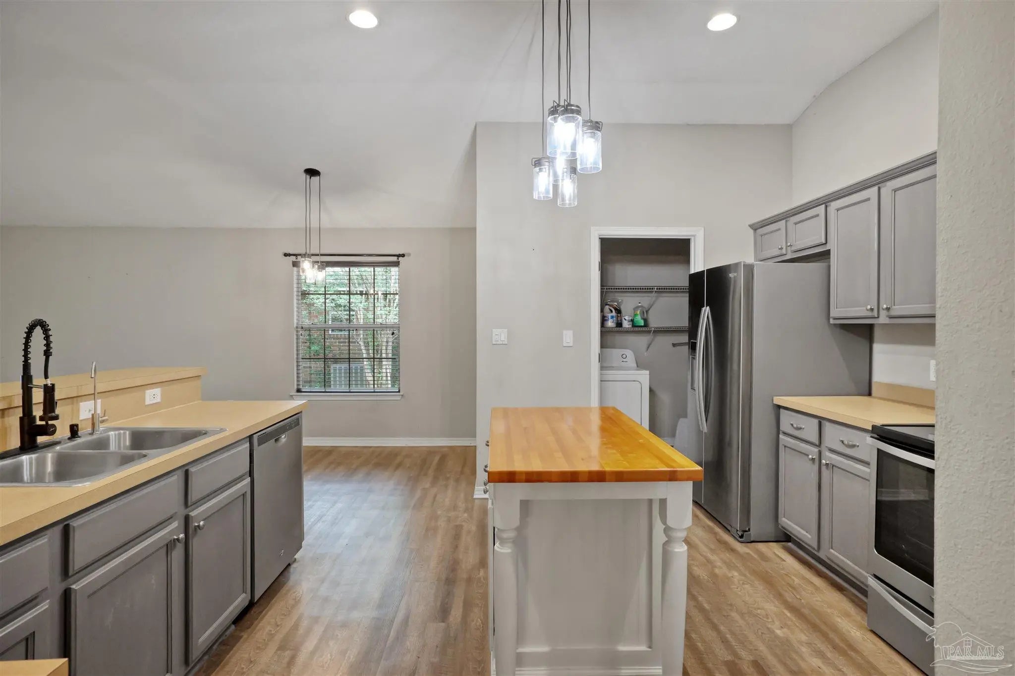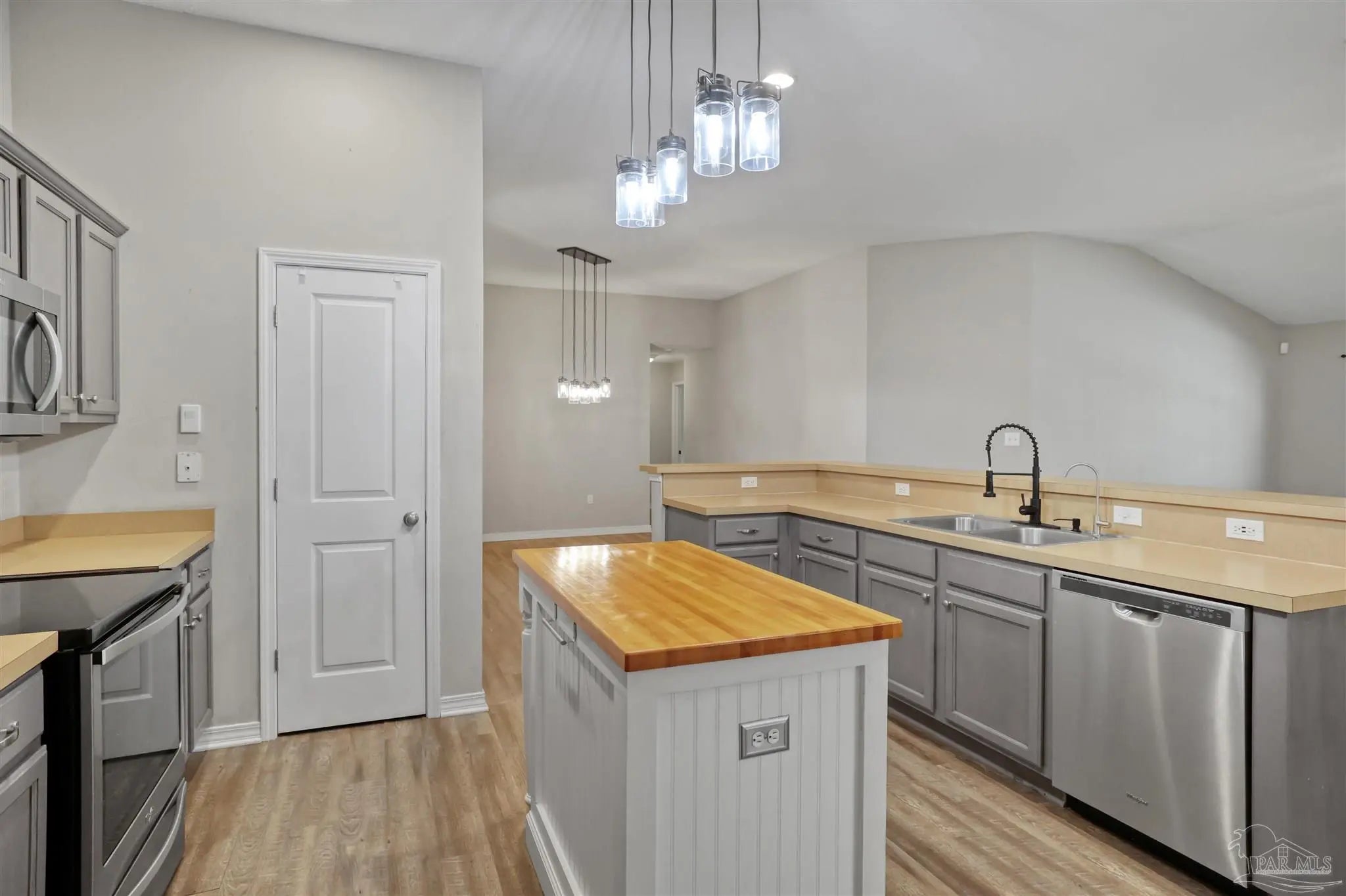 Welcome to your own private oasis in the heart of Milton! This all-brick, solar-equipped home offers the perfect blend of style, efficiency, and comfort — complete with a sparkling screened-in pool and a spacious covered patio ideal for year-round enjoyment. Step inside to find an open-concept layout with soaring ceilings and abundant natural light. The living room features a cozy corner fireplace and French doors that open directly to the pool area, seamlessly blending indoor and outdoor living. The kitchen has been updated with modern gray cabinetry, stainless steel appliances, a butcher block island, and updated light fixtures, offering both functionality and charm. A walk-in pantry and adjoining laundry room provide extra storage and convenience. The generously sized primary suite boasts serene views of the backyard, dual closets, and an ensuite bathroom with a garden tub, separate shower, and large vanity area. The additional bedrooms are equally spacious with great closet space and updated flooring throughout the home. Out back, relax under the extended covered lanai, complete with dual ceiling fans, while overlooking your screened-in pool — perfect for those warm Florida days. The fully fenced backyard offers privacy and space for gardening or entertaining. Additional features include a 2-car garage, energy-efficient solar panels, fresh neutral paint, and low-maintenance landscaping. Located in a quiet neighborhood with easy access to schools, NAS Whiting Field, shopping, and dining — this move-in-ready gem won’t last long. Schedule your tour today and discover all that 5911 Ashton Woods Cir has to offer!