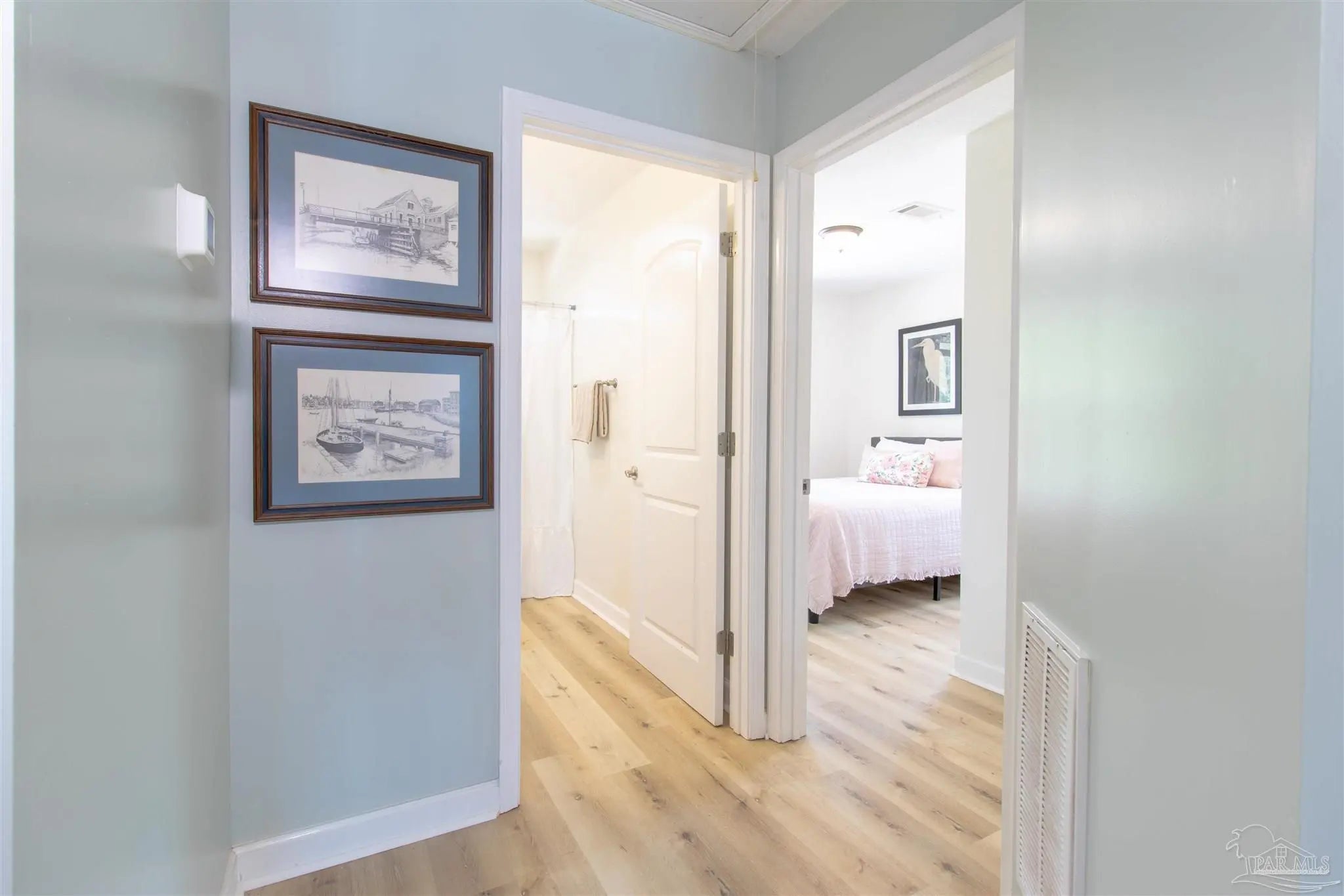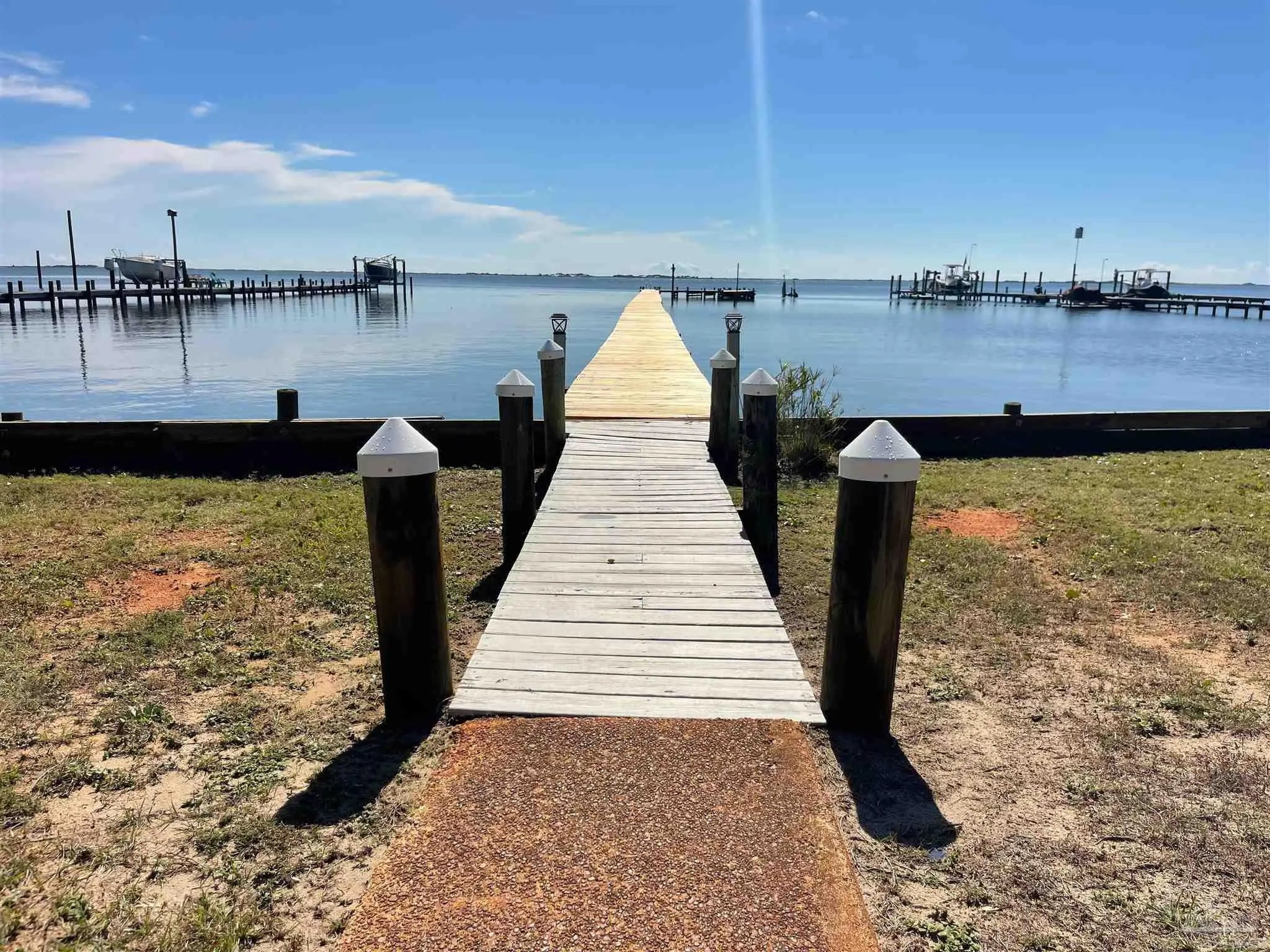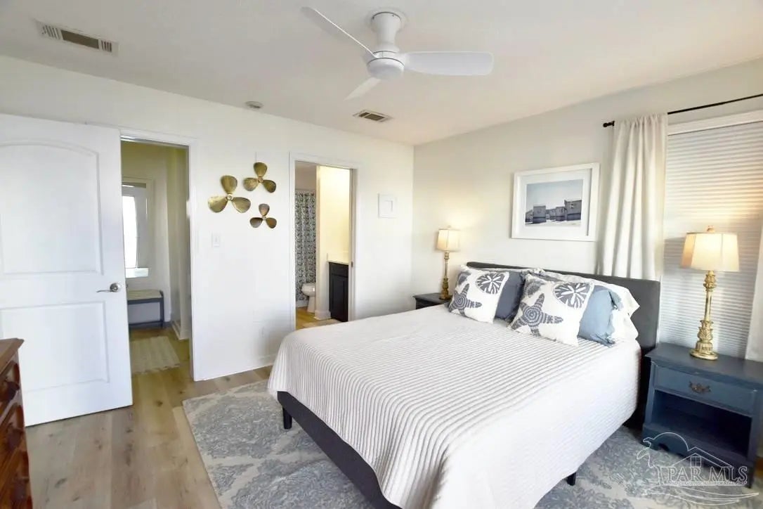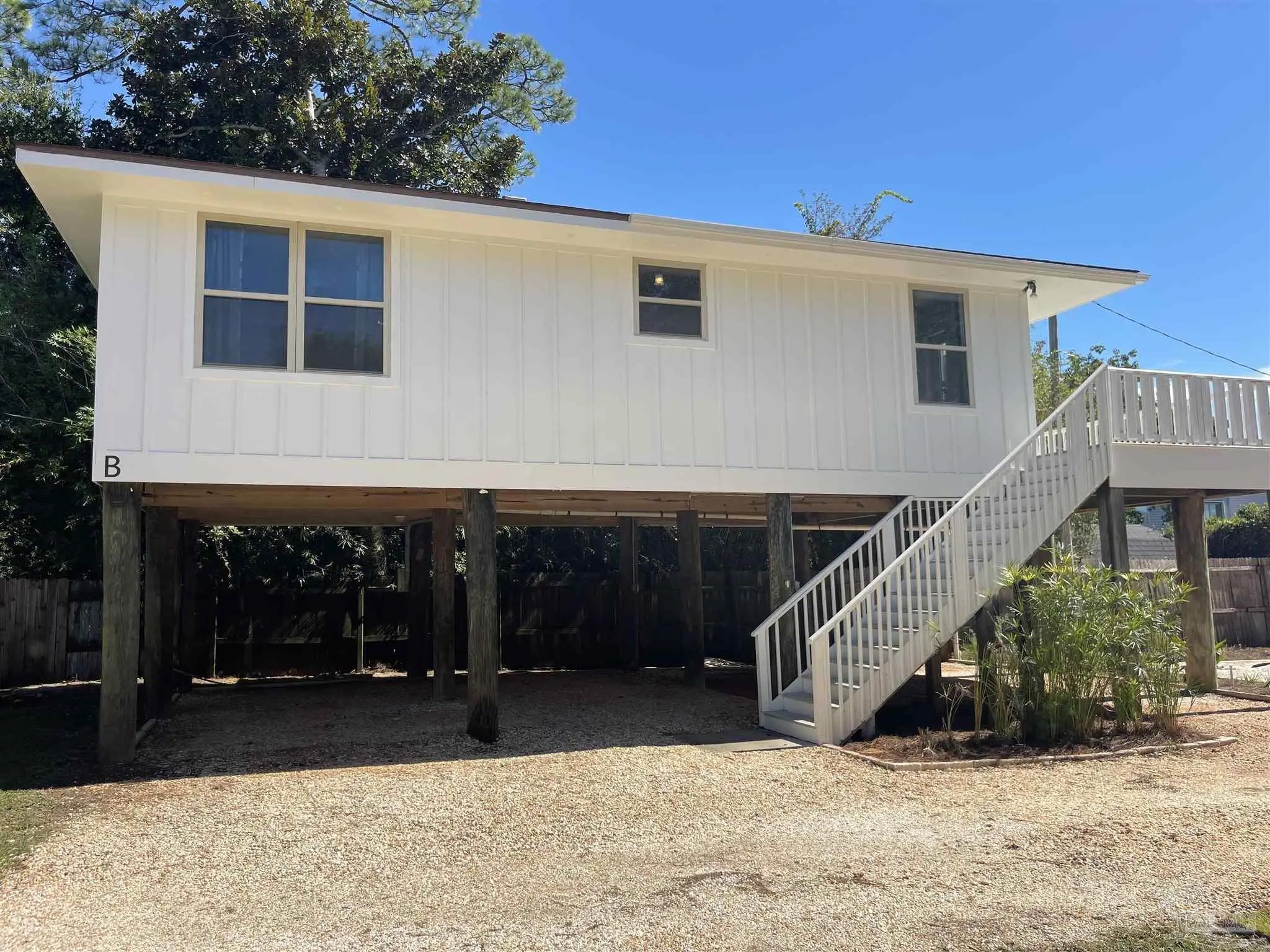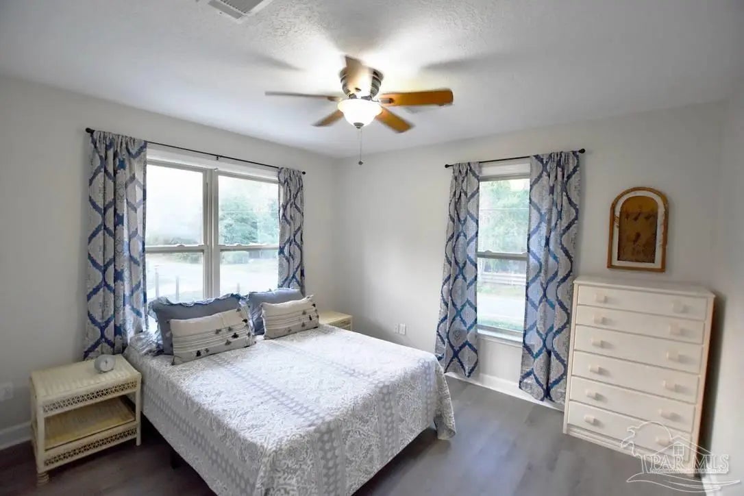 Owners have given this amazing property the attention its been waiting for. Price adjustment and major improvements! Fall in love with this turn-key coastal retreat, completely remodeled inside and out. New exterior paint, updated landscaping, fruit trees, a new fence and dock, and a whole new vibe. This property is made up of two completely independent houses on one lot. The 3 bedroom 2 bath main house is light and bright. It features an open concept kitchen/dining/living design, huge pantry, and a utility room off the kitchen. There are two guest bedrooms that share a second bath, and a primary suite with a dressing room, large bathroom, and big windows to soak up the water views. The 1 bed/1 bath secondary house is completely independent with its own utilities. It has an amazing, large, open concept kitchen/living room and a bedroom with attached bath and laundry. This house has it's own covered parking and a deck. This is the perfect situation for multi-generational living or rent out one unit and live in the other. Both homes built in 2008 have impact windows and doors, are high and dry on pilings, and have abundant space below for entertaining and covered parking, as well as a large workshop. Whether you’re an investor looking for an income producing short term rental opportunity, or you’re searching for your primary home, don't miss this fantastic property. Catch red fish, speckled trout, crabs and beautiful sunsets from the dock. Located just steps from the Woodlawn Beach Boat Ramp, and equally distant from Navarre Beach and Pensacola Beach. Zoned for top rated schools. Upgraded from septic to city sewer (2025).