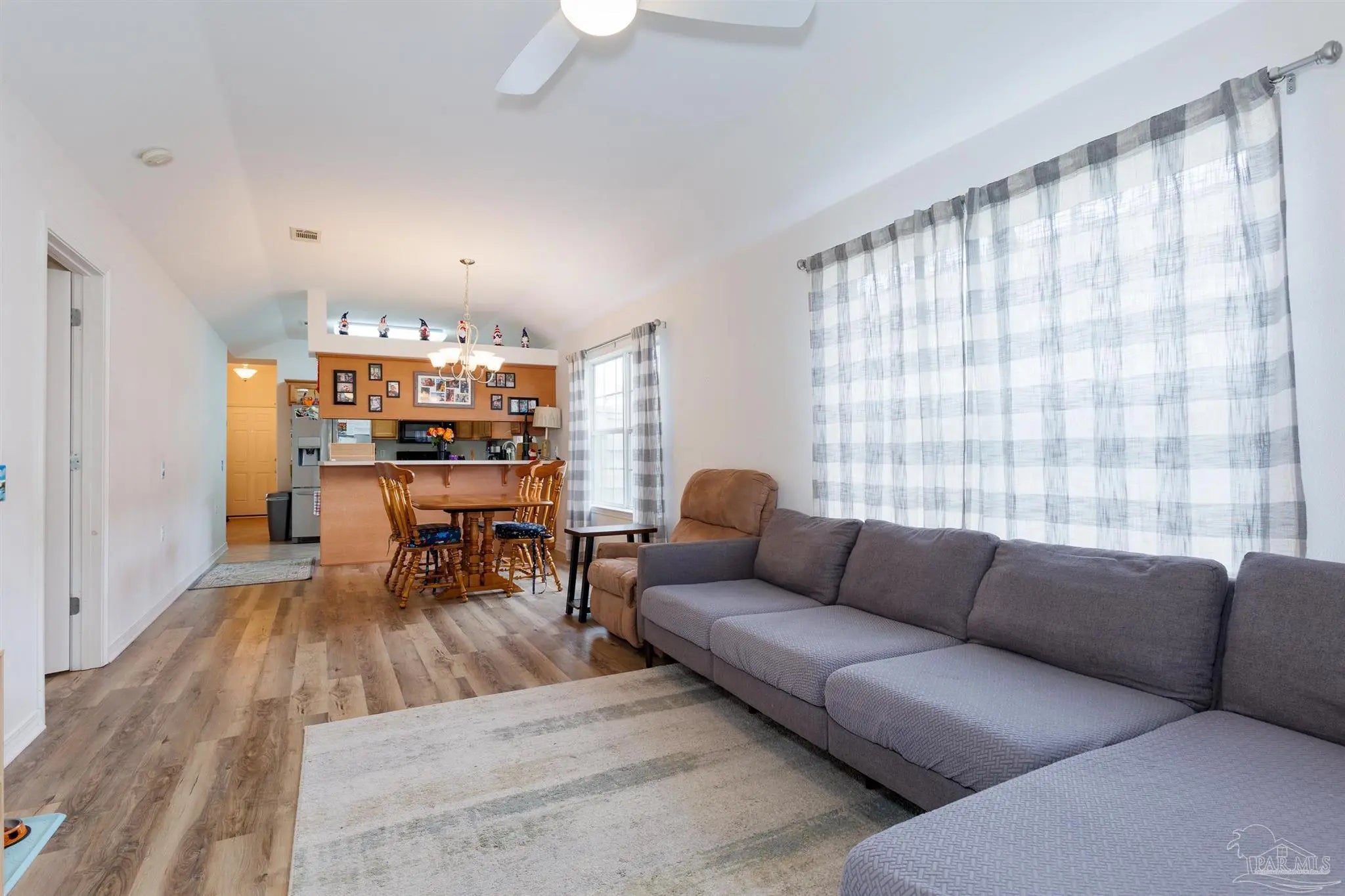 Move-in ready home in Gulf Breeze! Beautiful 3 BR/ 2 BA situated in Shadow Lakes subdivision. No carpet! LVP flooring in all bedrooms and living areas; tile in kitchen and baths. Expanded driveway offers additional parking accommodations. The kitchen features retractable drawers in the lower cabinets, one touch faucet in the kitchen sink, garbage disposal, dishwasher, electric range, built in microwave, and stainless steel refrigerator. The expanded covered back patio with an outdoor ceiling fan offers the perfect opportunity to enjoy the fenced back yard and garden; featuring 6 X 33 raised beds. New fence and AC Unit in 2019. New Rheem water heater 2020.