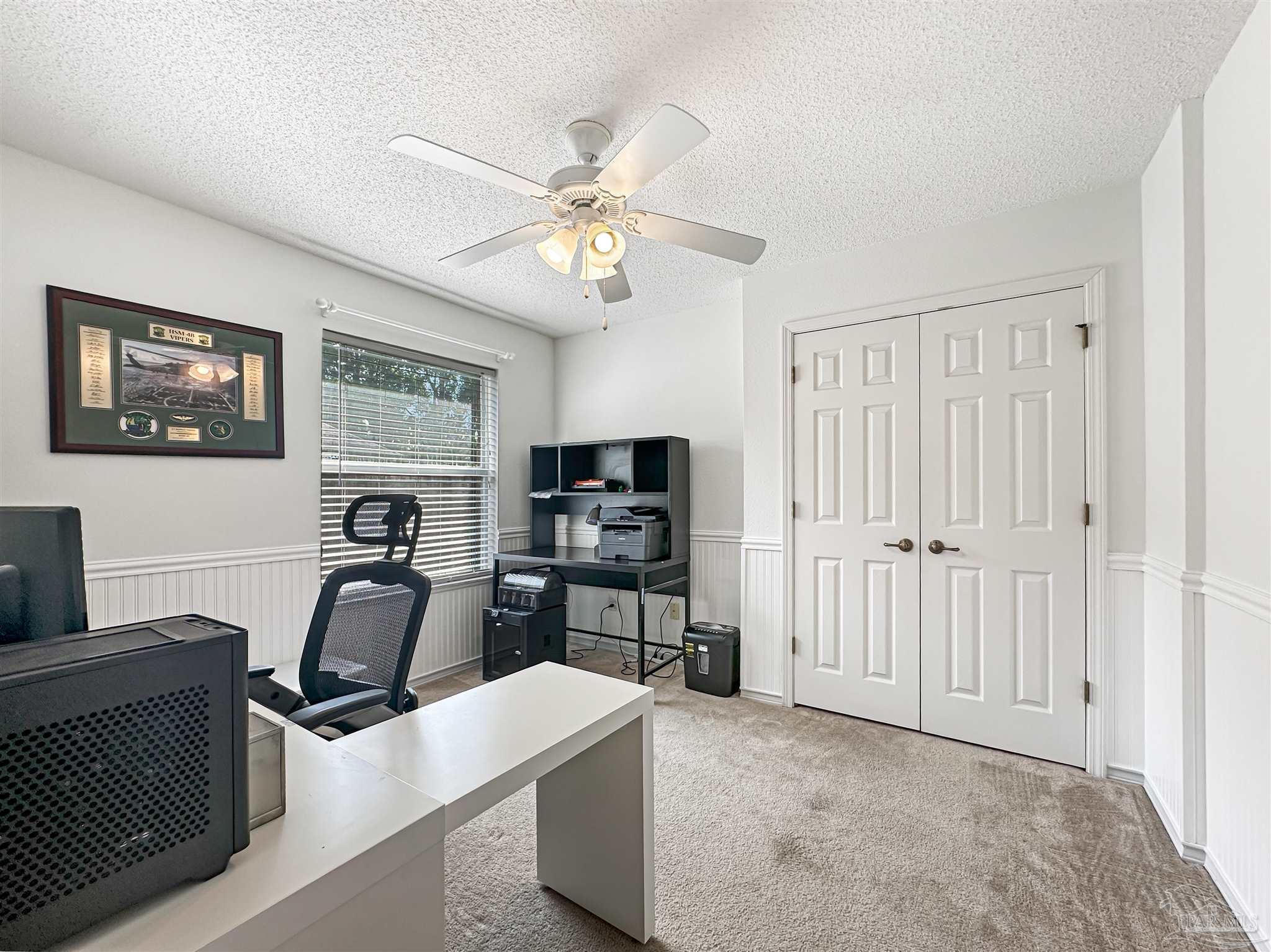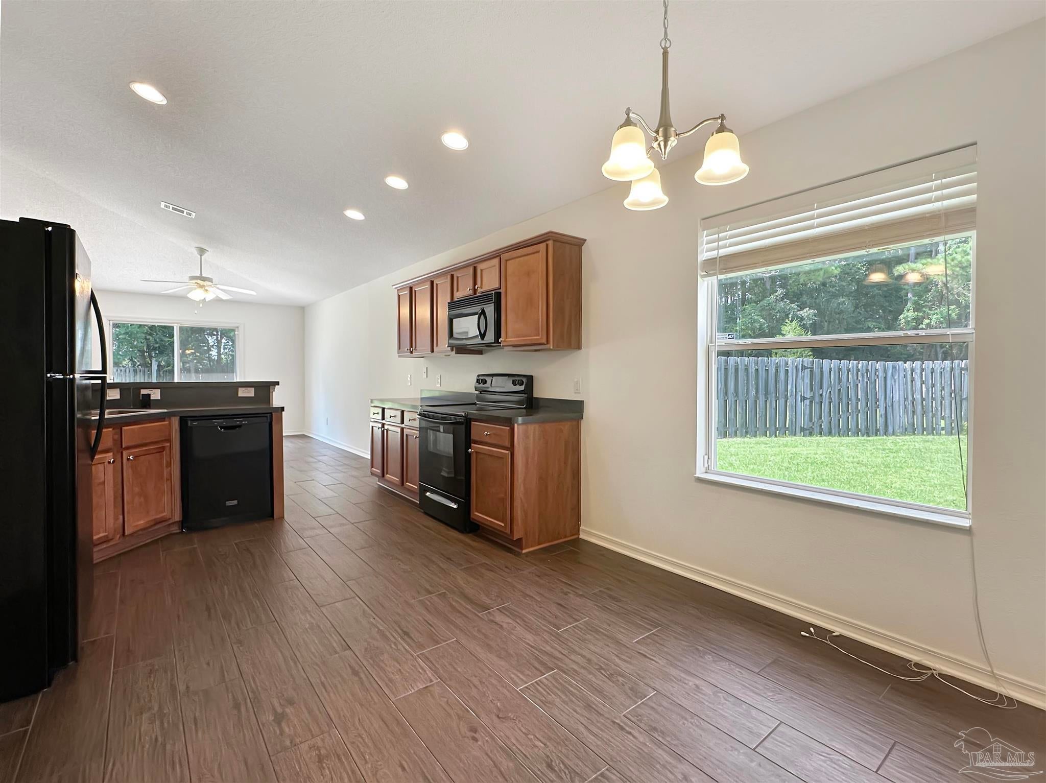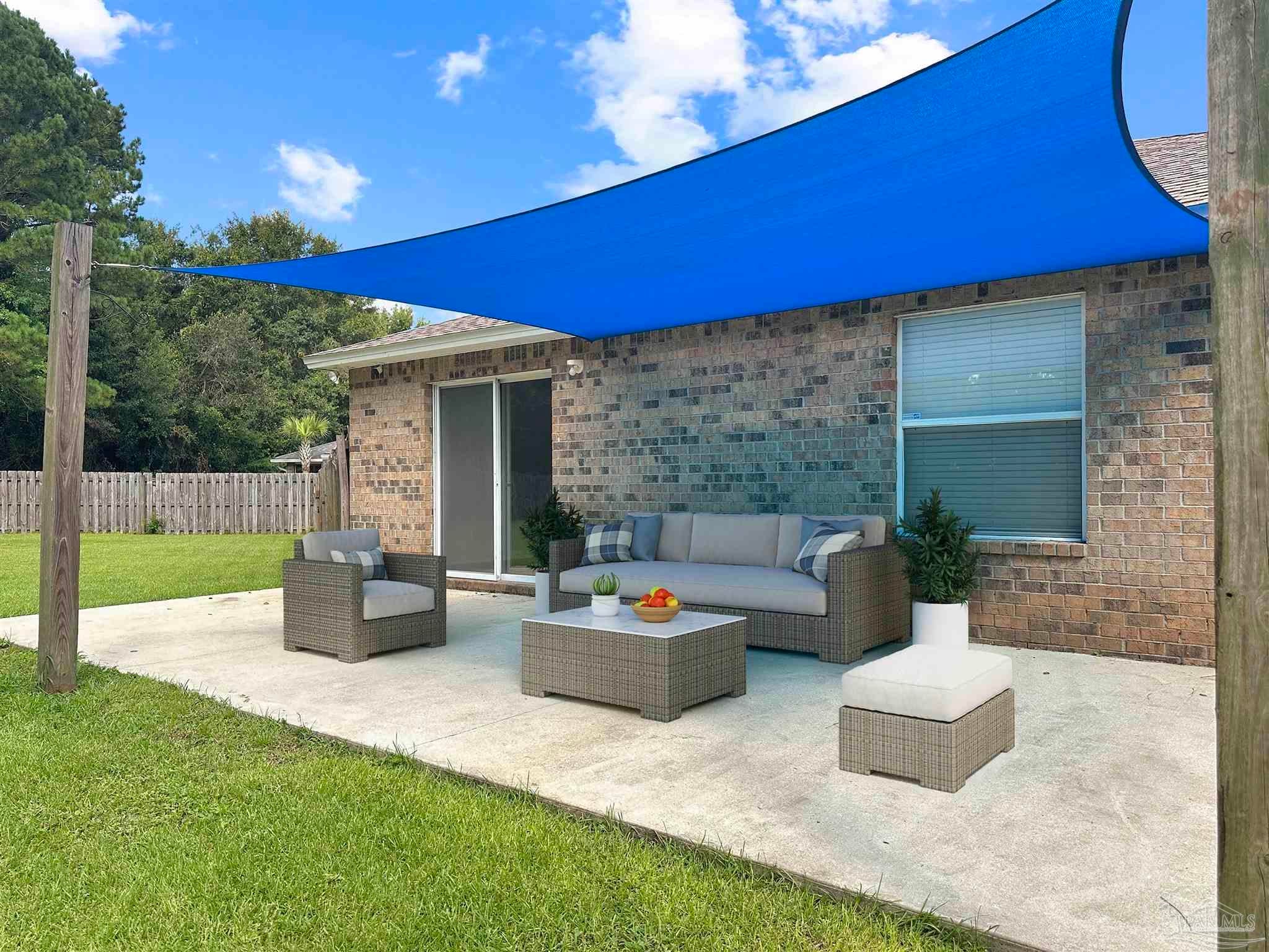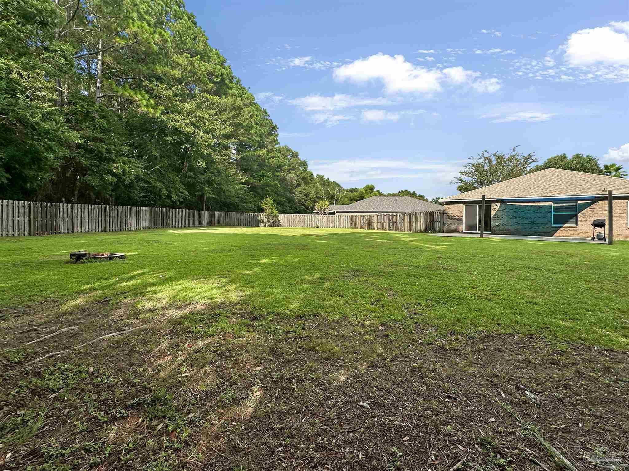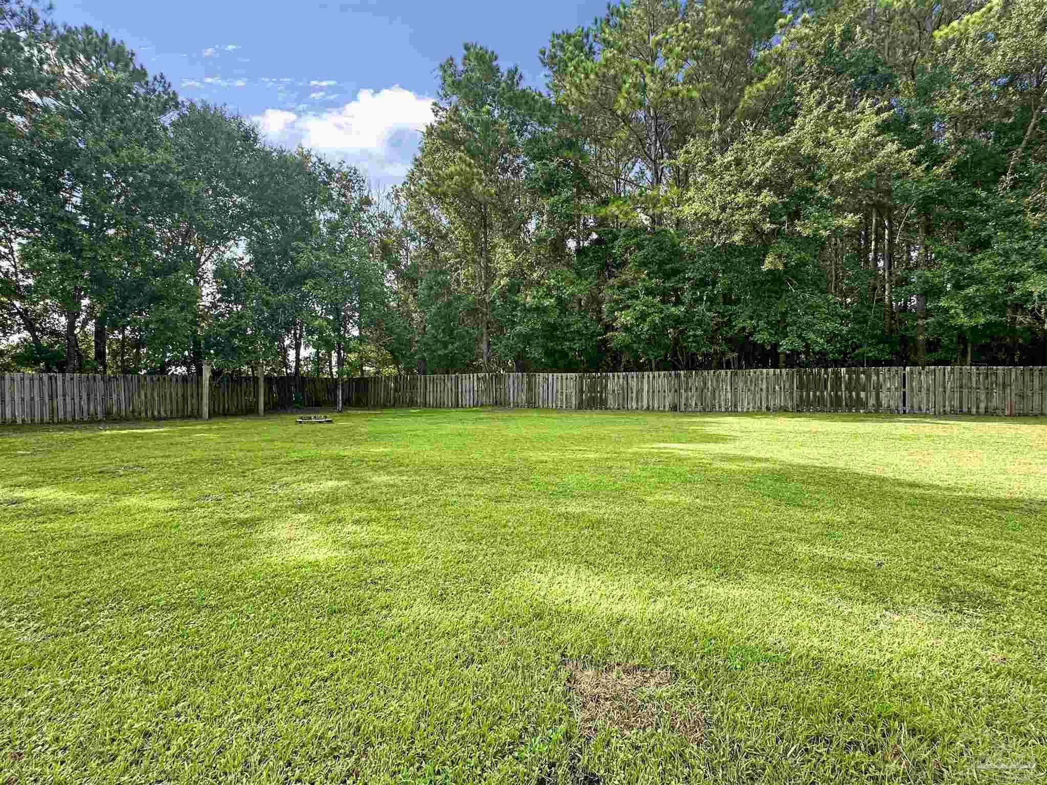 Discover comfort and convenience in this well-maintained 3-bedroom, 2-bath home, perfectly situated on a rare pie-shaped lot that provides one of the largest and most private backyards in the neighborhood. The unique separated bedroom layout offers privacy for each bedroom without being a true split floorplan — ideal for guests, family, or a home office. The bright, open living spaces flow seamlessly into a lush backyard retreat, fully enclosed with a privacy fence and featuring a 13.5-foot vehicle gate for easy access. Backing directly to the Pace High School campus and just minutes from shopping and dining in the Pea Ridge area, this home pairs peaceful surroundings with everyday convenience. Major updates have already been taken care of for you — the roof, water heater, and HVAC are all less than 4 years old. The seller will also entertain buyer closing cost concessions. If you’ve been looking for a move-in-ready home with an oversized, green, and welcoming outdoor space, this is the one to see. Room dimensions should be considered approximate, sqft and acreage were pulled from public sources buyer should perform due diligence to ensure accuracy of all metrics.