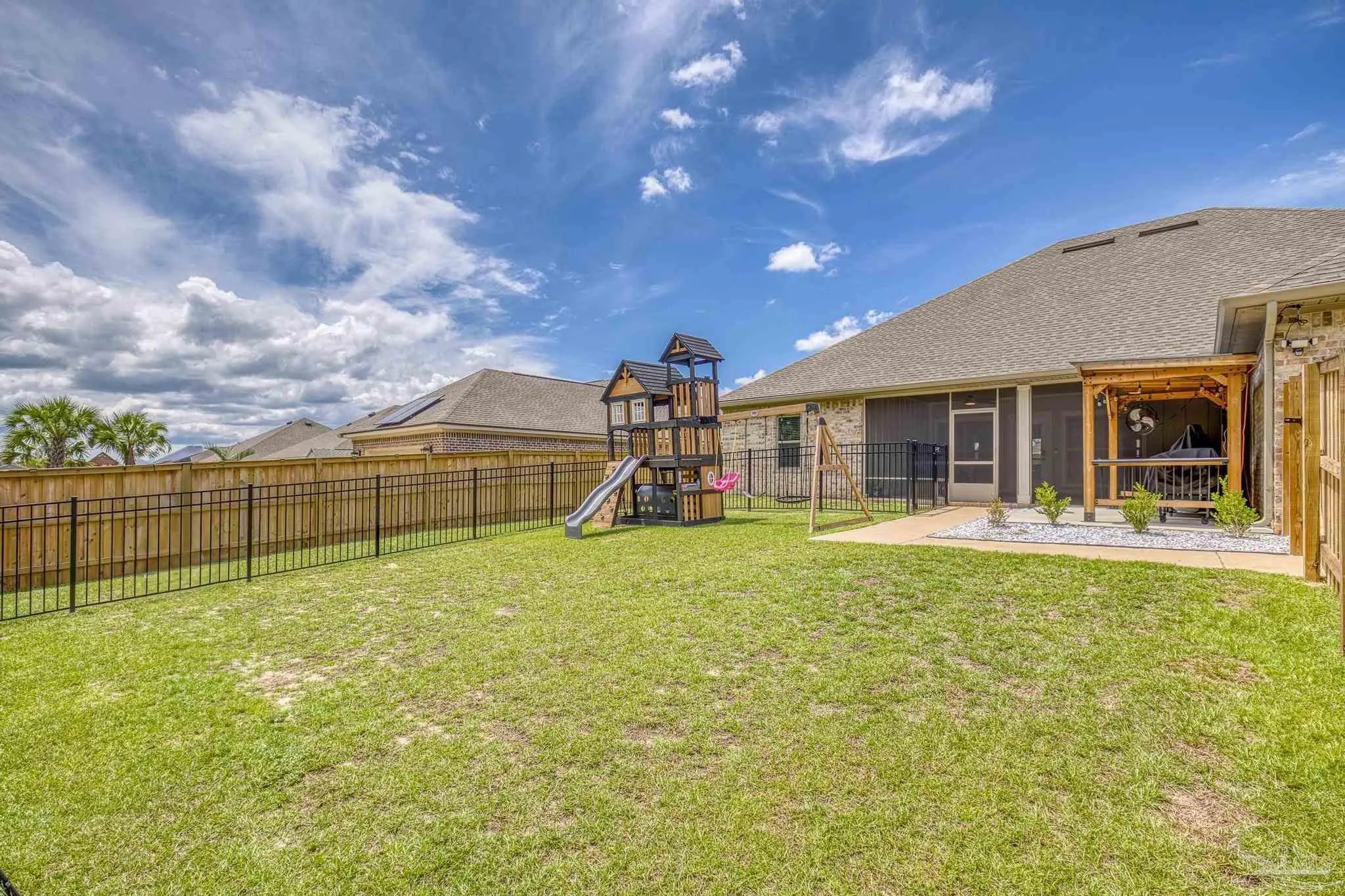 Welcome to Yellow River Ranch — one of the area’s most sought-after communities! Enjoy exceptional amenities including a sparkling community pool just a short walk away, with brand-new pickleball and tennis courts currently under construction. Plus this community has 3 Ponds! This move-in ready home is filled with upgrades that make it truly special: Mother-in-Law Suite: A private and comfortable space, perfect for extended family, guests, or multi-generational living. Outdoor Living: Privacy fencing with a separate dog run, a screened-in porch with a doggy door, a concrete grilling pad, and a stylish pergola with a roof, lighting, and an outdoor fan. Family Fun: Custom playground, plus two additional ceiling fans on the back patio for comfort. Interior Touches: Barn doors in the flex room, a gorgeous kitchen backsplash, and a beautiful refrigerator included. Practical Upgrades: Gutters, Ring cameras on the front and back, and a washer & dryer that convey with the home. With its private setting, thoughtful upgrades, versatile Mother-in-Law suite, and access to top-notch community amenities, this home offers the perfect blend of comfort, style, and convenience.