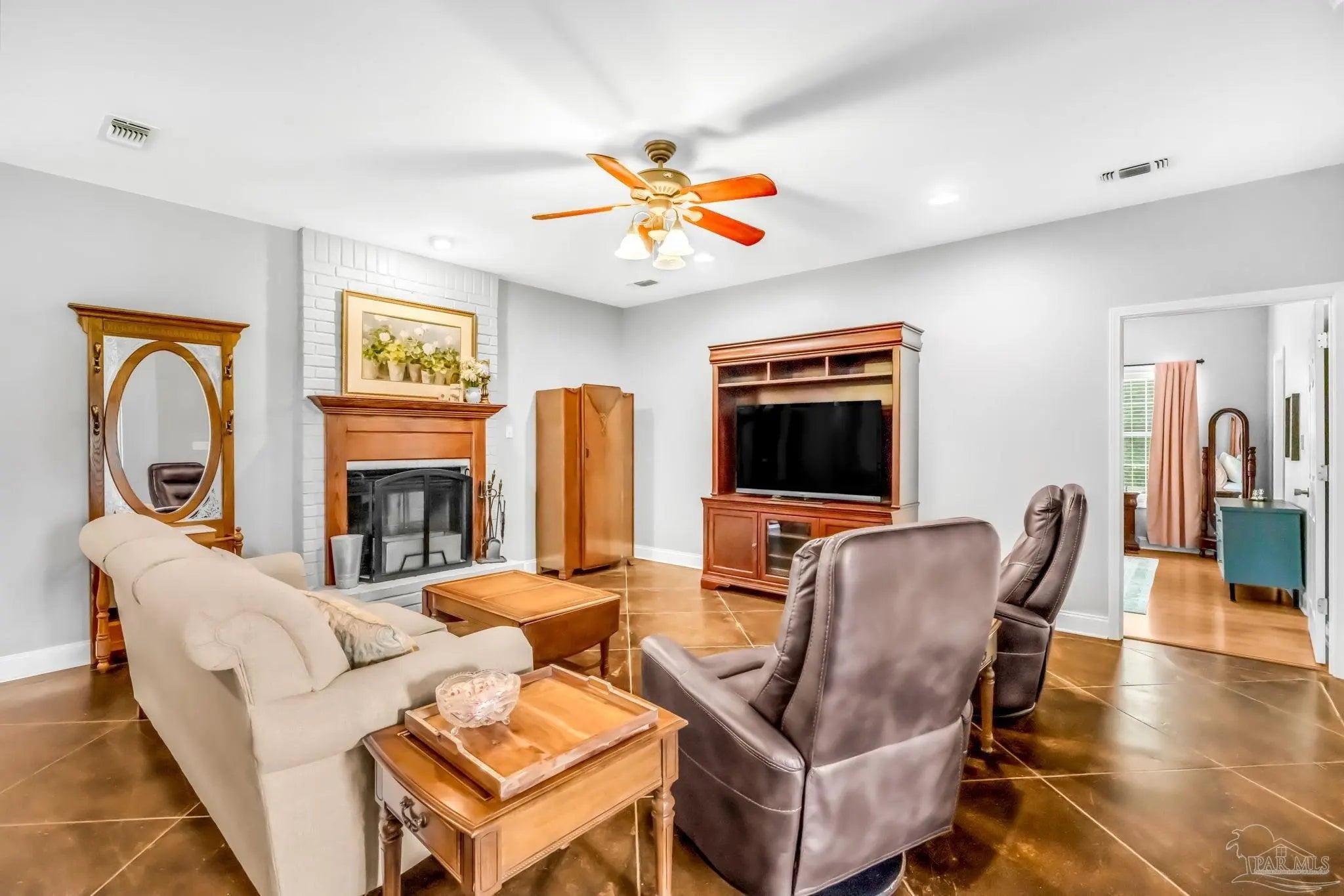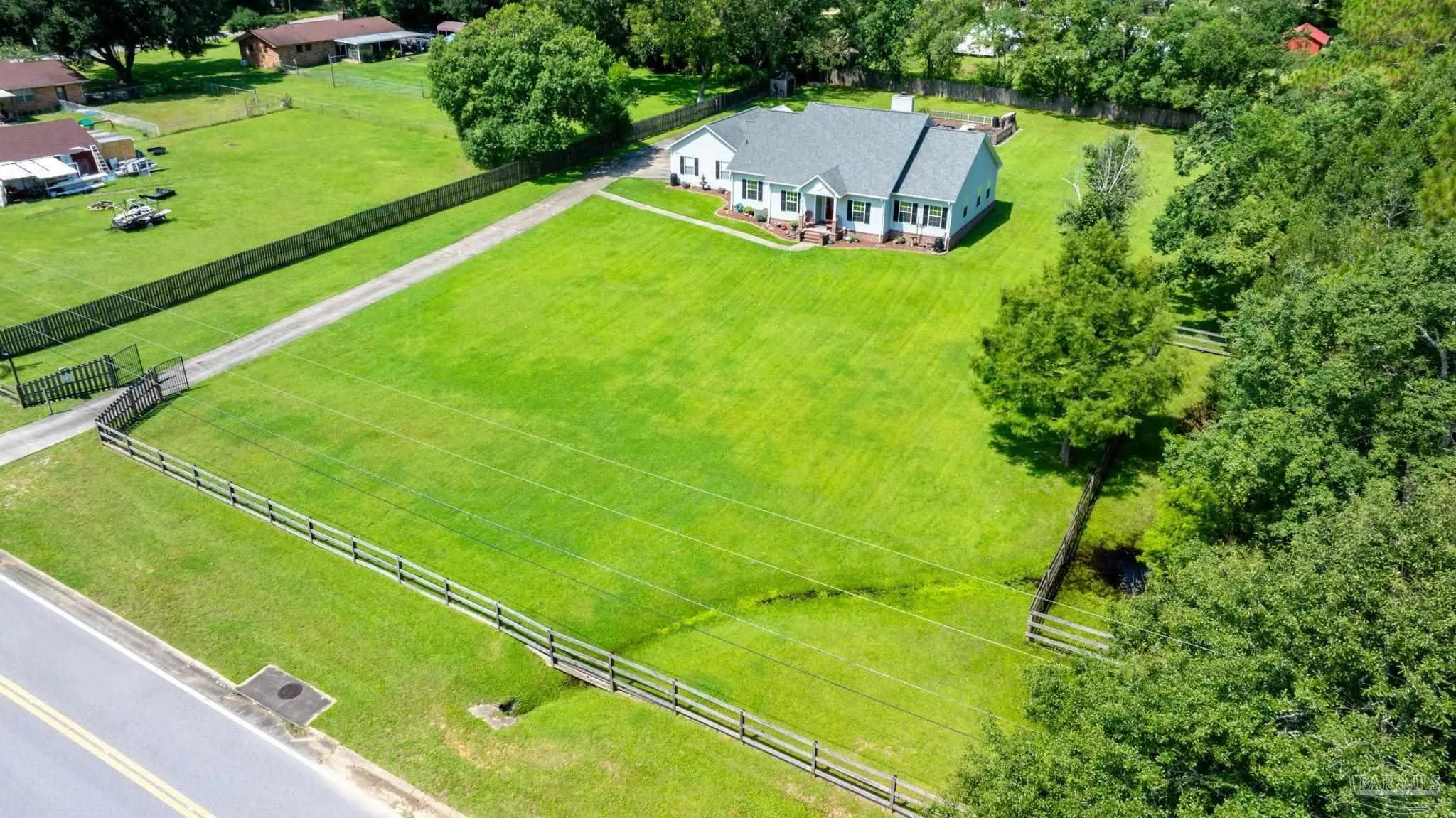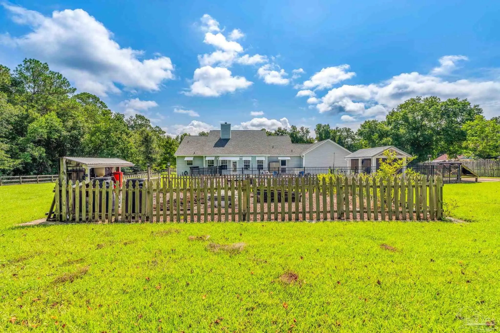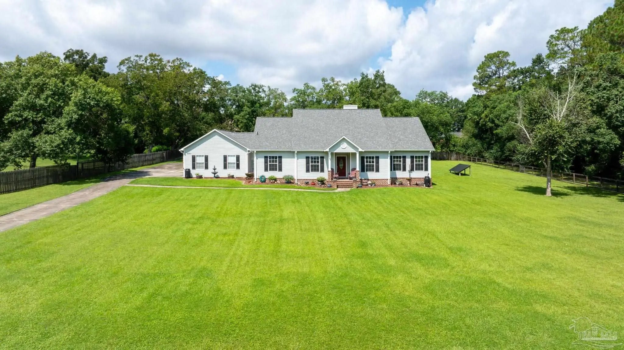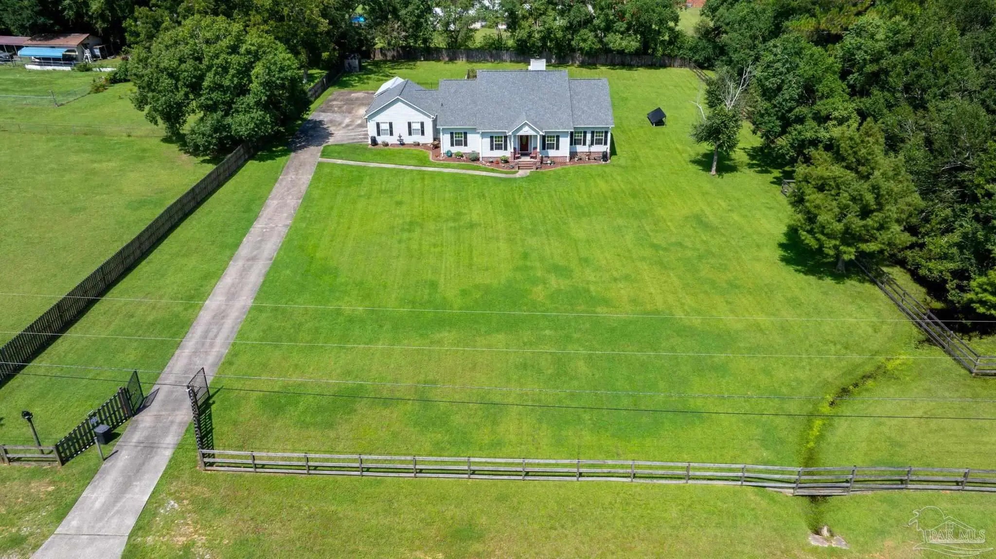 Gated entry • 1.49-acre estate lot • Resort-style backyard oasis Set back behind a gated entrance on a sprawling 1.49-acre lot, this 2,342-sq-ft residence features 4 bedrooms plus an office/den with closet that can serve as a 5th bedroom. The primary suite offers two large walk-in closets, separate soaking tub and shower, and dual vanities. Both full baths include double vanities; a convenient half bath completes the layout. The main living area opens with a wood-burning fireplace and flows into dining and kitchen zones, framed by solar-assisted mini-split HVAC units and a 4-year-old primary system for added efficiency. Roof was replaced in 2020; water heater original 2013. Step outdoors to discover a resort-style backyard designed for all-season enjoyment: a private pool with diving board and sand-filter system (new pump 2024), dual solar/electrical pool equipment, hot & cold outdoor shower, paver patio with built-in fire pit, covered pergola with full electrical and lighting, and a dedicated garden zone for hobby planting or raised-bed planting. Lush foliage and open acreage create a secluded setting ideal for entertaining, relaxing or recreation. The two-car attached garage, efficient systems, versatile floor plan and expansive grounds complete the offering. Includes 3D walkthrough and full video tour.