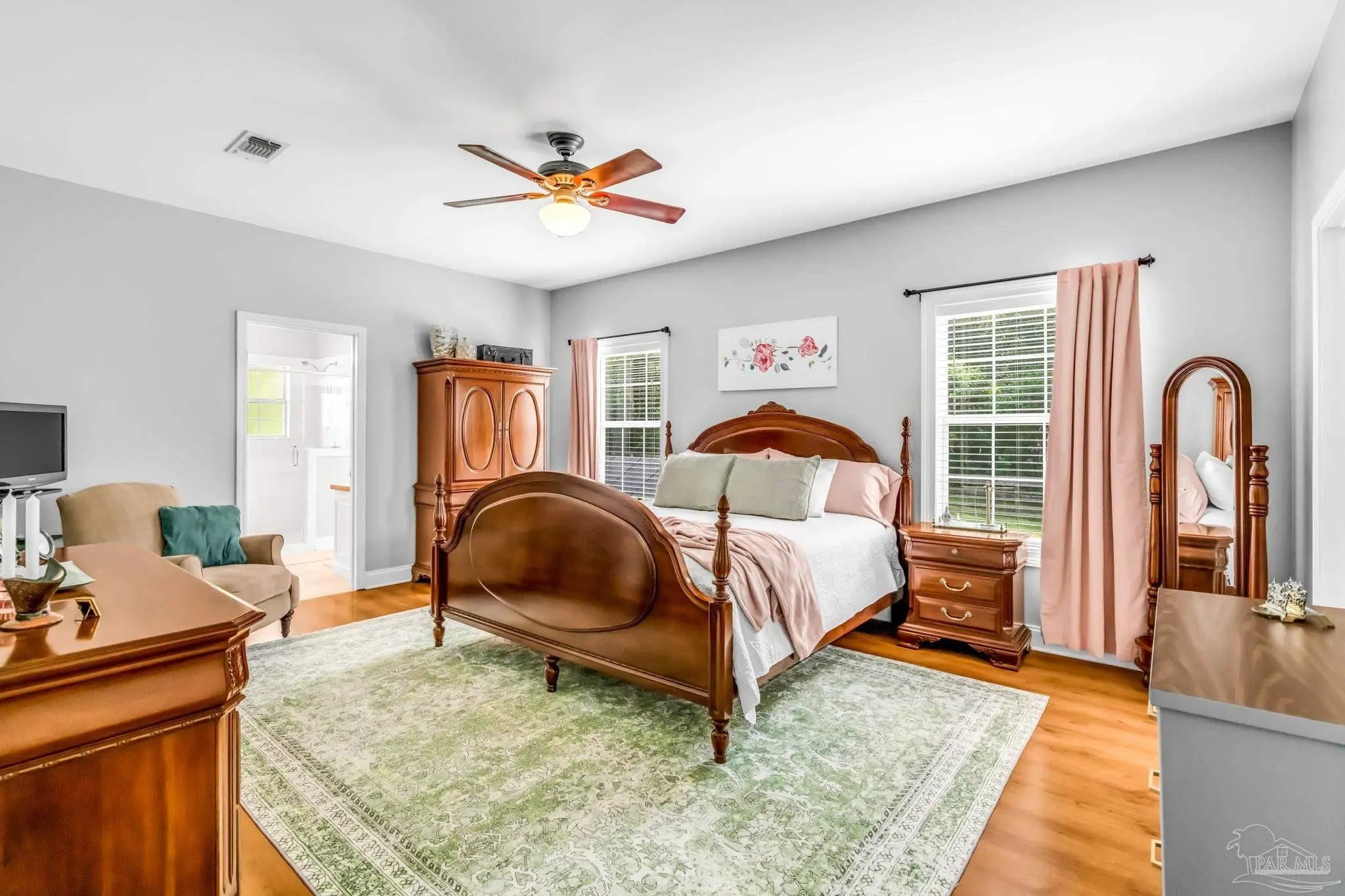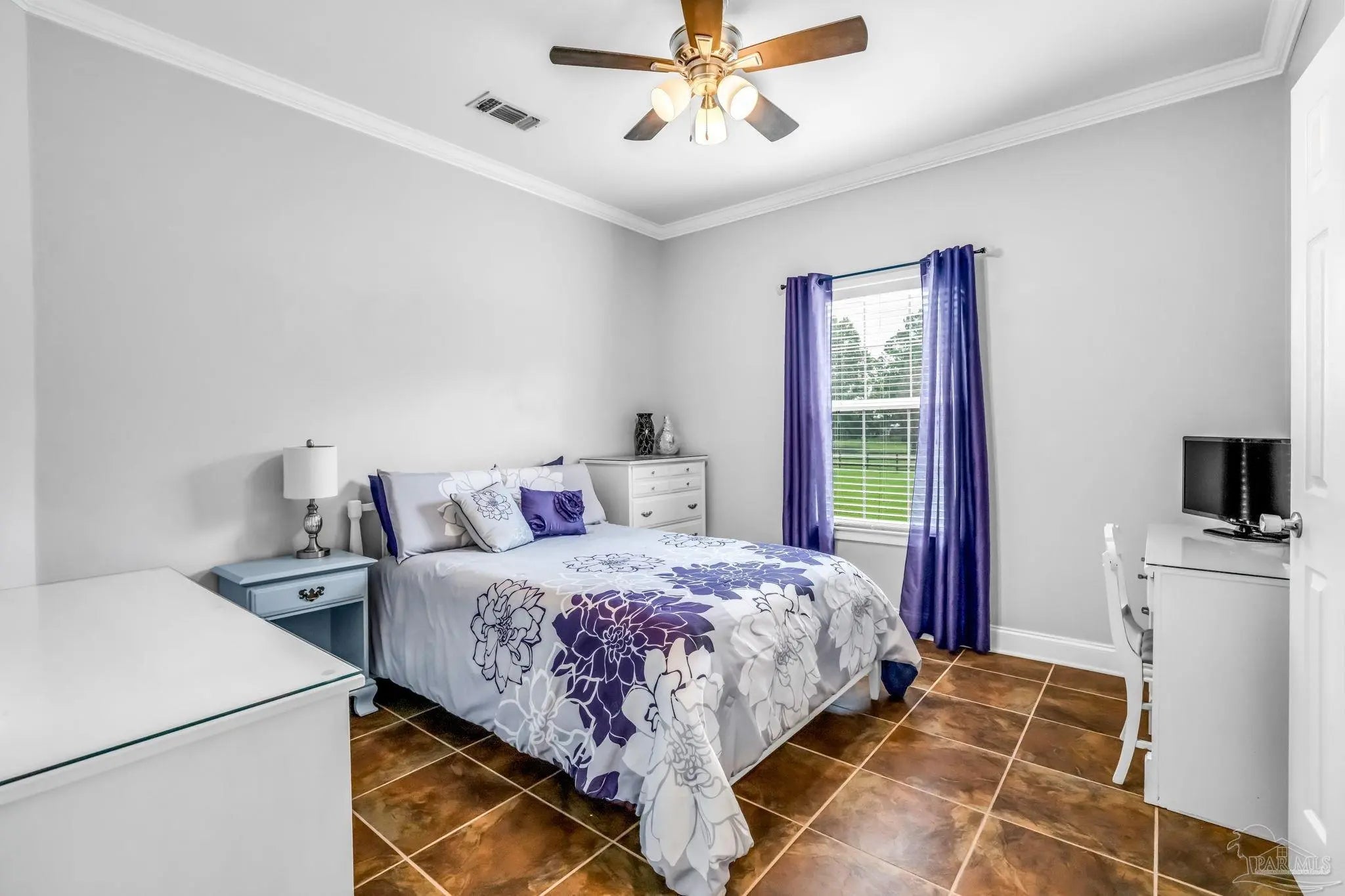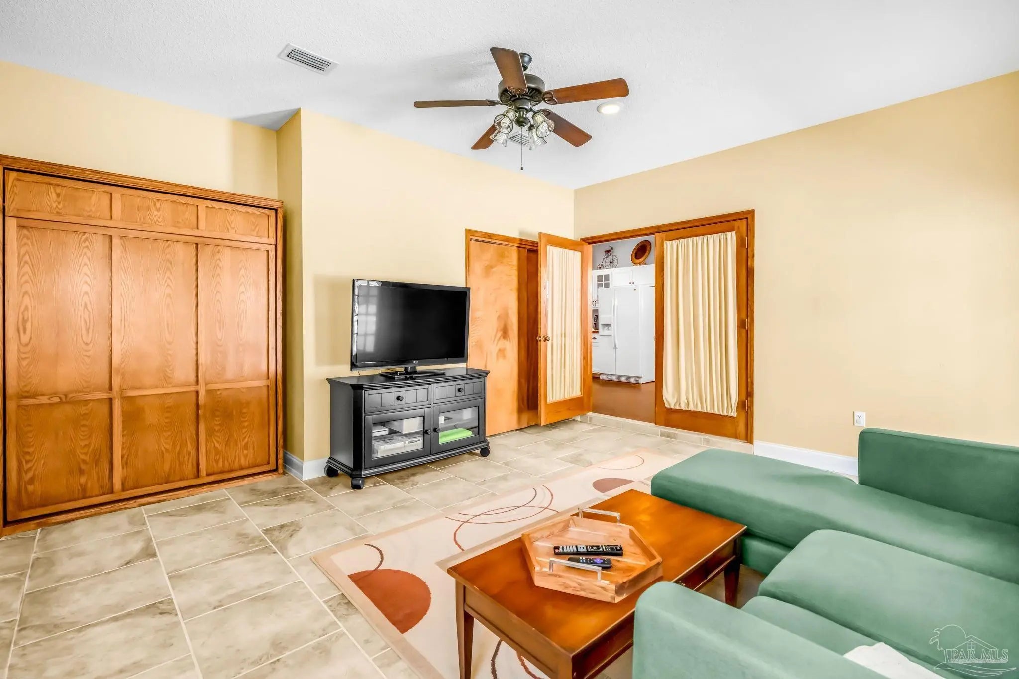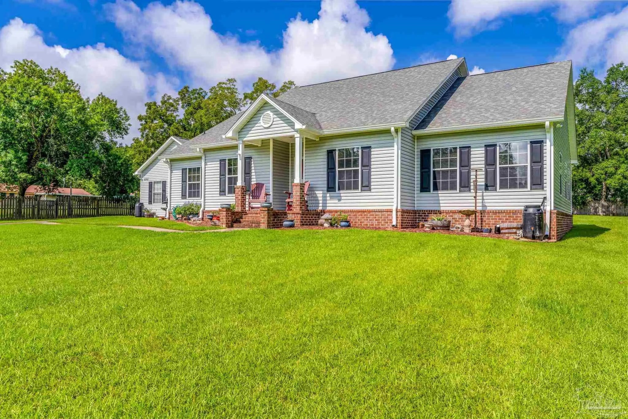 Gated entry • 1.49-acre estate lot • Resort-style backyard oasis Set back behind a gated entrance on a sprawling 1.49-acre lot, this 2,342-sq-ft residence features 4 bedrooms plus an office/den with closet that can serve as a 5th bedroom. The primary suite offers two large walk-in closets, separate soaking tub and shower, and dual vanities. Both full baths include double vanities; a convenient half bath completes the layout. The main living area opens with a wood-burning fireplace and flows into dining and kitchen zones, framed by solar-assisted mini-split HVAC units and a 4-year-old primary system for added efficiency. Roof was replaced in 2020; water heater original 2013. Step outdoors to discover a resort-style backyard designed for all-season enjoyment: a private pool with diving board and sand-filter system (new pump 2024), dual solar/electrical pool equipment, hot & cold outdoor shower, paver patio with built-in fire pit, covered pergola with full electrical and lighting, and a dedicated garden zone for hobby planting or raised-bed planting. Lush foliage and open acreage create a secluded setting ideal for entertaining, relaxing or recreation. The two-car attached garage, efficient systems, versatile floor plan and expansive grounds complete the offering. Includes 3D walkthrough and full video tour.