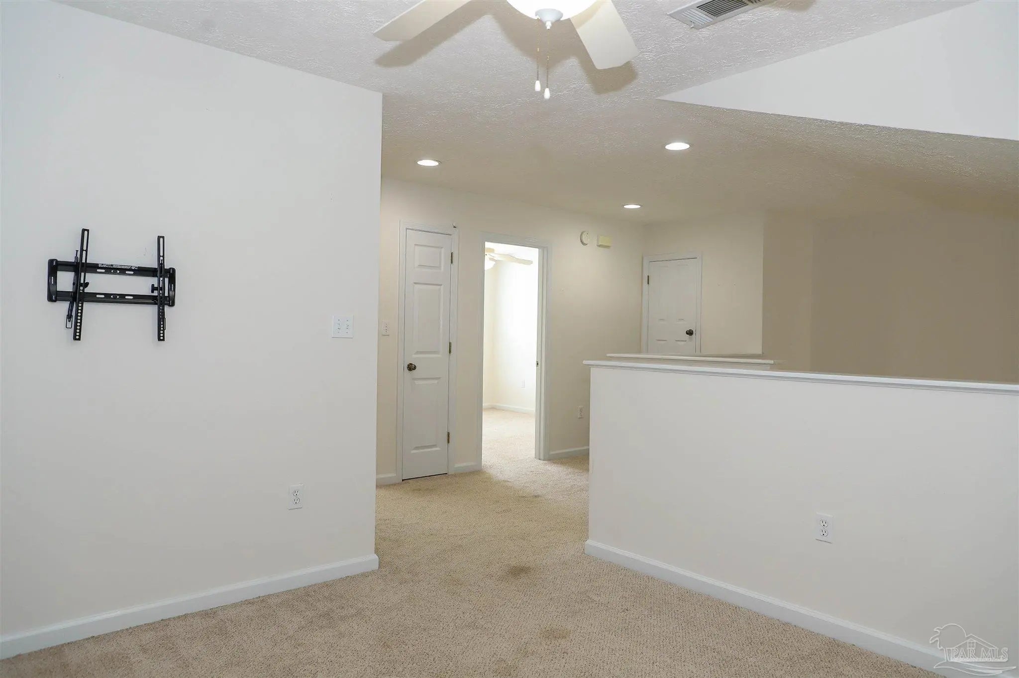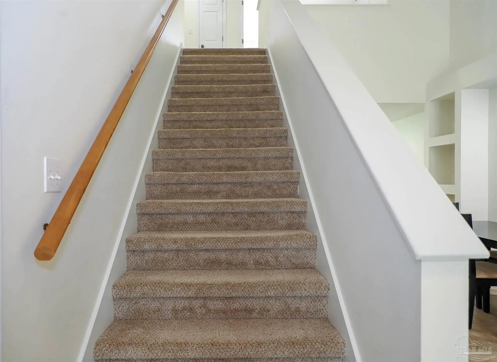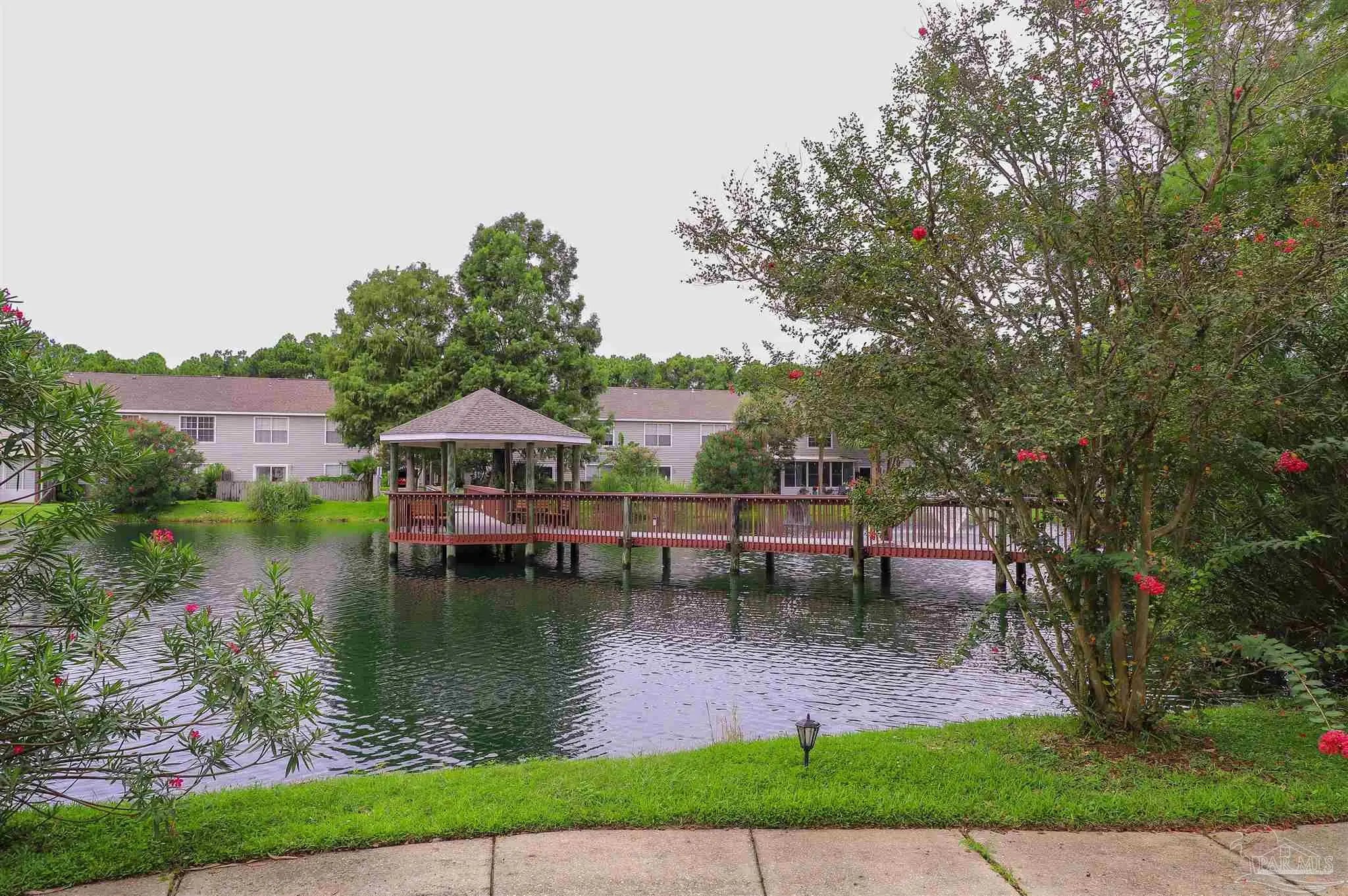 Beautiful 3BR/2.5BA end-unit townhome in the desirable Tiger Lake community of Gulf Breeze. This unique, larger 1,672 sq. ft. floorplan offers a separate laundry area (not in the kitchen) and stunning views of the lake, fountain, and gazebo from a covered back patio with awning. The open-concept main level features no carpet, an inviting eat-in kitchen, spacious living area, and first-floor primary suite. Upstairs includes two additional bedrooms and a versatile loft—perfect for a home office or second living space. Enjoy nearby shopping and the Tiger Point Recreation Center with sports facilities, playgrounds, and picnic areas. Recent upgrades include a brand-new HVAC system for year-round comfort and efficiency. HOA covers termite prevention and lawn care, allowing you to enjoy low-maintenance living with the perfect blend of lakefront beauty, modern convenience, and community charm.