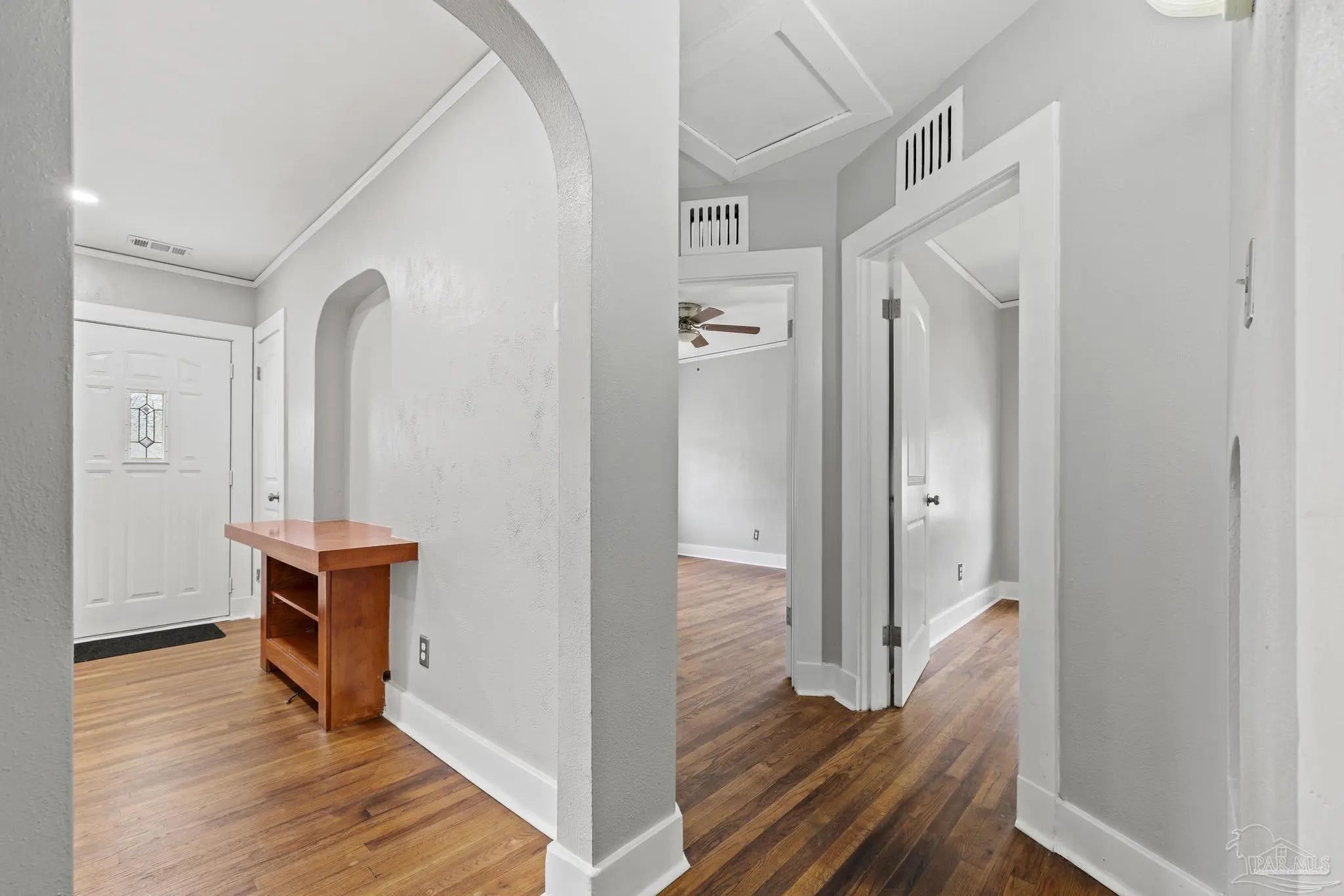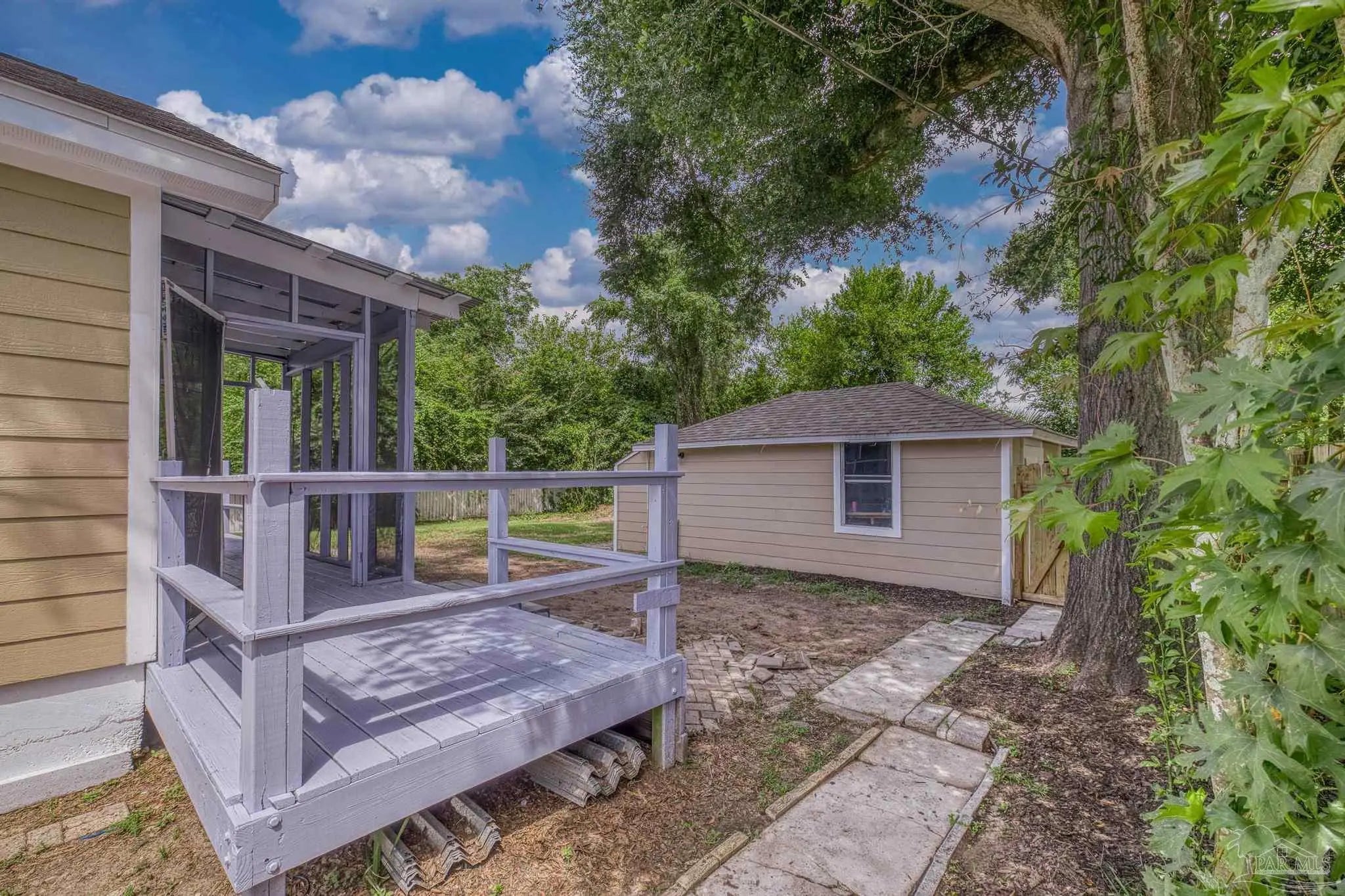 Step into timeless charm with this beautifully updated 1940s cottage, located just minutes from downtown Pensacola. This 3-bedroom, 2-bath home offers the perfect mix of warmth, character, and functionality. Inside, you’ll find refinished hardwood floors, fresh neutral paint and modern bathrooms. The kitchen offers stainless steel appliances, backslash, and a pantry. The home features three comfortable bedrooms and two full bathrooms, including a private primary suite with a large closet. A bonus office or sunroom provides flexible space for working from home, a playroom, or a quiet retreat. Outside you can enjoy a spacious backyard perfect for entertaining, gardening, or relaxing under the Florida sky. You’ll also find a detached storage building, ideal for a workshop, creative studio, or extra storage. All of this just a short drive from downtown shops, restaurants, festivals, and parks. This home offers a rare combination of location, history, and modern comfort.