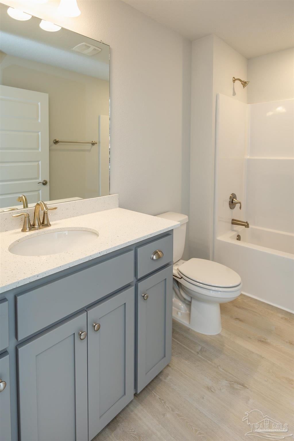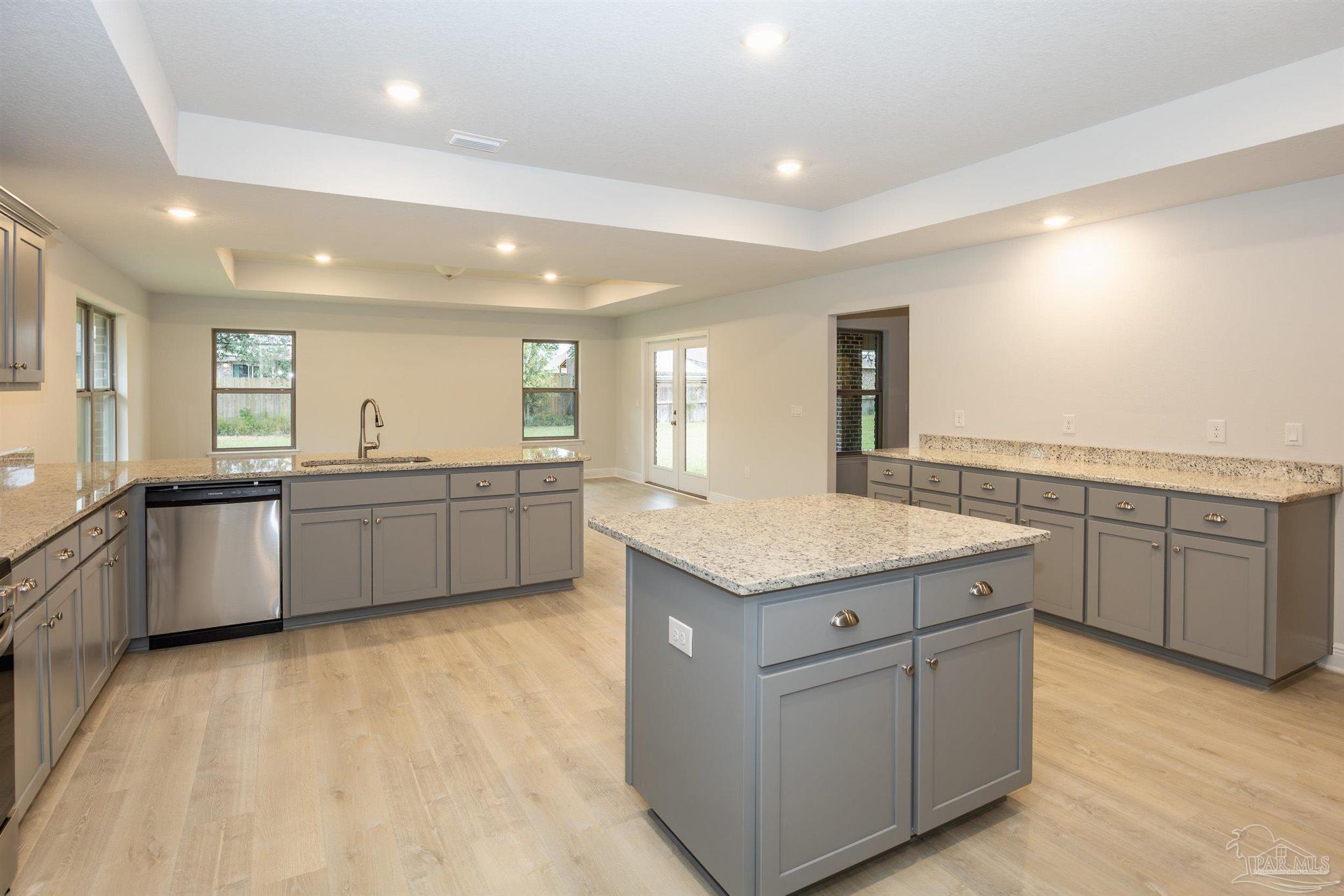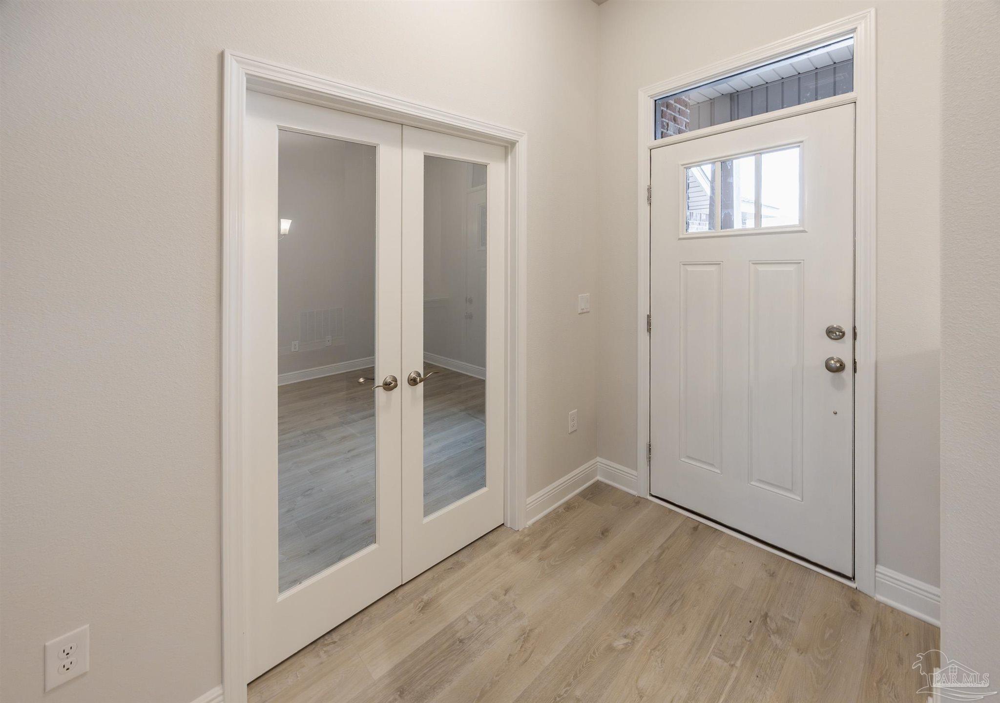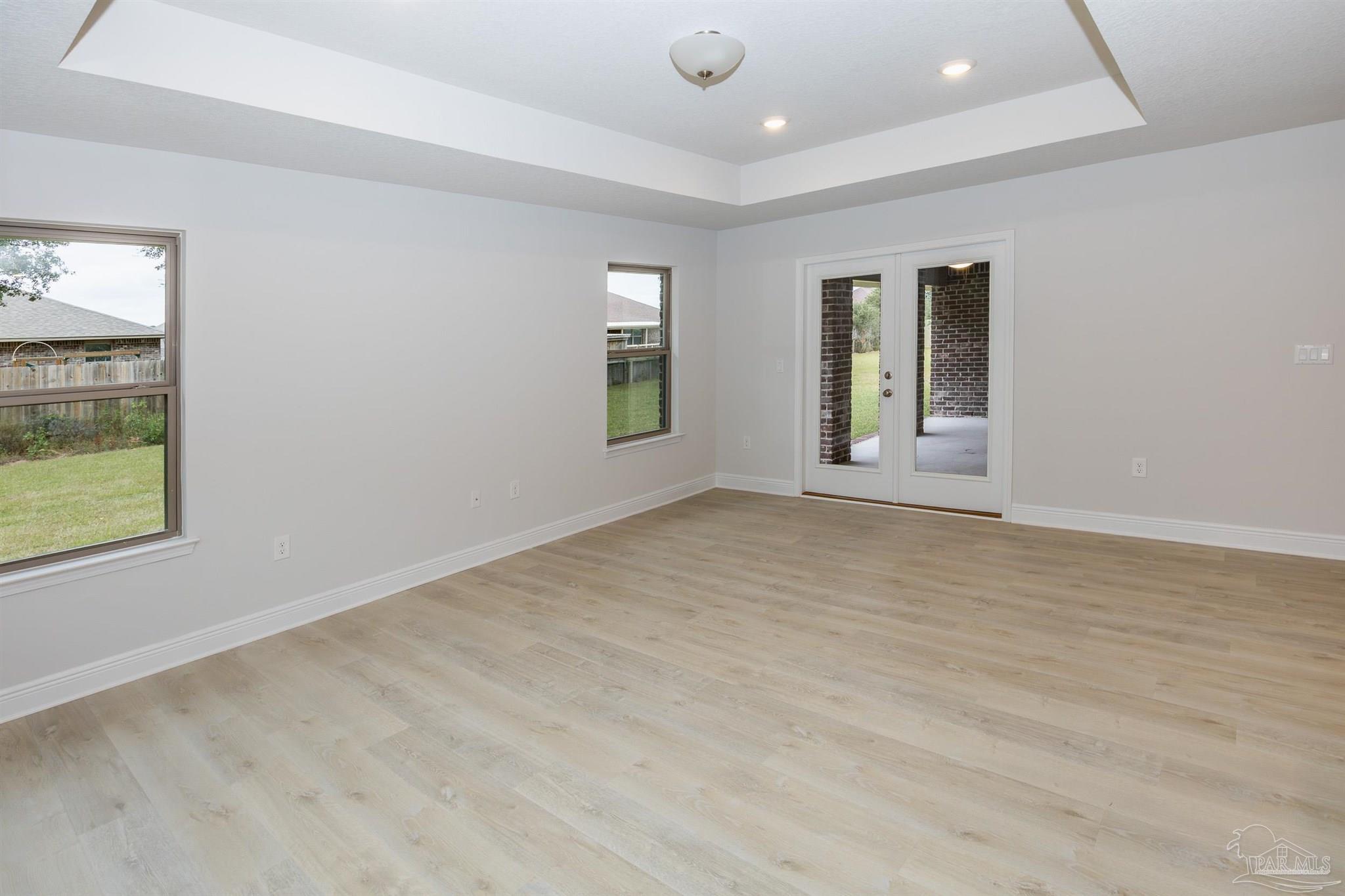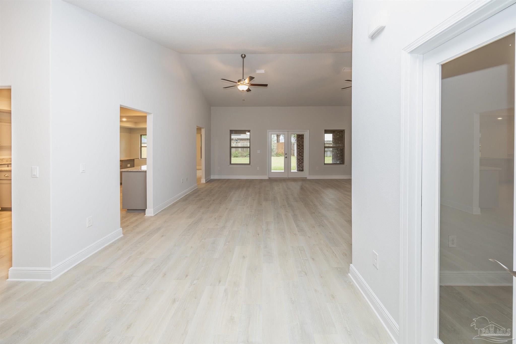 Ready Now! This breathtaking 3044 sq. ft. 'all brick' home features four spacious bedrooms and 2.5 bathrooms. The layout of this home is designed to provide ample space for comfortable living. Entering the home from a beautiful covered front porch, you are greeted with a welcoming foyer. A study with French doors and a formal dining room is off the foyer. The living room and family room have double doors that lead to a large, covered lanai for outdoor activities and gatherings. This dream kitchen features custom-made gray shaker cabinets, timeless quartz countertops, a central island, a breakfast bar peninsula, a stainless steel radiant top range, a mounted microwave, a dishwasher, and a pantry. The kitchen opens into a large family room, creating a perfect space for entertaining guests and spending quality time with family. The half bath is conveniently located off the laundry room with a beautiful quartz countertop. This home has gorgeous LVP flooring throughout the whole home! The spacious owner’s suite features a box ceiling with a ceiling fan, making it a true retreat. The owner’s bath has two large walk-in closets, a garden tub with a window, a separate shower, a double vanity with quartz countertops, and a linen closet. The additional bedrooms are generously sized and share a full bathroom with quartz countertops. This all-electric home comes with a fully sodded yard, professional landscaping package, spacious covered lanai with two exterior ceiling fans, a sprinkler system, a garage door opener, and many other features. Thank you!